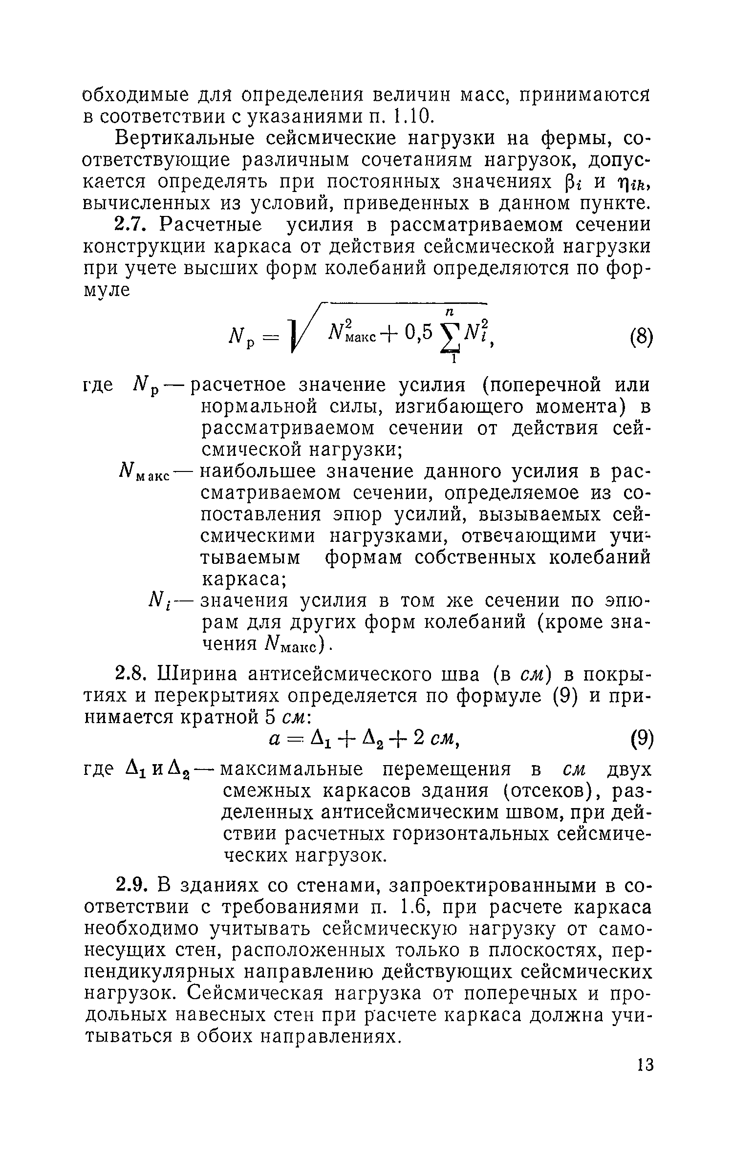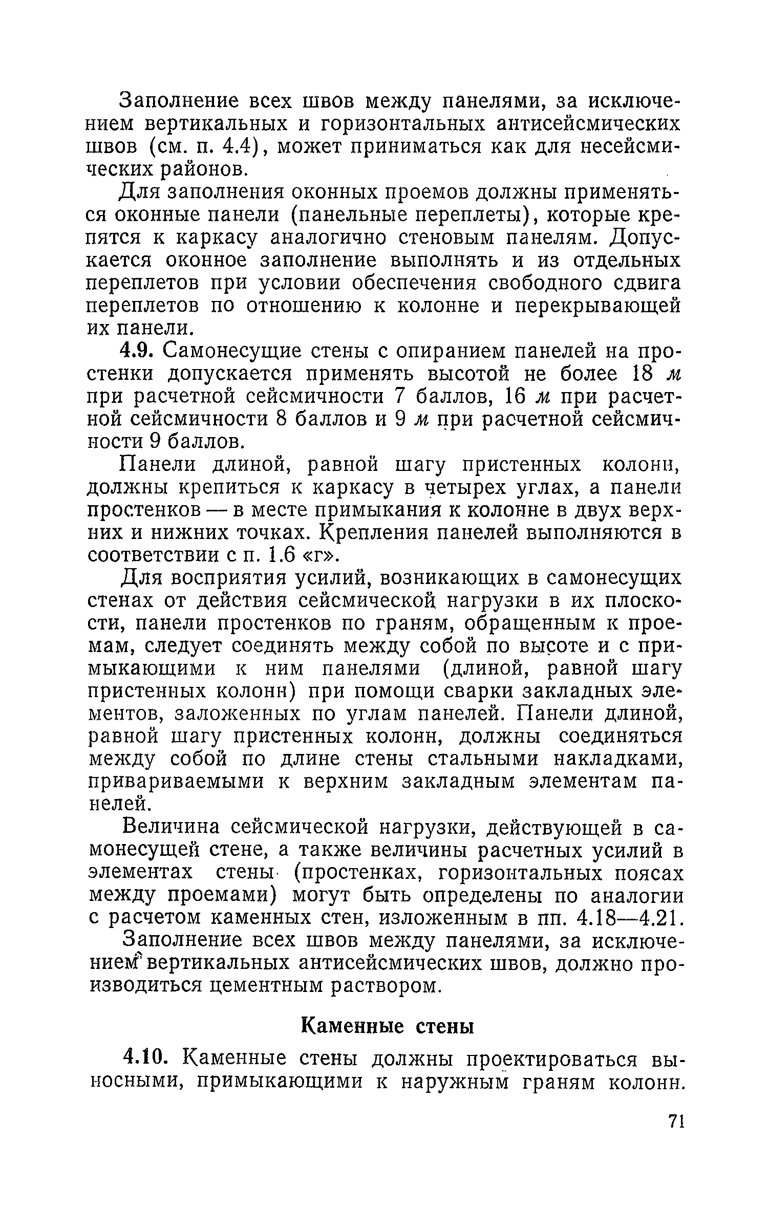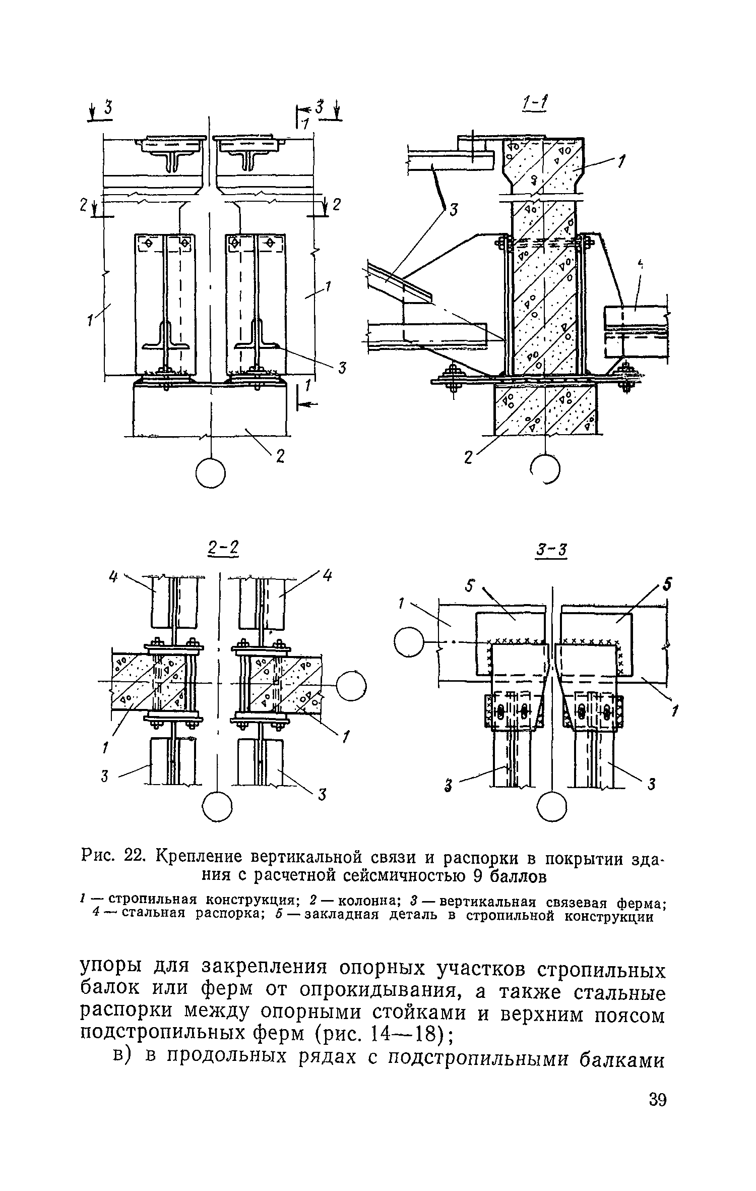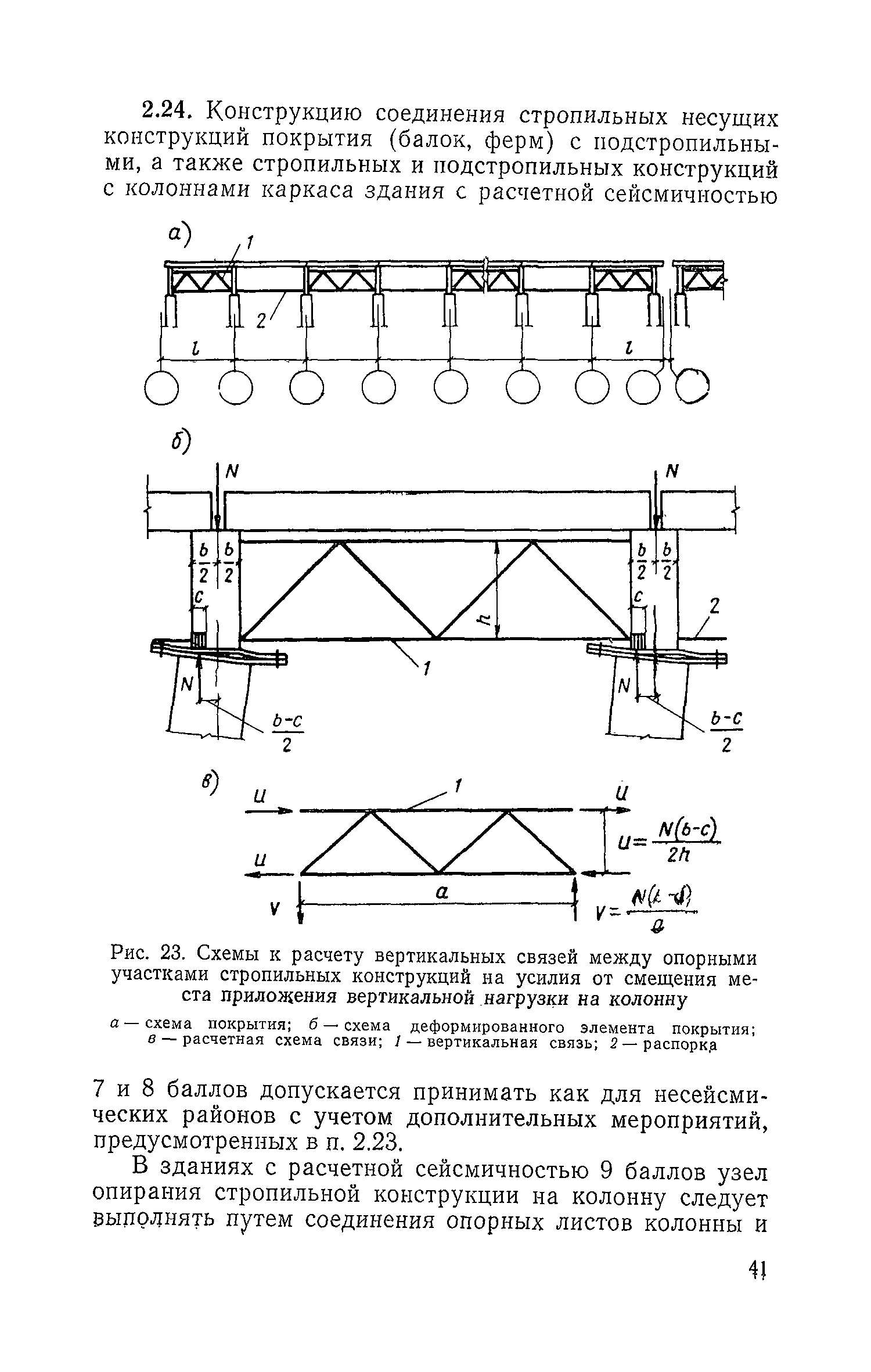 | Оглавление: | 1. Общие положения 2. Железобетонный каркас Каркас одноэтажного здания Каркас многоэтажного здания 3. Фундаменты 4. Наружные стены Панельные стены Каменные стены Приложение. Примеры расчета Пример 1. Определение усилий в каркасе одноэтажного бескранового здания от действия сейсмических нагрузок Пример 2. Определение усилий в каркасе одноэтажного здания, оборудованного мостовыми кранами, от действия сейсмических нагрузок Пример 3. Определение усилий в каркасе многоэтажного здания от действия сейсмических нагрузок Пример 4. Определение сейсмических нагрузок, действующих на каркас многоэтажного здания с учетом его поворота Пример 5. Определение усилий в стержнях железобетонной фермы от действия вертикальных сейсмических нагрузок Пример 6. Расчет жестких узлов рамы многоэтажного здания Пример 7. Расчет самонесущей кирпичной стены |