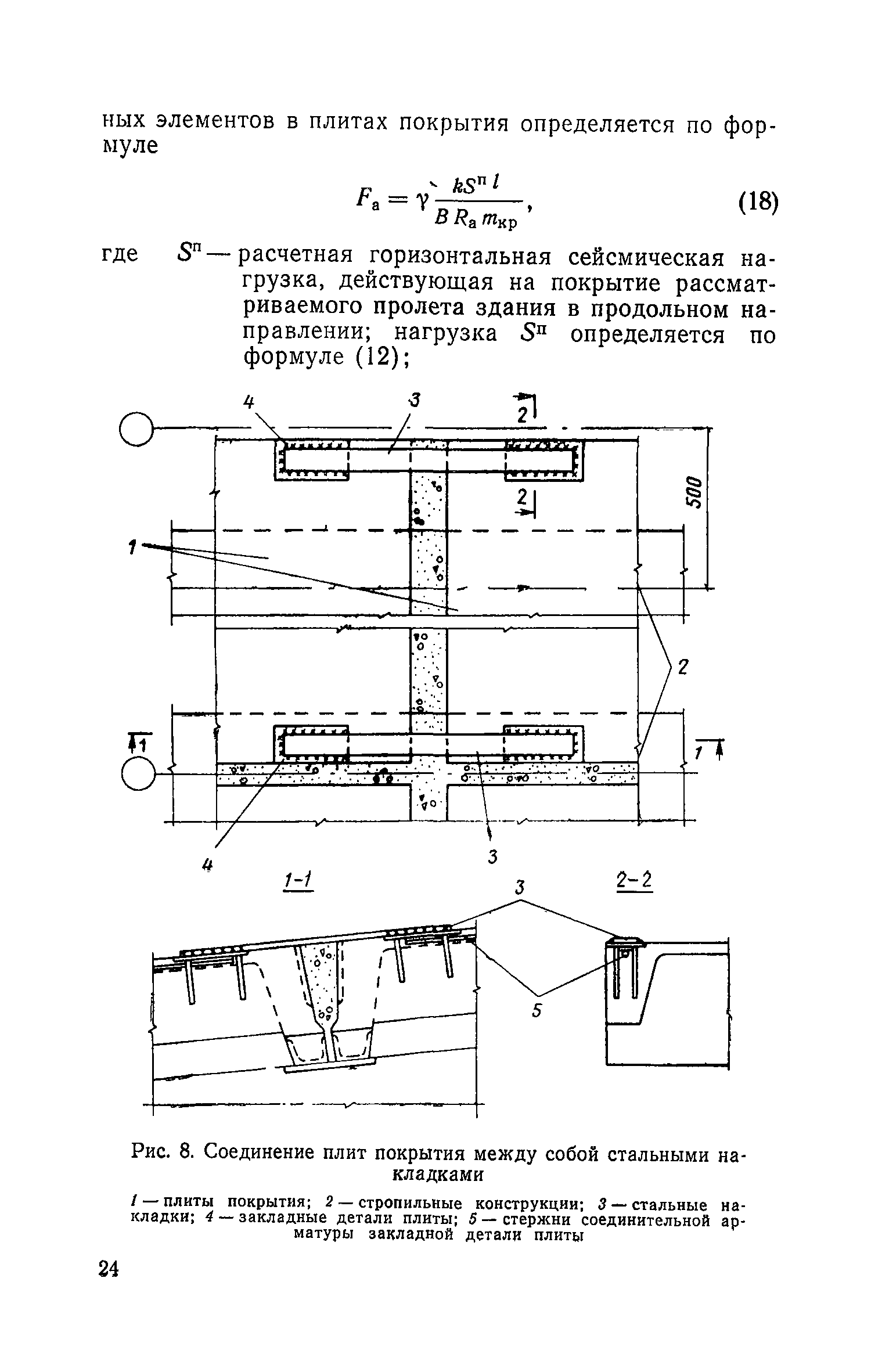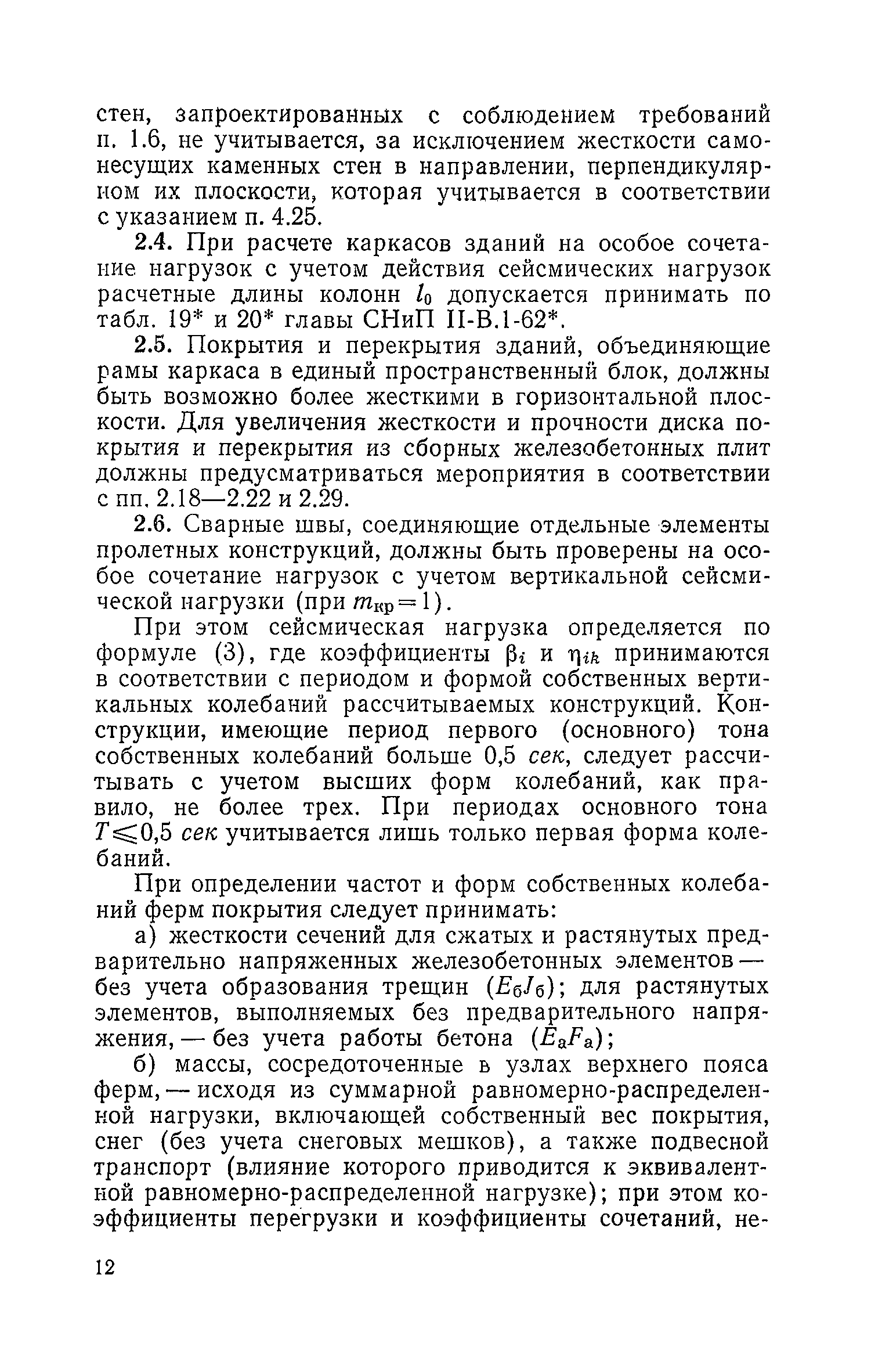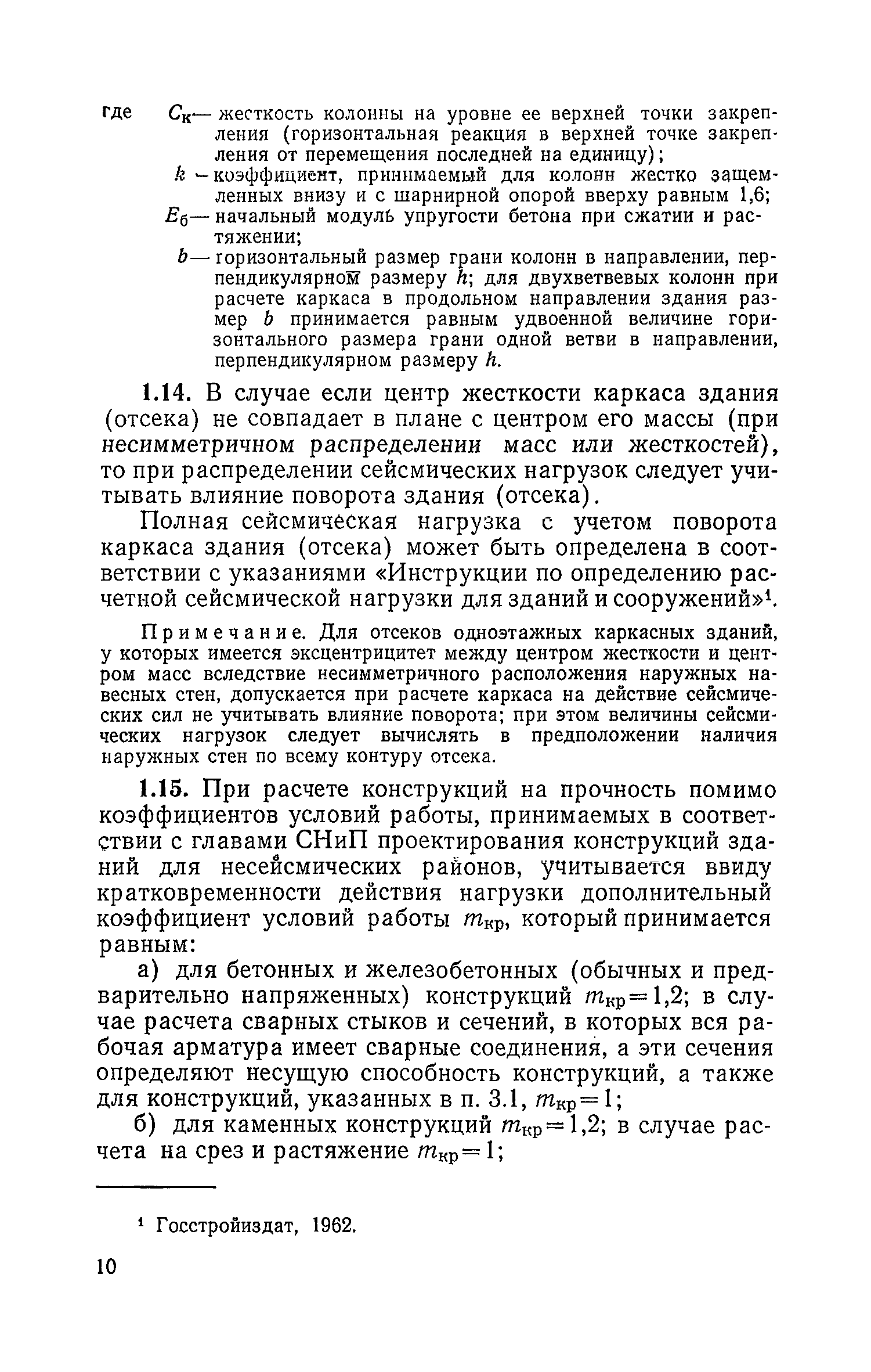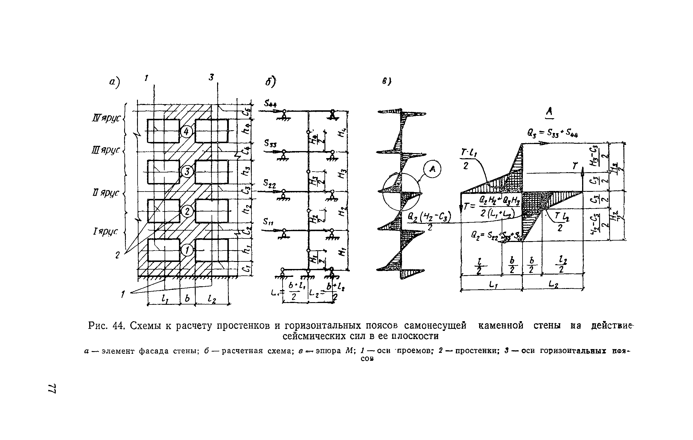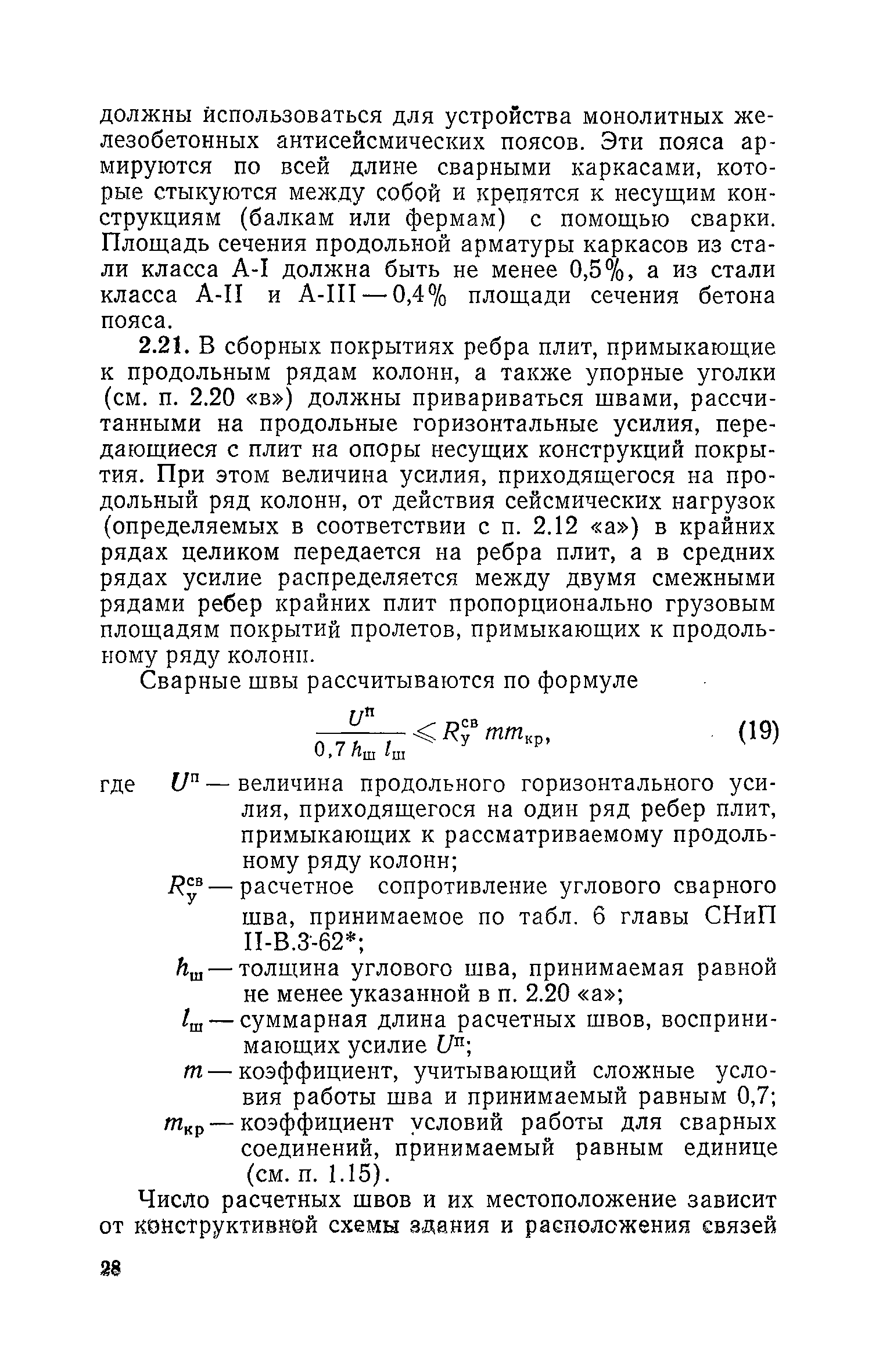 | Оглавление: | 1. Общие положения 2. Железобетонный каркас Каркас одноэтажного здания Каркас многоэтажного здания 3. Фундаменты 4. Наружные стены Панельные стены Каменные стены Приложение. Примеры расчета Пример 1. Определение усилий в каркасе одноэтажного бескранового здания от действия сейсмических нагрузок Пример 2. Определение усилий в каркасе одноэтажного здания, оборудованного мостовыми кранами, от действия сейсмических нагрузок Пример 3. Определение усилий в каркасе многоэтажного здания от действия сейсмических нагрузок Пример 4. Определение сейсмических нагрузок, действующих на каркас многоэтажного здания с учетом его поворота Пример 5. Определение усилий в стержнях железобетонной фермы от действия вертикальных сейсмических нагрузок Пример 6. Расчет жестких узлов рамы многоэтажного здания Пример 7. Расчет самонесущей кирпичной стены |