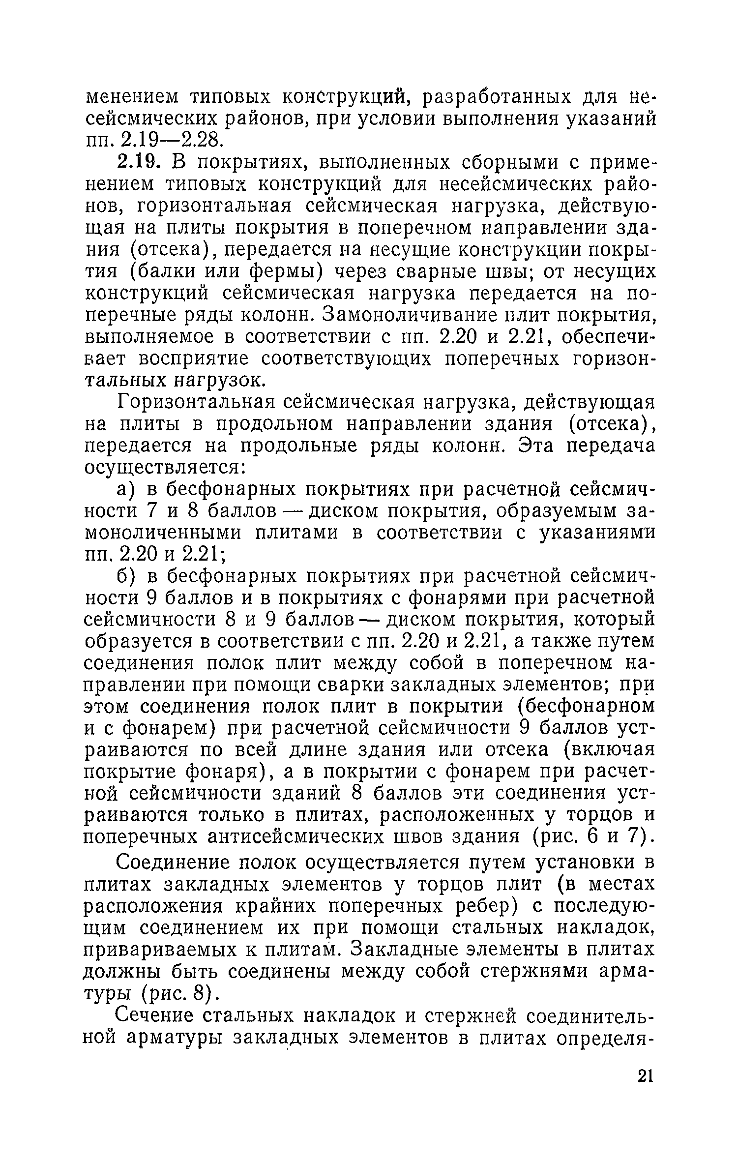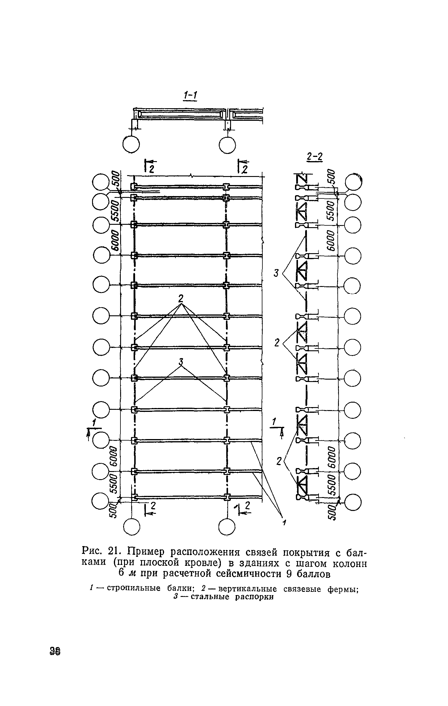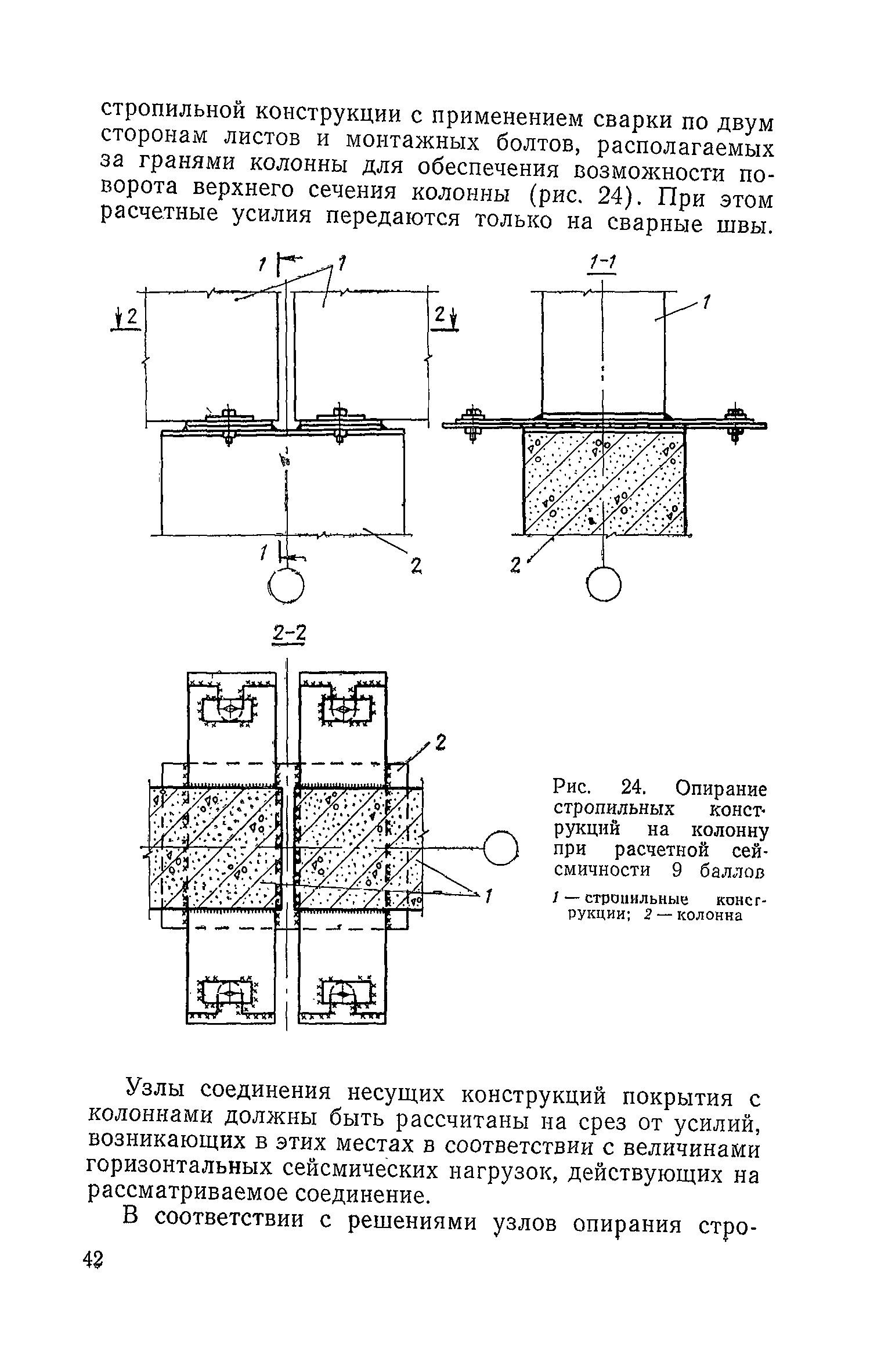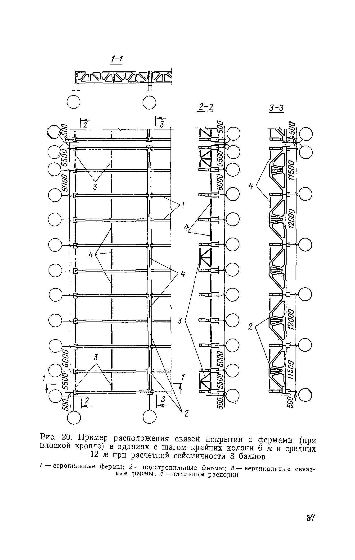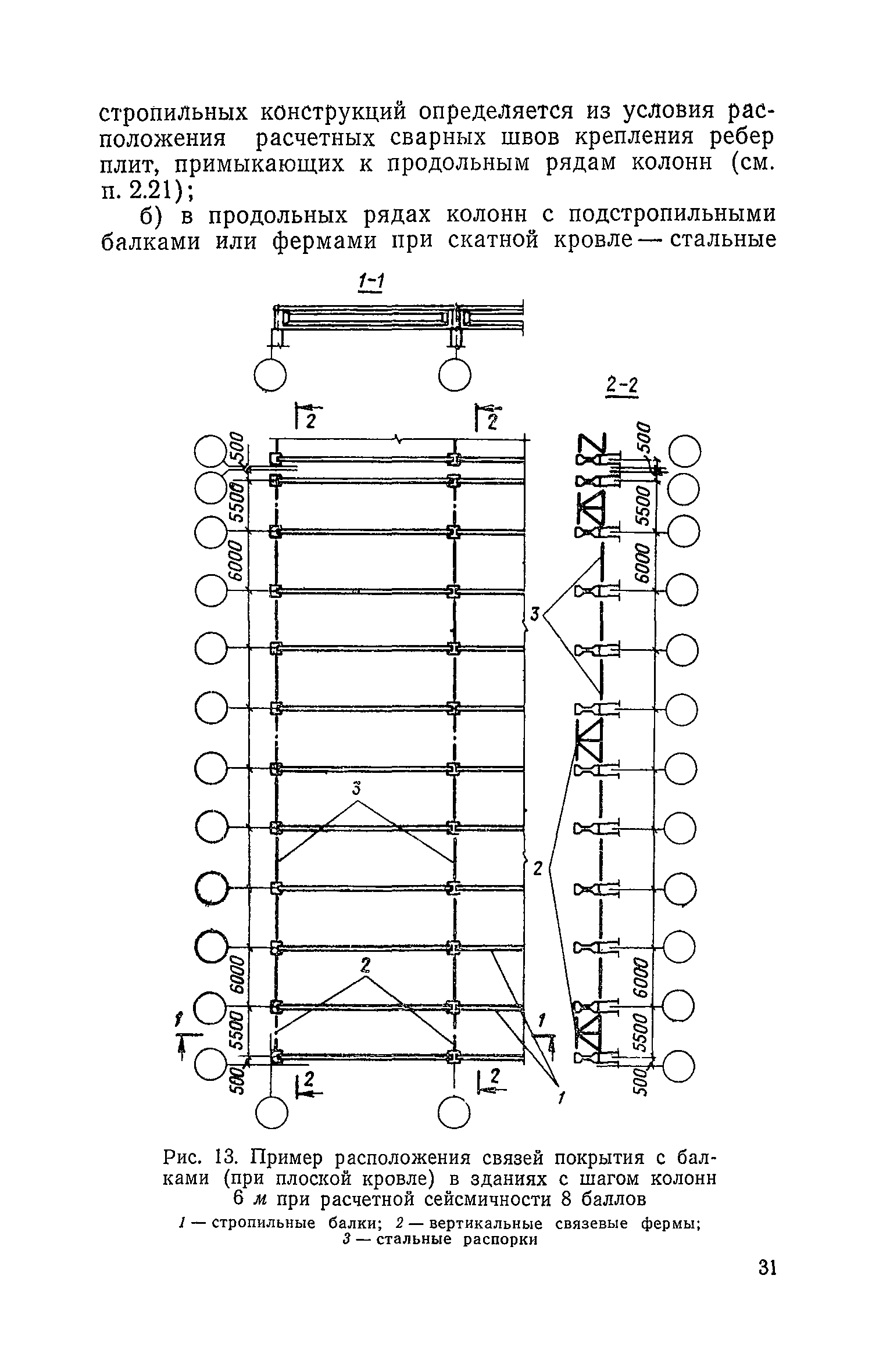 | Оглавление: | 1. Общие положения 2. Железобетонный каркас Каркас одноэтажного здания Каркас многоэтажного здания 3. Фундаменты 4. Наружные стены Панельные стены Каменные стены Приложение. Примеры расчета Пример 1. Определение усилий в каркасе одноэтажного бескранового здания от действия сейсмических нагрузок Пример 2. Определение усилий в каркасе одноэтажного здания, оборудованного мостовыми кранами, от действия сейсмических нагрузок Пример 3. Определение усилий в каркасе многоэтажного здания от действия сейсмических нагрузок Пример 4. Определение сейсмических нагрузок, действующих на каркас многоэтажного здания с учетом его поворота Пример 5. Определение усилий в стержнях железобетонной фермы от действия вертикальных сейсмических нагрузок Пример 6. Расчет жестких узлов рамы многоэтажного здания Пример 7. Расчет самонесущей кирпичной стены |