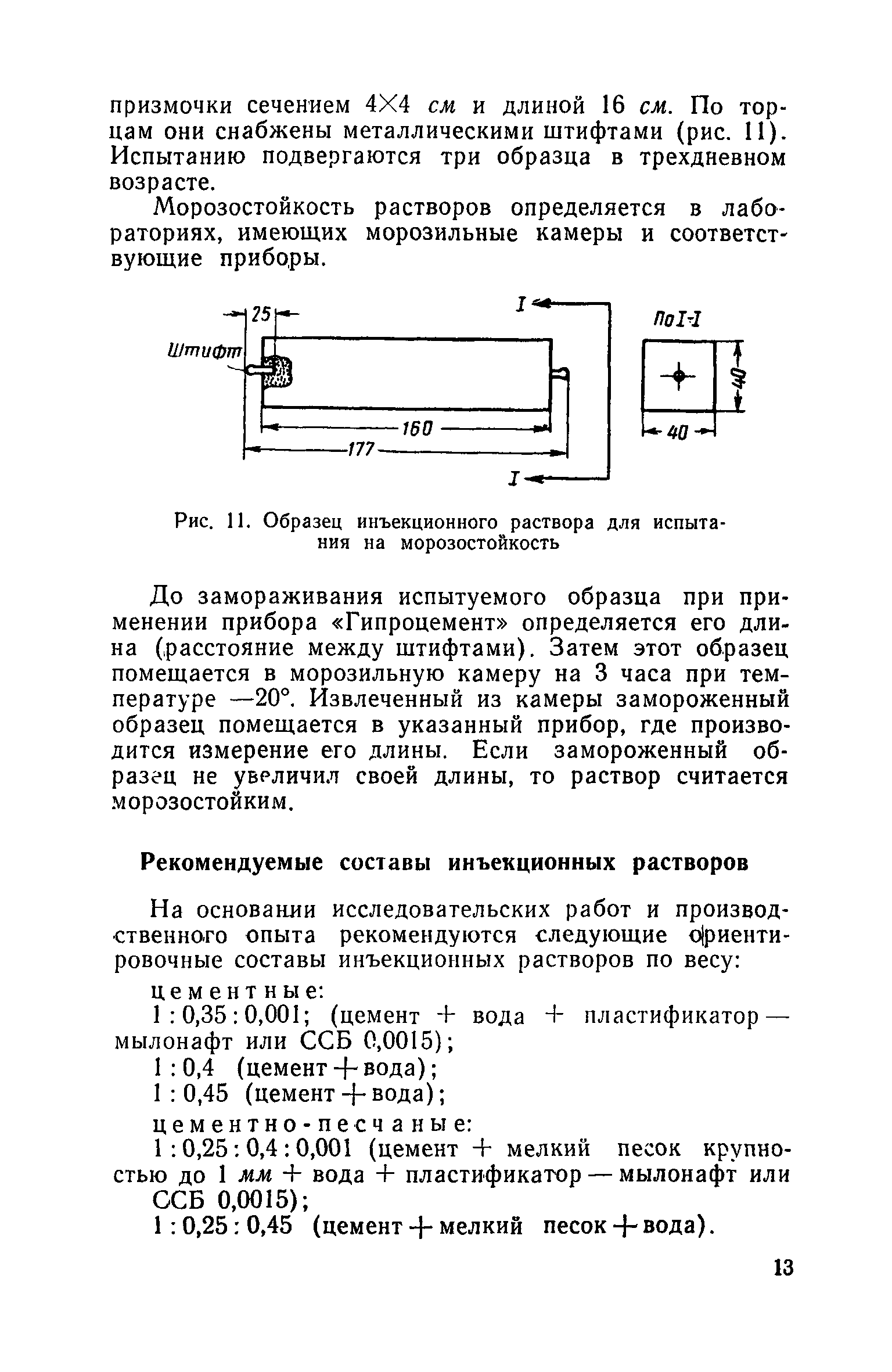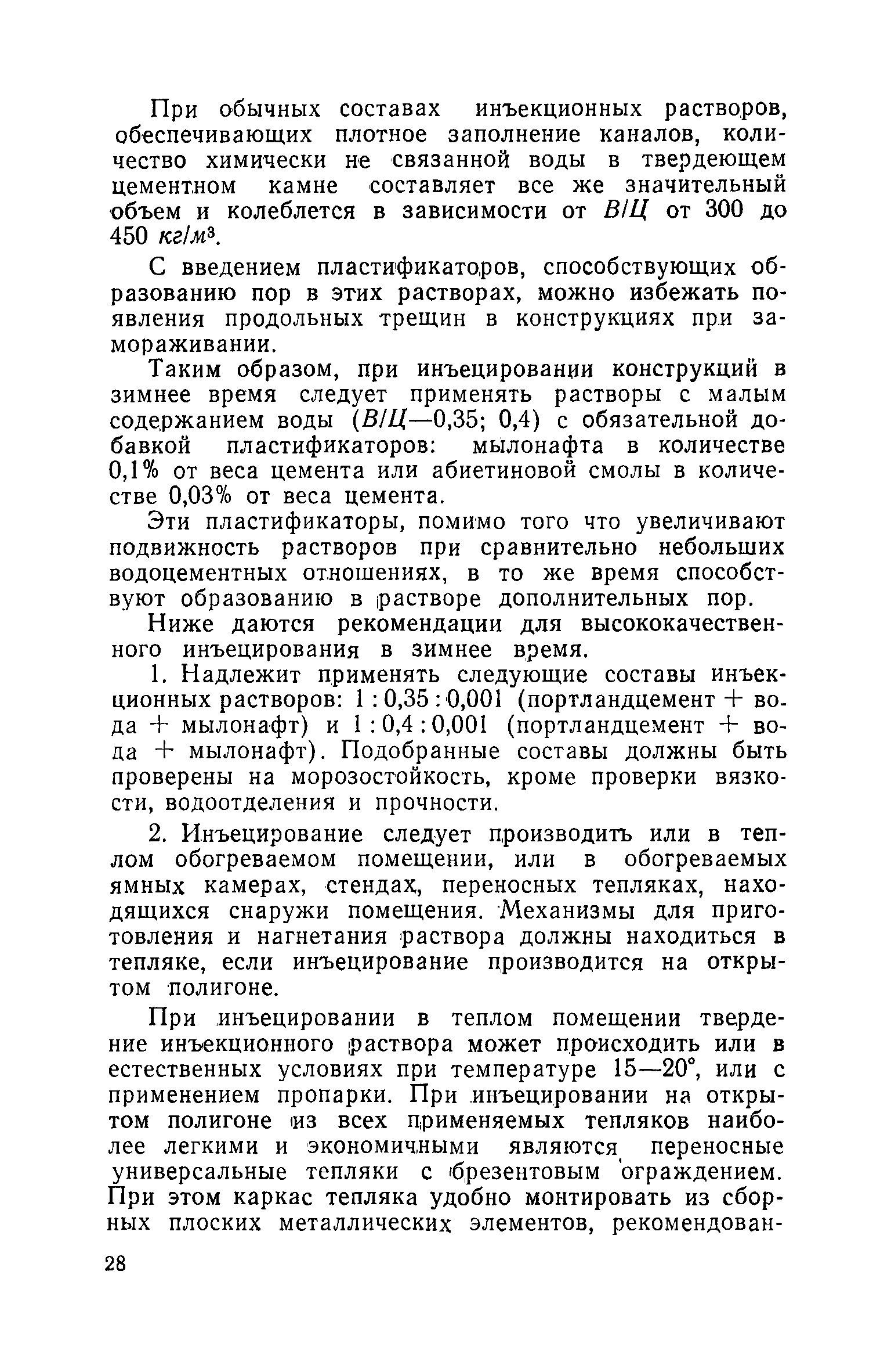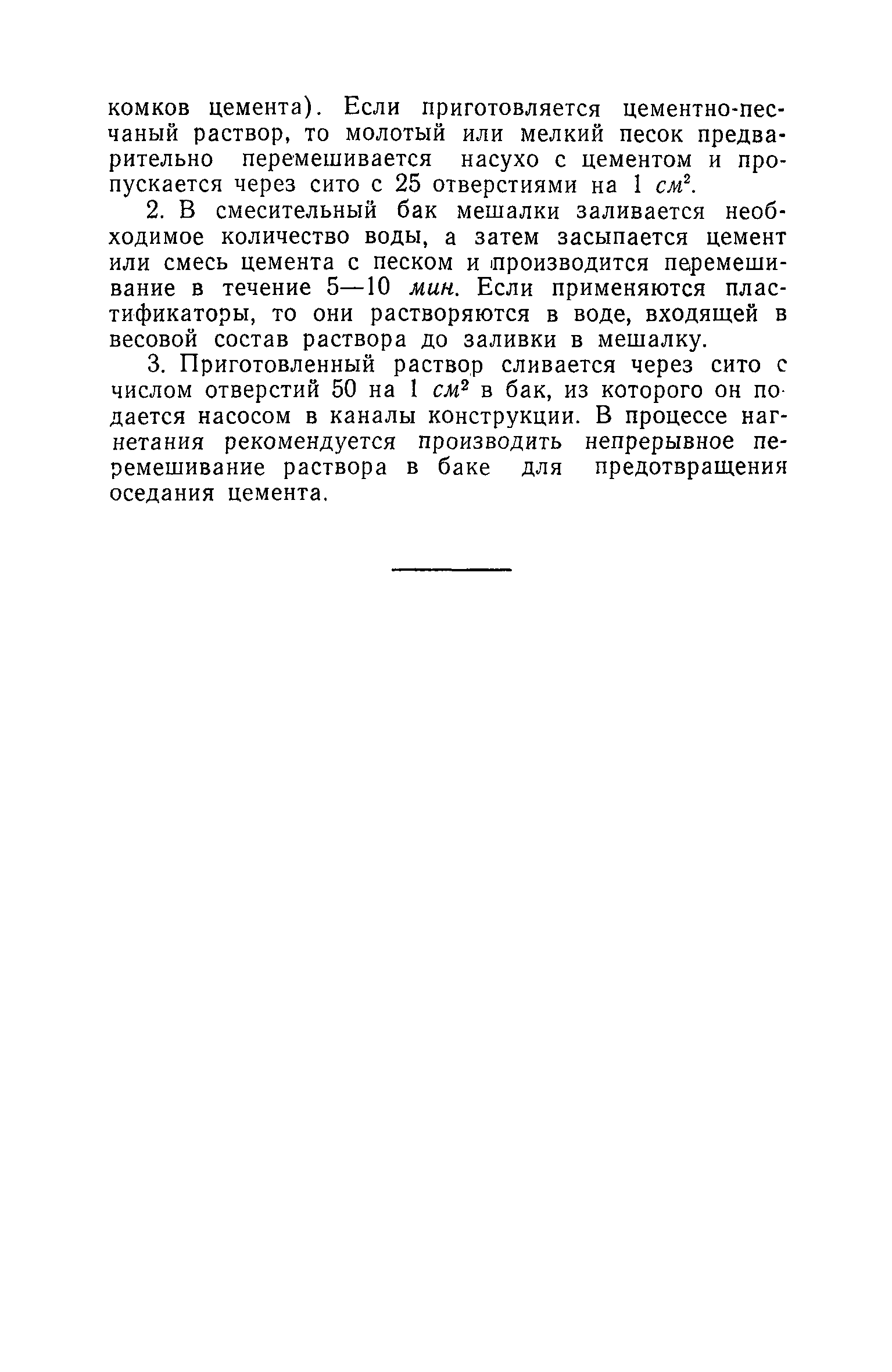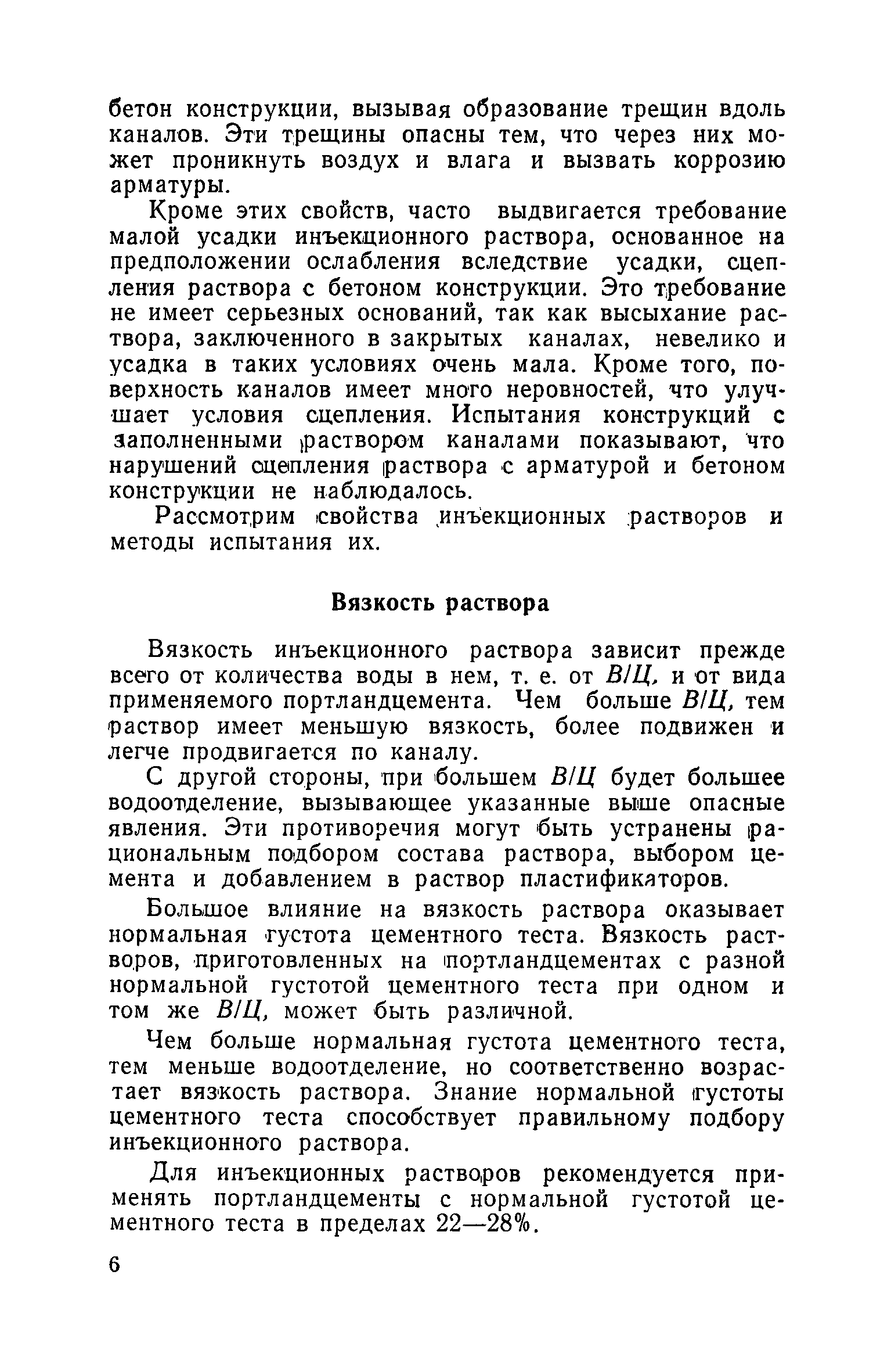 | Оглавление: | Предисловие Глава I. Свойства и составы инъекционных растворов и методы их проверки Вязкость раствора Водоотделение Прочность инъекционного раствора Морозостойкость инъекционного раствора Рекомендуемые составы инъекционных растворов Глава II. Приготовление инъекционного раствора Глава III. Нагнетание раствора в каналы конструкции Особенности инъецирования каналов предварительно напряженных конструкций в зимнее время Приложение 1. Акт на производство работ по инъецированию каналов предварительно напряженных конструкций Приложение 2. Перечень необходимого оборудования для приготовления, испытания и нагнетания инъекционного раствора в каналы предварительно напряженных конструкций |