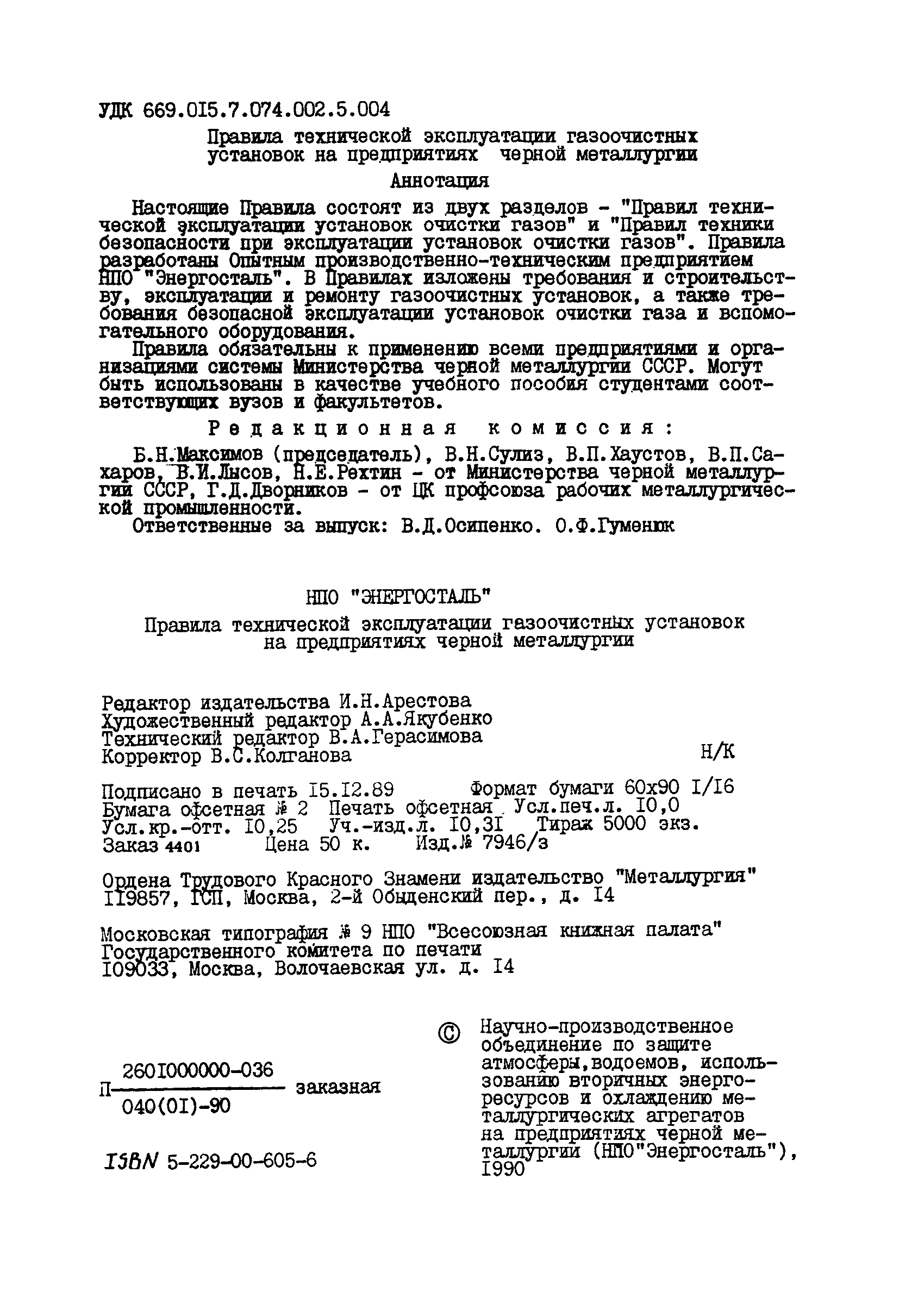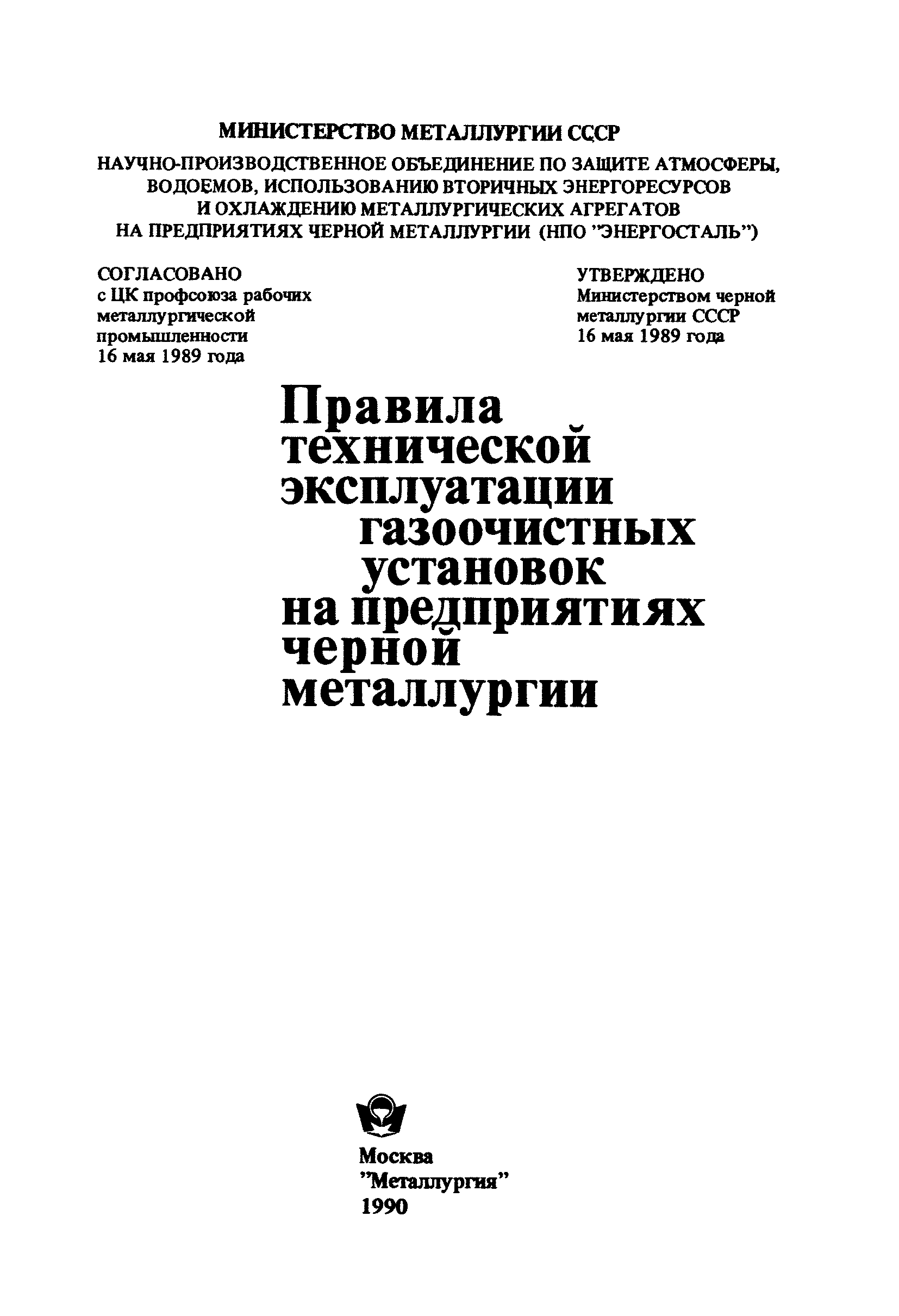 | Название рус.: | Правила технической эксплуатации газоочистных установок на предприятиях черной металлургии |