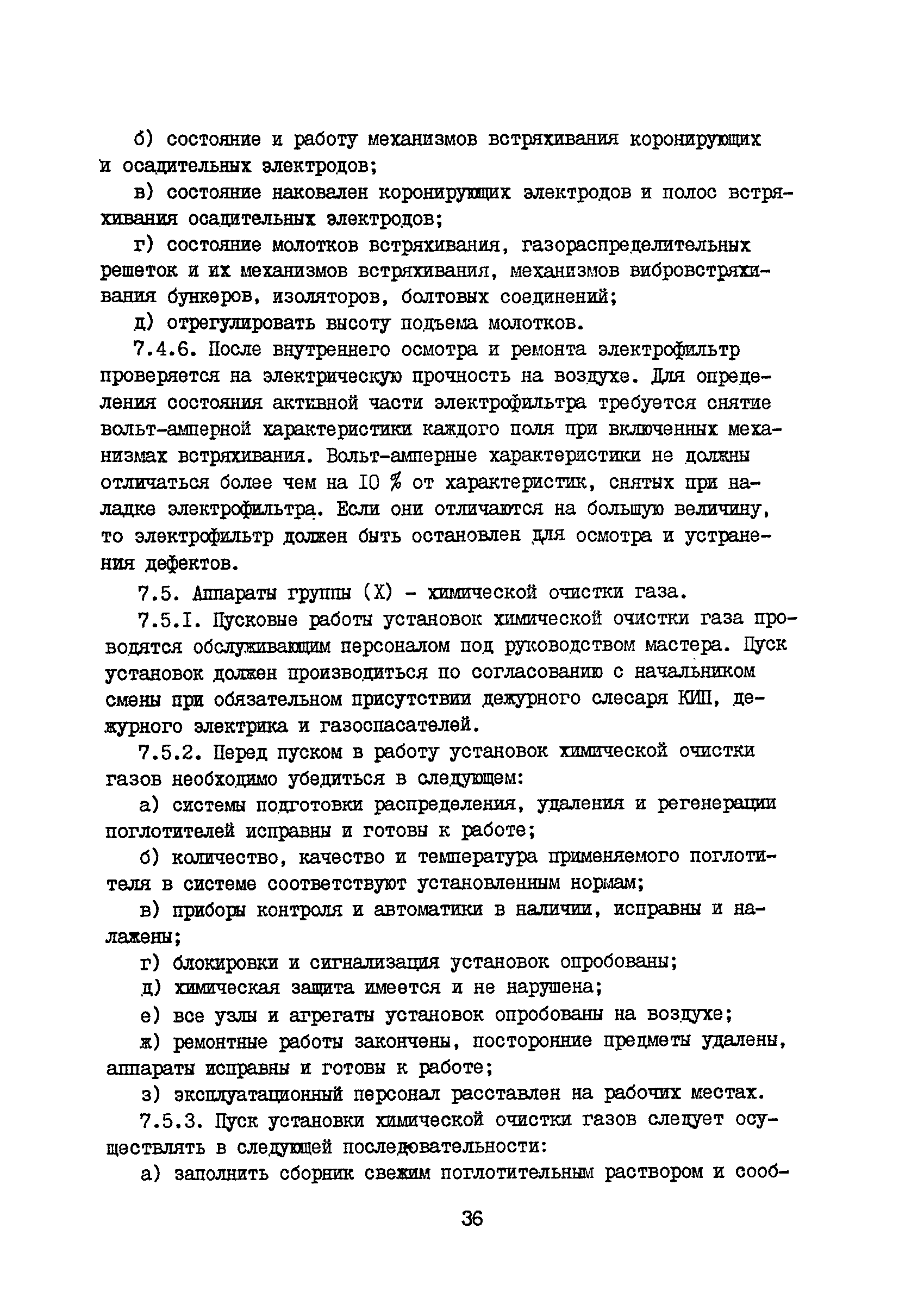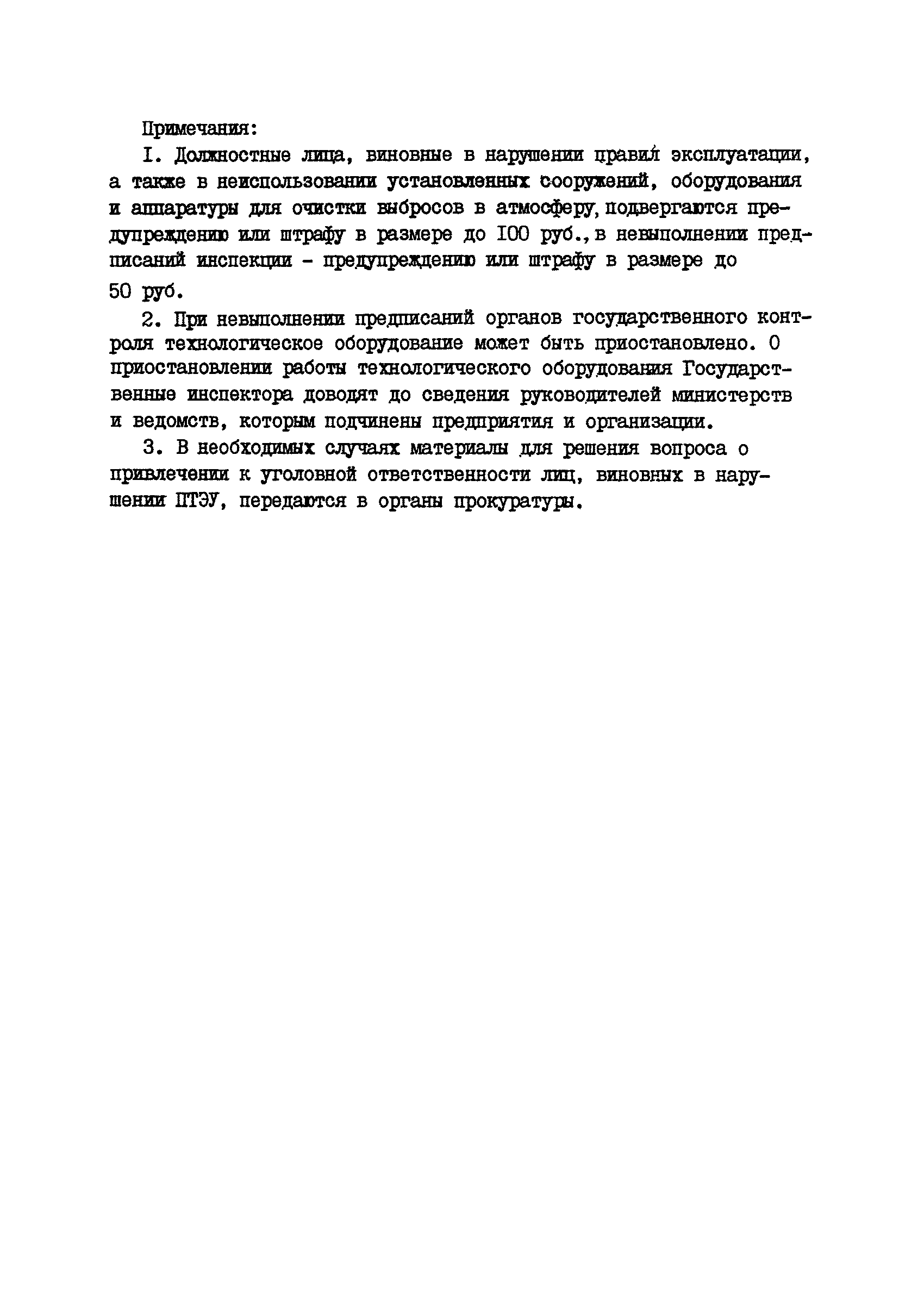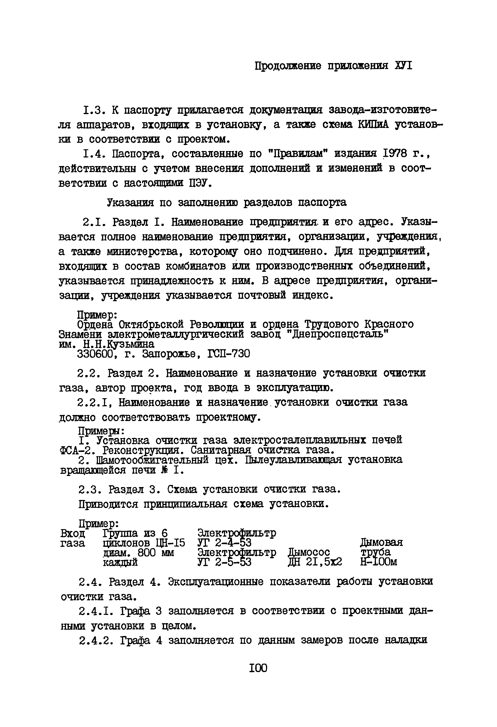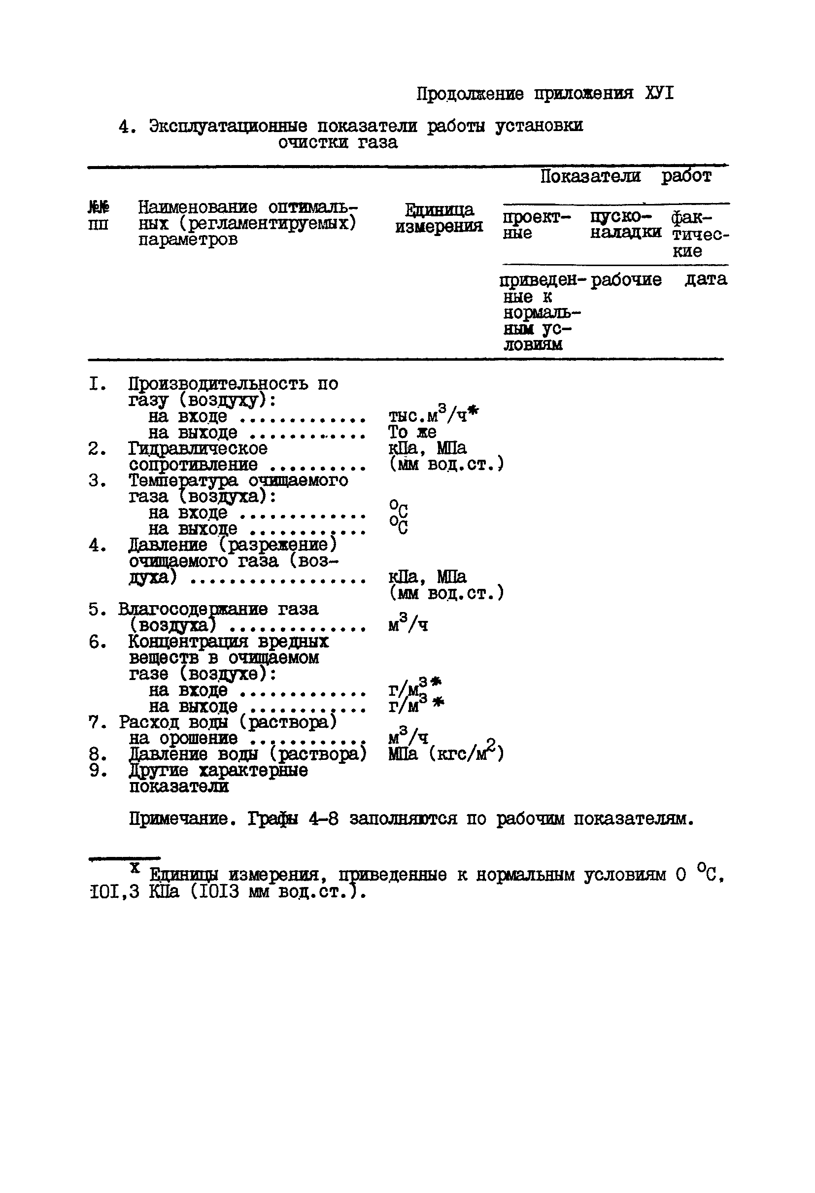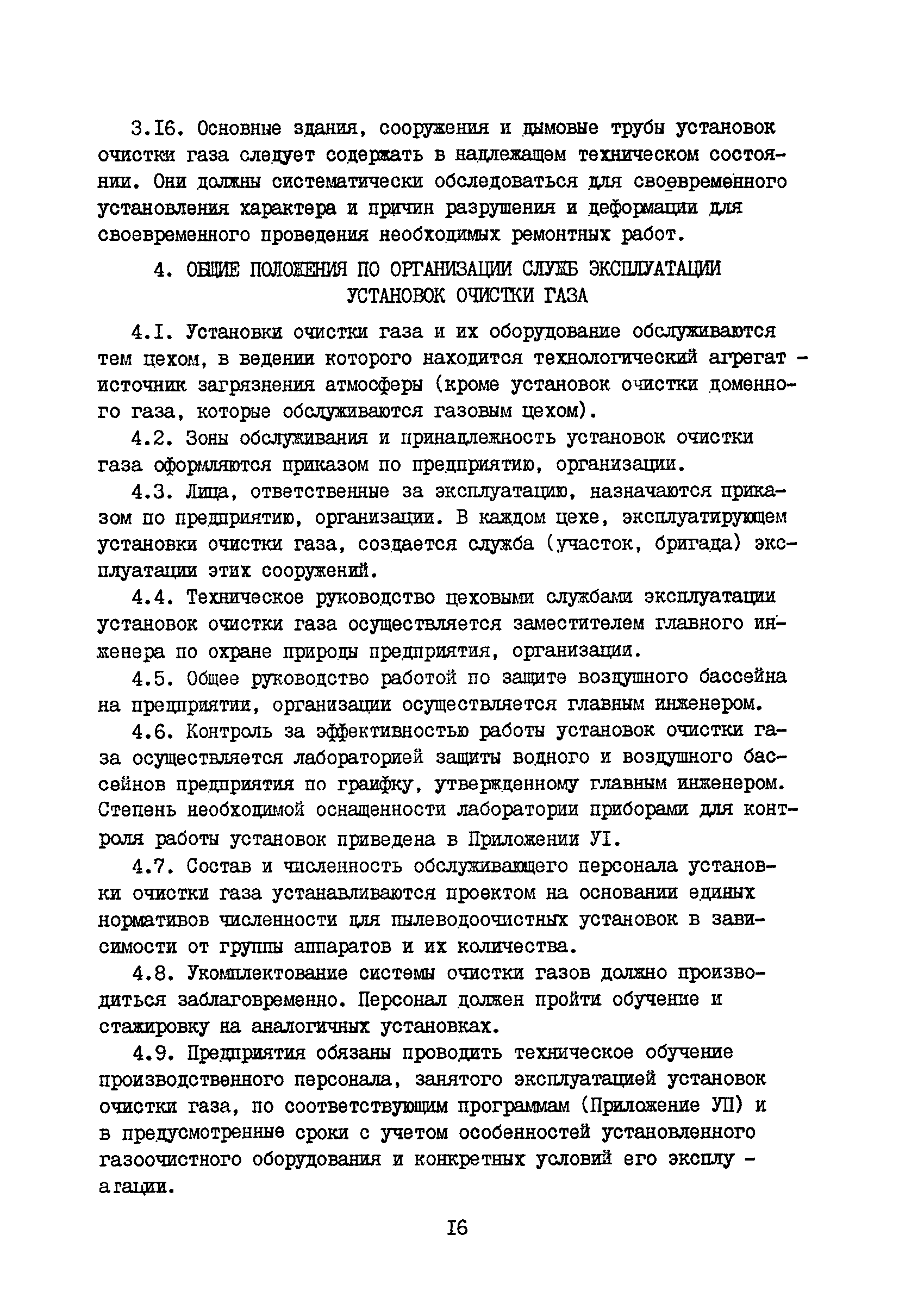| Оглавление: | Предисловие Правила технической эксплуатации установок очистки газа 1. Основные определения 2. Область применения ПТЭУ и общие положения 3. Задачи эксплуатации установок очистки газа 4. Общие положения по организации служб эксплуатации установок очистки газа 5. Основные положения по надзору за проектированием и строительством установок очистки газа, приемке их в эксплуатацию и наладке 6. Общие требования в период эксплуатации установок очистки газа 7. Требования к эксплуатации и обслуживанию установок очистки газа 7.1. Аппараты группы (С) -сухие механические очистки газа 7.2. Аппараты группы (М) — мокрые пылеуловители 7.3. Аппараты группы (Ф) - фильтры 7.4. Аппараты группы (Э) - электрические пылеуловители 7.5. Аппараты группы (Х) - химической очистки газа 7.6. Аппараты группы (Т) — термической и термокаталитической очистки газа 8. Требования к эксплуатации вспомогательных устройств установок очистки газа 8.1. Тяго-дутьевые устройства 8.2. Электродвигатели 8.3. Укрытия 8.4. Газоходы 8.5. Затворы 9. Характерные недостатки в работе установок очистки газа 10. Требования к оснащению установок очистки газа регистрирующими приборами и регулирующими органами 11. Организация ремонта установок очистки газа 12. Организация работы по охране. атмосферного воздуха 13. Регистрация установок очистки газа 14. Ответственность обслуживающего персонала за работу установок очистки газа Приложение I. Предельно допустимые концентрации вредных веществ в воздухе рабочей зоны и в воздухе населенных мест Приложение II. Характеристика технологических выбросов по видам металлургических производств Приложение III. Назначение и предельно допустимые параметры работы некоторых установок очистки газов Приложение IV. Рекомендуемые скорости газа в аппаратах очистки Приложение V. Акт по расследованию аварии Приложение VI. Перечень необходимых приборов для контроля работы установок очистки газа Приложение VII. Примерная программа по подготовке на производстве операторов по обслуживанию установок очистки газа Приложение VIII. Краткая инструкция по определению запыленности газов при испытаниях установок очистки газа Приложение IХ. Технические характеристики вентиляционных агрегатов с центробежными вентиляторами типа ЦП 7-40 Приложение Х. Техническая характеристика вентиляторов типа ВМ Приложение ХI. Основные технические характеристики дымососов ДН Приложение ХII. Техническая характеристика высокотемпературных вентиляторов и дымососов типа ВГДН и ГД Приложение ХIII. Основные технические характеристики вентиляторов ВДН Приложение ХIV. Техническая характеристика агрегатов питания типа АТФ Приложение ХV. Техническая характеристика агрегатов питания типа АТПОМ Приложение ХVI. Паспорт установки очистки газа Правила техники безопасности при эксплуатации установок очистки газа 1. Общие положения 2. Требования к персоналу, обслуживающему установки очистки газа 3. Допуск персонала к обслуживанию установок очистки газа 4. Общие требования техники безопасности для установок очистки газа 5. Требования безопасности при проведении внутреннего осмотра и работы внутри аппаратов установок очистки газа 6. Особенности техники безопасности при обслуживании и ремонте электрофильтров Приложение I. Нормы и сроки испытаний подъемных механизмов и приспособлений Приложение II. 