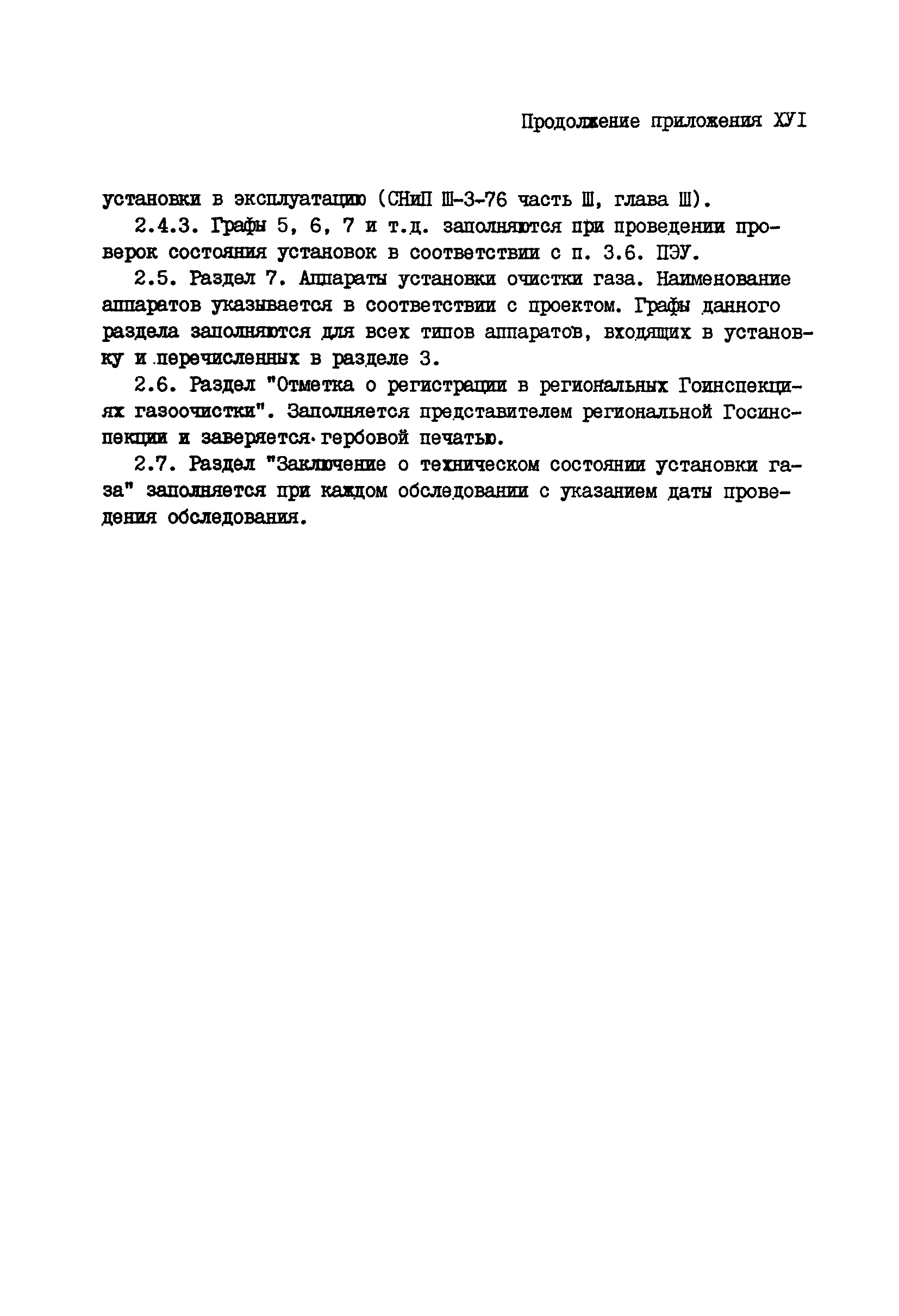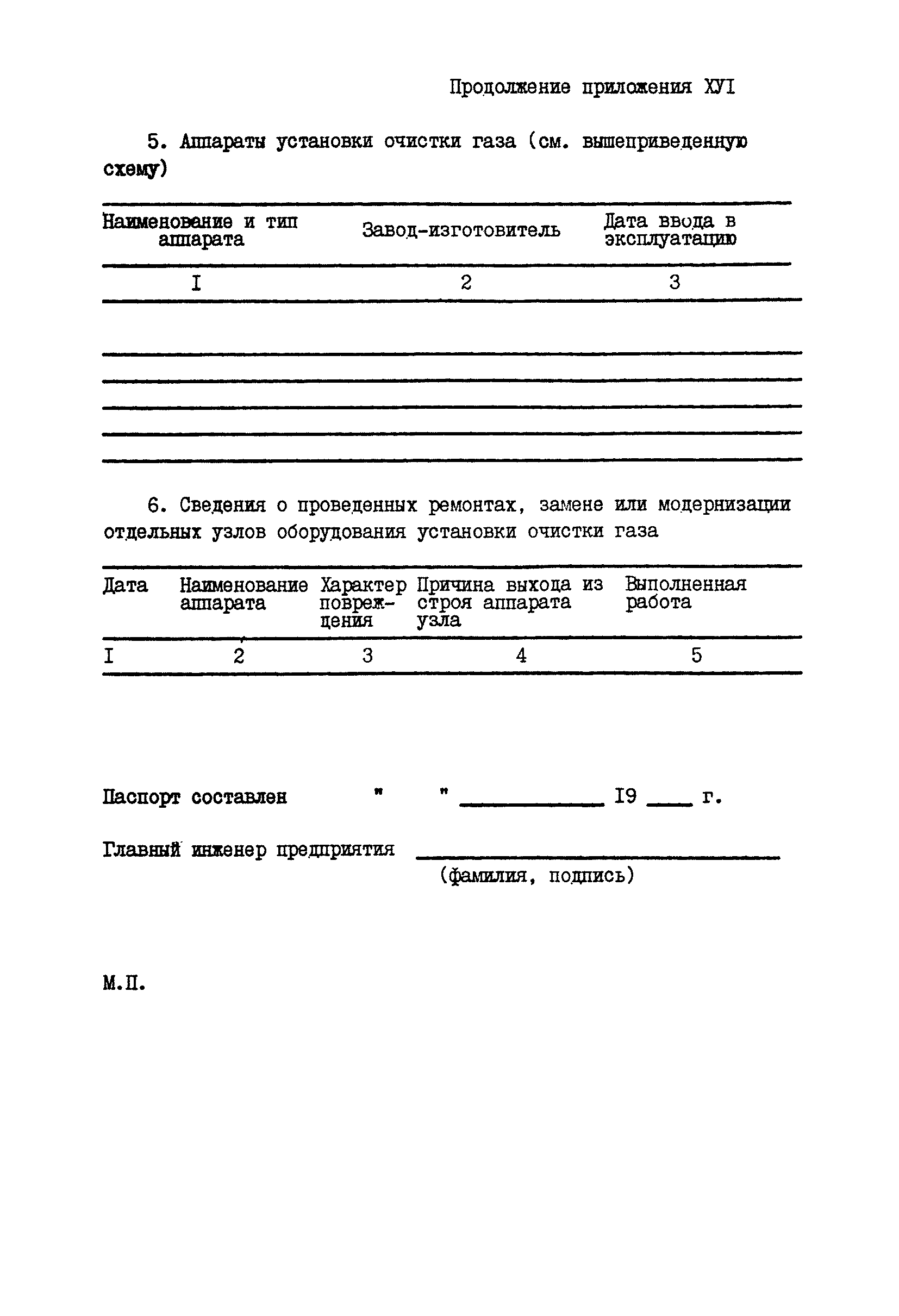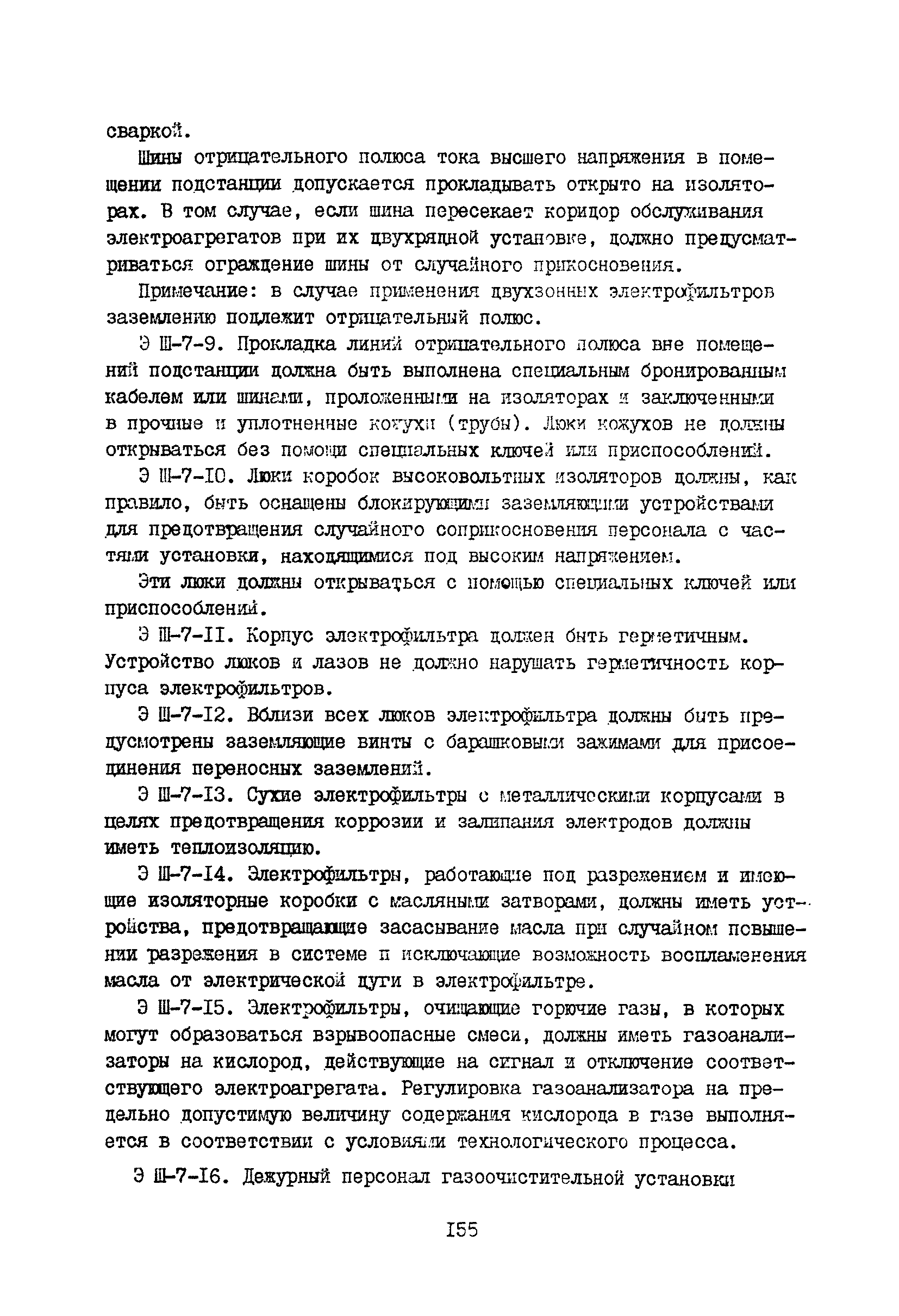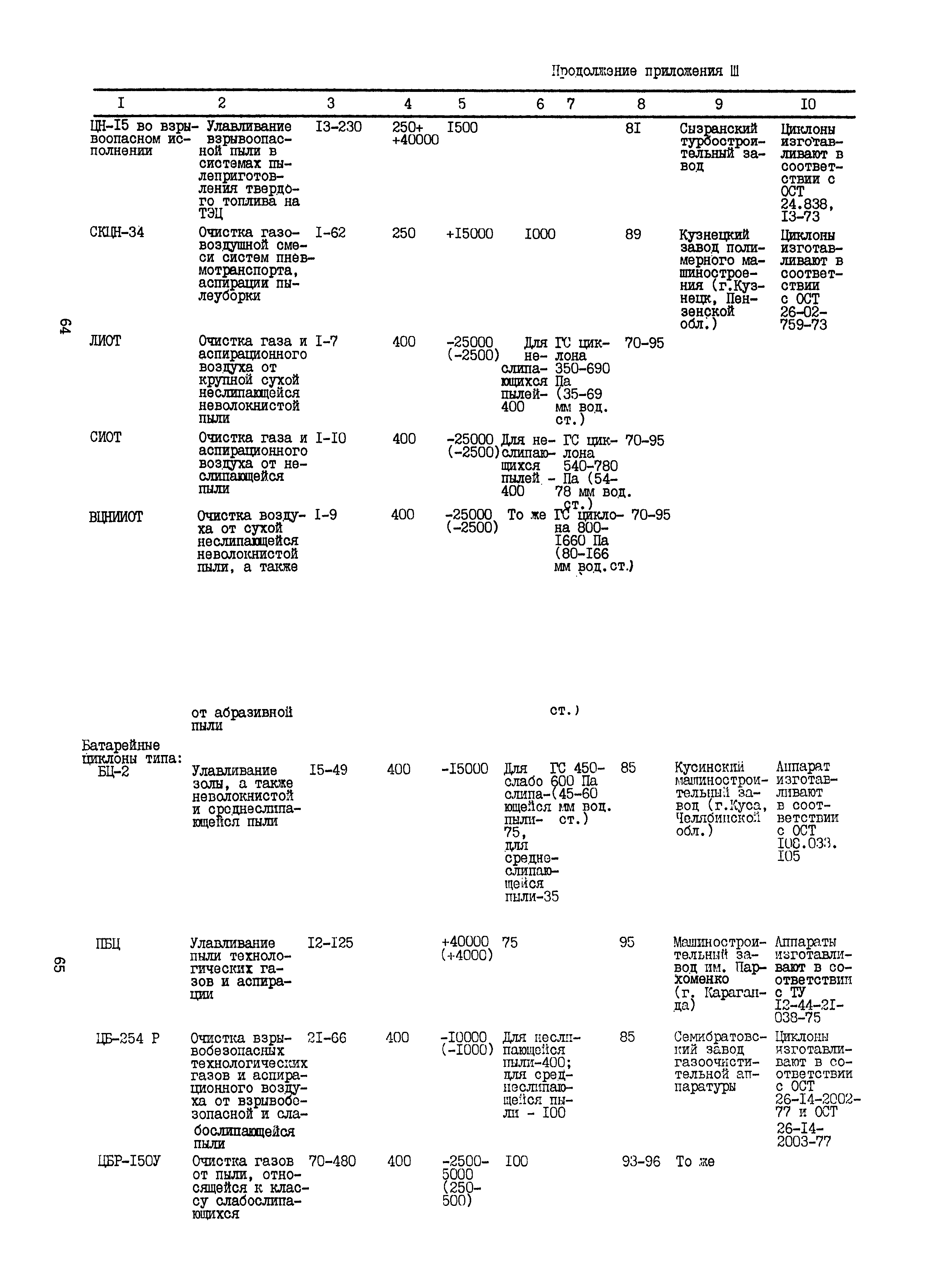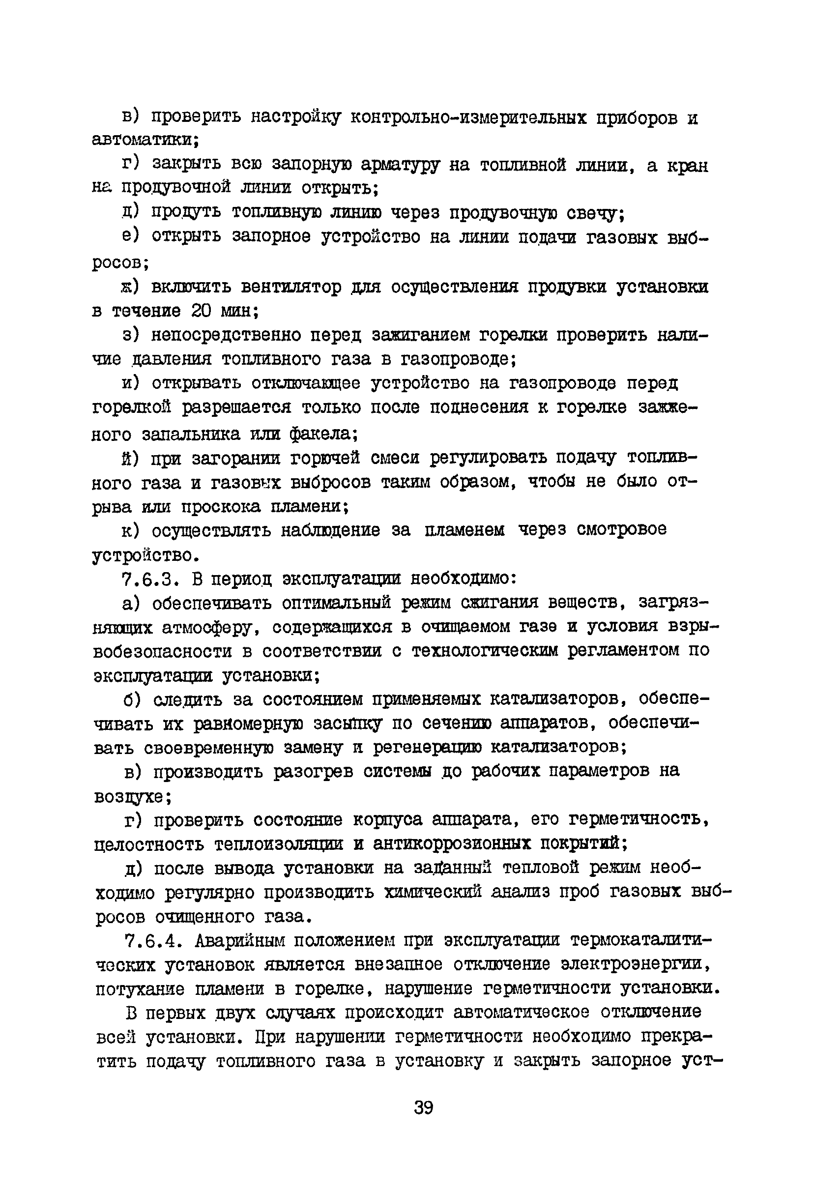 | Оглавление: | Предисловие Правила технической эксплуатации установок очистки газа 1. Основные определения 2. Область применения ПТЭУ и общие положения 3. Задачи эксплуатации установок очистки газа 4. Общие положения по организации служб эксплуатации установок очистки газа 5. Основные положения по надзору за проектированием и строительством установок очистки газа, приемке их в эксплуатацию и наладке 6. Общие требования в период эксплуатации установок очистки газа 7. Требования к эксплуатации и обслуживанию установок очистки газа 7.1. Аппараты группы (С) -сухие механические очистки газа 7.2. Аппараты группы (М) — мокрые пылеуловители 7.3. Аппараты группы (Ф) - фильтры 7.4. Аппараты группы (Э) - электрические пылеуловители 7.5. Аппараты группы (Х) - химической очистки газа 7.6. Аппараты группы (Т) — термической и термокаталитической очистки газа 8. Требования к эксплуатации вспомогательных устройств установок очистки газа 8.1. Тяго-дутьевые устройства 8.2. Электродвигатели 8.3. Укрытия 8.4. Газоходы 8.5. Затворы 9. Характерные недостатки в работе установок очистки газа 10. Требования к оснащению установок очистки газа регистрирующими приборами и регулирующими органами 11. Организация ремонта установок очистки газа 12. Организация работы по охране. атмосферного воздуха 13. Регистрация установок очистки газа 14. Ответственность обслуживающего персонала за работу установок очистки газа Приложение I. Предельно допустимые концентрации вредных веществ в воздухе рабочей зоны и в воздухе населенных мест Приложение II. Характеристика технологических выбросов по видам металлургических производств Приложение III. Назначение и предельно допустимые параметры работы некоторых установок очистки газов Приложение IV. Рекомендуемые скорости газа в аппаратах очистки Приложение V. Акт по расследованию аварии Приложение VI. Перечень необходимых приборов для контроля работы установок очистки газа Приложение VII. Примерная программа по подготовке на производстве операторов по обслуживанию установок очистки газа Приложение VIII. Краткая инструкция по определению запыленности газов при испытаниях установок очистки газа Приложение IХ. Технические характеристики вентиляционных агрегатов с центробежными вентиляторами типа ЦП 7-40 Приложение Х. Техническая характеристика вентиляторов типа ВМ Приложение ХI. Основные технические характеристики дымососов ДН Приложение ХII. Техническая характеристика высокотемпературных вентиляторов и дымососов типа ВГДН и ГД Приложение ХIII. Основные технические характеристики вентиляторов ВДН Приложение ХIV. Техническая характеристика агрегатов питания типа АТФ Приложение ХV. Техническая характеристика агрегатов питания типа АТПОМ Приложение ХVI. Паспорт установки очистки газа Правила техники безопасности при эксплуатации установок очистки газа 1. Общие положения 2. Требования к персоналу, обслуживающему установки очистки газа 3. Допуск персонала к обслуживанию установок очистки газа 4. Общие требования техники безопасности для установок очистки газа 5. Требования безопасности при проведении внутреннего осмотра и работы внутри аппаратов установок очистки газа 6. Особенности техники безопасности при обслуживании и ремонте электрофильтров Приложение I. Нормы и сроки испытаний подъемных механизмов и приспособлений Приложение II. 