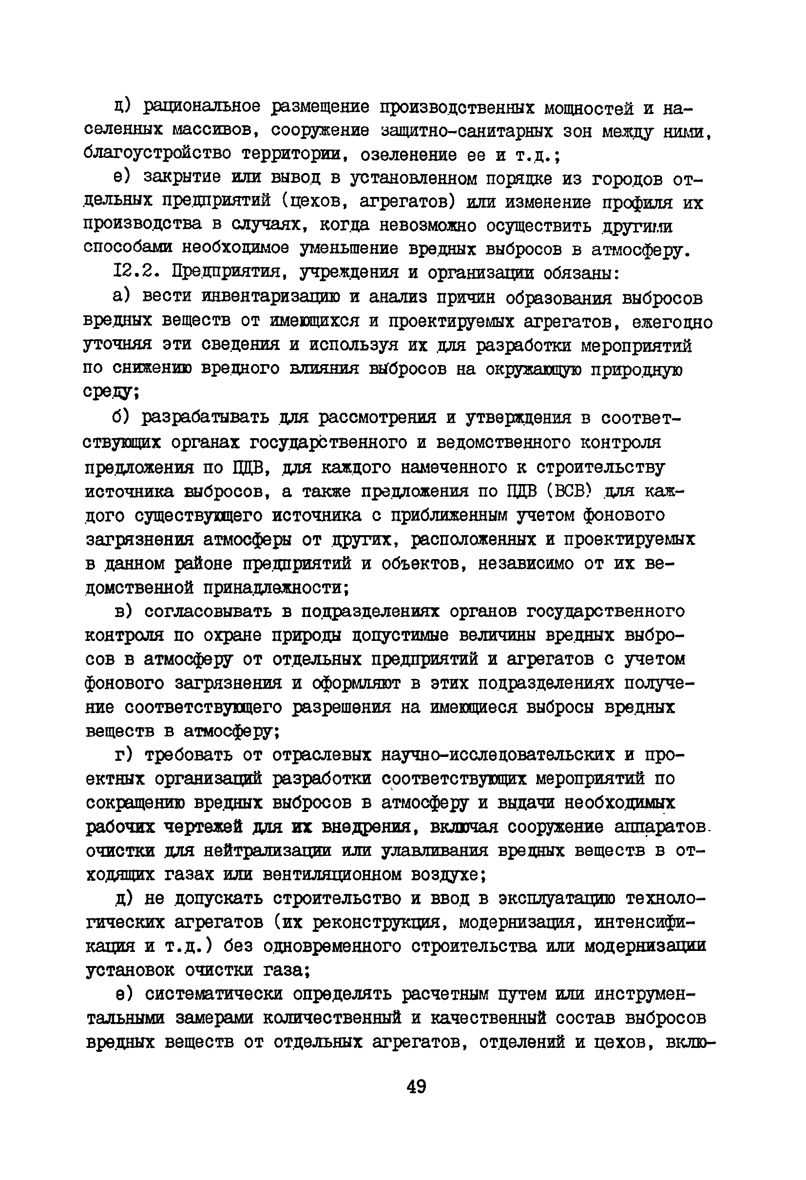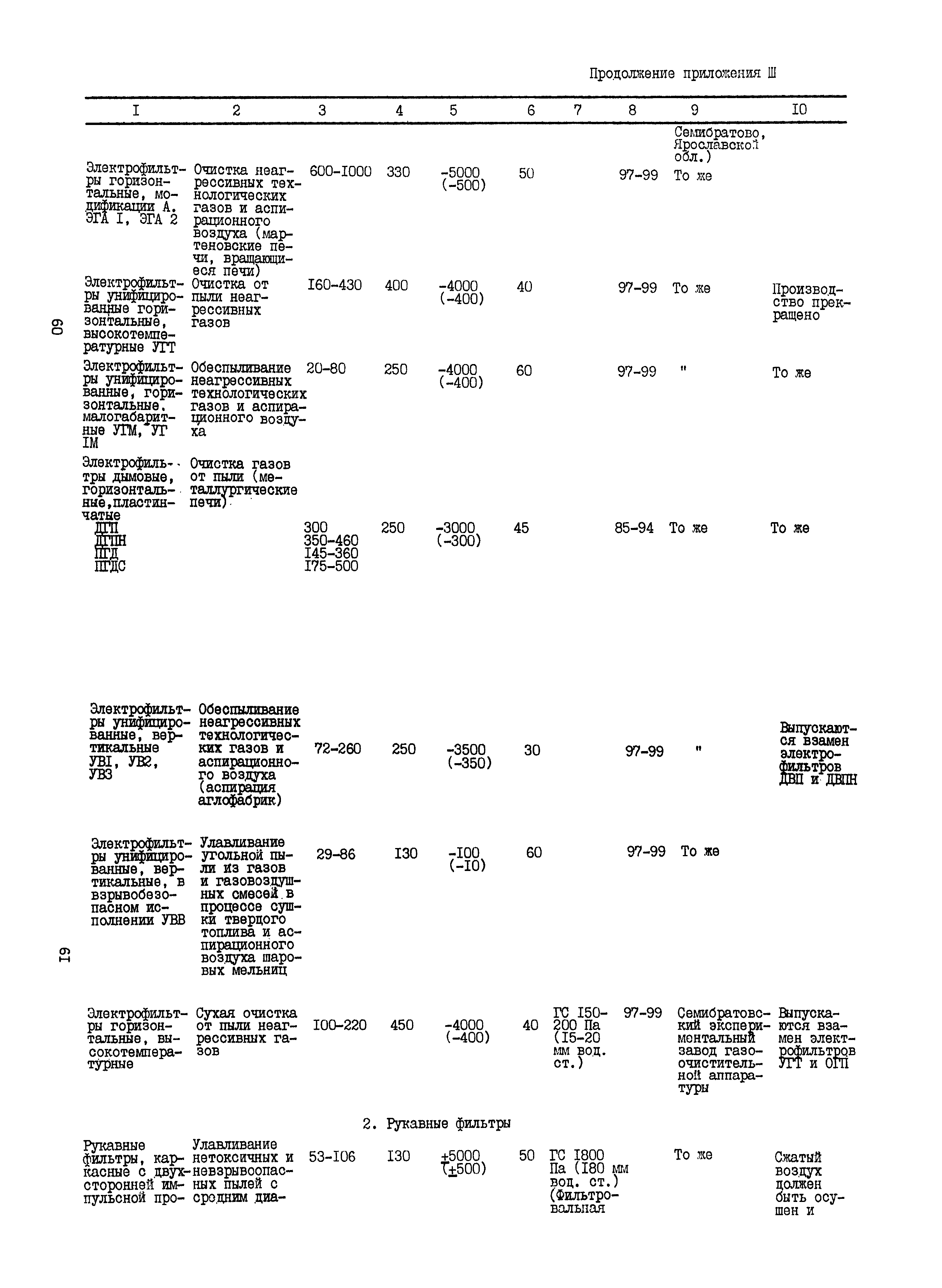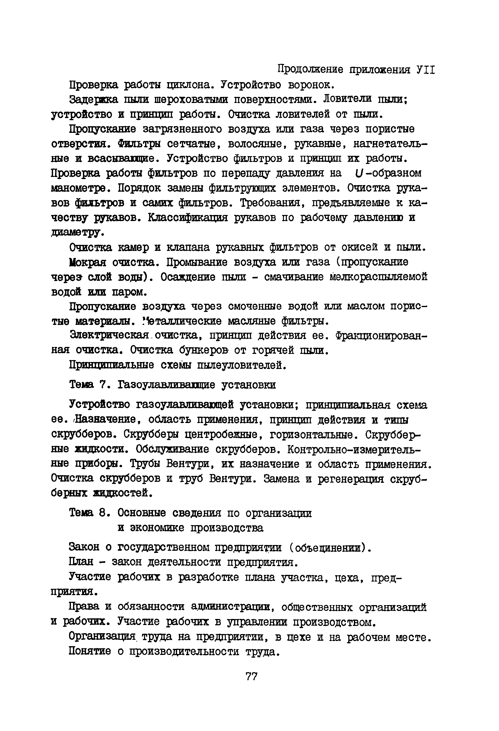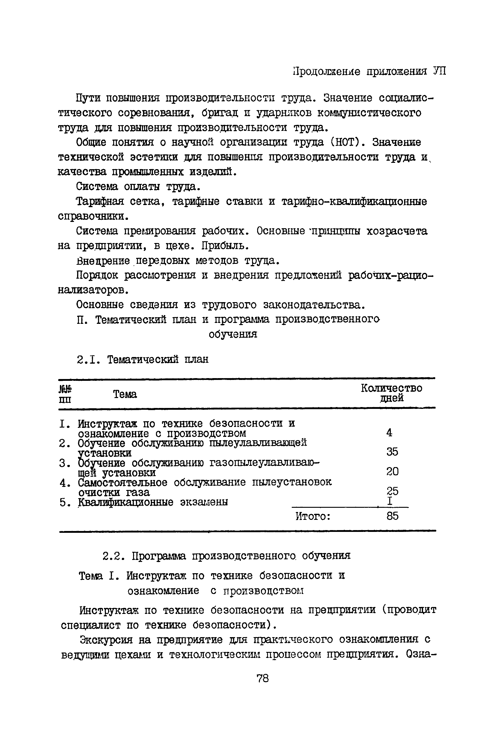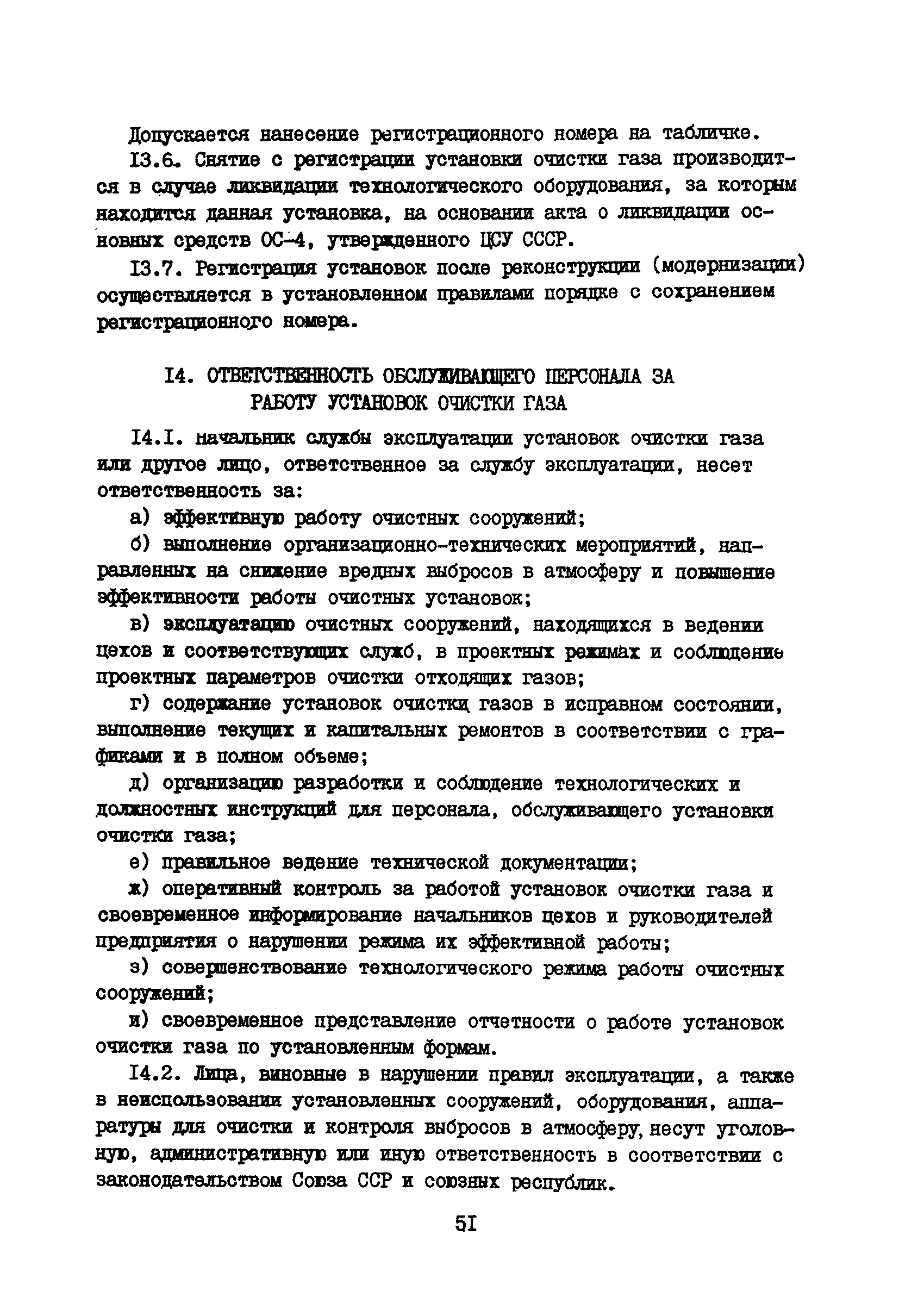 | Оглавление: | Предисловие Правила технической эксплуатации установок очистки газа 1. Основные определения 2. Область применения ПТЭУ и общие положения 3. Задачи эксплуатации установок очистки газа 4. Общие положения по организации служб эксплуатации установок очистки газа 5. Основные положения по надзору за проектированием и строительством установок очистки газа, приемке их в эксплуатацию и наладке 6. Общие требования в период эксплуатации установок очистки газа 7. Требования к эксплуатации и обслуживанию установок очистки газа 7.1. Аппараты группы (С) -сухие механические очистки газа 7.2. Аппараты группы (М) — мокрые пылеуловители 7.3. Аппараты группы (Ф) - фильтры 7.4. Аппараты группы (Э) - электрические пылеуловители 7.5. Аппараты группы (Х) - химической очистки газа 7.6. Аппараты группы (Т) — термической и термокаталитической очистки газа 8. Требования к эксплуатации вспомогательных устройств установок очистки газа 8.1. Тяго-дутьевые устройства 8.2. Электродвигатели 8.3. Укрытия 8.4. Газоходы 8.5. Затворы 9. Характерные недостатки в работе установок очистки газа 10. Требования к оснащению установок очистки газа регистрирующими приборами и регулирующими органами 11. Организация ремонта установок очистки газа 12. Организация работы по охране. атмосферного воздуха 13. Регистрация установок очистки газа 14. Ответственность обслуживающего персонала за работу установок очистки газа Приложение I. Предельно допустимые концентрации вредных веществ в воздухе рабочей зоны и в воздухе населенных мест Приложение II. Характеристика технологических выбросов по видам металлургических производств Приложение III. Назначение и предельно допустимые параметры работы некоторых установок очистки газов Приложение IV. Рекомендуемые скорости газа в аппаратах очистки Приложение V. Акт по расследованию аварии Приложение VI. Перечень необходимых приборов для контроля работы установок очистки газа Приложение VII. Примерная программа по подготовке на производстве операторов по обслуживанию установок очистки газа Приложение VIII. Краткая инструкция по определению запыленности газов при испытаниях установок очистки газа Приложение IХ. Технические характеристики вентиляционных агрегатов с центробежными вентиляторами типа ЦП 7-40 Приложение Х. Техническая характеристика вентиляторов типа ВМ Приложение ХI. Основные технические характеристики дымососов ДН Приложение ХII. Техническая характеристика высокотемпературных вентиляторов и дымососов типа ВГДН и ГД Приложение ХIII. Основные технические характеристики вентиляторов ВДН Приложение ХIV. Техническая характеристика агрегатов питания типа АТФ Приложение ХV. Техническая характеристика агрегатов питания типа АТПОМ Приложение ХVI. Паспорт установки очистки газа Правила техники безопасности при эксплуатации установок очистки газа 1. Общие положения 2. Требования к персоналу, обслуживающему установки очистки газа 3. Допуск персонала к обслуживанию установок очистки газа 4. Общие требования техники безопасности для установок очистки газа 5. Требования безопасности при проведении внутреннего осмотра и работы внутри аппаратов установок очистки газа 6. Особенности техники безопасности при обслуживании и ремонте электрофильтров Приложение I. Нормы и сроки испытаний подъемных механизмов и приспособлений Приложение II. 