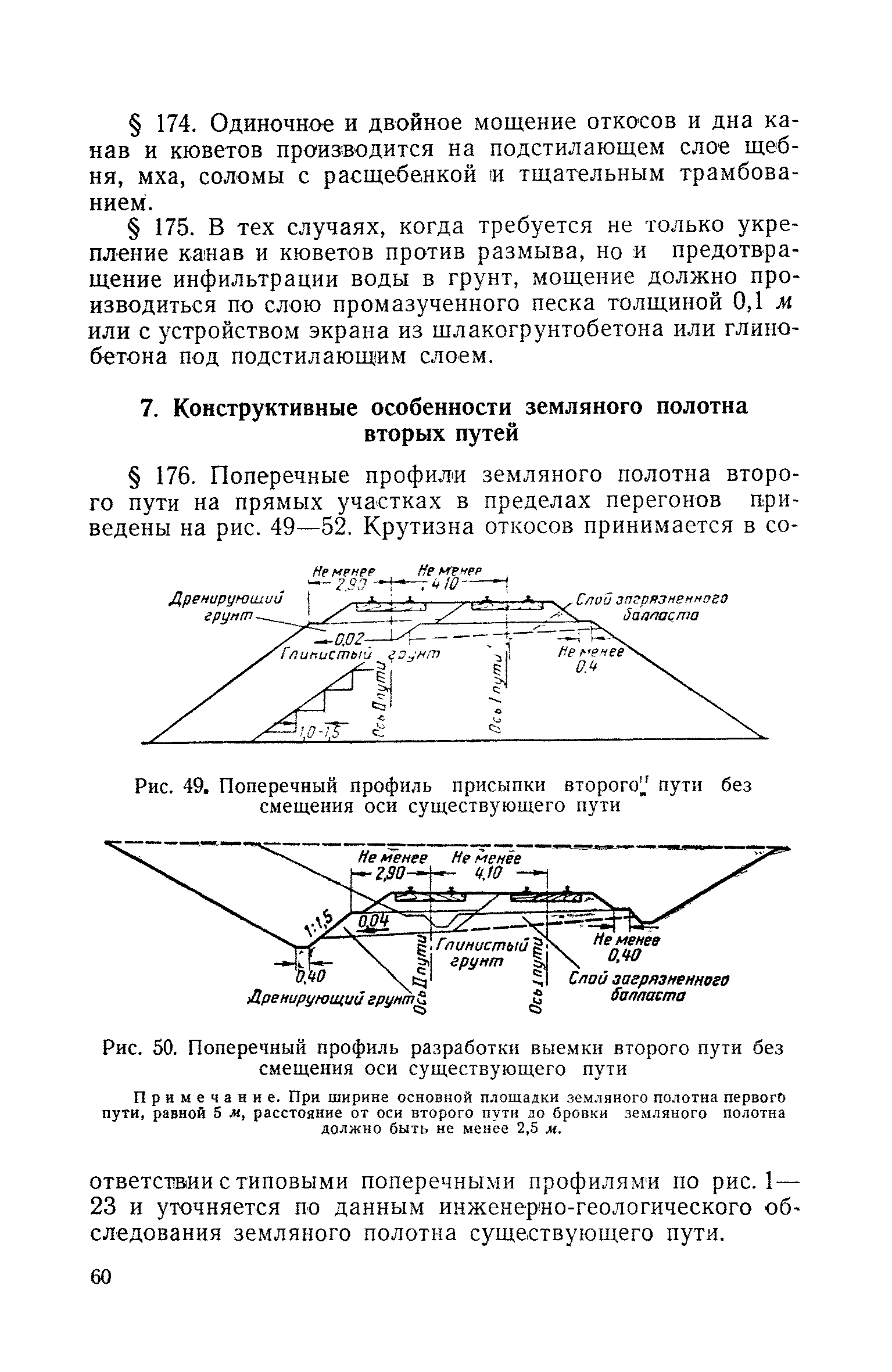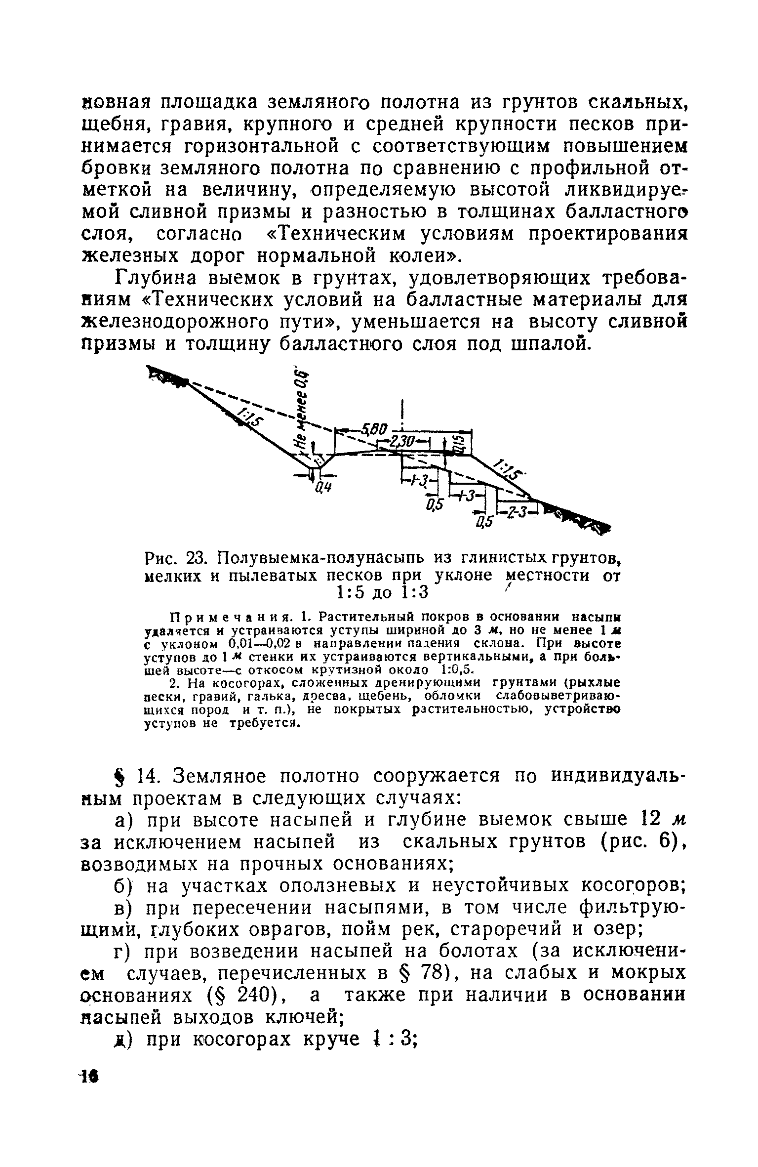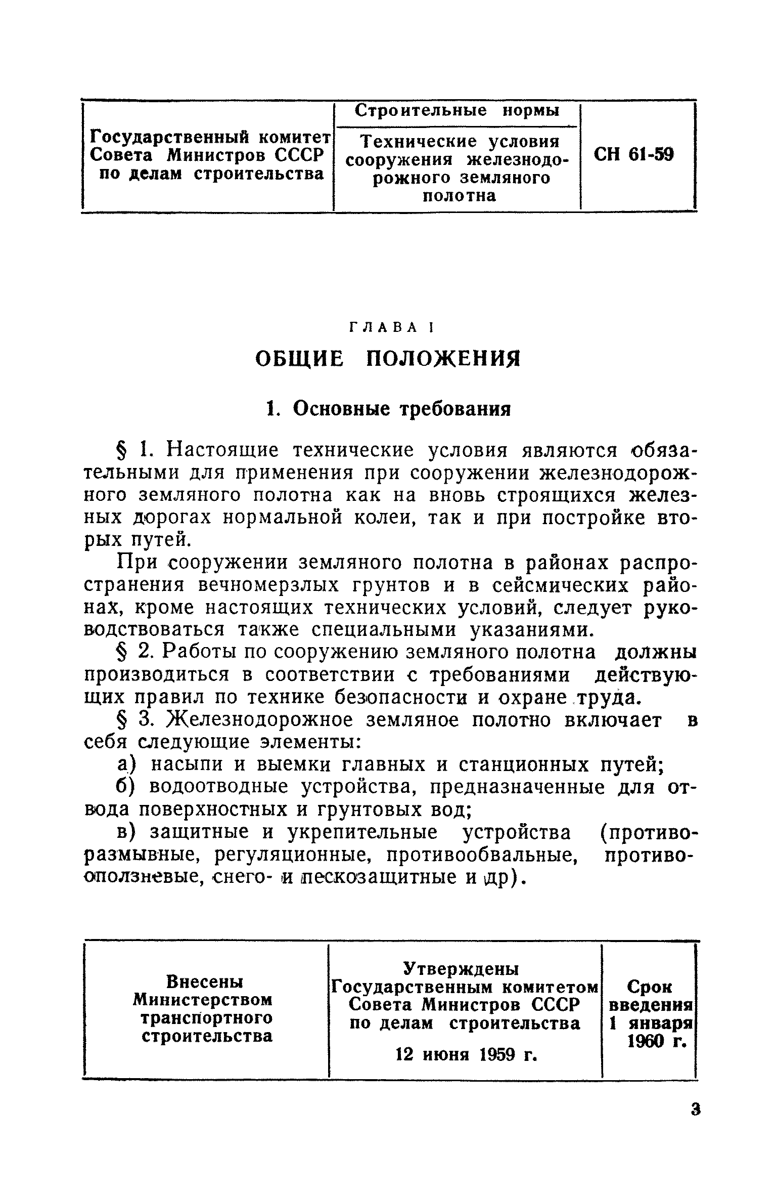 | Область применения: | Технические условия являются обязательными для применения при сооружении железнодорожного земляного полотна как на вновь строящихся железных дорогах нормальной колеи, так и при постройке вторых путей. При сооружении земляного полотна в районах распространения вечномерзлых грунтов и в сейсмических районах, кроме настоящих технических условий, следует руководствоваться также специальными указаниями. |
