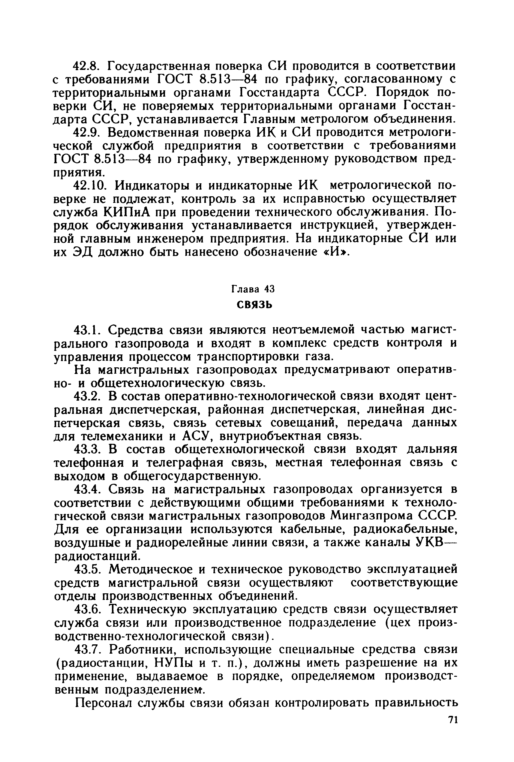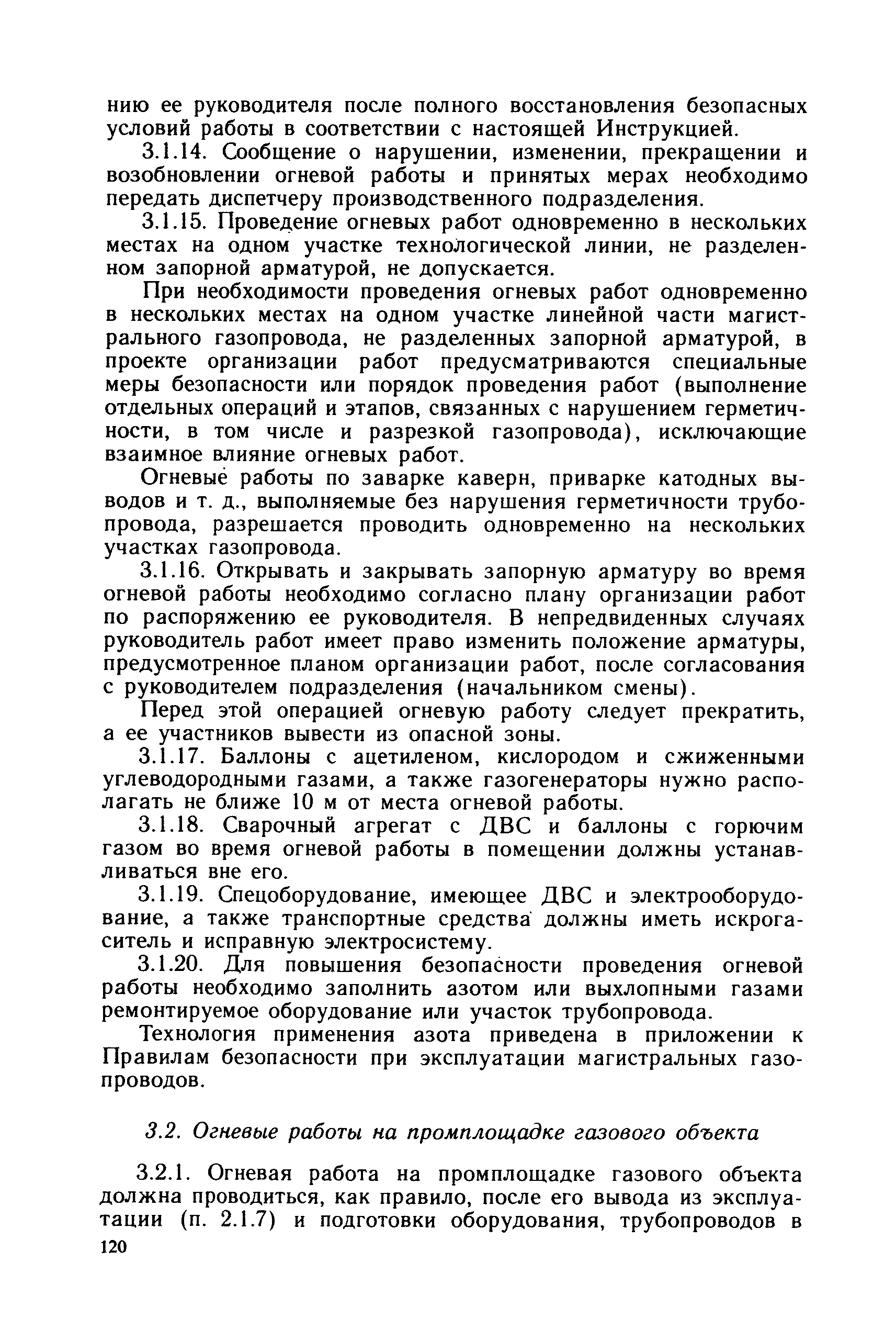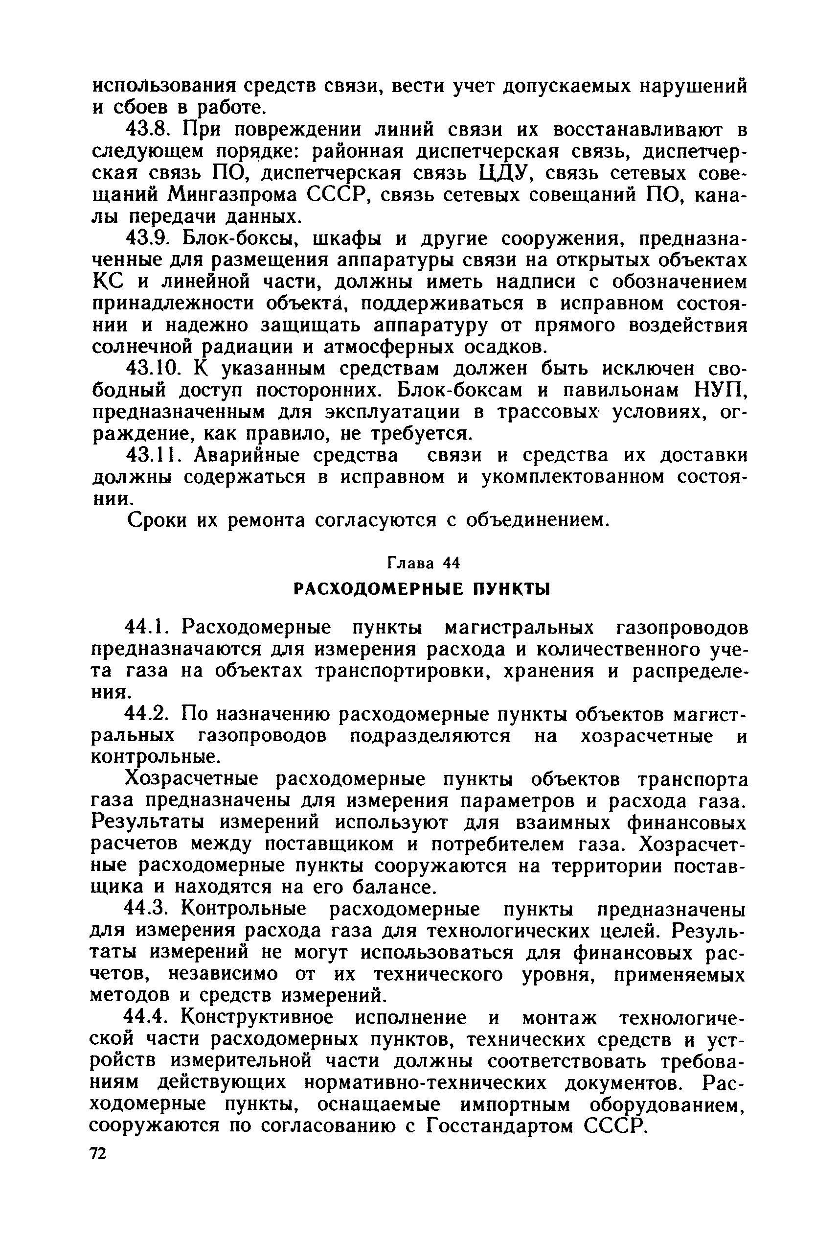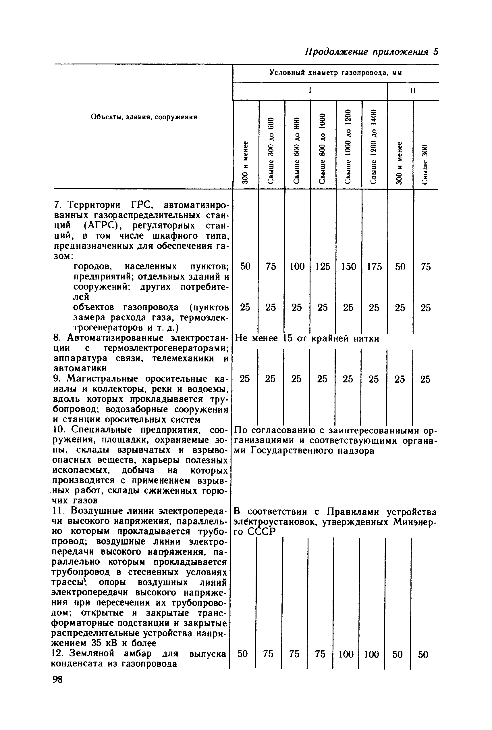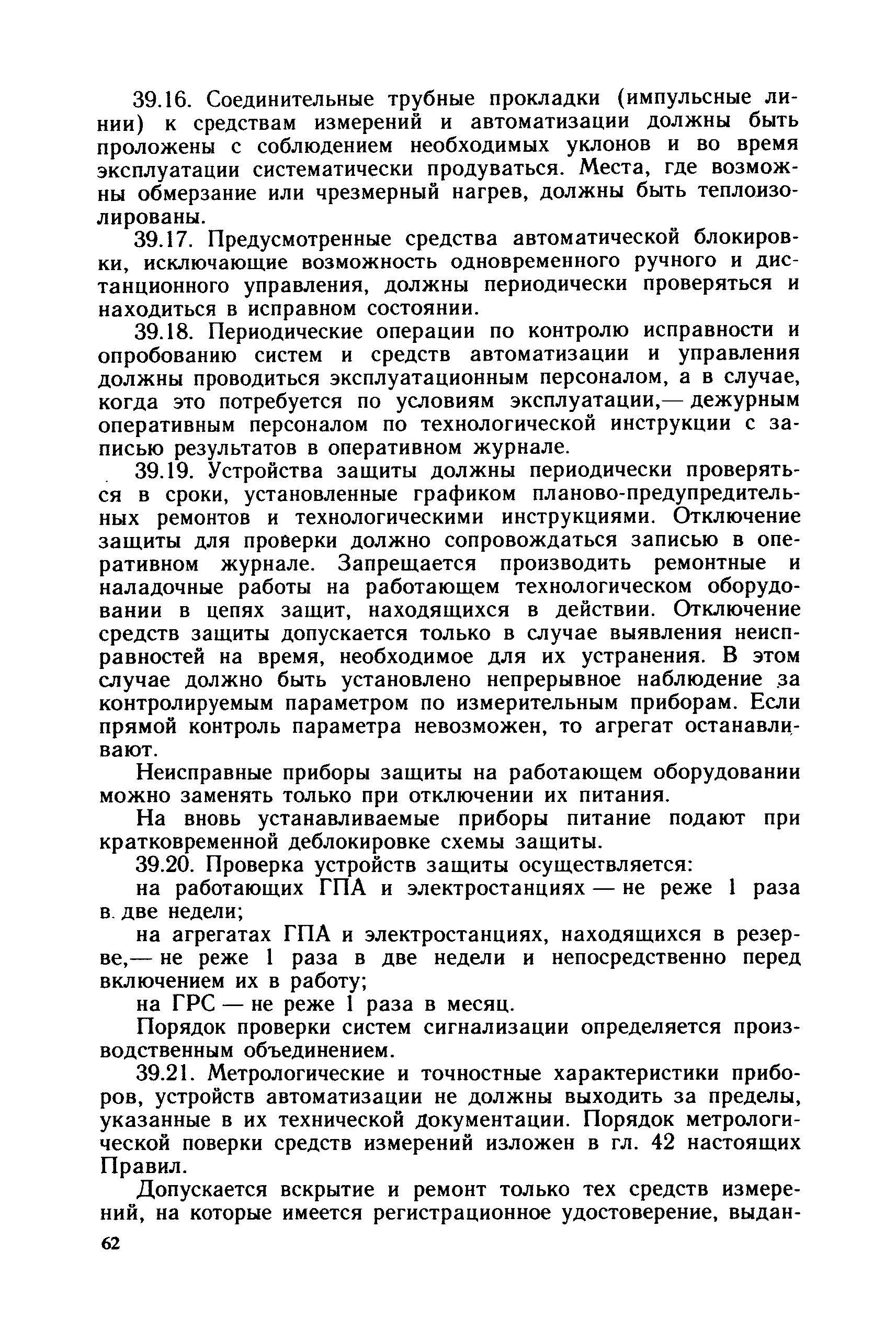 | Оглавление: | Раздел первый. Общие положения Глава 1. Общие требования Глава 2. Техническая подготовка персонала Глава 3. Ответственность за нарушение Правил Раздел второй. Объекты общего назначения Глава 4. Территория, здания и сооружения Глава 5. Газопроводы Глава 6. Трубопроводная арматура Глава 7. Теплоснабжение, газоснабжение, водоснабжение, вентиляция, канализация Раздел третий. Линейная часть Глава 8. Общие требования Глава 9. Оформление линейной части Глава 10. Организация эксплуатации Глава 11. Техническое обслуживание и ремонт Глава 12. Транспортные технические средства Глава 13. Аварийный запас Глава 14. Техническая документация Раздел четвертый. Компрессорные станции Глава 15. Общие требования Глава 16. Организация эксплуатации Глава 17. Техническое обслуживание и ремонт Глава 18. Компрессорный цех Глава 19. Установка очистки газа Глава 20. Установка охлаждения газа Глава 21. Система топливного, пускового и импульсного Глава 22. Маслоснабжение Глава 23. Техническая документация Раздел пятый. Станции подземного хранения газа Глава 24. Общие требования Глава 25. Организация эксплуатации Глава 26. Техническое обслуживание и ремонт Глава 27. Очистка и осушка газа Глава 28. Техническая документация Раздел шестой. Газораспределительные станции Глава 29. Общие требования Глава 30. Организация эксплуатации Глава 31. Техническое обслуживание и ремонт Глава 32. Техническая документация Раздел седьмой. Электроустановки Глава 33. Общие требования Глава 34. Эксплуатация электроустановок Раздел восьмой. Защита от коррозии Глава 35. Общие требования Глава 36. Организация эксплуатации Глава 37. Техническое обслуживание и ремонт Глава 38. Техническая документация Раздел девятый. Системы и средства автоматизации, управления и связи Глава 39. Общие требования Глава 40. Организация эксплуатации Глава 41. Техническое обслуживание и ремонт Глава 42. Метрологическое обеспечение Глава 43. Связь Глава 44. Расходомерные пункты Глава 45. Телемеханика Глава 46. Техническая документация Раздел десятый. Оперативно-диспетчерское управление Глава 47. Диспетчерская служба Глава 48. Режим работы газопроводов Глава 49. Оперативная документация Глава 50. Организация работ по ликвидации аварии Глава 51. Подготовка магистрального газопровода к эксплуатации в осенне-зимних условиях и к весеннему паводку Приложение 1. Перечень действующих нормативных документов . Приложение 2. Принятые сокращения Приложение 3. Нумерация технологической арматуры на компрессорных станциях Приложение 4. Нумерация технологической арматуры на линейной части Приложение 5. Минимальные расстояния от газопроводов I и II классов до населенных пунктов, отдельных промышленных и сельскохозяйственных предприятий, зданий и сооружений Приложение 6. Минимальные расстояния от компрессорных (в числителе) и газораспределительных (в знаменателе) станций до населенных пунктов, отдельных промышленных и сельскохозяйственных предприятий, зданий и сооружений при газопроводах I и II классов Приложение 7. Знак "Осторожно, газопровод" Приложение 8. Знак "Остановка запрещена" Приложение 9. Знак "Газопровод. Переезд запрещен" Приложение 10. Знак "Газ. С огнем не приближаться" Приложение 11. Знак "Вход воспрещен" Приложение 12. Знак "Газопровод высокого давления" Приложение 13. Знак закрепления трассы газопровода на местности Приложе