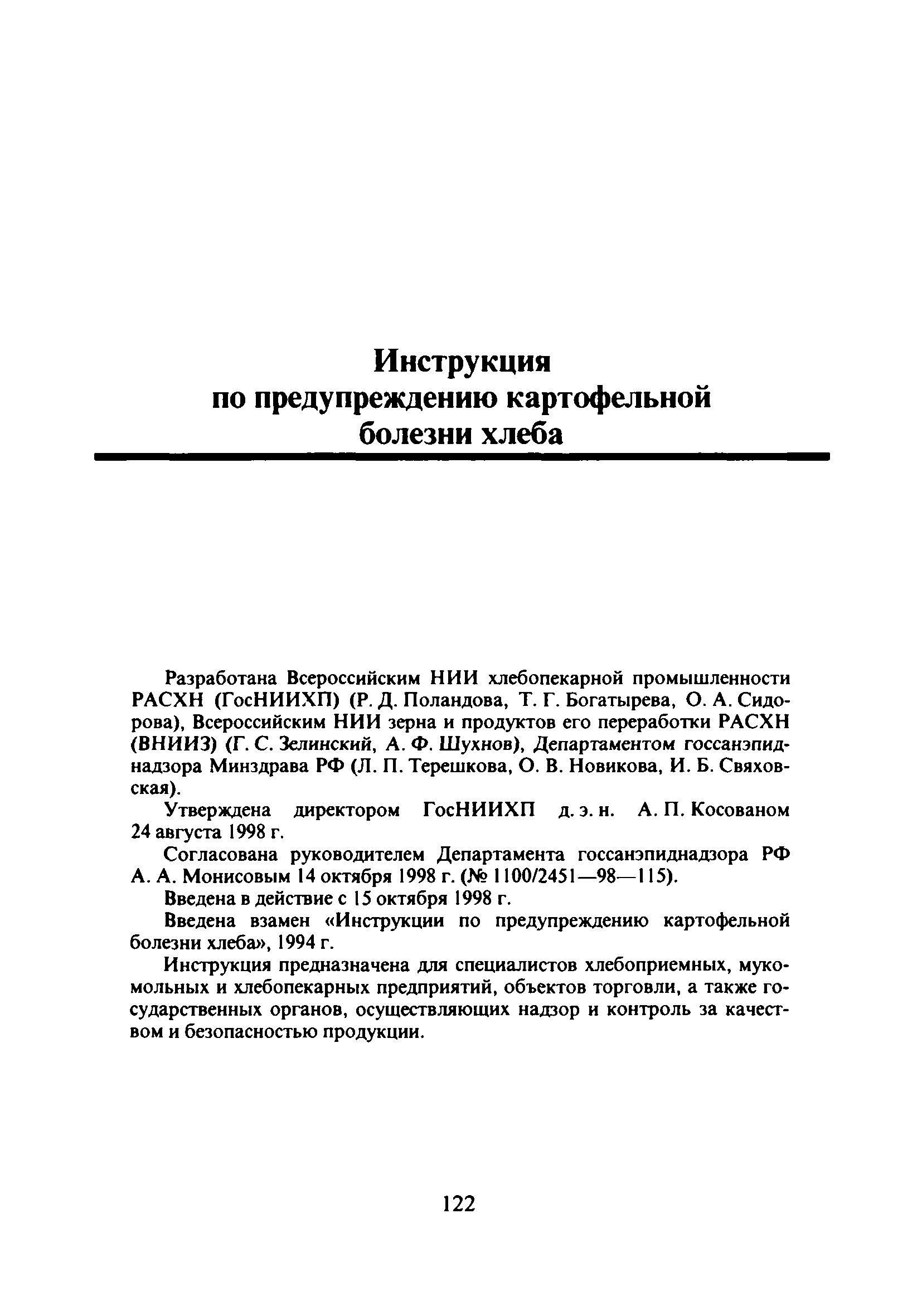 | Утверждён: | 24.08.1998 Государственный НИИ хлебопекарной промышленности |