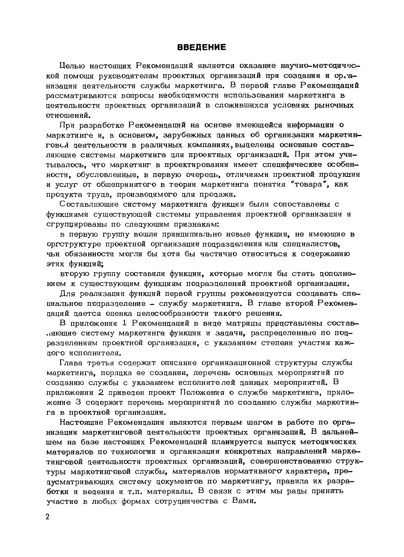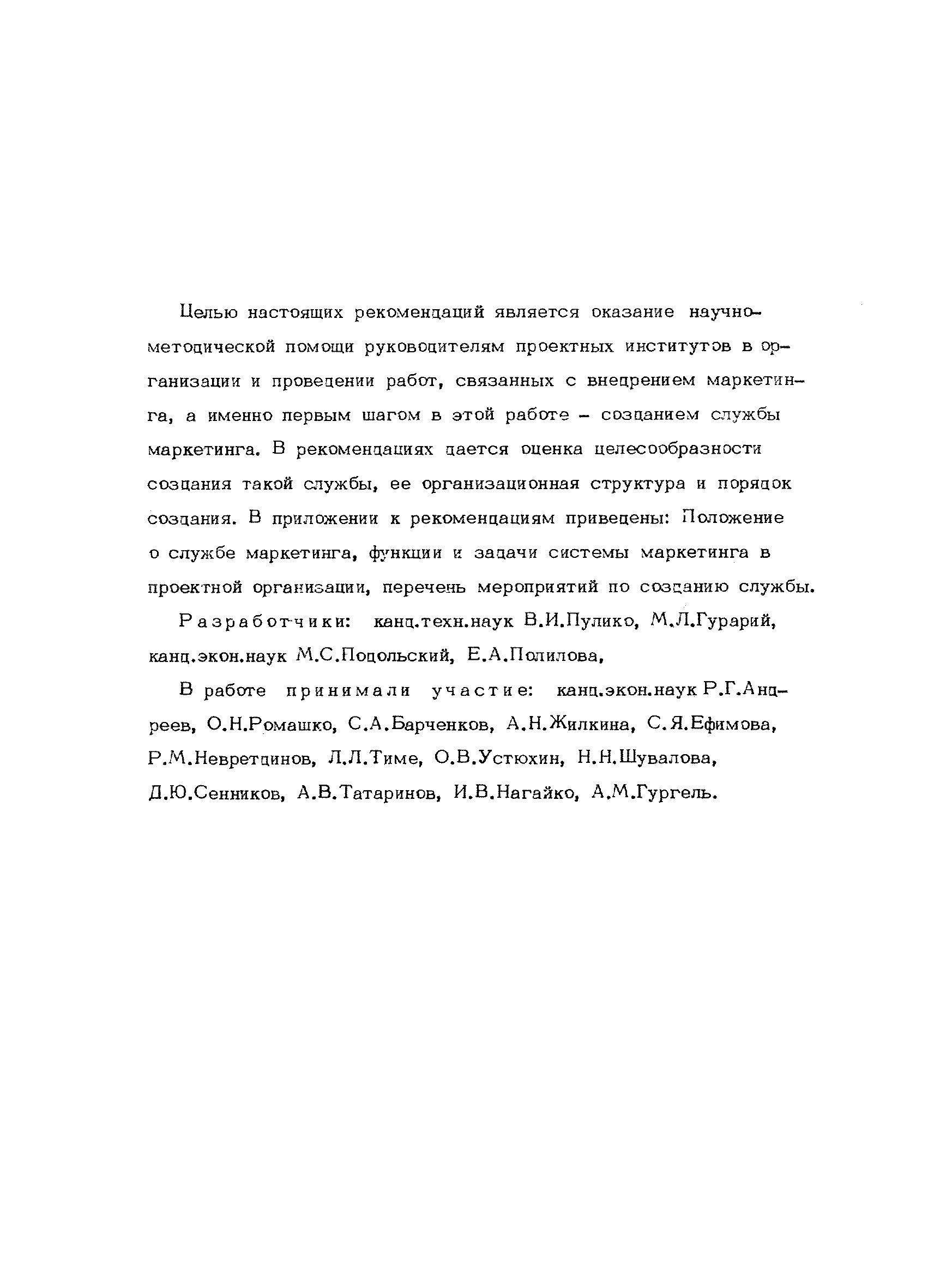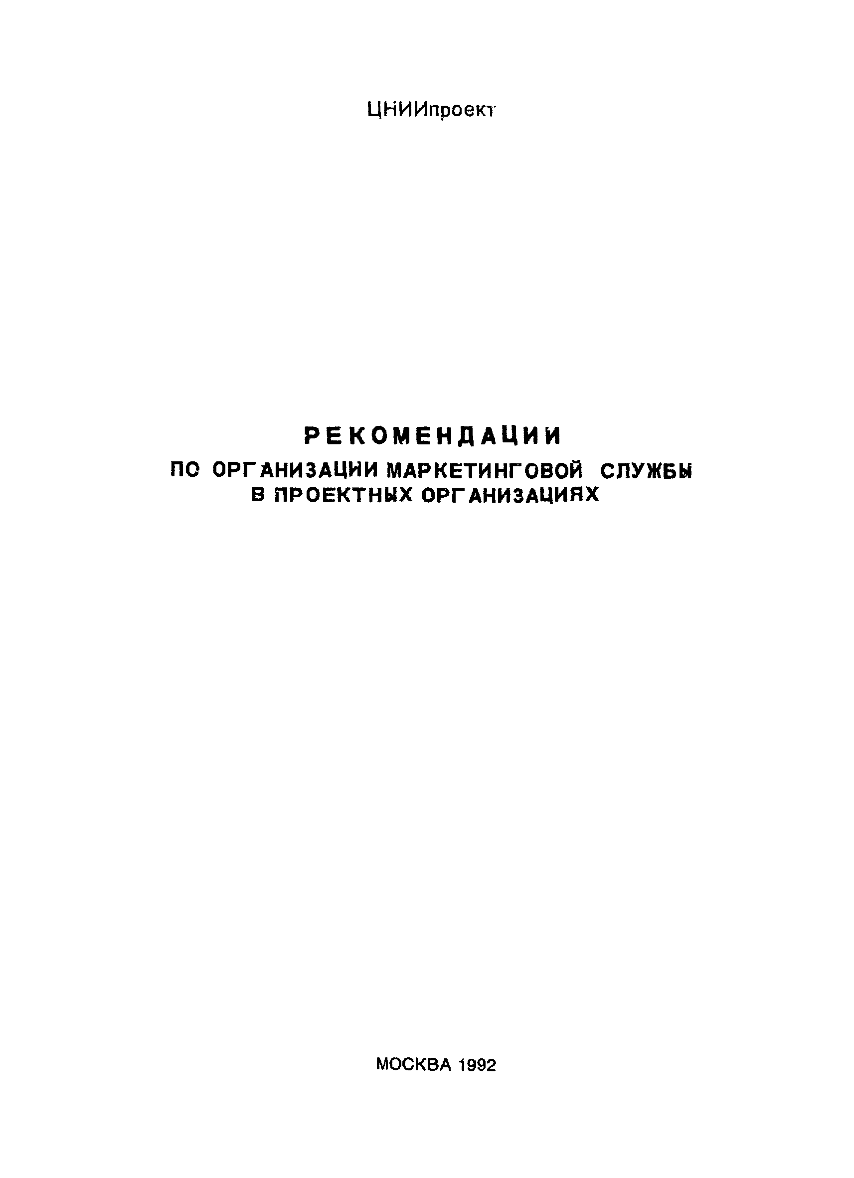 | Название рус.: | Рекомендации по организации маркетинговой службы в проектных организациях |