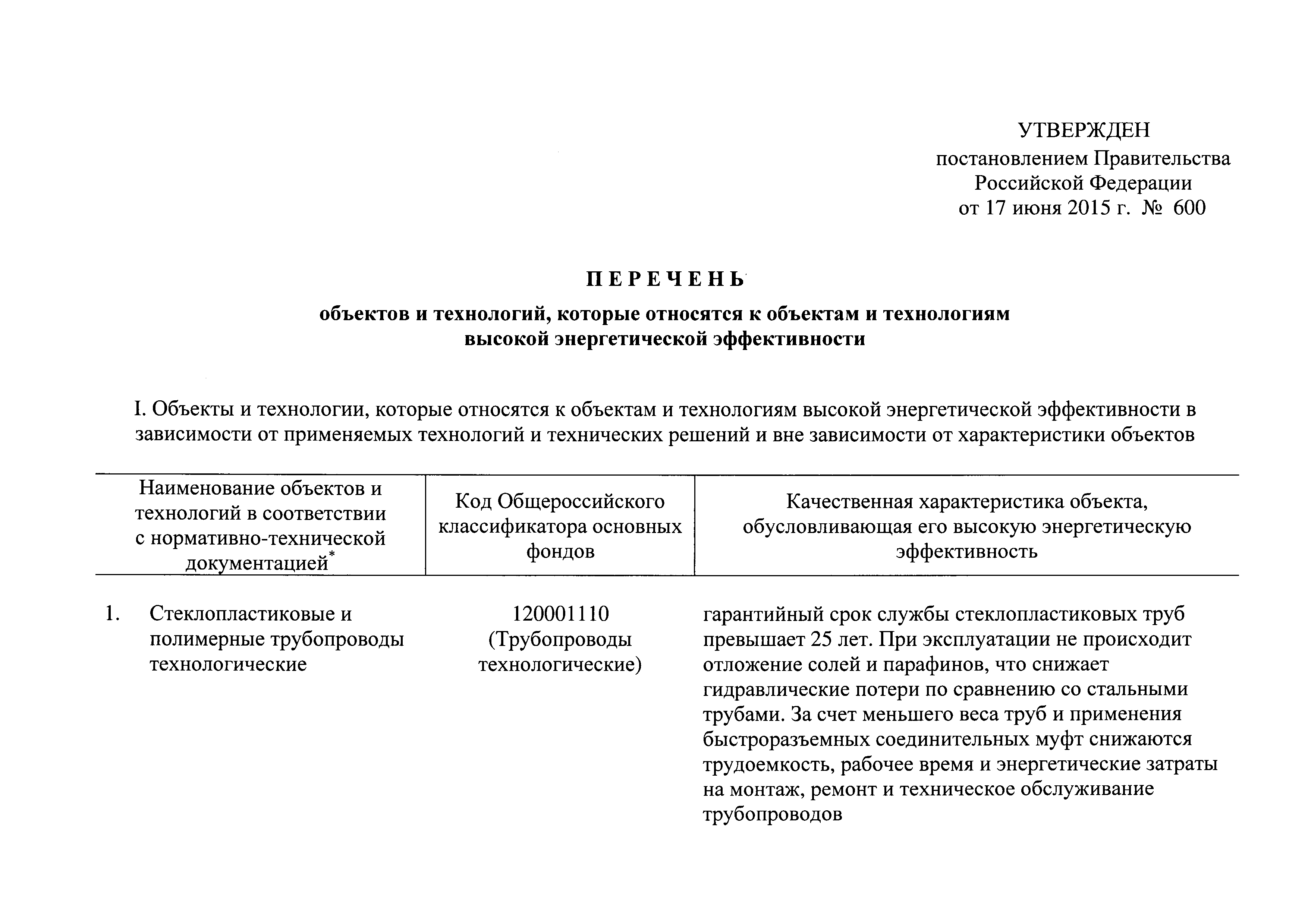 | Название рус.: | Перечень объектов и технологий, которые относятся к объектам и технологиям высокой энергетической эффективности |