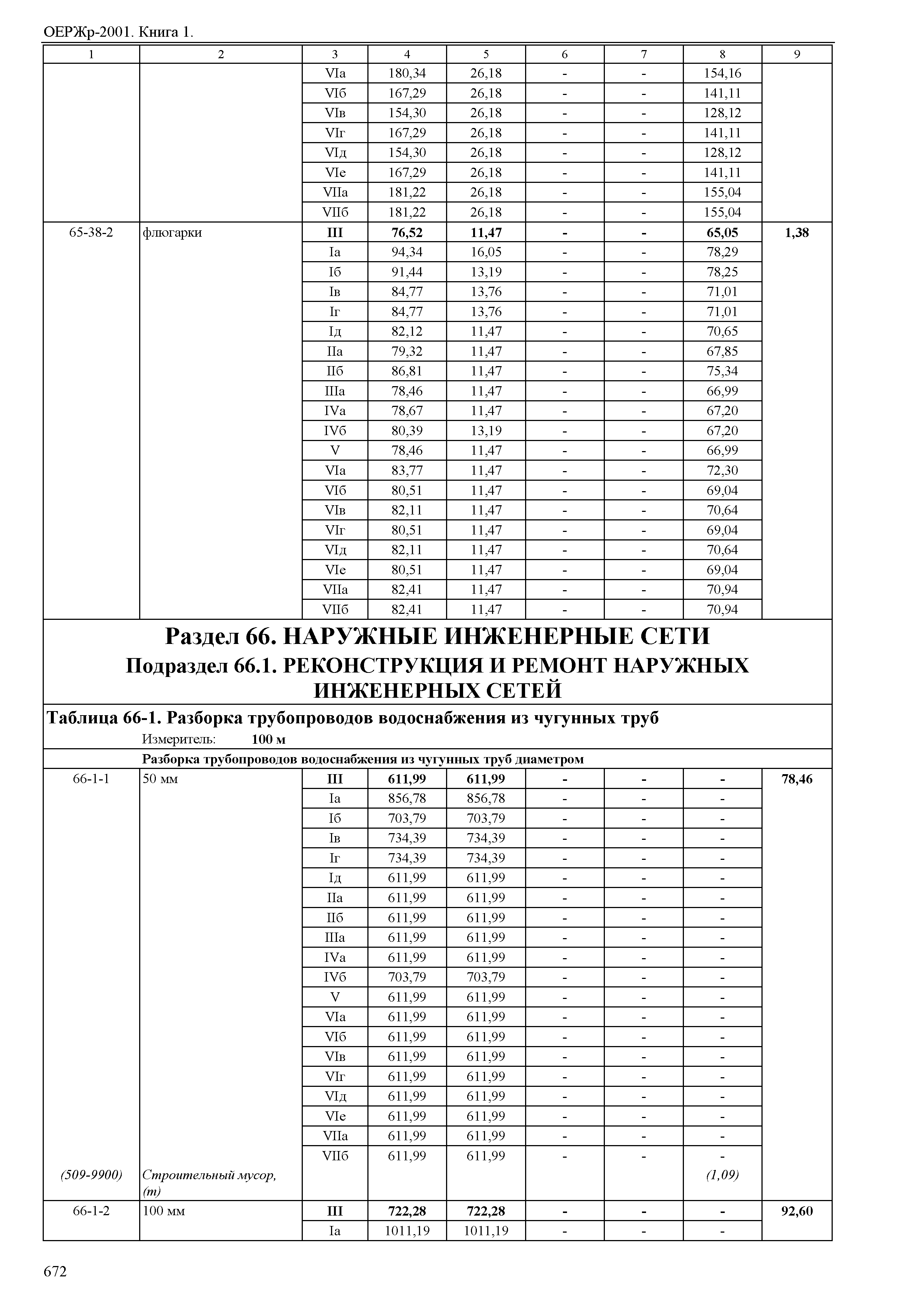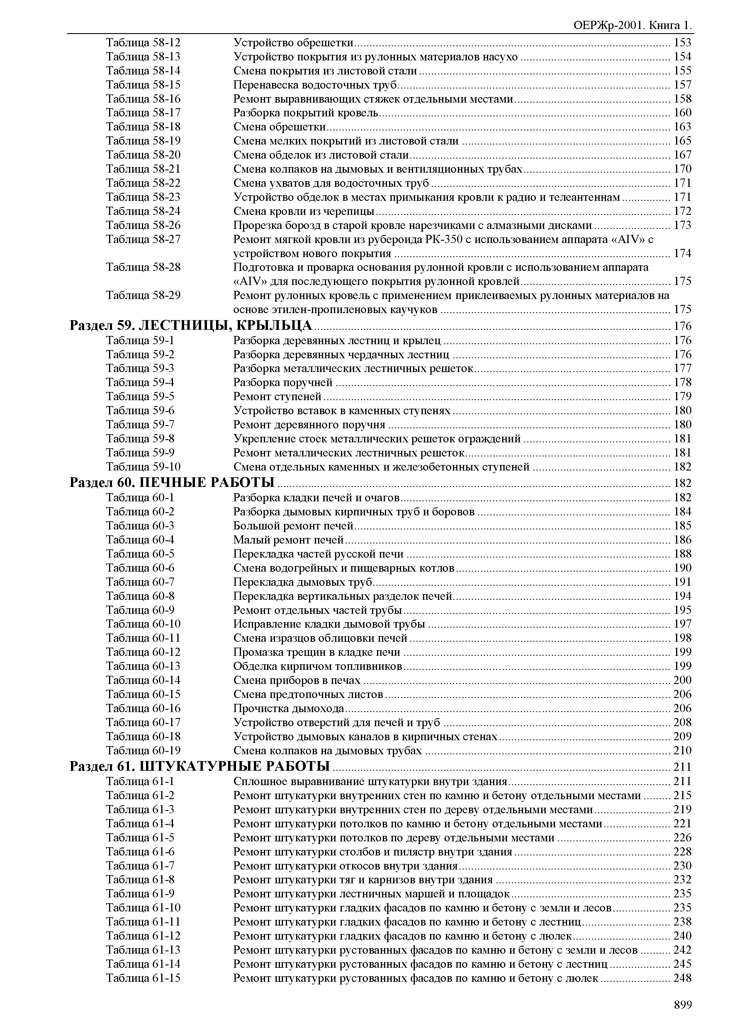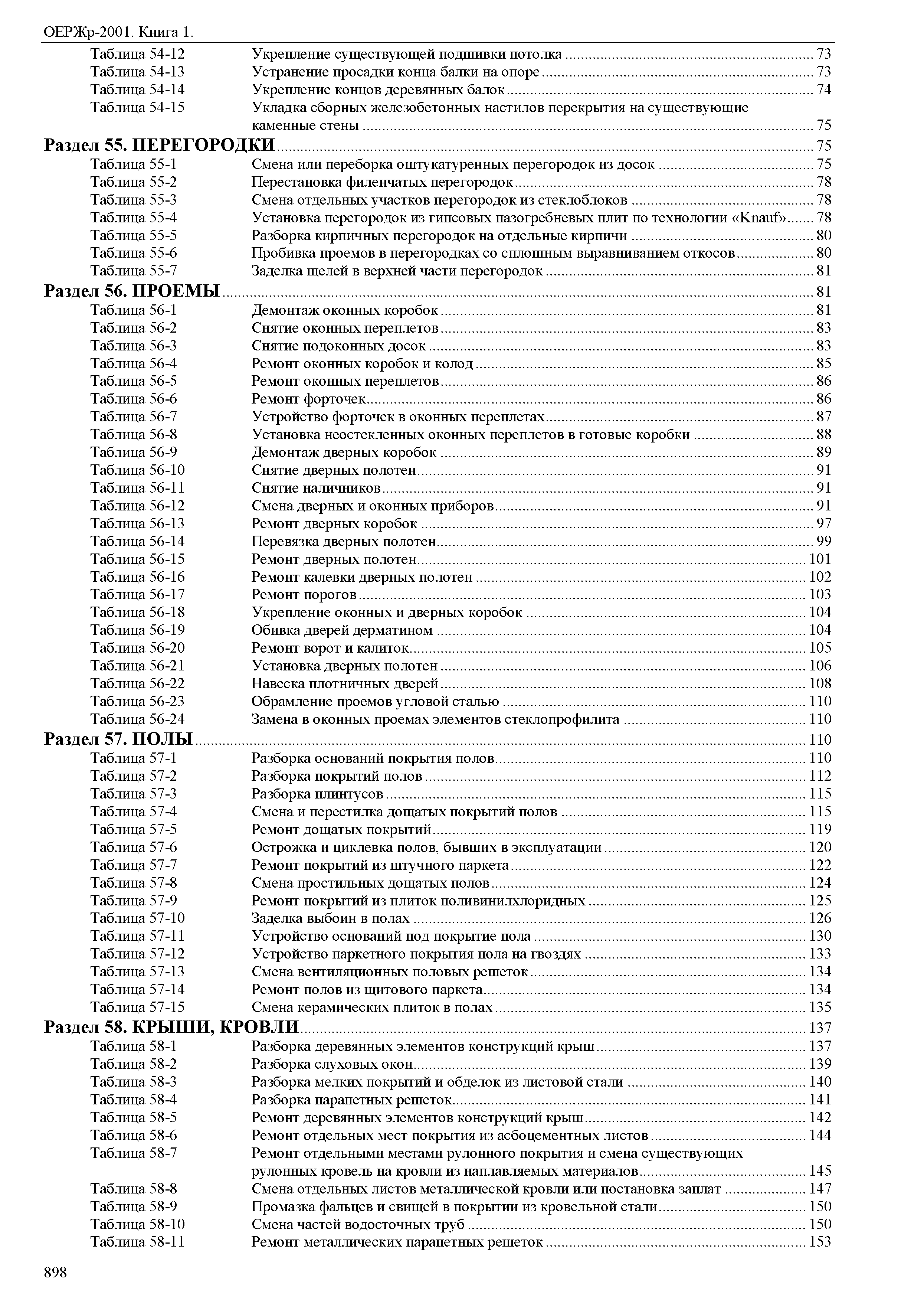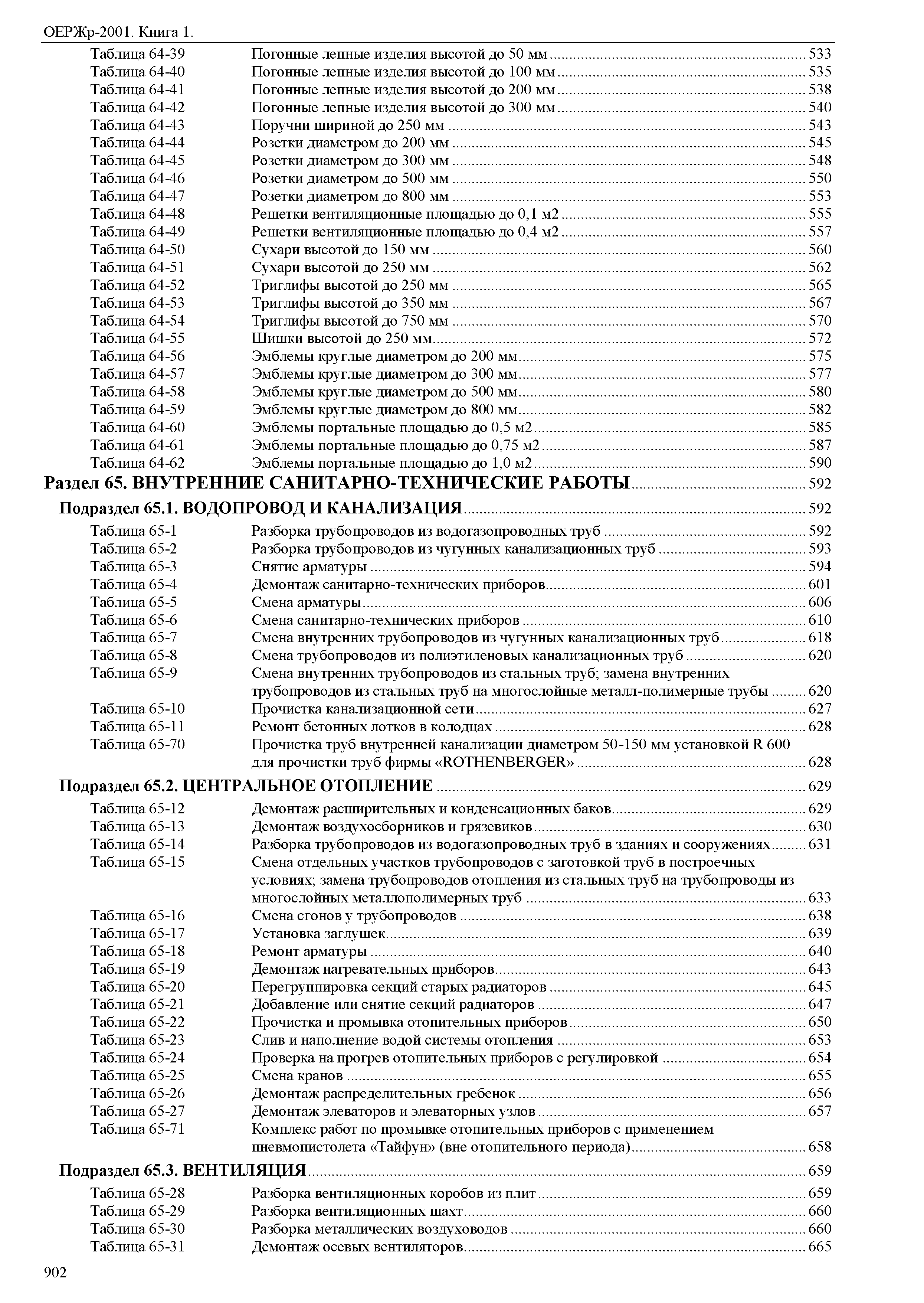| Оглавление: | Раздел 51. Земляные работы Раздел 52. Фундаменты Раздел 53. Стены Раздел 54. Перекрытия Раздел 55. Перегородки Раздел 56. Проемы Раздел 57. Полы Раздел 58. Крыши, кровли Раздел 59. Лестницы, крыльца Раздел 60. Печные работы Раздел 61. Штукатурные работы Раздел 62. Малярные работы Подраздел 62.1. Окраска внутренних помещений Подраздел 62.2. Окраска фасадов Подраздел 62.3. Окраска металлических поверхностей Подраздел 62.4. Разные работы Раздел 63. Стекольные, обойные и облицовочные работы Раздел 64. Лепные работы Раздел 65. Внутренние санитарно-технические работы Подраздел 65.1. Водопровод и канализация Подраздел 65.2. Центральное отопление Подраздел 65.3. Вентиляция Подраздел 65.4. Газоснабжение Подраздел 65.5. Разные работы Раздел 66. Наружные инженерные сети Подраздел 66.1. Реконструкция и ремонт наружных инженерных сетей Подраздел 66.2. Реконструкция и ремонт наружных сетей водопровода бестраншейными методами с применением импортных технологий восстановление водопроводных сетей по методике Восстановление водопроводных сетей по методике "Процесс Феникс" Замена старых труб полиэтиленовыми трубами с помощью пневмопробойника Подраздел 66.3. Реконструкция и ремонт наружных сетей канализации бестраншейными методами с применением импортных технологий Облицовка колодцев полиэтиленом Перекрытие участков канализационных сетей с помощью пневмозаглушек Бестраншейная замена канализационных трубопроводов Раздел 67. Электромонтажные работы Раздел 68. Благоустройство Раздел 69. Прочие ремонтно-строительные работы |