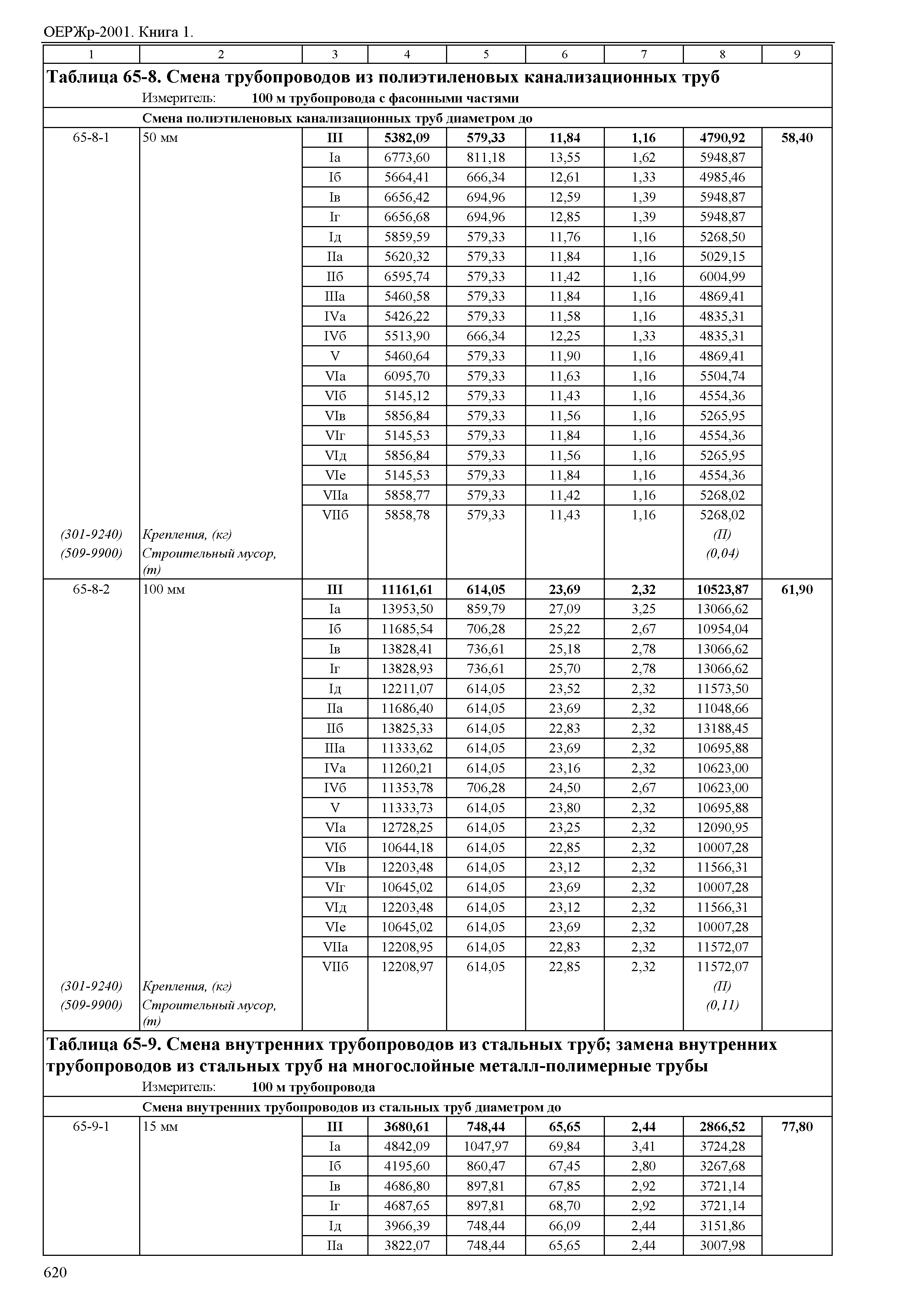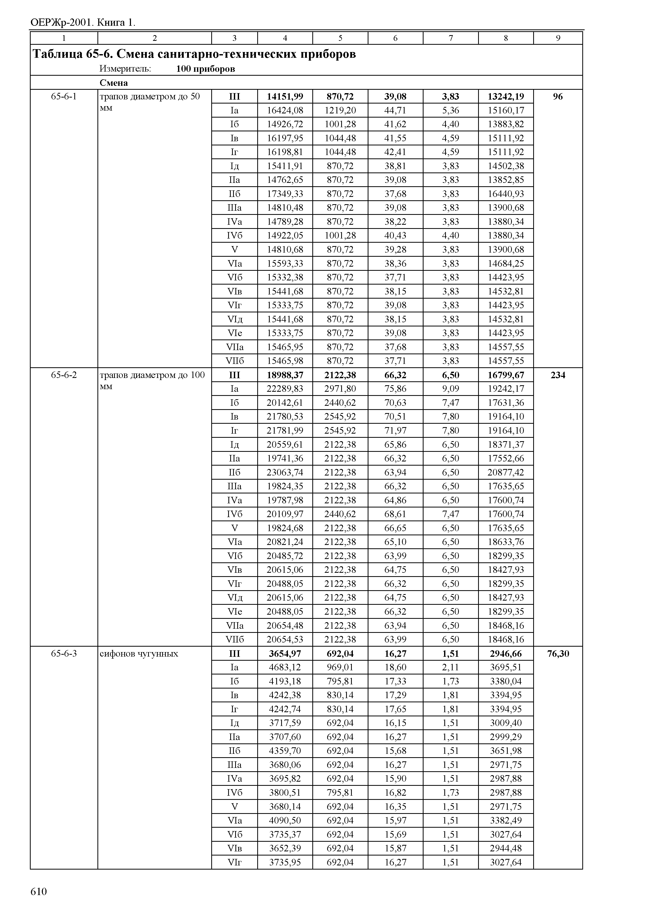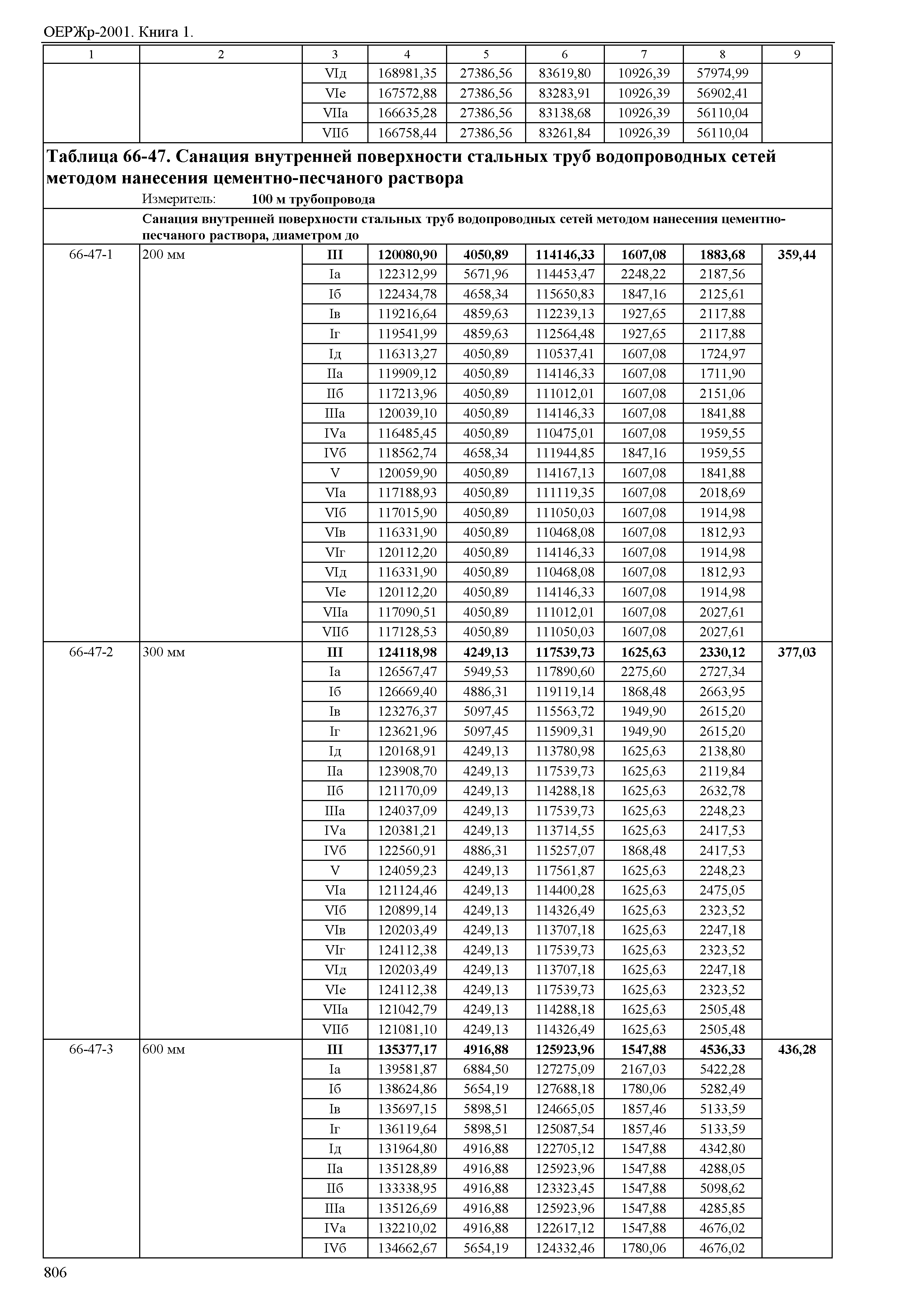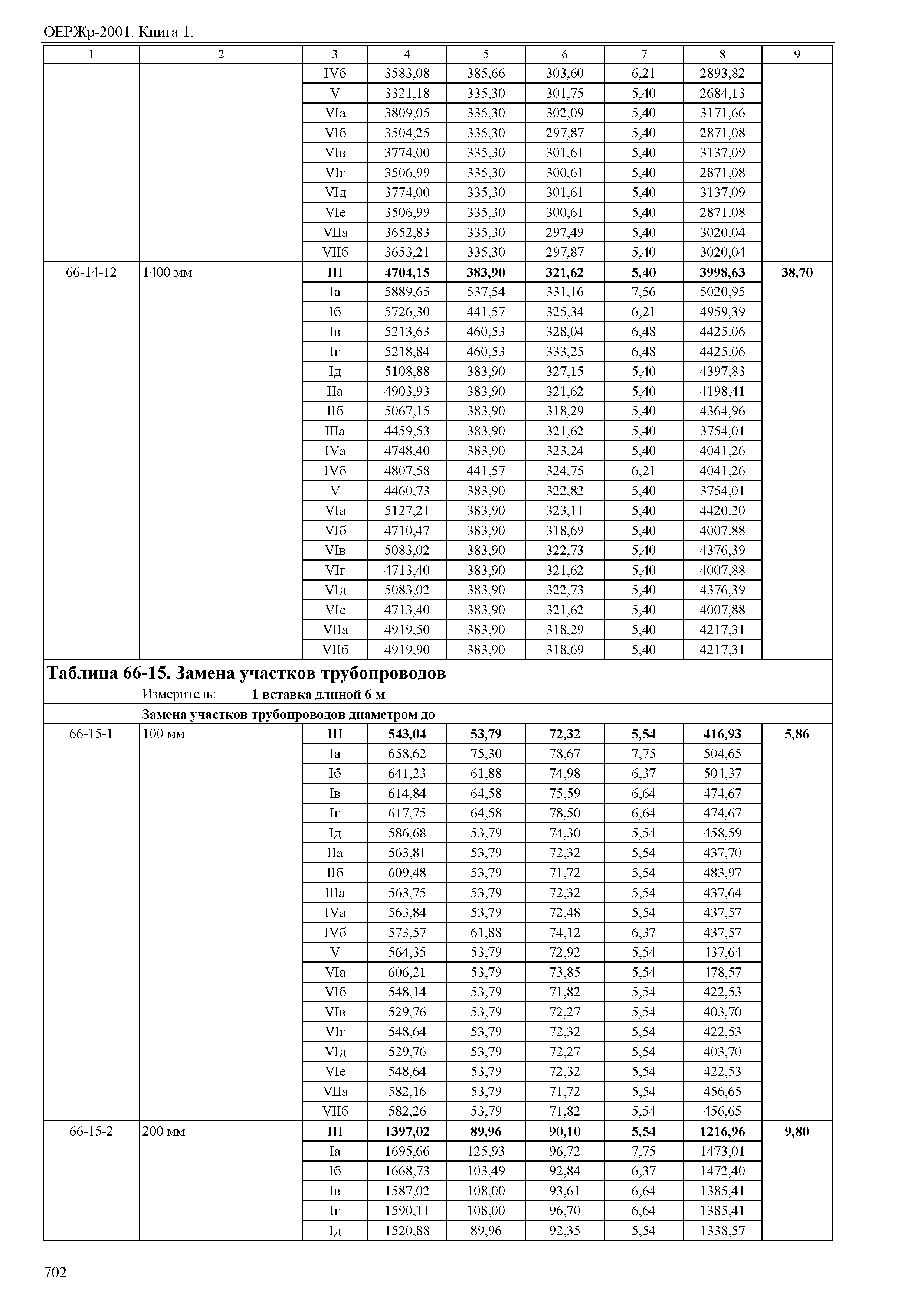 | Оглавление: | Раздел 51. Земляные работы Раздел 52. Фундаменты Раздел 53. Стены Раздел 54. Перекрытия Раздел 55. Перегородки Раздел 56. Проемы Раздел 57. Полы Раздел 58. Крыши, кровли Раздел 59. Лестницы, крыльца Раздел 60. Печные работы Раздел 61. Штукатурные работы Раздел 62. Малярные работы Подраздел 62.1. Окраска внутренних помещений Подраздел 62.2. Окраска фасадов Подраздел 62.3. Окраска металлических поверхностей Подраздел 62.4. Разные работы Раздел 63. Стекольные, обойные и облицовочные работы Раздел 64. Лепные работы Раздел 65. Внутренние санитарно-технические работы Подраздел 65.1. Водопровод и канализация Подраздел 65.2. Центральное отопление Подраздел 65.3. Вентиляция Подраздел 65.4. Газоснабжение Подраздел 65.5. Разные работы Раздел 66. Наружные инженерные сети Подраздел 66.1. Реконструкция и ремонт наружных инженерных сетей Подраздел 66.2. Реконструкция и ремонт наружных сетей водопровода бестраншейными методами с применением импортных технологий восстановление водопроводных сетей по методике Восстановление водопроводных сетей по методике "Процесс Феникс" Замена старых труб полиэтиленовыми трубами с помощью пневмопробойника Подраздел 66.3. Реконструкция и ремонт наружных сетей канализации бестраншейными методами с применением импортных технологий Облицовка колодцев полиэтиленом Перекрытие участков канализационных сетей с помощью пневмозаглушек Бестраншейная замена канализационных трубопроводов Раздел 67. Электромонтажные работы Раздел 68. Благоустройство Раздел 69. Прочие ремонтно-строительные работы |