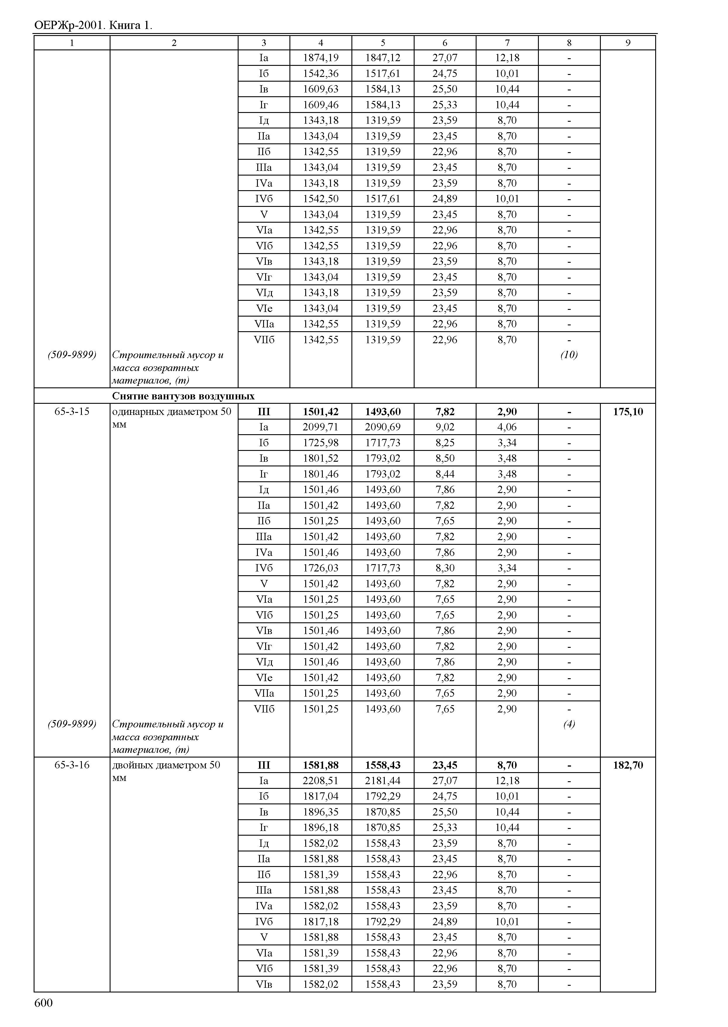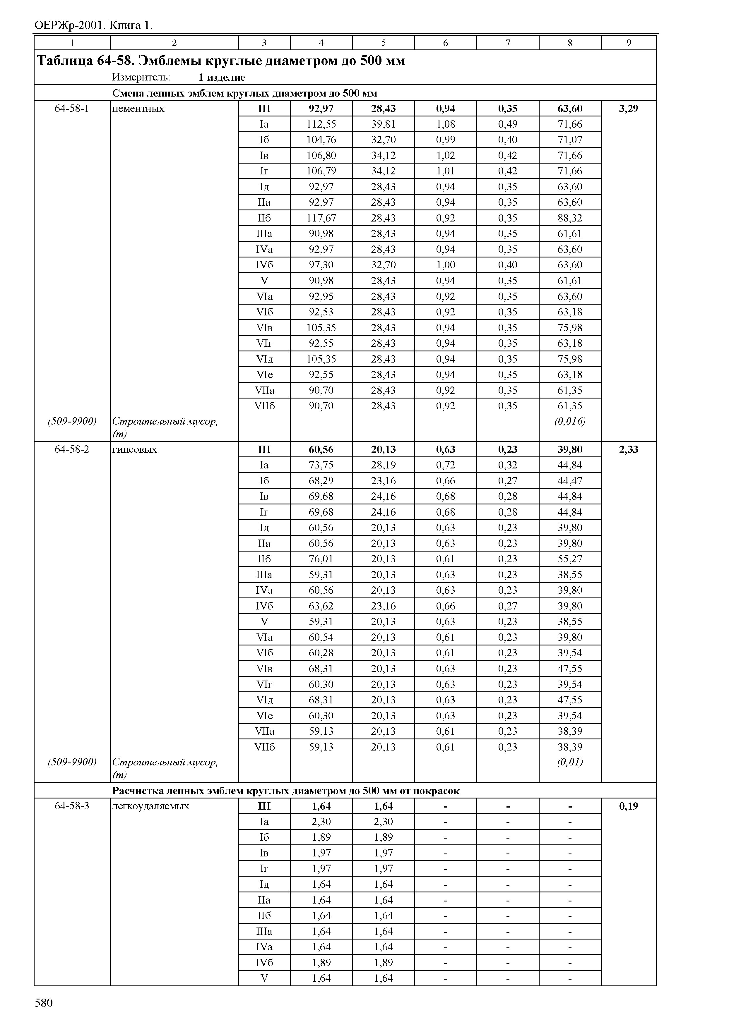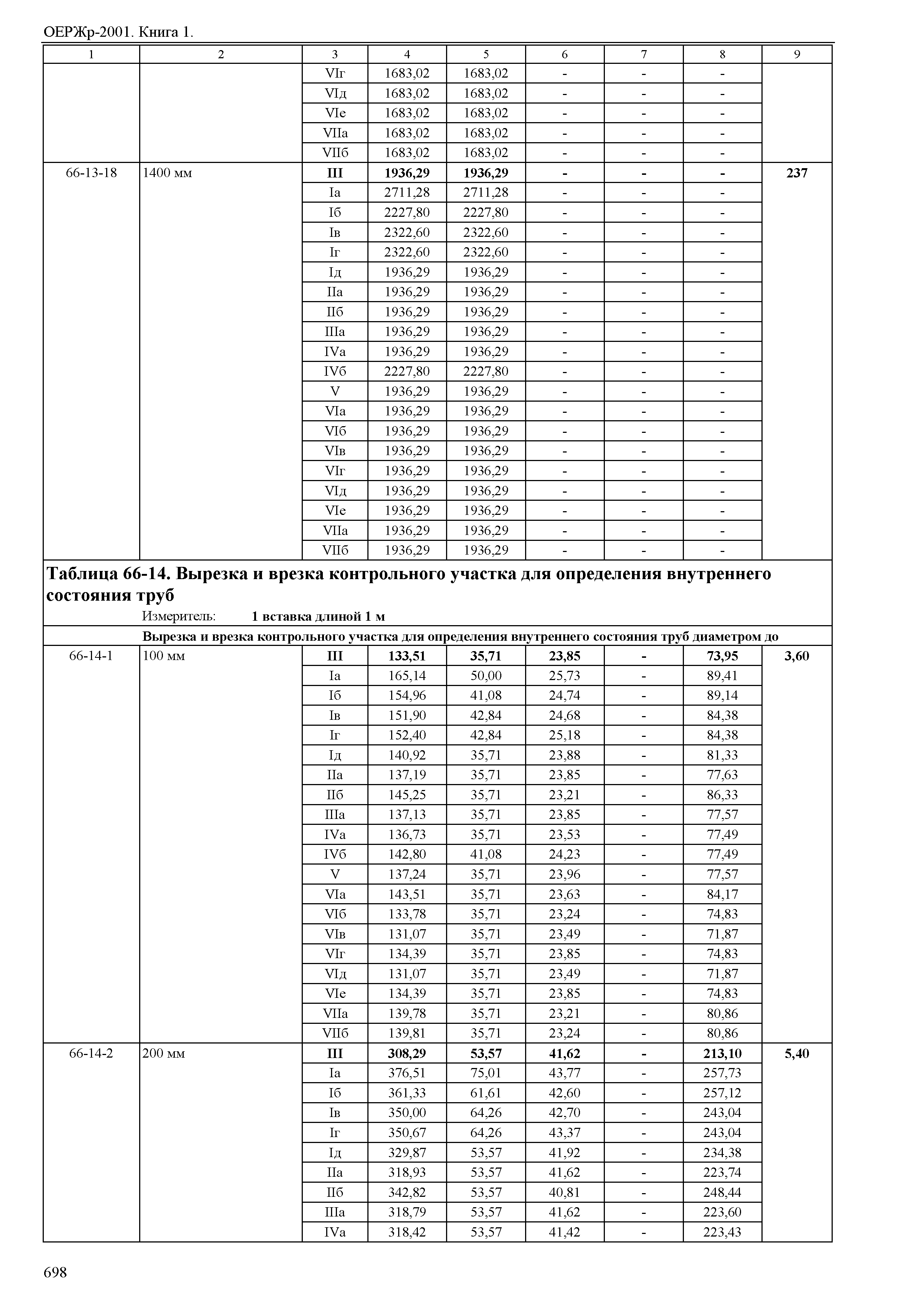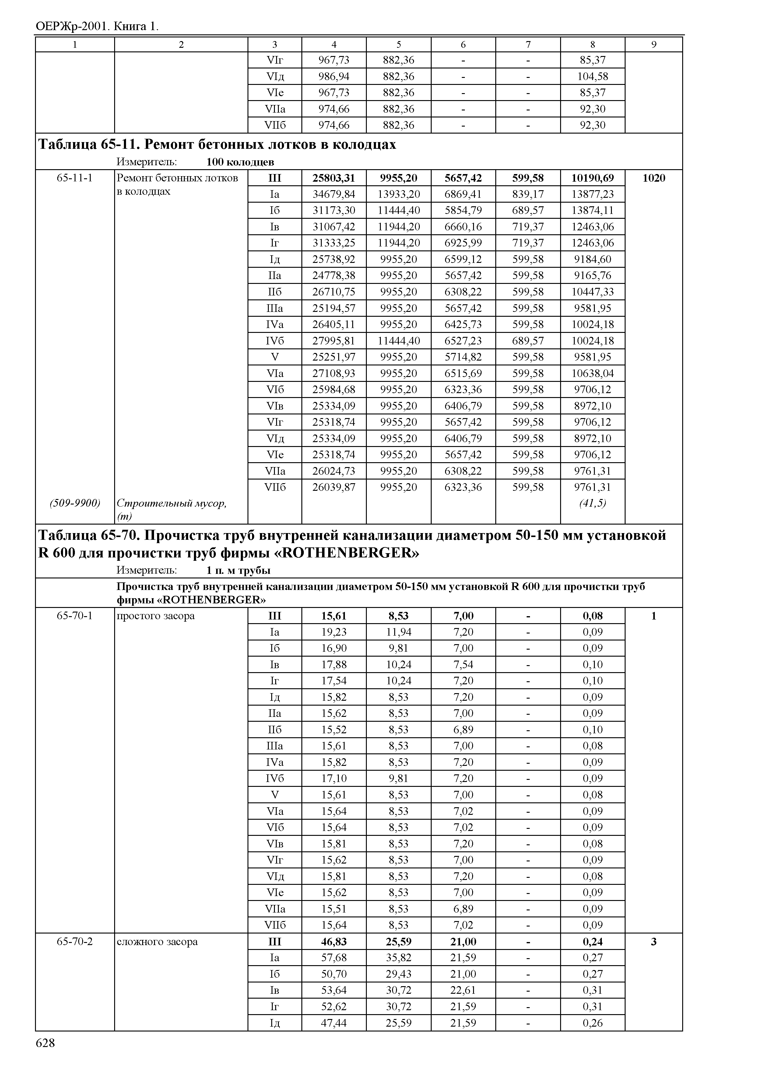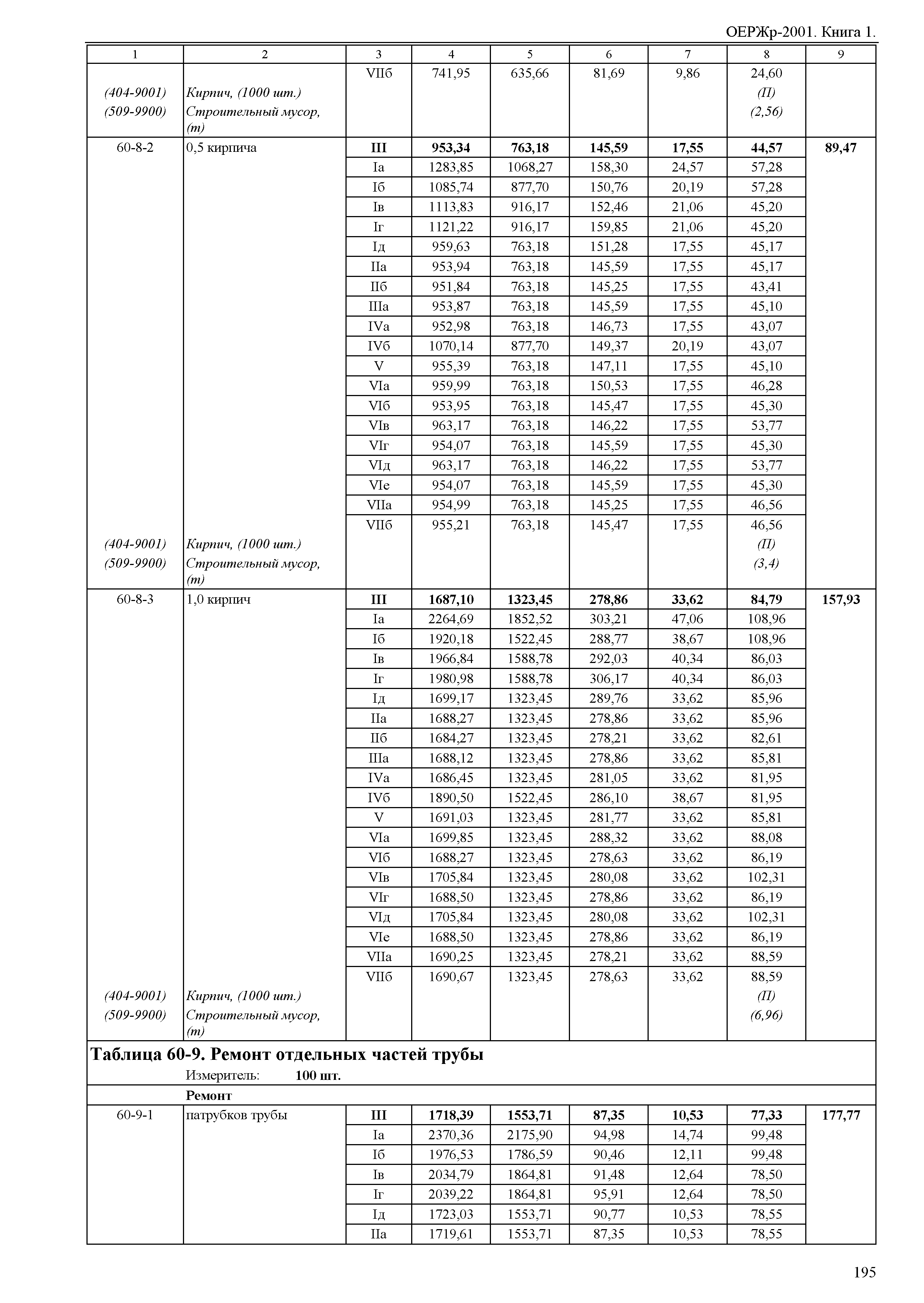 | Оглавление: | Раздел 51. Земляные работы Раздел 52. Фундаменты Раздел 53. Стены Раздел 54. Перекрытия Раздел 55. Перегородки Раздел 56. Проемы Раздел 57. Полы Раздел 58. Крыши, кровли Раздел 59. Лестницы, крыльца Раздел 60. Печные работы Раздел 61. Штукатурные работы Раздел 62. Малярные работы Подраздел 62.1. Окраска внутренних помещений Подраздел 62.2. Окраска фасадов Подраздел 62.3. Окраска металлических поверхностей Подраздел 62.4. Разные работы Раздел 63. Стекольные, обойные и облицовочные работы Раздел 64. Лепные работы Раздел 65. Внутренние санитарно-технические работы Подраздел 65.1. Водопровод и канализация Подраздел 65.2. Центральное отопление Подраздел 65.3. Вентиляция Подраздел 65.4. Газоснабжение Подраздел 65.5. Разные работы Раздел 66. Наружные инженерные сети Подраздел 66.1. Реконструкция и ремонт наружных инженерных сетей Подраздел 66.2. Реконструкция и ремонт наружных сетей водопровода бестраншейными методами с применением импортных технологий восстановление водопроводных сетей по методике Восстановление водопроводных сетей по методике "Процесс Феникс" Замена старых труб полиэтиленовыми трубами с помощью пневмопробойника Подраздел 66.3. Реконструкция и ремонт наружных сетей канализации бестраншейными методами с применением импортных технологий Облицовка колодцев полиэтиленом Перекрытие участков канализационных сетей с помощью пневмозаглушек Бестраншейная замена канализационных трубопроводов Раздел 67. Электромонтажные работы Раздел 68. Благоустройство Раздел 69. Прочие ремонтно-строительные работы |