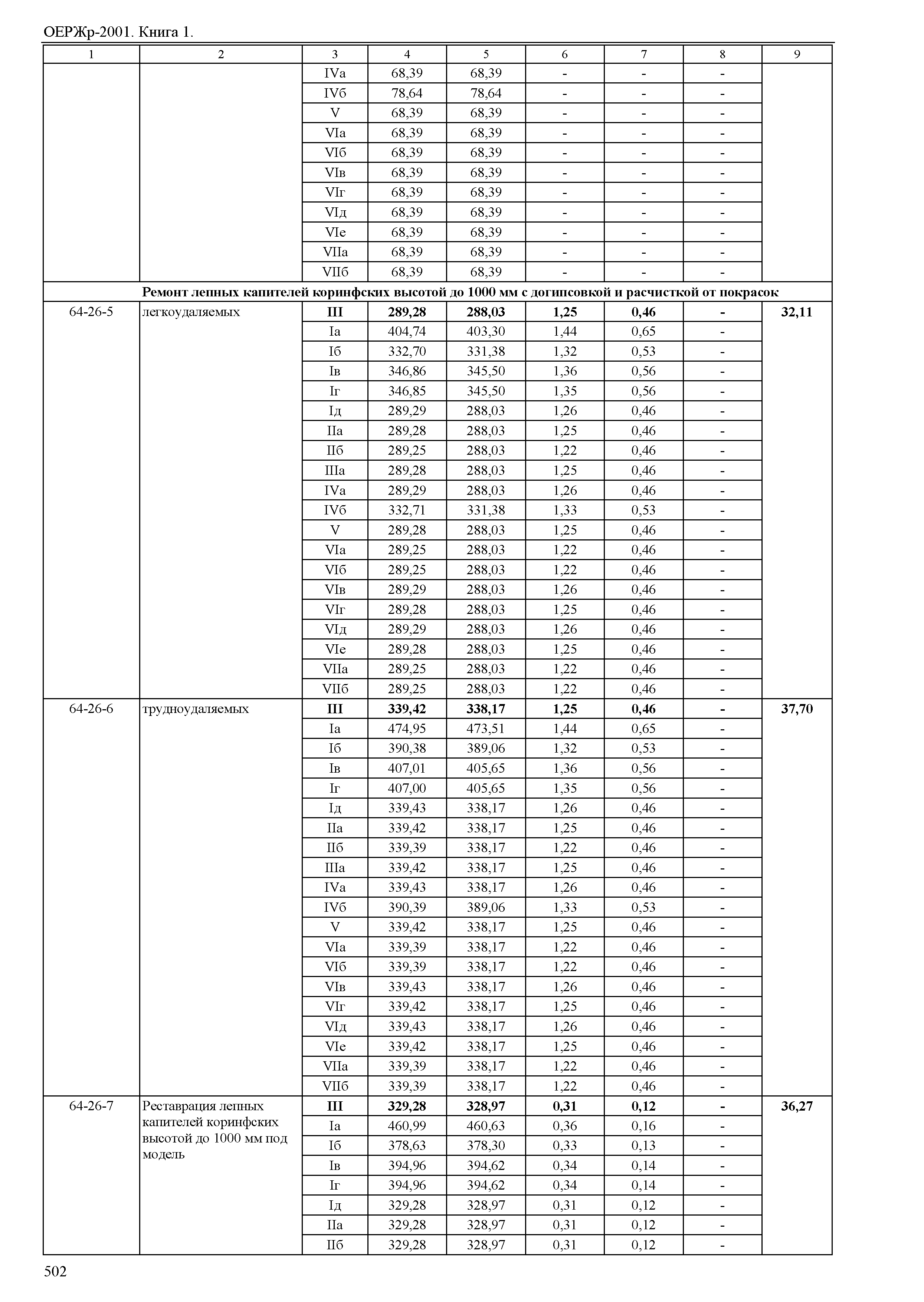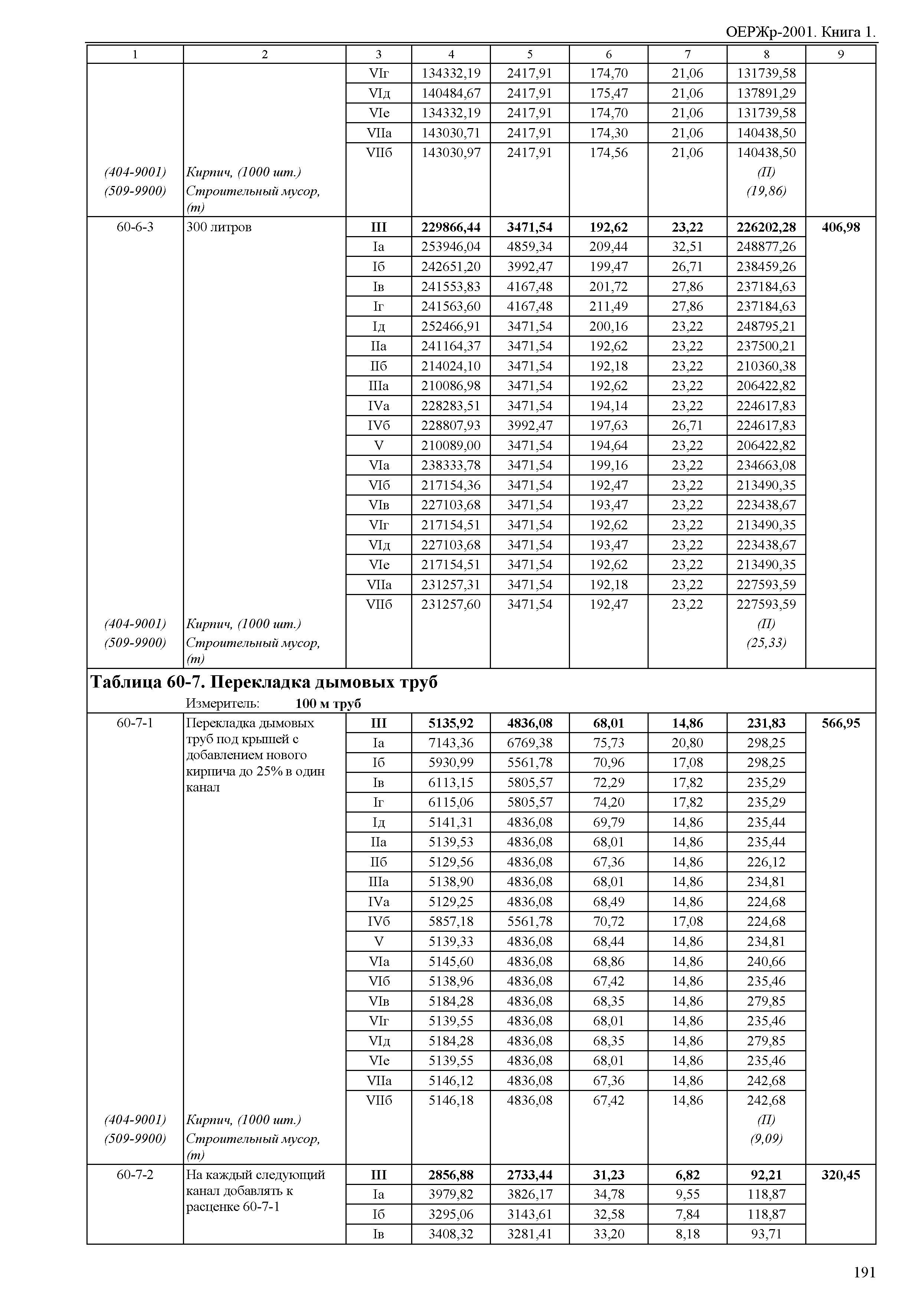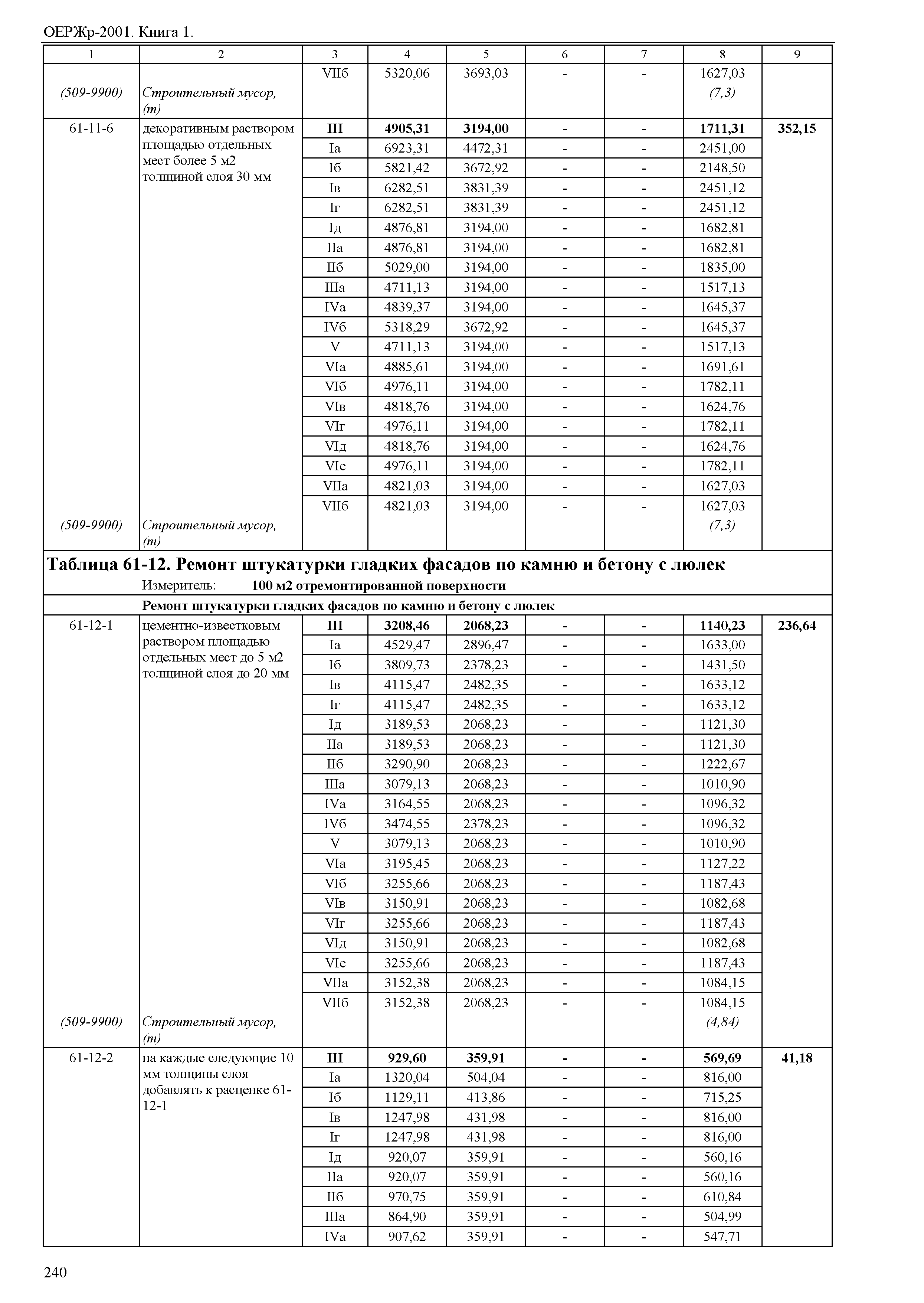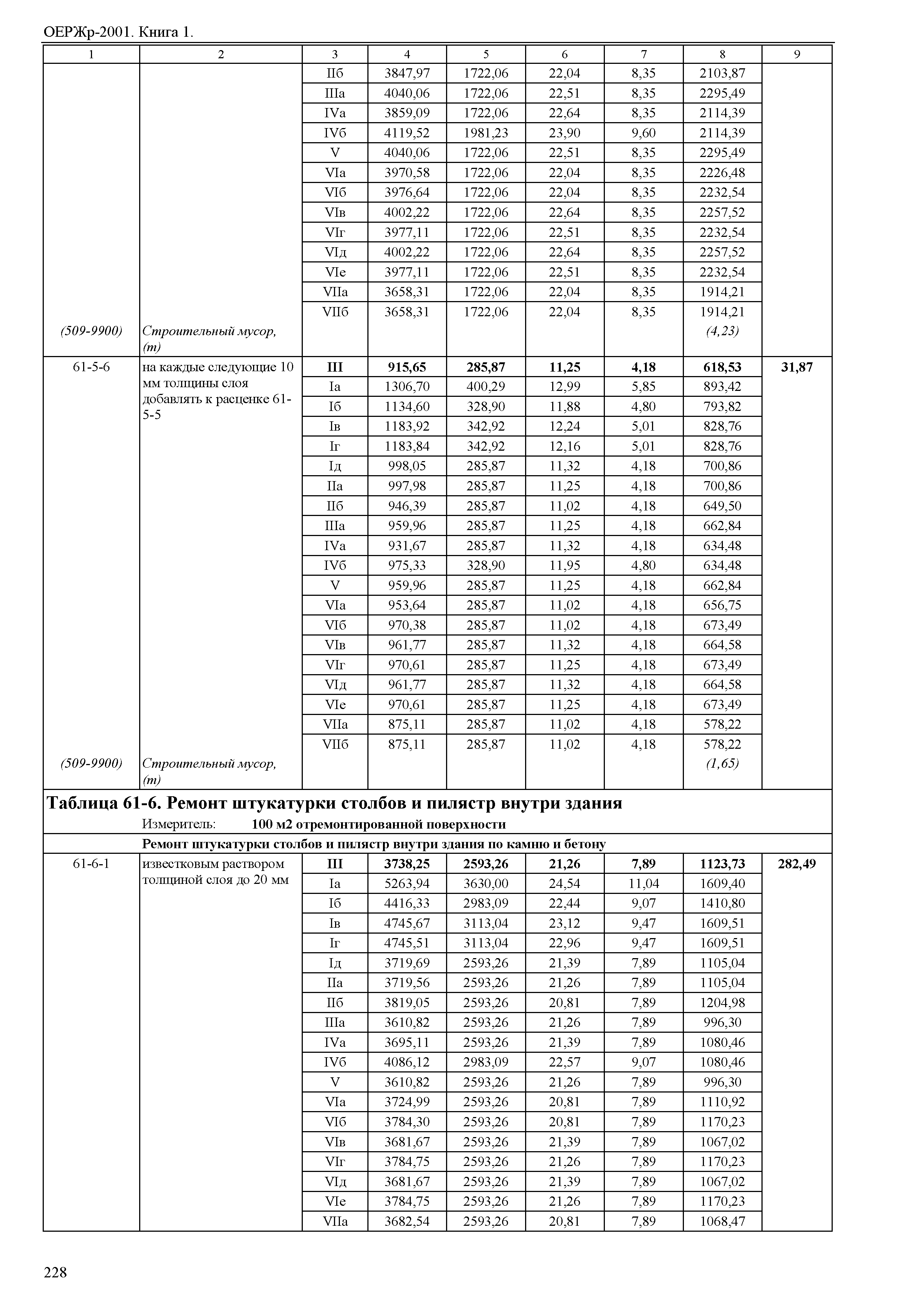| Оглавление: | Раздел 51. Земляные работы Раздел 52. Фундаменты Раздел 53. Стены Раздел 54. Перекрытия Раздел 55. Перегородки Раздел 56. Проемы Раздел 57. Полы Раздел 58. Крыши, кровли Раздел 59. Лестницы, крыльца Раздел 60. Печные работы Раздел 61. Штукатурные работы Раздел 62. Малярные работы Подраздел 62.1. Окраска внутренних помещений Подраздел 62.2. Окраска фасадов Подраздел 62.3. Окраска металлических поверхностей Подраздел 62.4. Разные работы Раздел 63. Стекольные, обойные и облицовочные работы Раздел 64. Лепные работы Раздел 65. Внутренние санитарно-технические работы Подраздел 65.1. Водопровод и канализация Подраздел 65.2. Центральное отопление Подраздел 65.3. Вентиляция Подраздел 65.4. Газоснабжение Подраздел 65.5. Разные работы Раздел 66. Наружные инженерные сети Подраздел 66.1. Реконструкция и ремонт наружных инженерных сетей Подраздел 66.2. Реконструкция и ремонт наружных сетей водопровода бестраншейными методами с применением импортных технологий восстановление водопроводных сетей по методике Восстановление водопроводных сетей по методике "Процесс Феникс" Замена старых труб полиэтиленовыми трубами с помощью пневмопробойника Подраздел 66.3. Реконструкция и ремонт наружных сетей канализации бестраншейными методами с применением импортных технологий Облицовка колодцев полиэтиленом Перекрытие участков канализационных сетей с помощью пневмозаглушек Бестраншейная замена канализационных трубопроводов Раздел 67. Электромонтажные работы Раздел 68. Благоустройство Раздел 69. Прочие ремонтно-строительные работы |