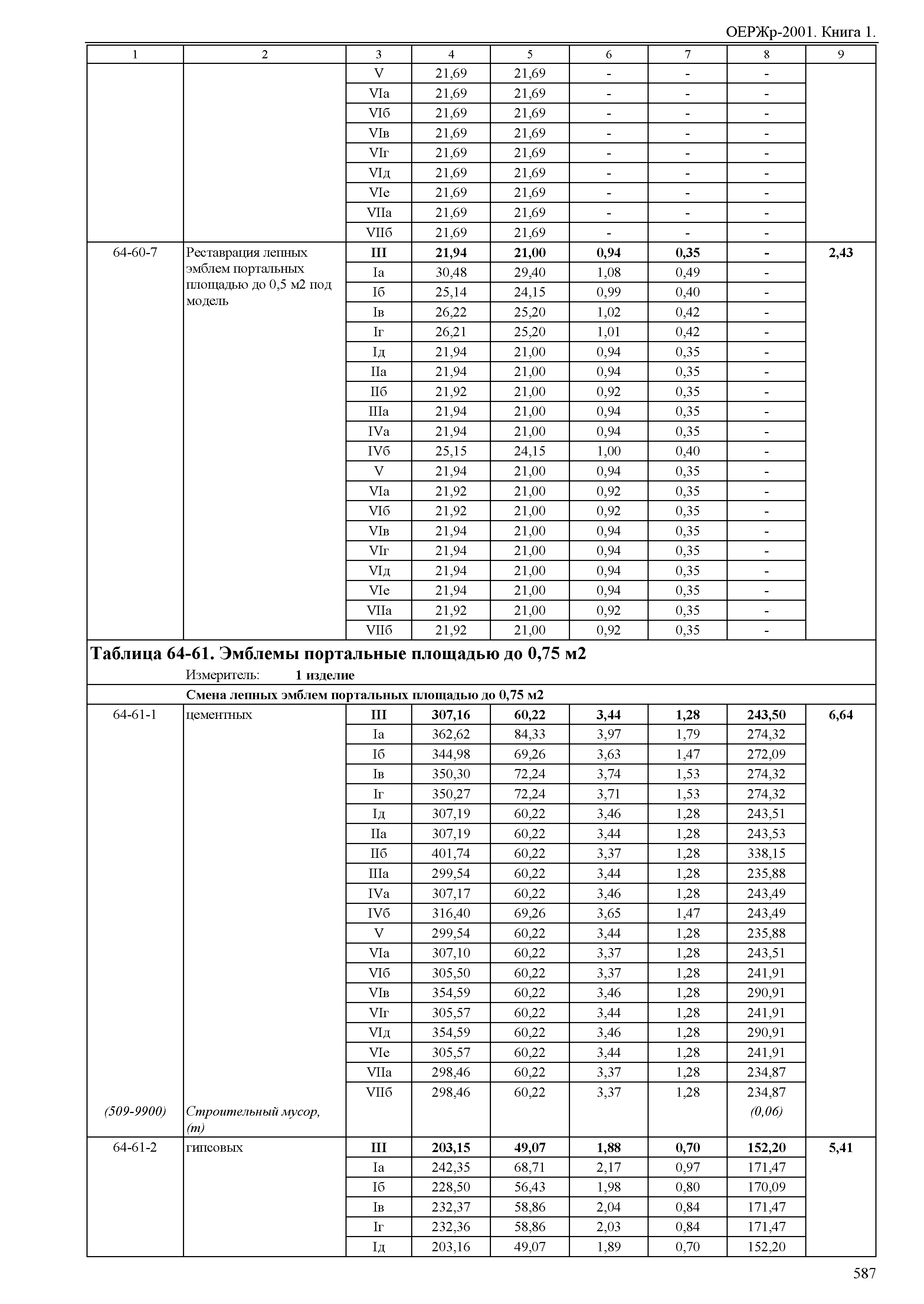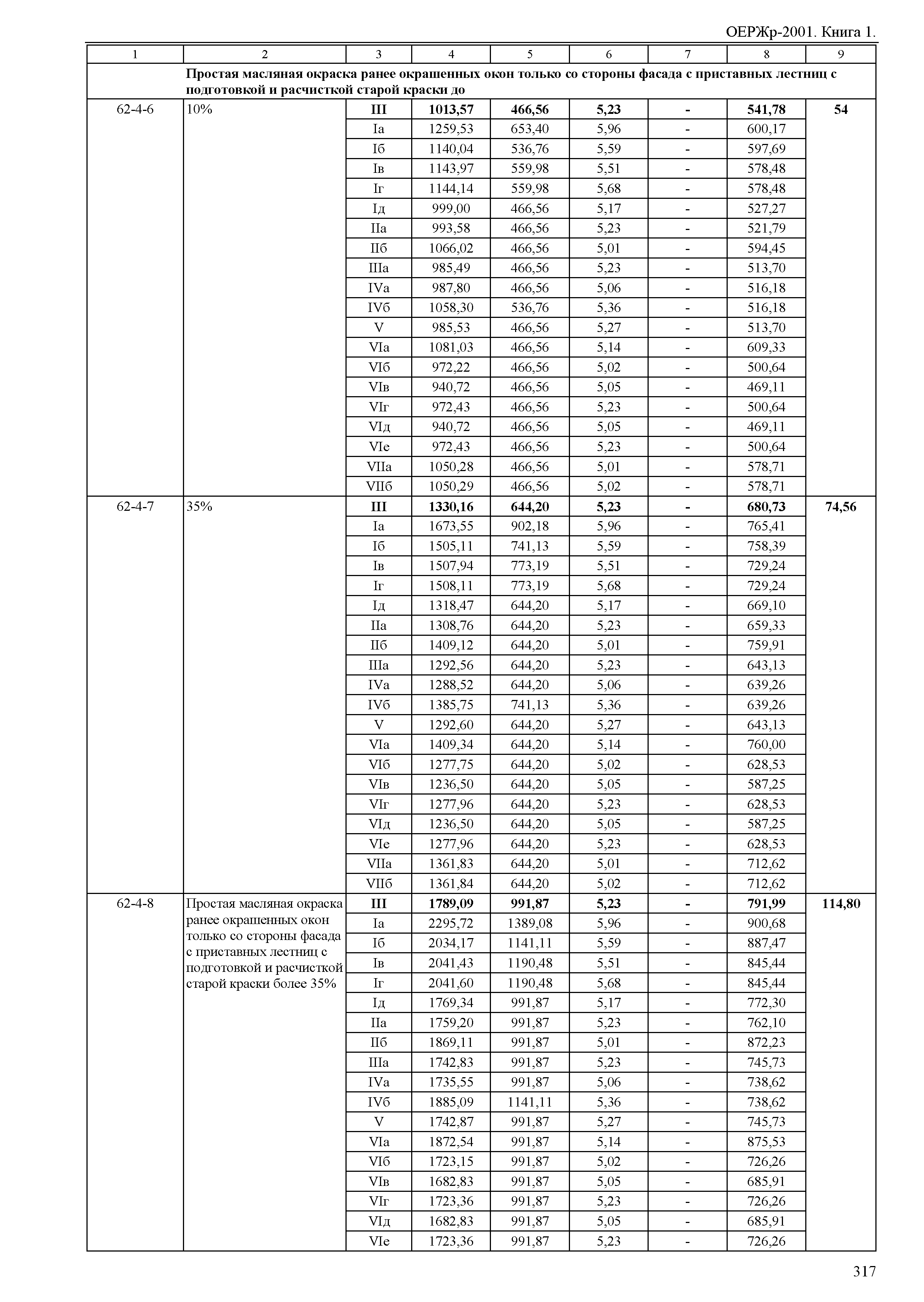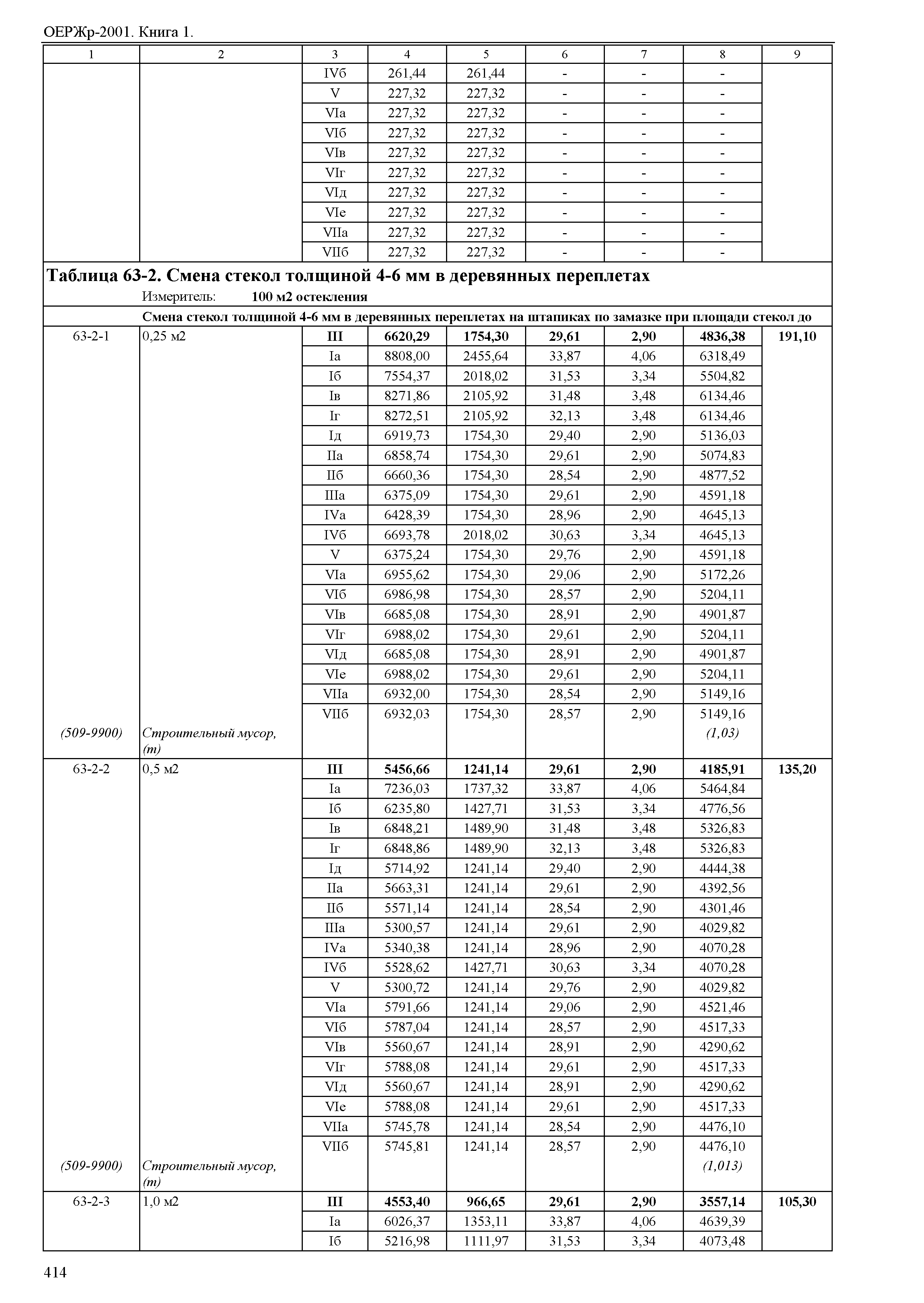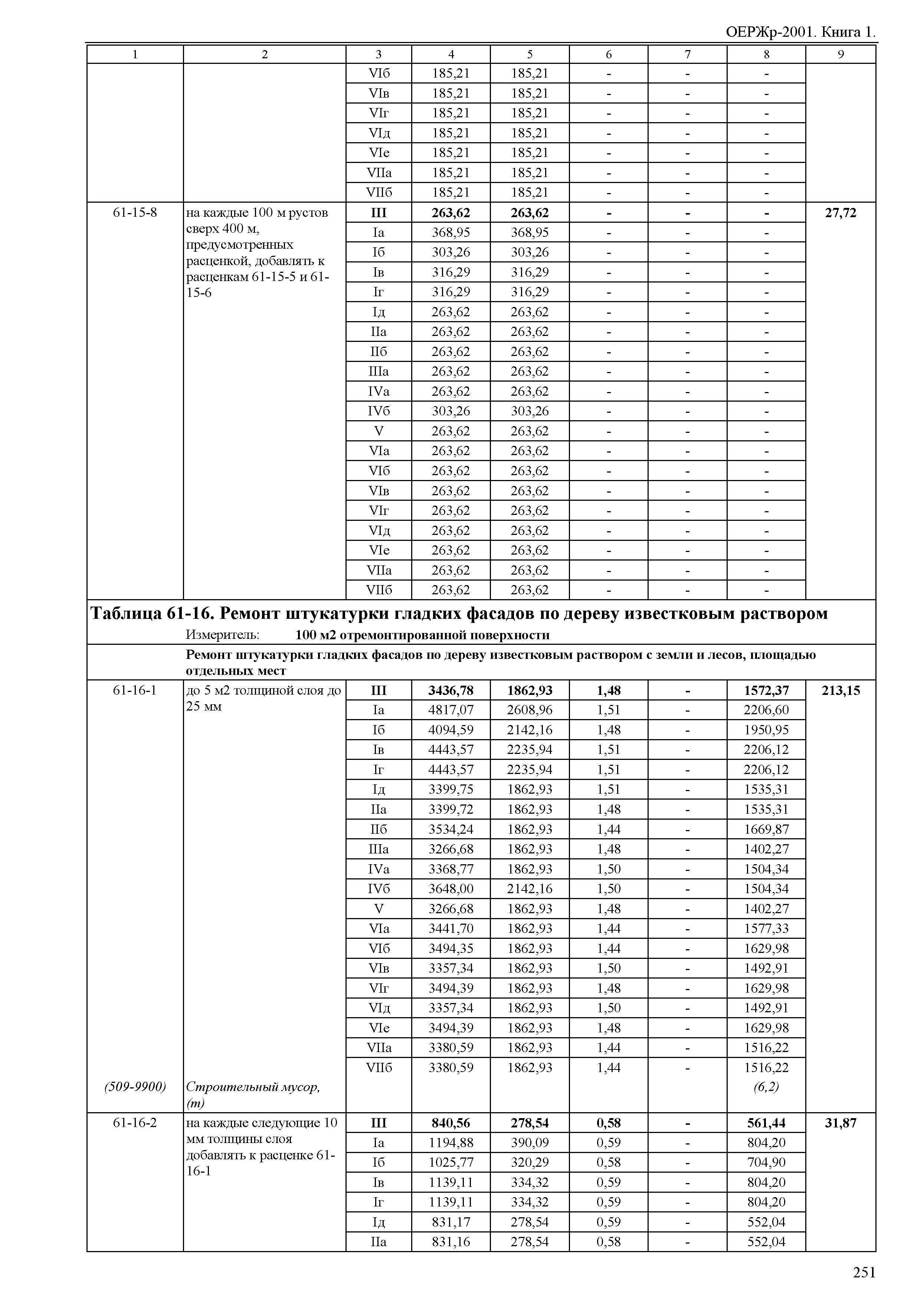 | Оглавление: | Раздел 51. Земляные работы Раздел 52. Фундаменты Раздел 53. Стены Раздел 54. Перекрытия Раздел 55. Перегородки Раздел 56. Проемы Раздел 57. Полы Раздел 58. Крыши, кровли Раздел 59. Лестницы, крыльца Раздел 60. Печные работы Раздел 61. Штукатурные работы Раздел 62. Малярные работы Подраздел 62.1. Окраска внутренних помещений Подраздел 62.2. Окраска фасадов Подраздел 62.3. Окраска металлических поверхностей Подраздел 62.4. Разные работы Раздел 63. Стекольные, обойные и облицовочные работы Раздел 64. Лепные работы Раздел 65. Внутренние санитарно-технические работы Подраздел 65.1. Водопровод и канализация Подраздел 65.2. Центральное отопление Подраздел 65.3. Вентиляция Подраздел 65.4. Газоснабжение Подраздел 65.5. Разные работы Раздел 66. Наружные инженерные сети Подраздел 66.1. Реконструкция и ремонт наружных инженерных сетей Подраздел 66.2. Реконструкция и ремонт наружных сетей водопровода бестраншейными методами с применением импортных технологий восстановление водопроводных сетей по методике Восстановление водопроводных сетей по методике "Процесс Феникс" Замена старых труб полиэтиленовыми трубами с помощью пневмопробойника Подраздел 66.3. Реконструкция и ремонт наружных сетей канализации бестраншейными методами с применением импортных технологий Облицовка колодцев полиэтиленом Перекрытие участков канализационных сетей с помощью пневмозаглушек Бестраншейная замена канализационных трубопроводов Раздел 67. Электромонтажные работы Раздел 68. Благоустройство Раздел 69. Прочие ремонтно-строительные работы |