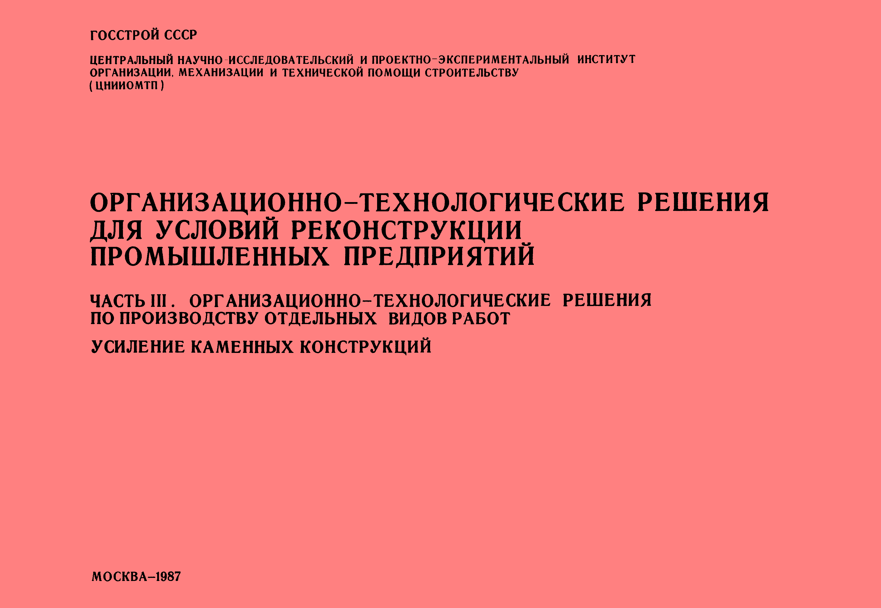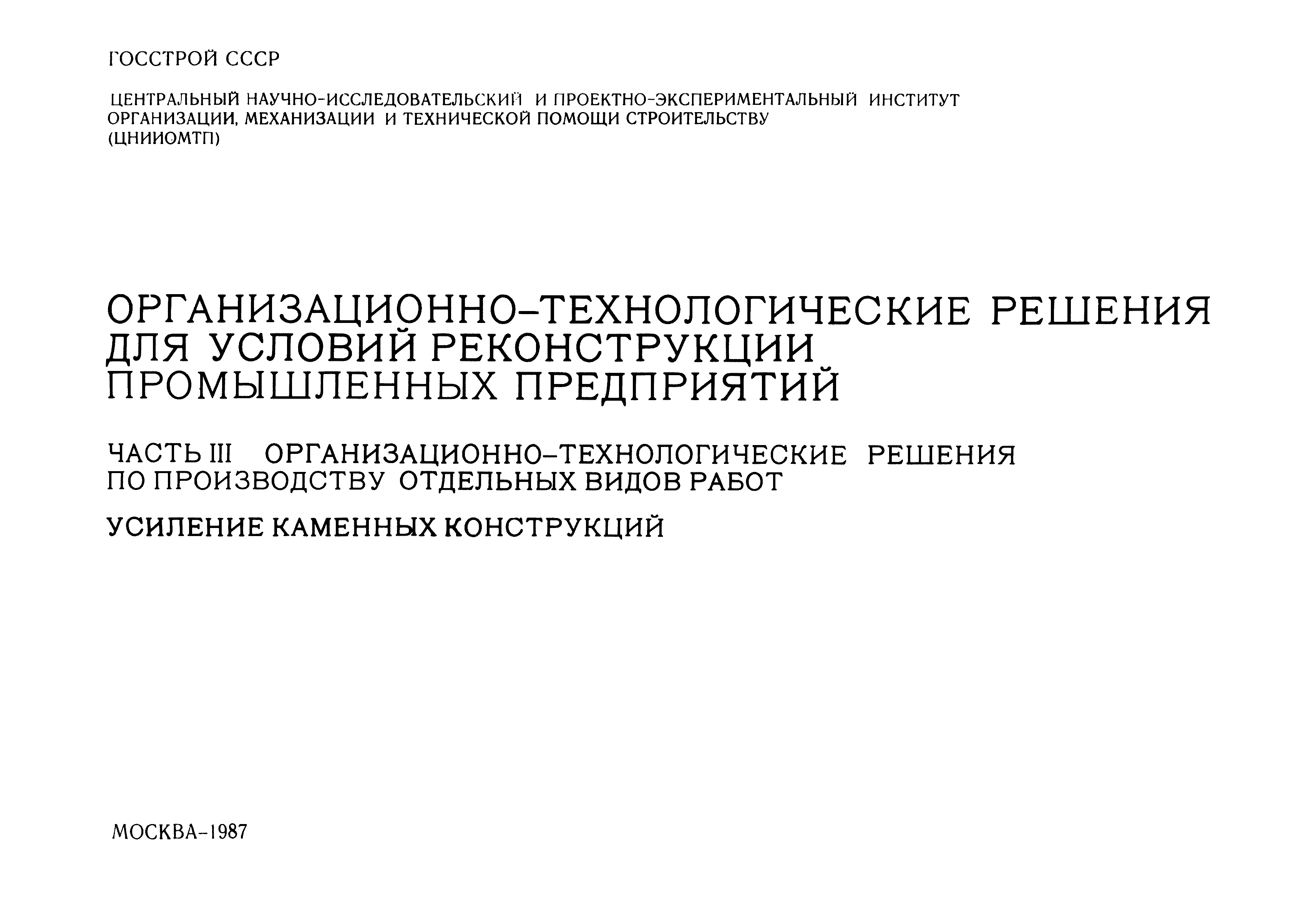 | Название рус.: | Организационно-технологические решения для условий реконструкции промышленных предприятий. Часть III. Организационно-технологические решения по производству отдельных видов работ. Усиление каменных конструкций |