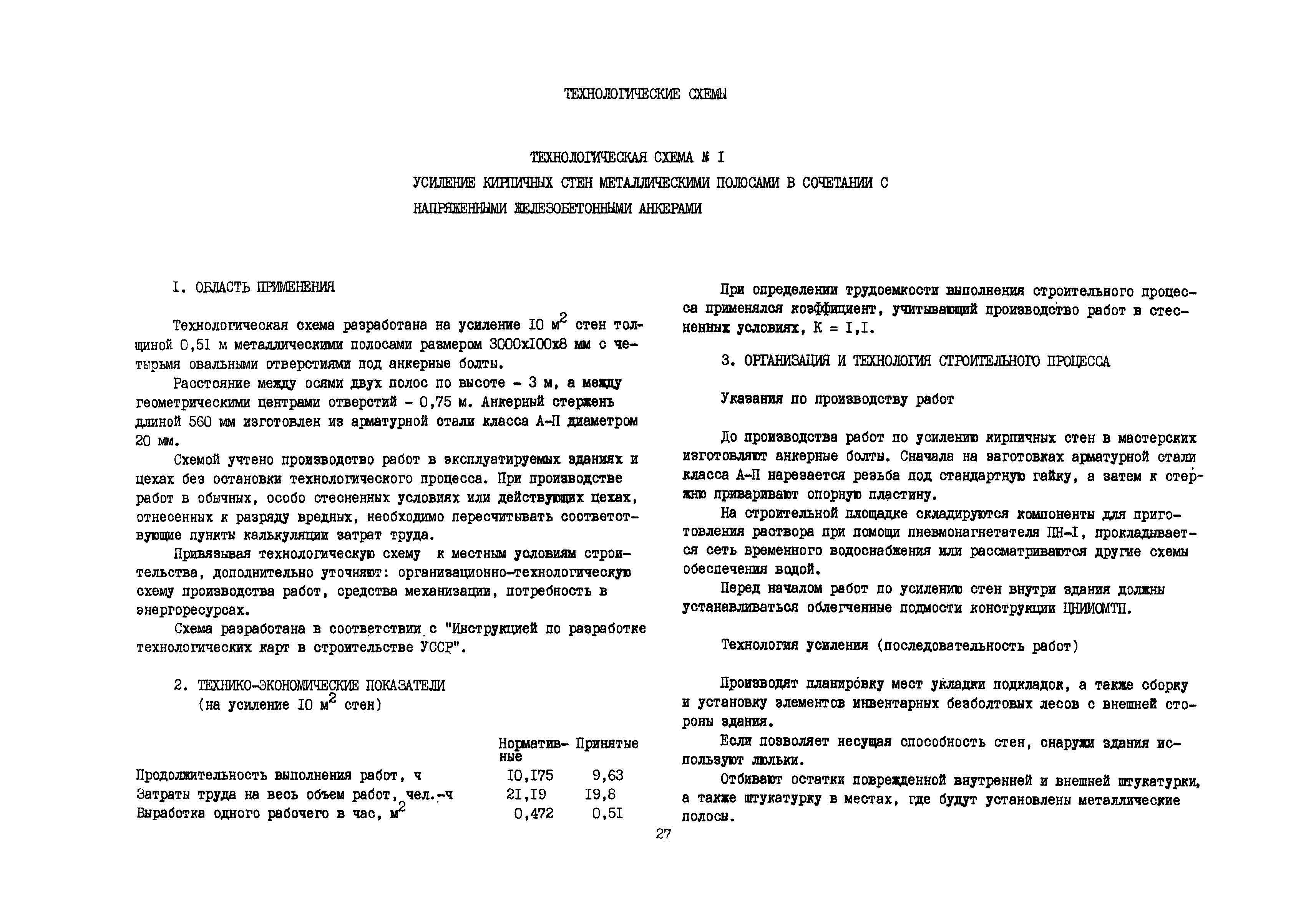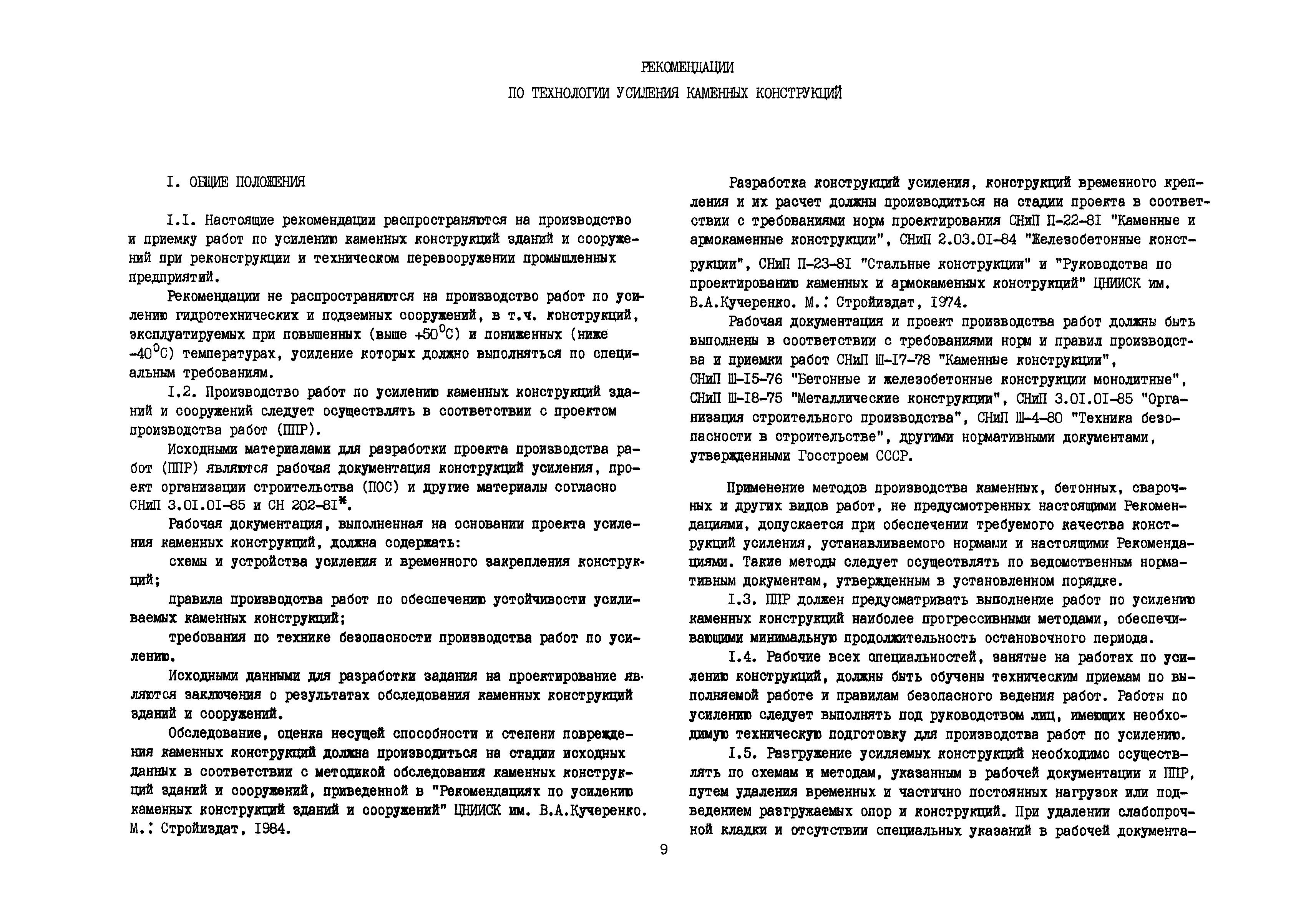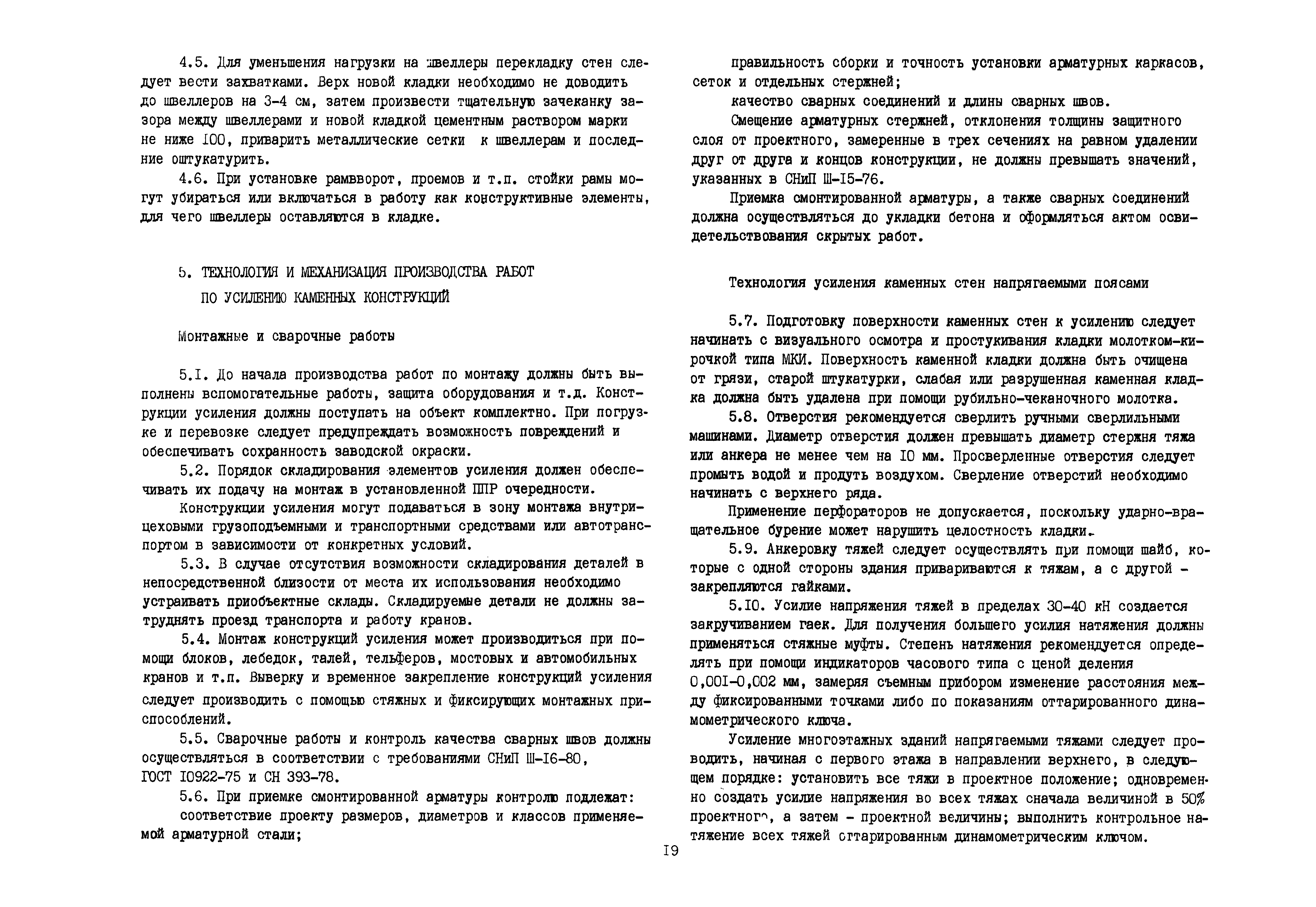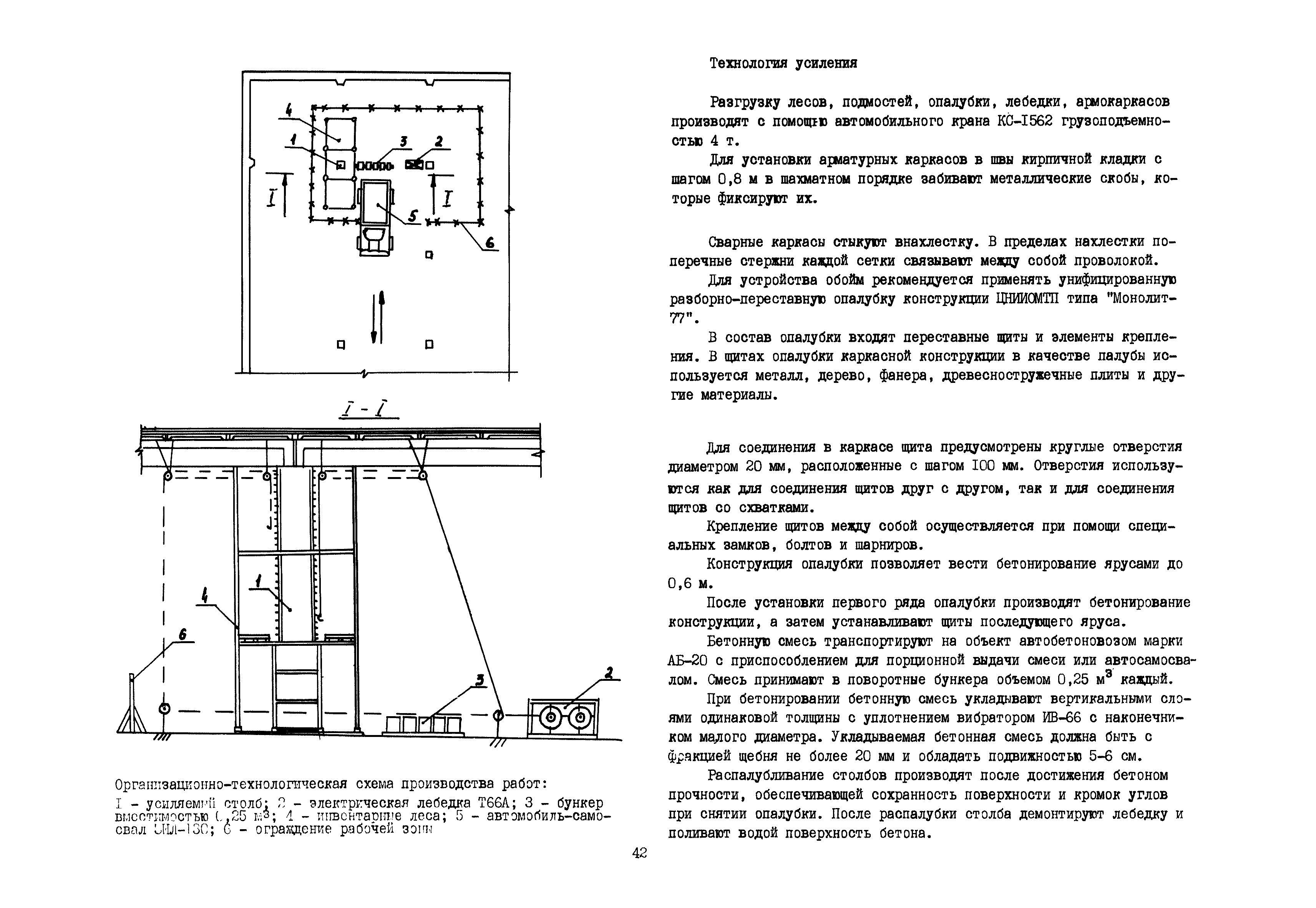 | Оглавление: | Общие положения по разработке и использованию организационно-технологических решений (ОТР) по выполнению отдельных видов работ в условиях реконструкции промышленных предприятий Рекомендации по технологии усиления каменных конструкций 1 Общие положения 2 Классификация и характеристика методов усиления каменных конструкций 3 Материалы 4 Временное крепление каменных конструкций 5 Технология и механизация производства работ по усилению каменных конструкций 6 Приемка усиленных конструкций 7 Техника безопасности при производстве работ Технологические схемы Технологическая схема № 1. Усиление кирпичных стен металлическими полосами в сочетании с напряженными железобетонными анкерами Технологическая схема № 2. Усиление кирпичных пилястр металлическими обоймами—стойками с напрягаемыми хомутами Технологическая схема № 3. Усиление кирпичных столбов железобетонными обоймами |
