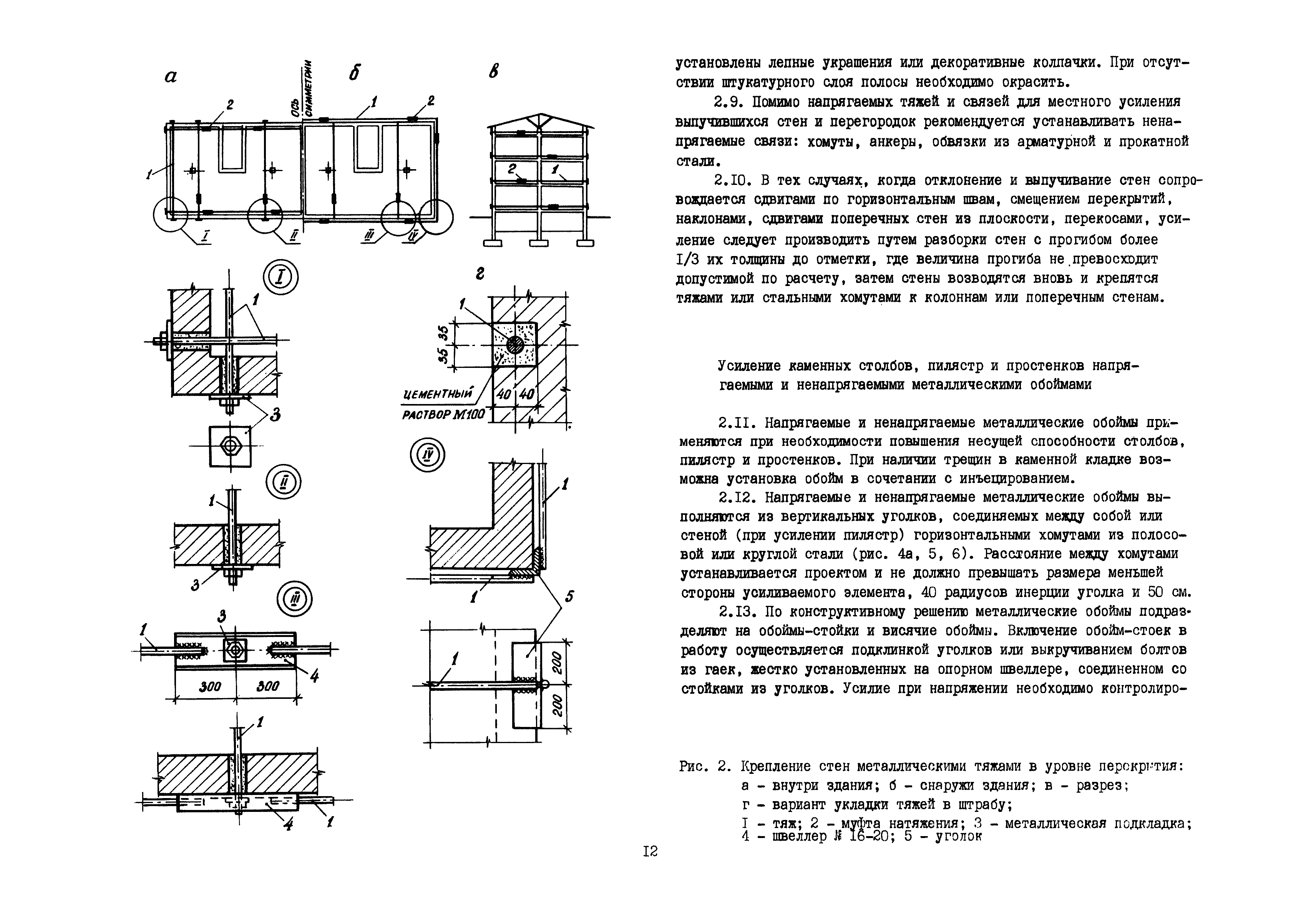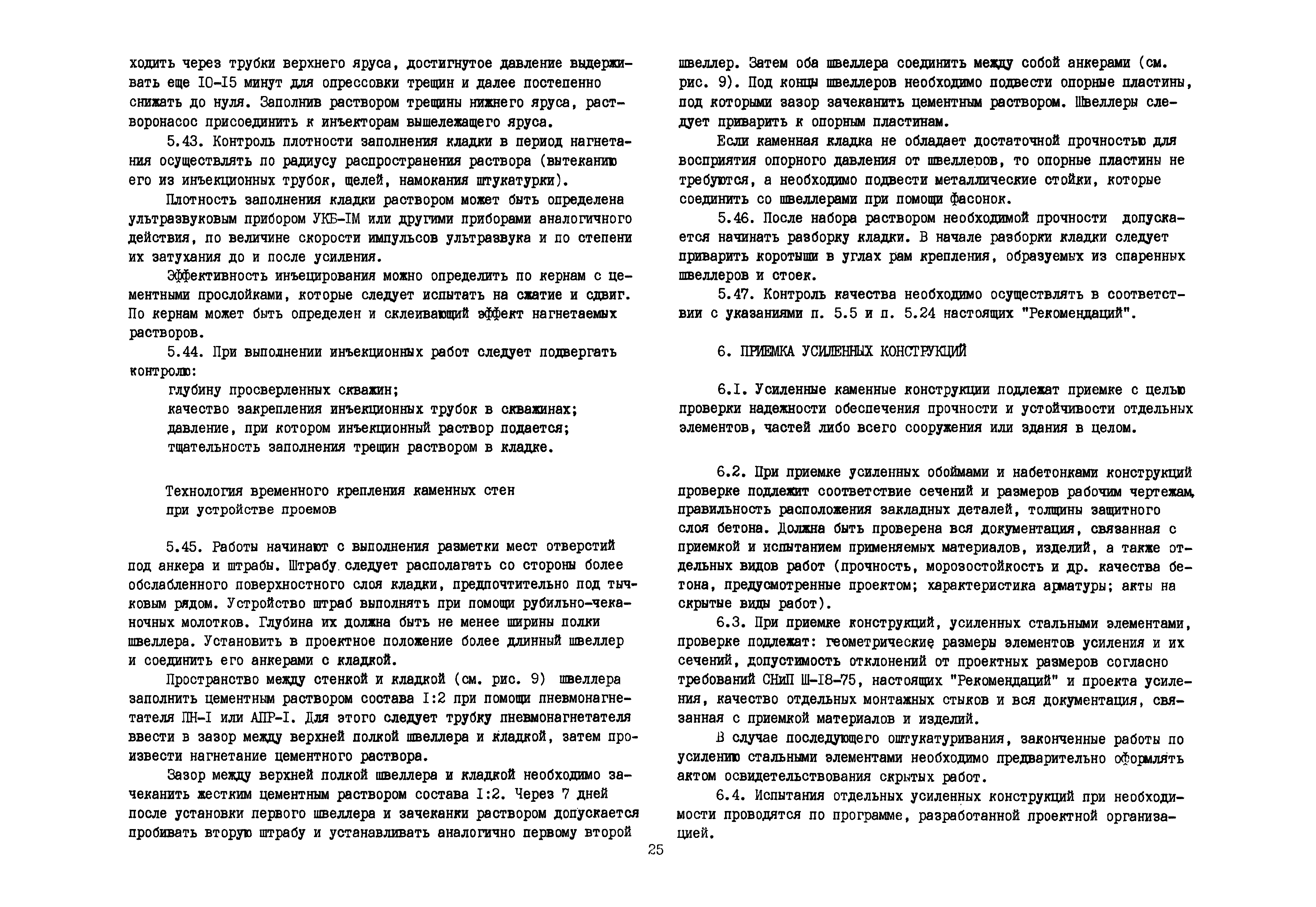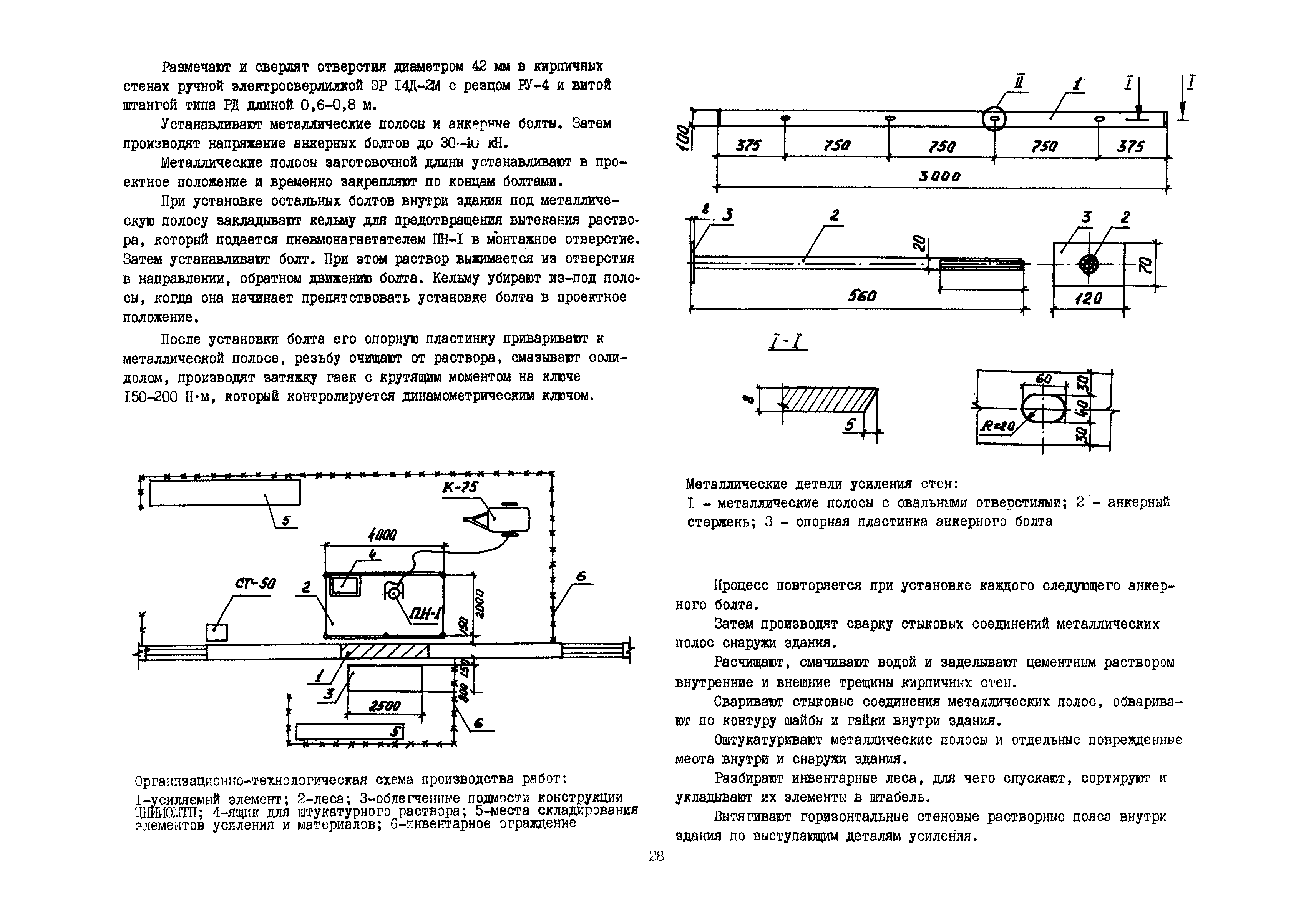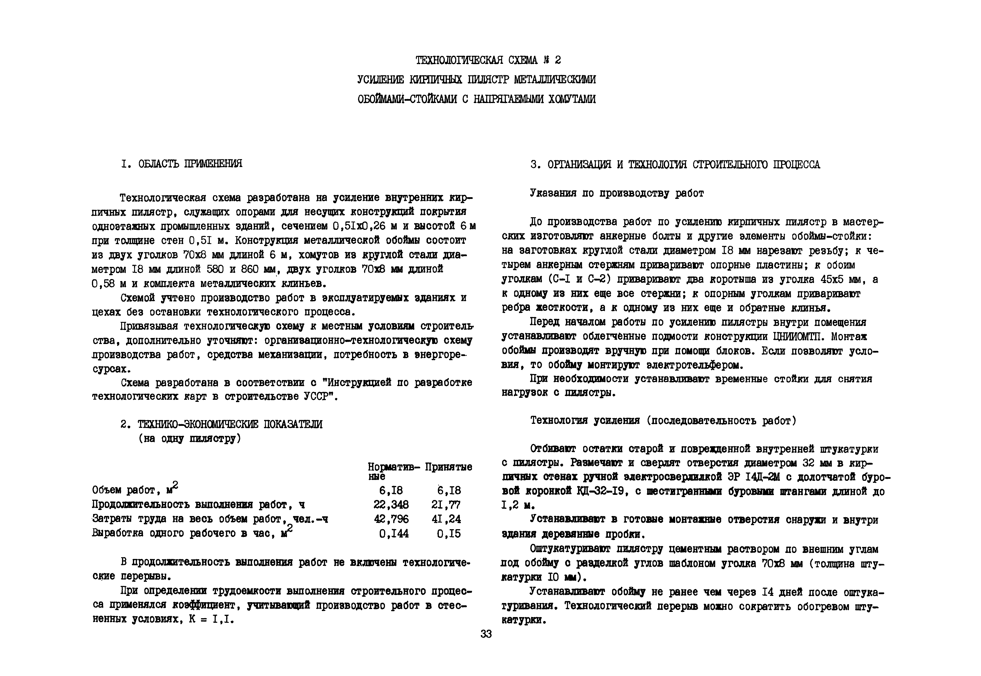 | Оглавление: | Общие положения по разработке и использованию организационно-технологических решений (ОТР) по выполнению отдельных видов работ в условиях реконструкции промышленных предприятий Рекомендации по технологии усиления каменных конструкций 1 Общие положения 2 Классификация и характеристика методов усиления каменных конструкций 3 Материалы 4 Временное крепление каменных конструкций 5 Технология и механизация производства работ по усилению каменных конструкций 6 Приемка усиленных конструкций 7 Техника безопасности при производстве работ Технологические схемы Технологическая схема № 1. Усиление кирпичных стен металлическими полосами в сочетании с напряженными железобетонными анкерами Технологическая схема № 2. Усиление кирпичных пилястр металлическими обоймами—стойками с напрягаемыми хомутами Технологическая схема № 3. Усиление кирпичных столбов железобетонными обоймами |