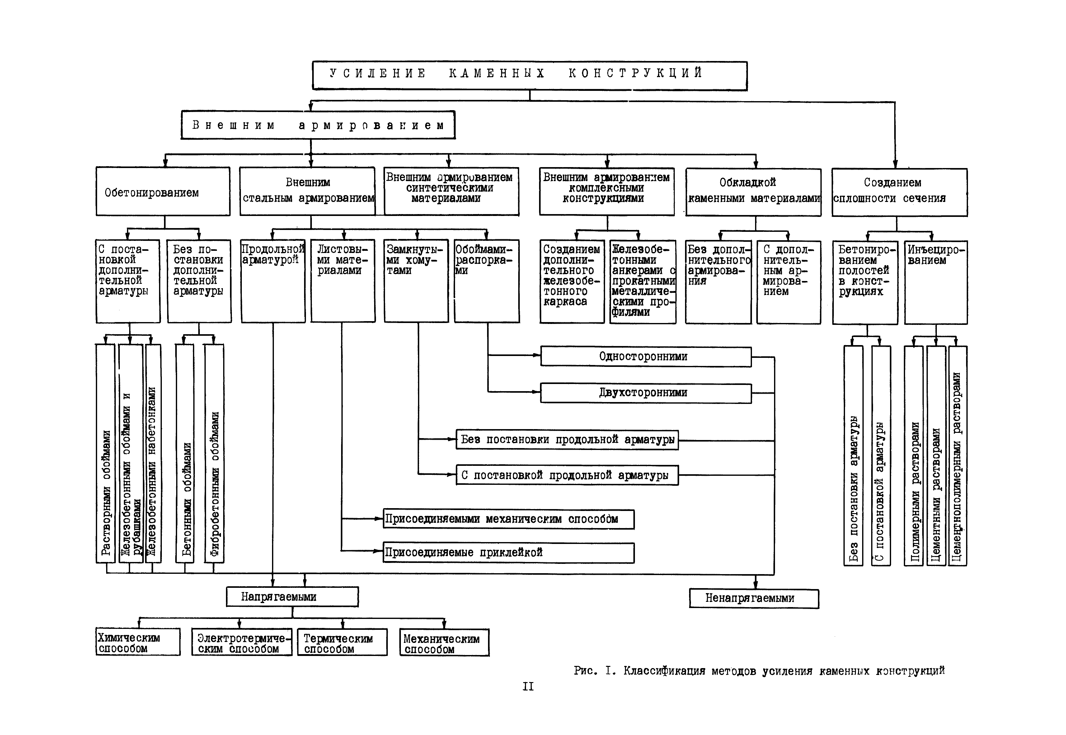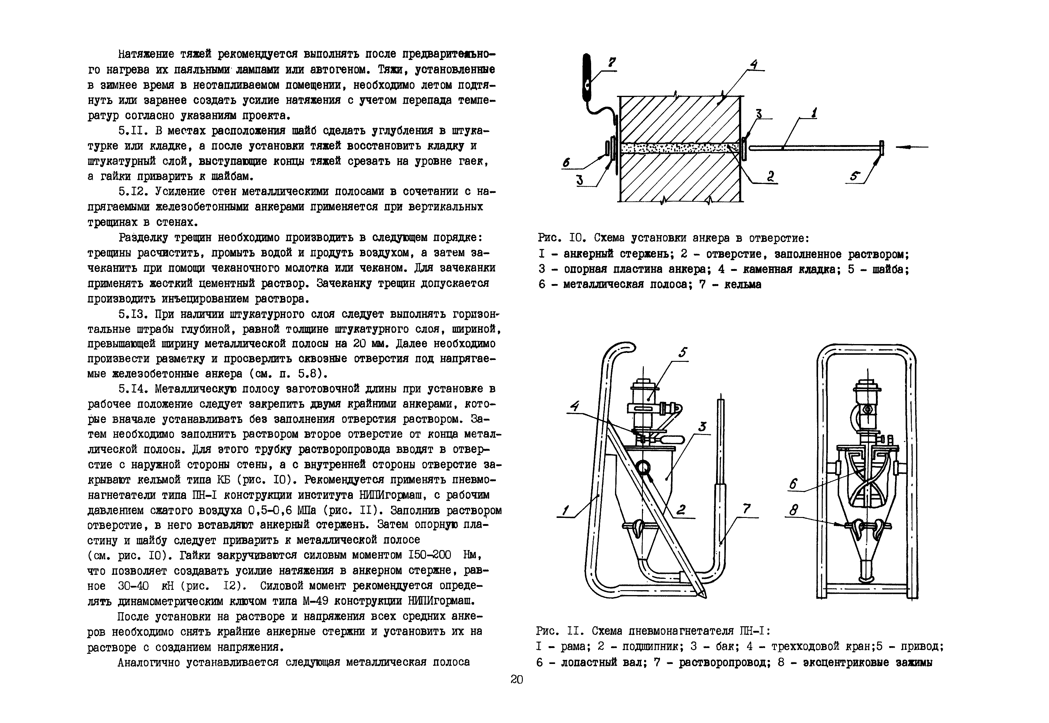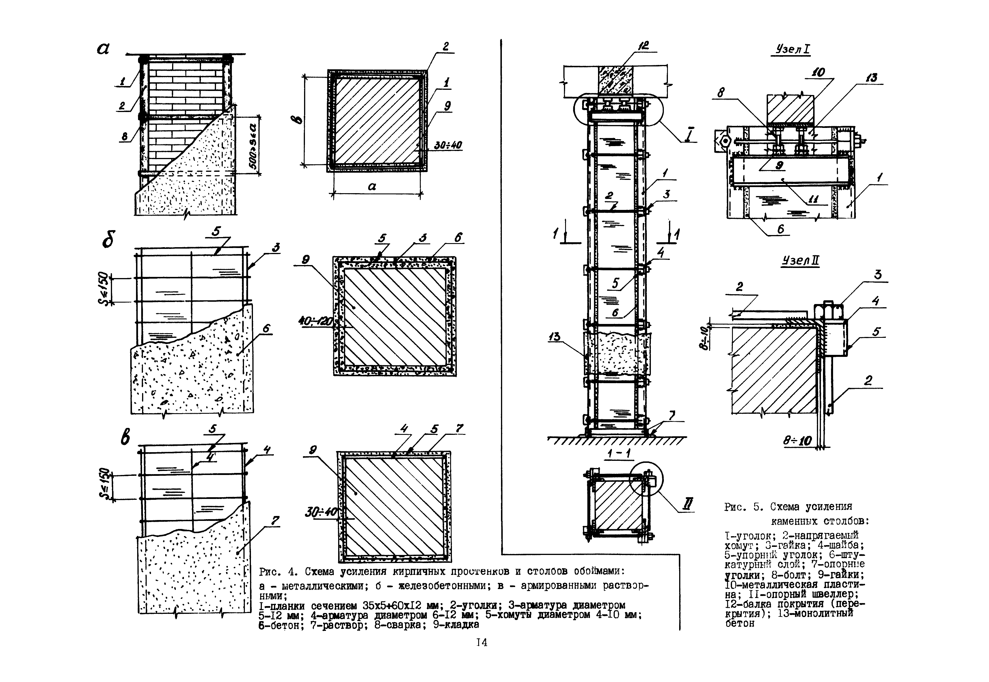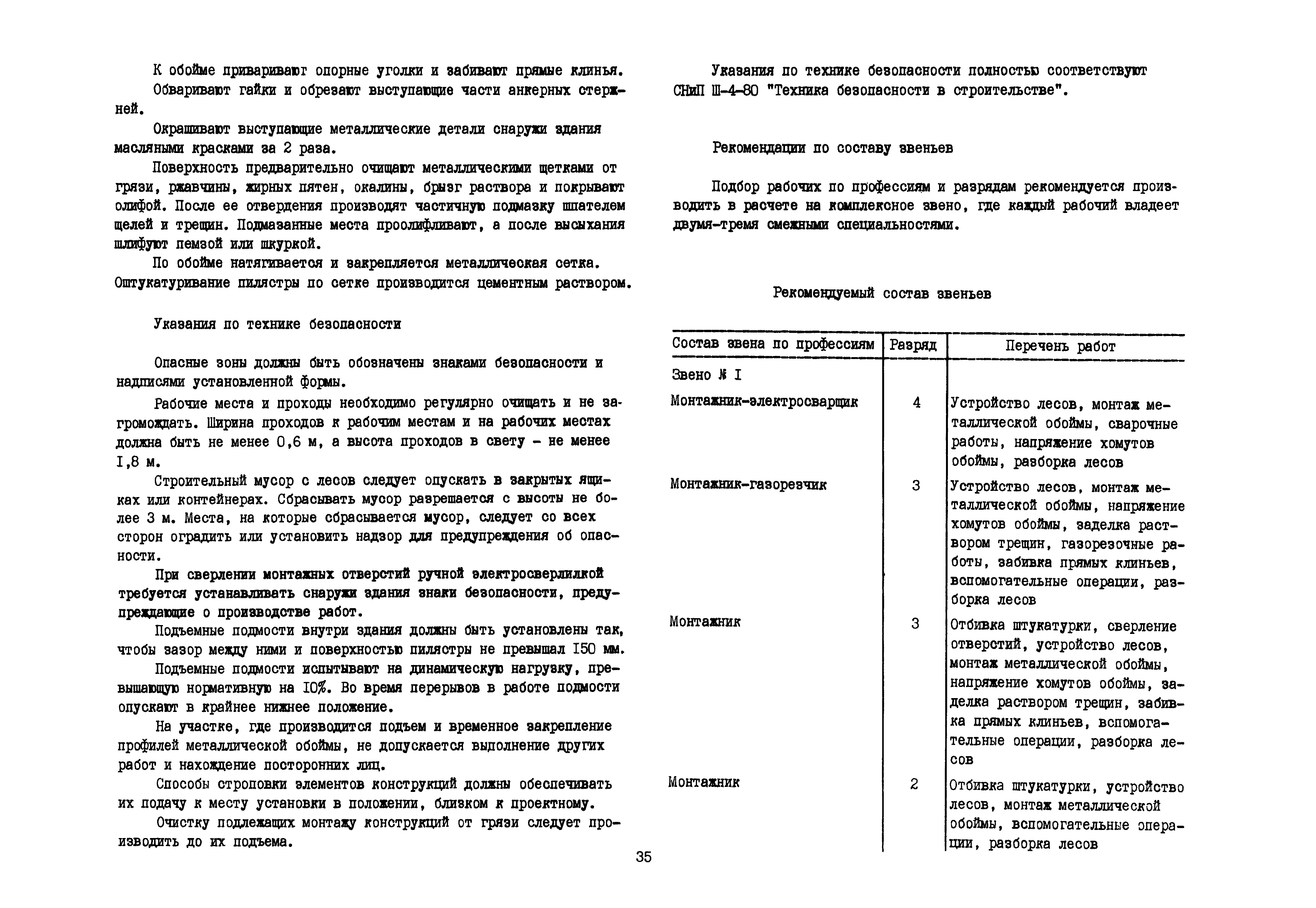 | Оглавление: | Общие положения по разработке и использованию организационно-технологических решений (ОТР) по выполнению отдельных видов работ в условиях реконструкции промышленных предприятий Рекомендации по технологии усиления каменных конструкций 1 Общие положения 2 Классификация и характеристика методов усиления каменных конструкций 3 Материалы 4 Временное крепление каменных конструкций 5 Технология и механизация производства работ по усилению каменных конструкций 6 Приемка усиленных конструкций 7 Техника безопасности при производстве работ Технологические схемы Технологическая схема № 1. Усиление кирпичных стен металлическими полосами в сочетании с напряженными железобетонными анкерами Технологическая схема № 2. Усиление кирпичных пилястр металлическими обоймами—стойками с напрягаемыми хомутами Технологическая схема № 3. Усиление кирпичных столбов железобетонными обоймами |