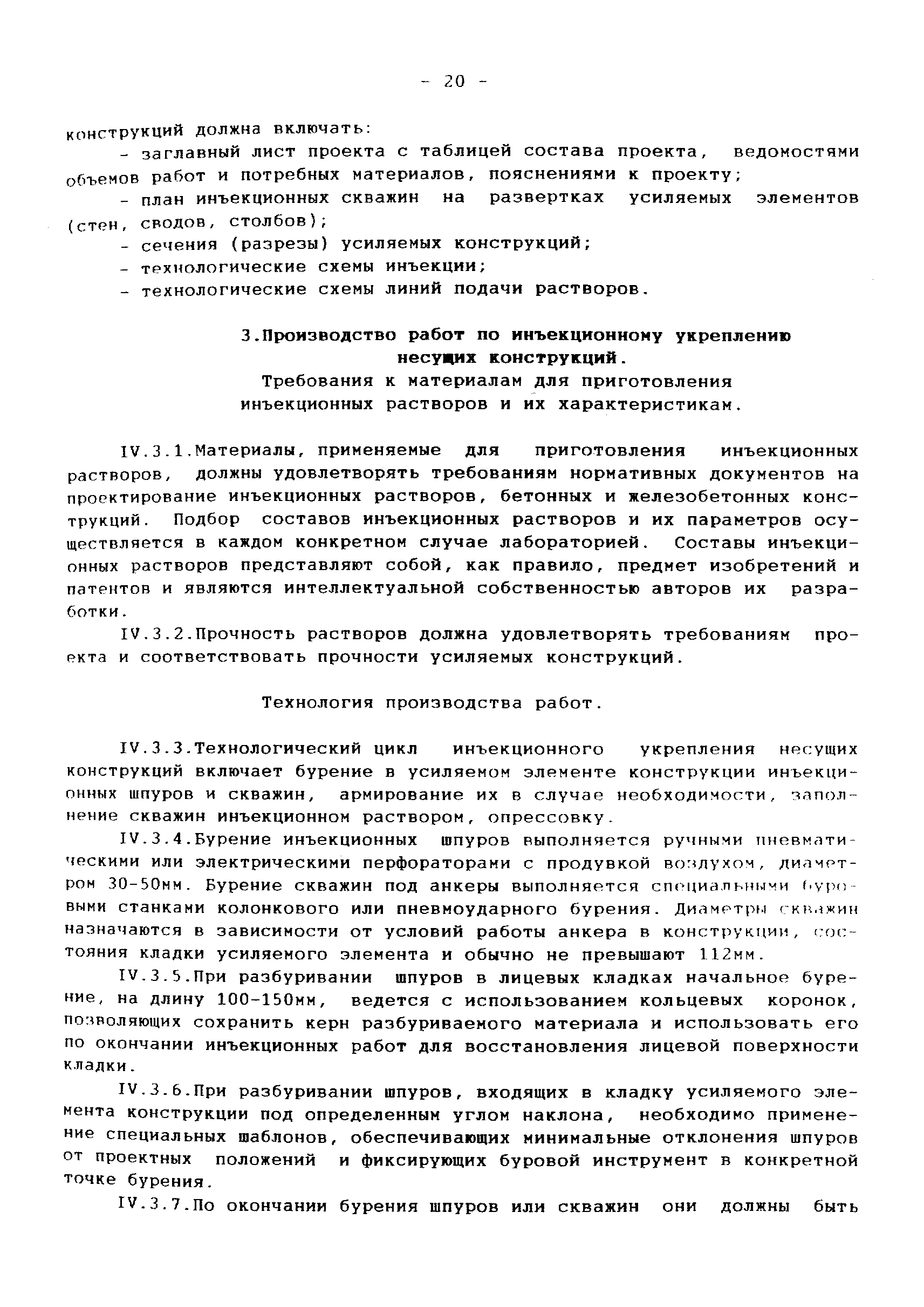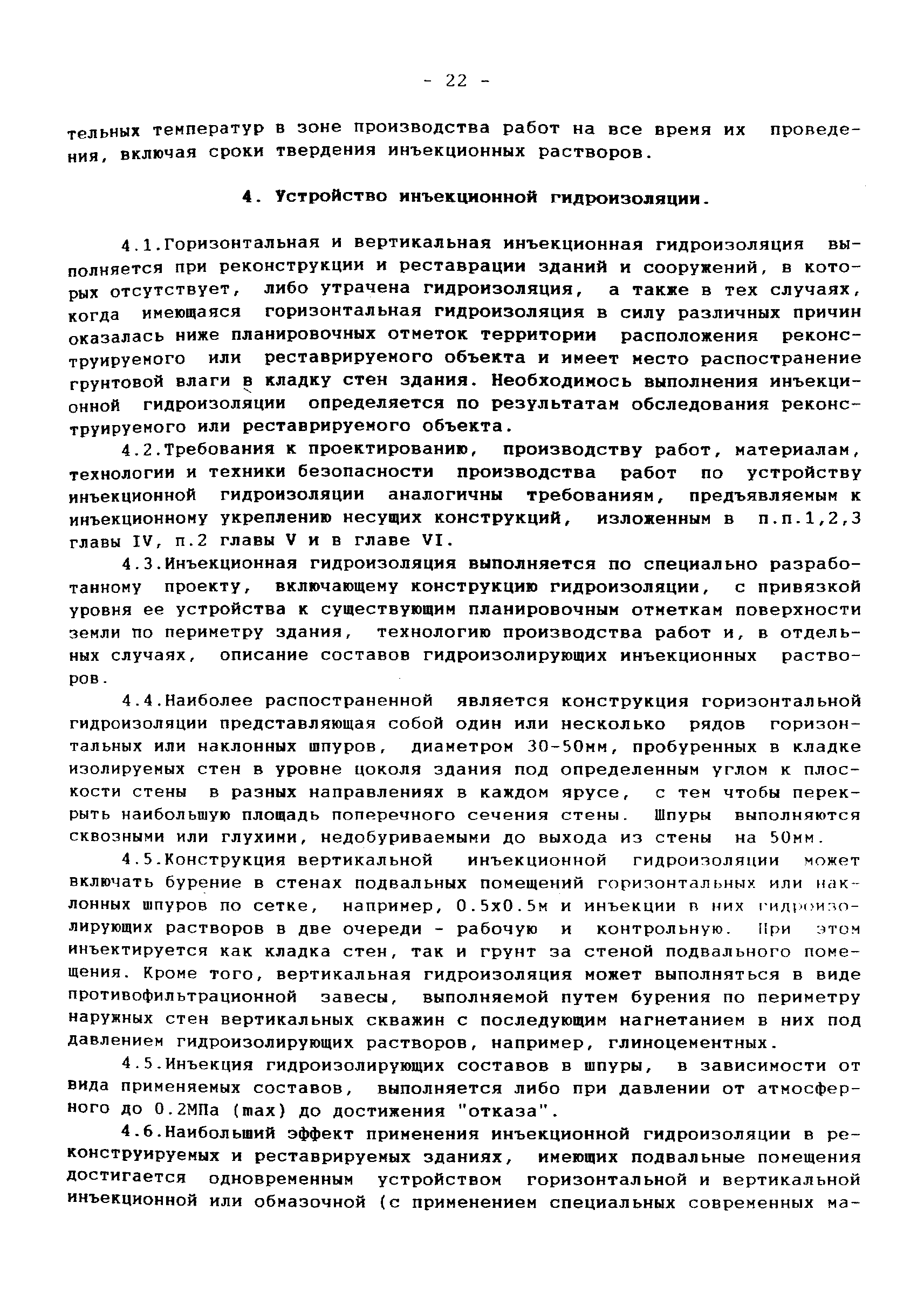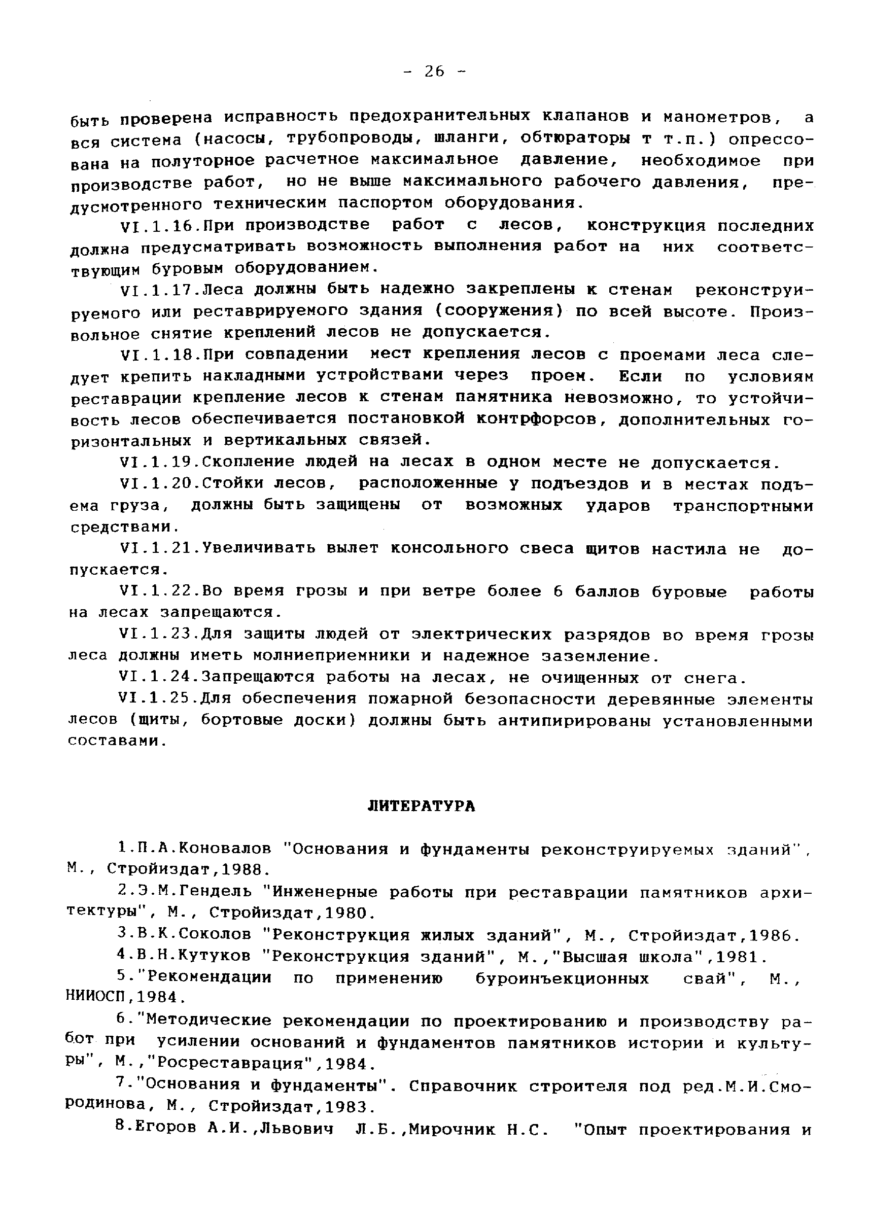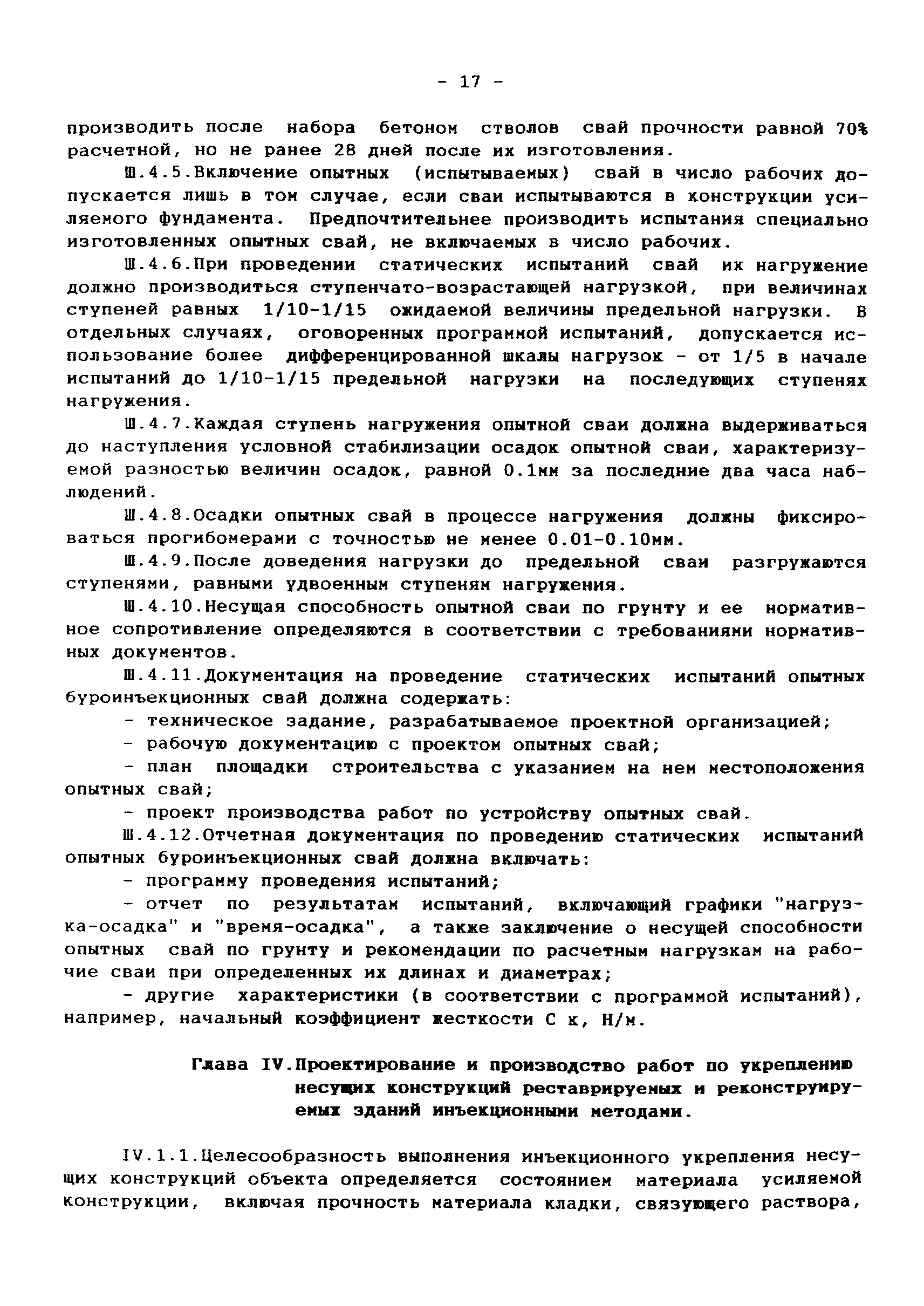 | Оглавление: | 1 Аннотация 2 Введение 3.Общая часть Инженерно-геологические изыскания, обследование существующих фундаментов Традиционные конструкции фундаментов зданий и сооружений старой постройки Традиционные способы усиления фундаментов Современные методы усиления фундаментов 4.Глава I. Основные положения I.I Общие принципы проектирования усиления А. Усиление грунтов основания и фундаментов 5 Глава II. Проектирование усиления II. 1. Рекомендуемая область применения усиления грунтов основания и фундаментов реставрируемых и реконструируемых объектов инъекционными методами II.2. Основные принципы проектирования II.3. Расчет буроинъекционных свай по несущей способности 6.Глава III.Производство работ по усилению оснований и фундаментов III.I Материалы для изготовления буроинъекционных свай и составы растворов III.2 Технология производства работ Б. Устройство буроинъекционных свай III.3. Контроль качества работ III.4. Статические испытания буроинъекционных свай 7.Глава IV. Проектирование и производство работ по укреплению несущих конструкций реставрируемых и реконструируемых зданий инъекционными методами IV.2. Проектирование инъекционного укрепления несущих конструкций IV.3. Производство работ по инъекционному укреплению несущих конструкций IV. 4. Устройство инъекционной гидроизоляции 8. Глава V. Приемка работ V.1. Цементационные работы и устройство буроинъекционных свай V.2. Инъекционные работы и устройство анкеров 9. Глава VI. Техника безопасности производства работ 10. Литература Приложение 1. Форма журнала производства работ по укрепительной цементации (инъекции). Журнал производства работ по укрепительной цементации Приложение 2. Форма журнала изготовления буроинъекционных свай (титульный лист) |