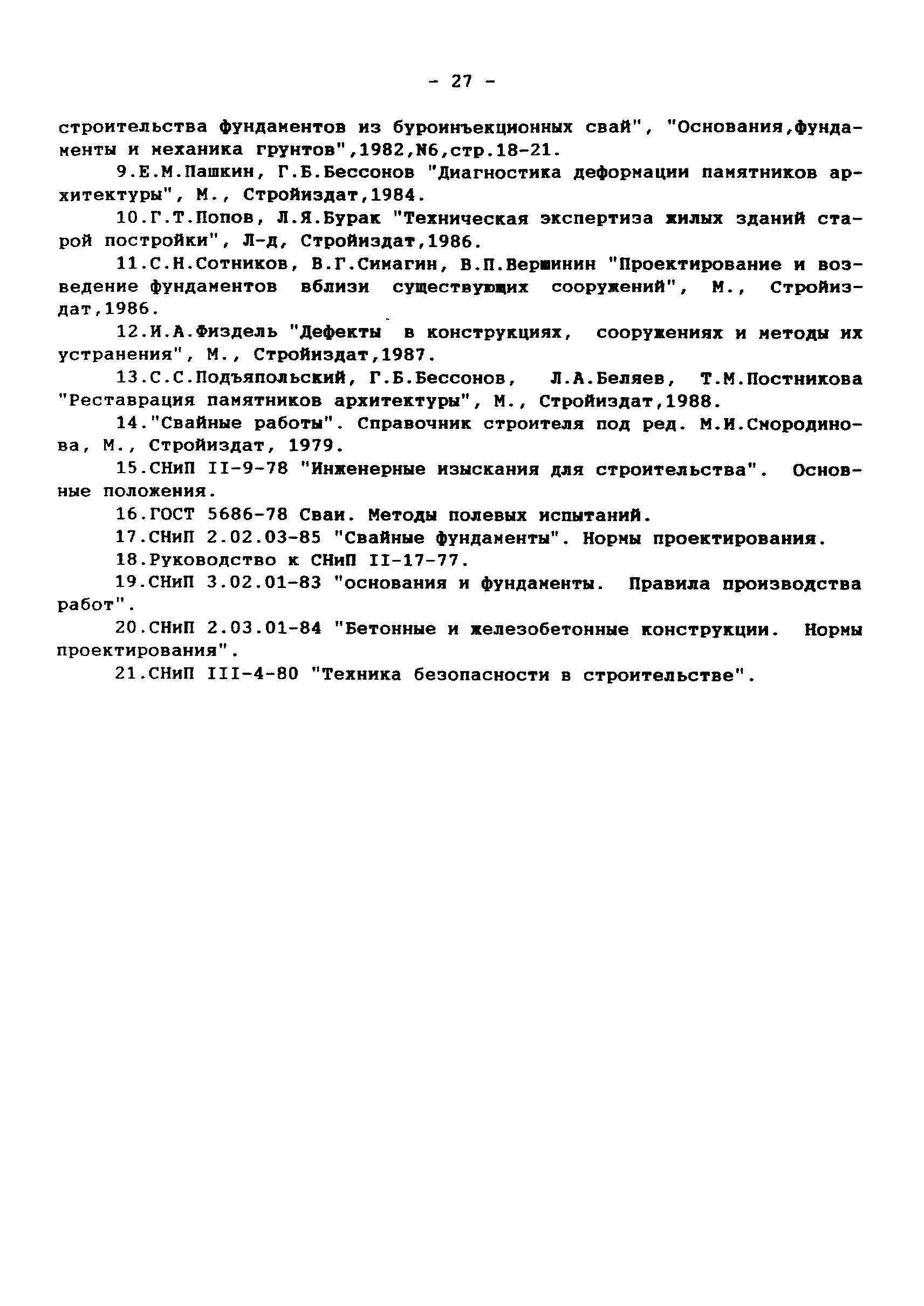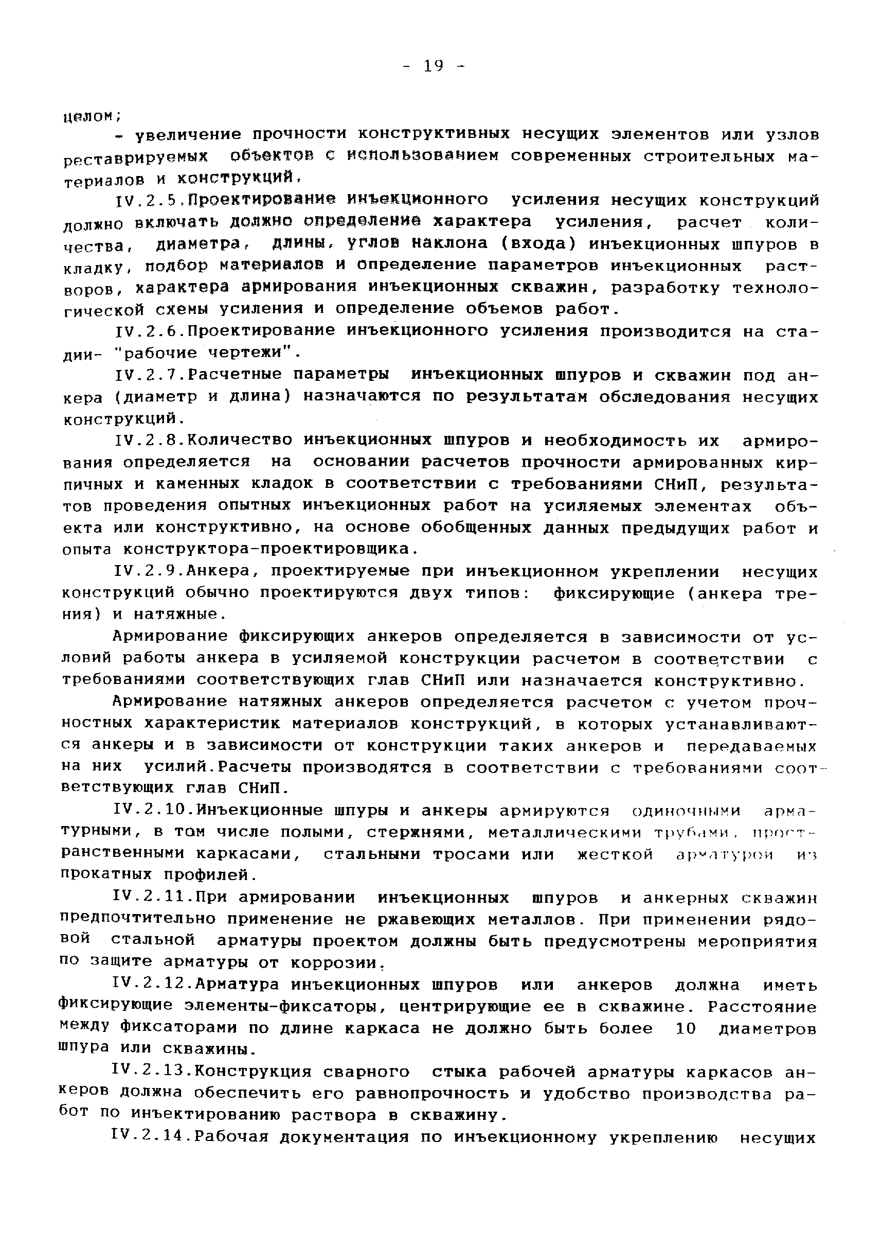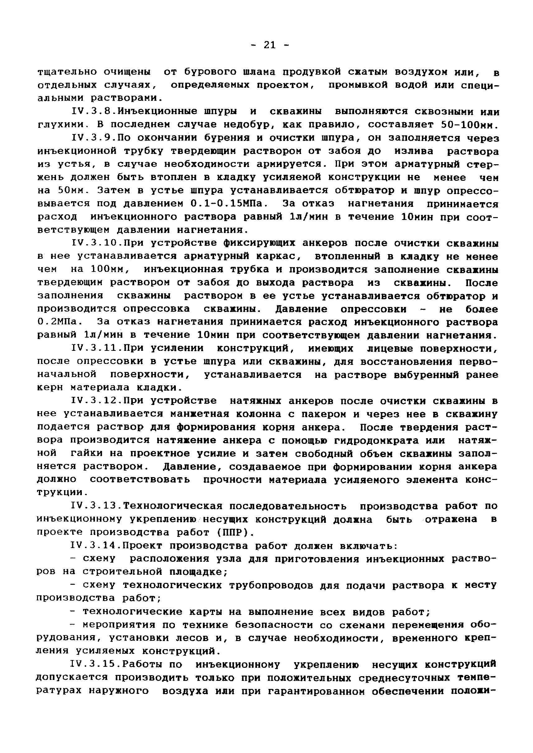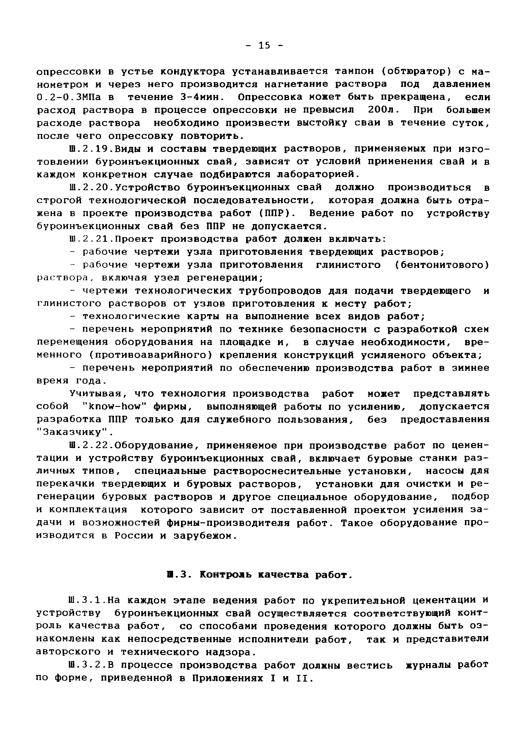 | Оглавление: | 1 Аннотация 2 Введение 3.Общая часть Инженерно-геологические изыскания, обследование существующих фундаментов Традиционные конструкции фундаментов зданий и сооружений старой постройки Традиционные способы усиления фундаментов Современные методы усиления фундаментов 4.Глава I. Основные положения I.I Общие принципы проектирования усиления А. Усиление грунтов основания и фундаментов 5 Глава II. Проектирование усиления II. 1. Рекомендуемая область применения усиления грунтов основания и фундаментов реставрируемых и реконструируемых объектов инъекционными методами II.2. Основные принципы проектирования II.3. Расчет буроинъекционных свай по несущей способности 6.Глава III.Производство работ по усилению оснований и фундаментов III.I Материалы для изготовления буроинъекционных свай и составы растворов III.2 Технология производства работ Б. Устройство буроинъекционных свай III.3. Контроль качества работ III.4. Статические испытания буроинъекционных свай 7.Глава IV. Проектирование и производство работ по укреплению несущих конструкций реставрируемых и реконструируемых зданий инъекционными методами IV.2. Проектирование инъекционного укрепления несущих конструкций IV.3. Производство работ по инъекционному укреплению несущих конструкций IV. 4. Устройство инъекционной гидроизоляции 8. Глава V. Приемка работ V.1. Цементационные работы и устройство буроинъекционных свай V.2. Инъекционные работы и устройство анкеров 9. Глава VI. Техника безопасности производства работ 10. Литература Приложение 1. Форма журнала производства работ по укрепительной цементации (инъекции). Журнал производства работ по укрепительной цементации Приложение 2. Форма журнала изготовления буроинъекционных свай (титульный лист) |