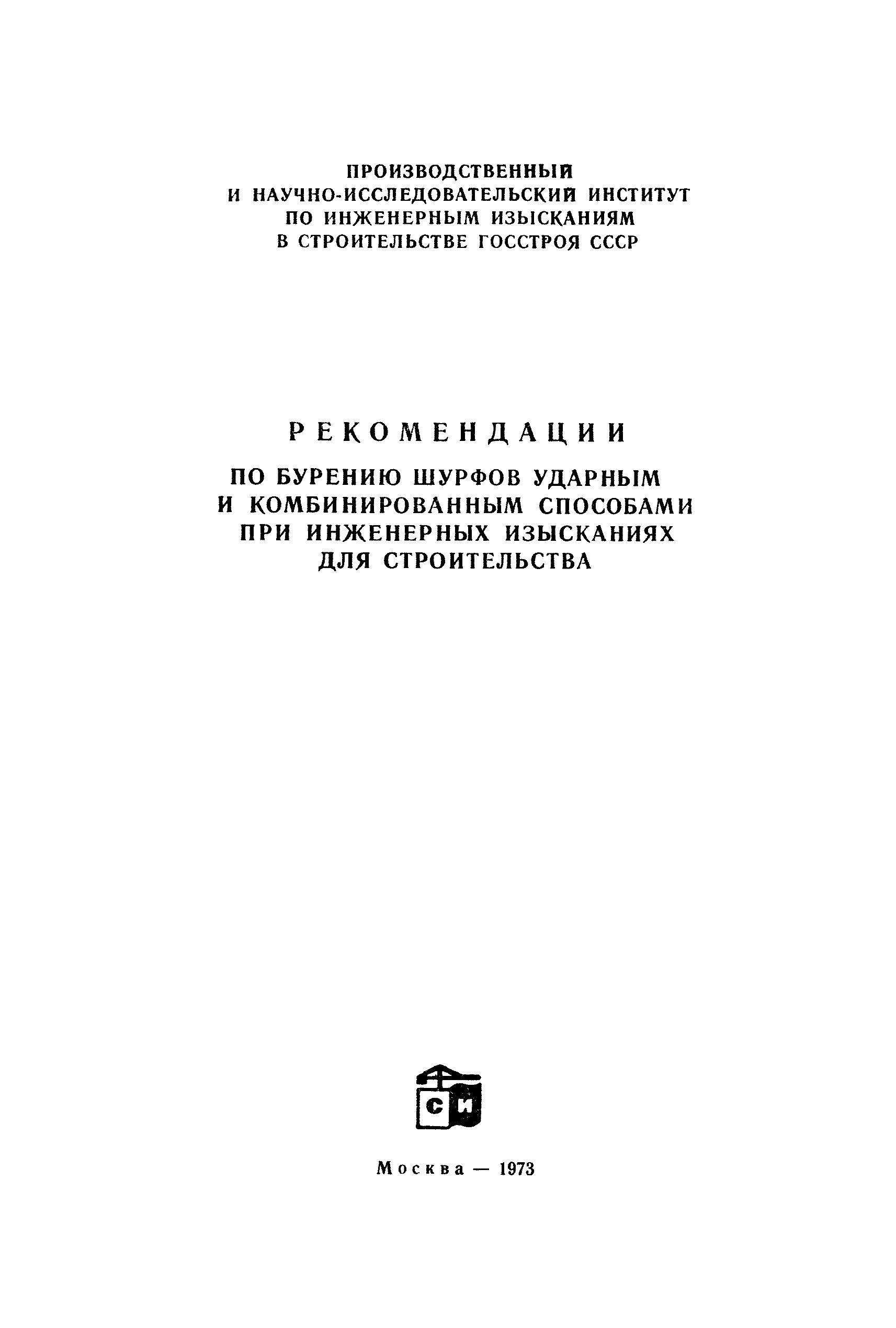 | Название рус.: | Рекомендации по бурению шурфов ударным и комбинированным способами при инженерных изысканиях для строительства |