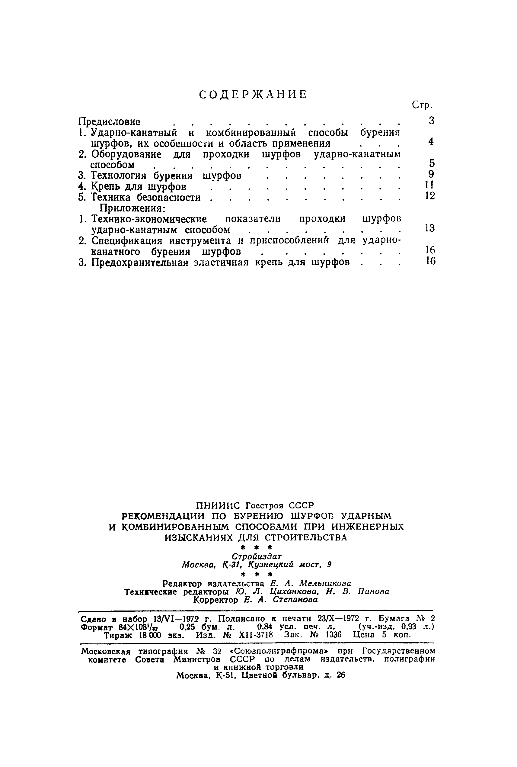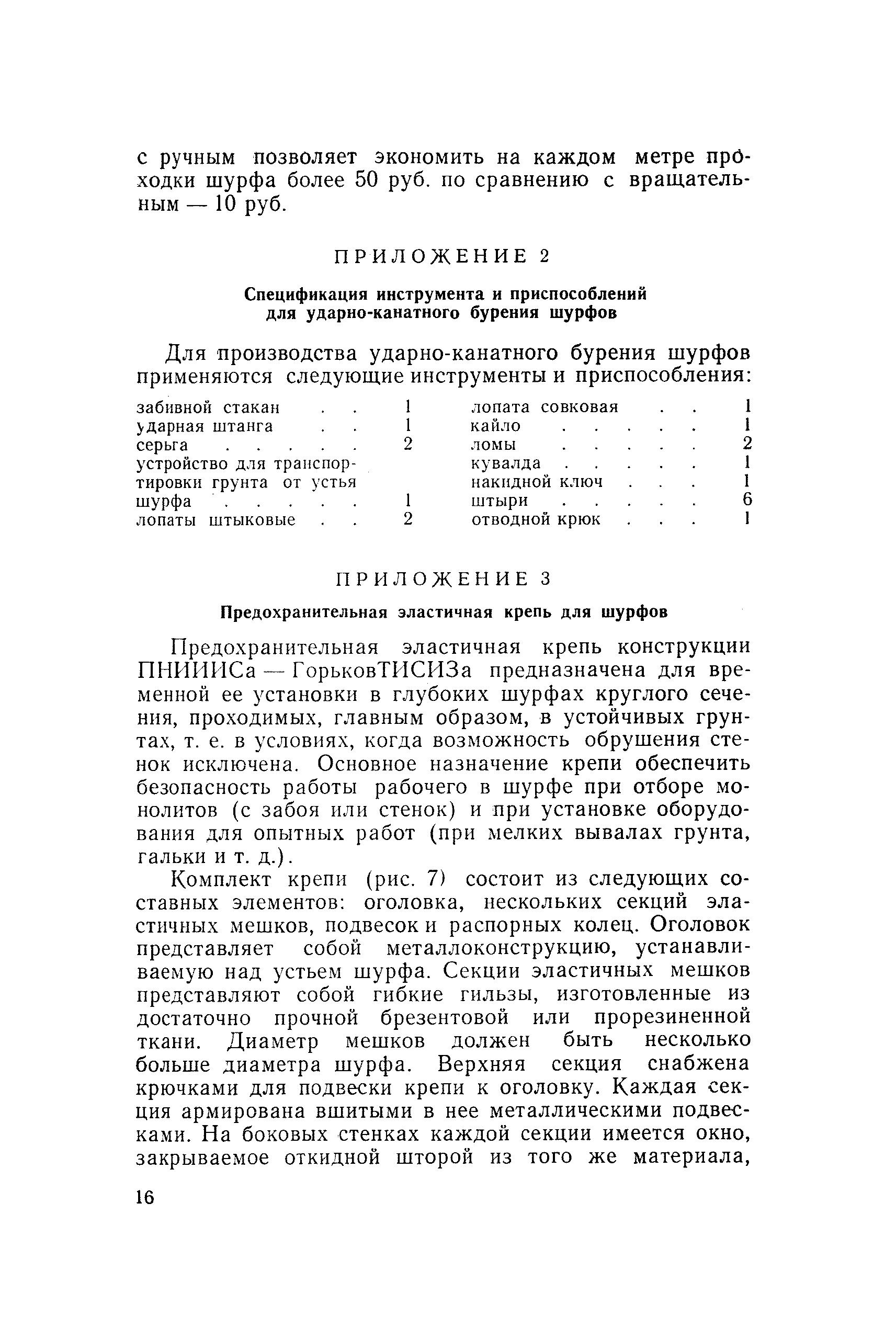 | Оглавление: | Предисловие 1. Ударно-канатный и комбинированный способы бурения шурфов, их особенности и область применения 2. Оборудование для проходки шурфов ударно-канатным способом 3. Технология бурения шурфов 4. Крепь для шурфов 5. Техника безопасности Приложение 1. Технико-экономические показатели проходки шурфов ударно-канатным способом Приложение 2. Спецификация инструмента и приспособлений для ударно-канатного бурения шурфов Приложение 3. Предохранительная эластичная крепь для шурфов |
