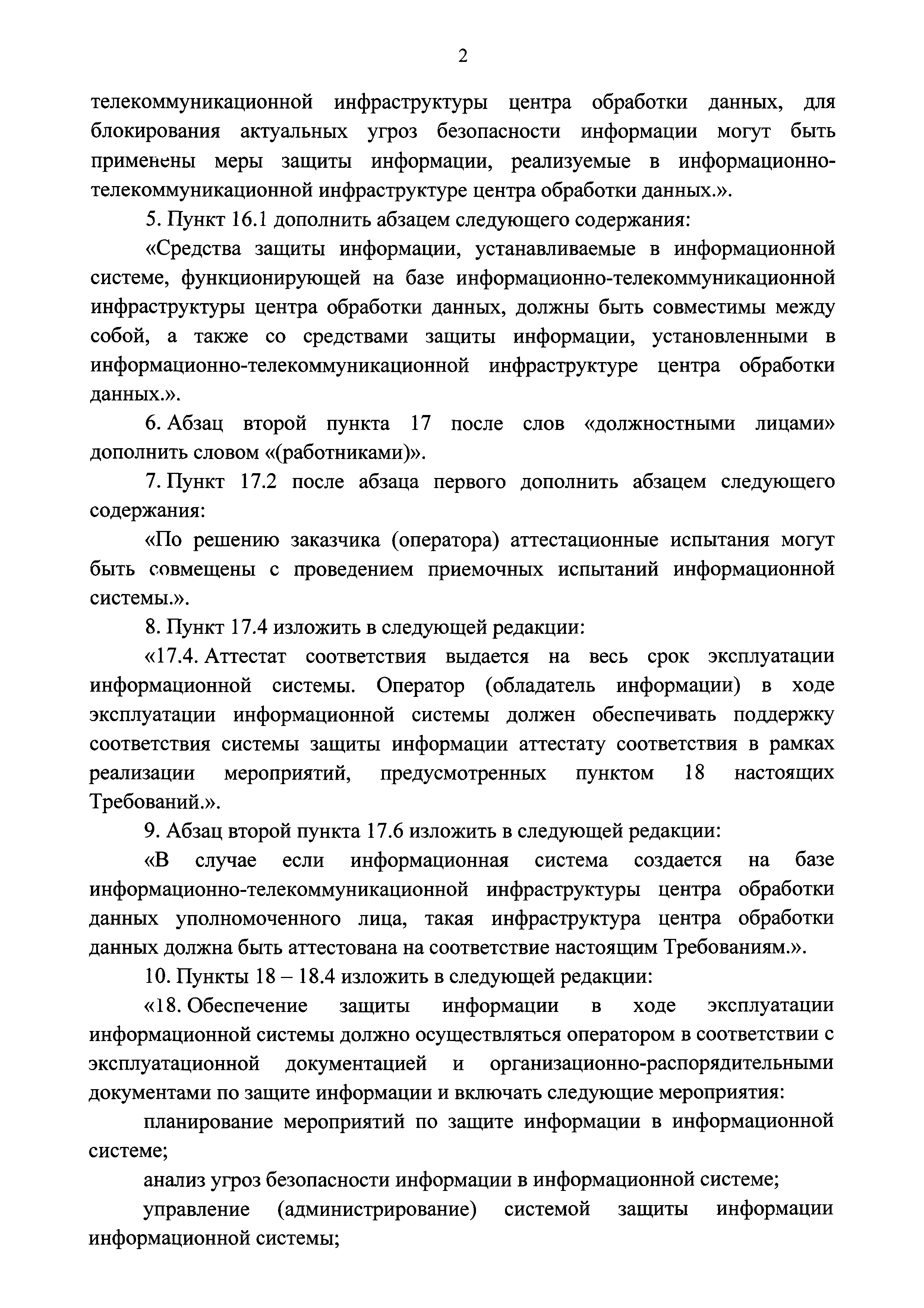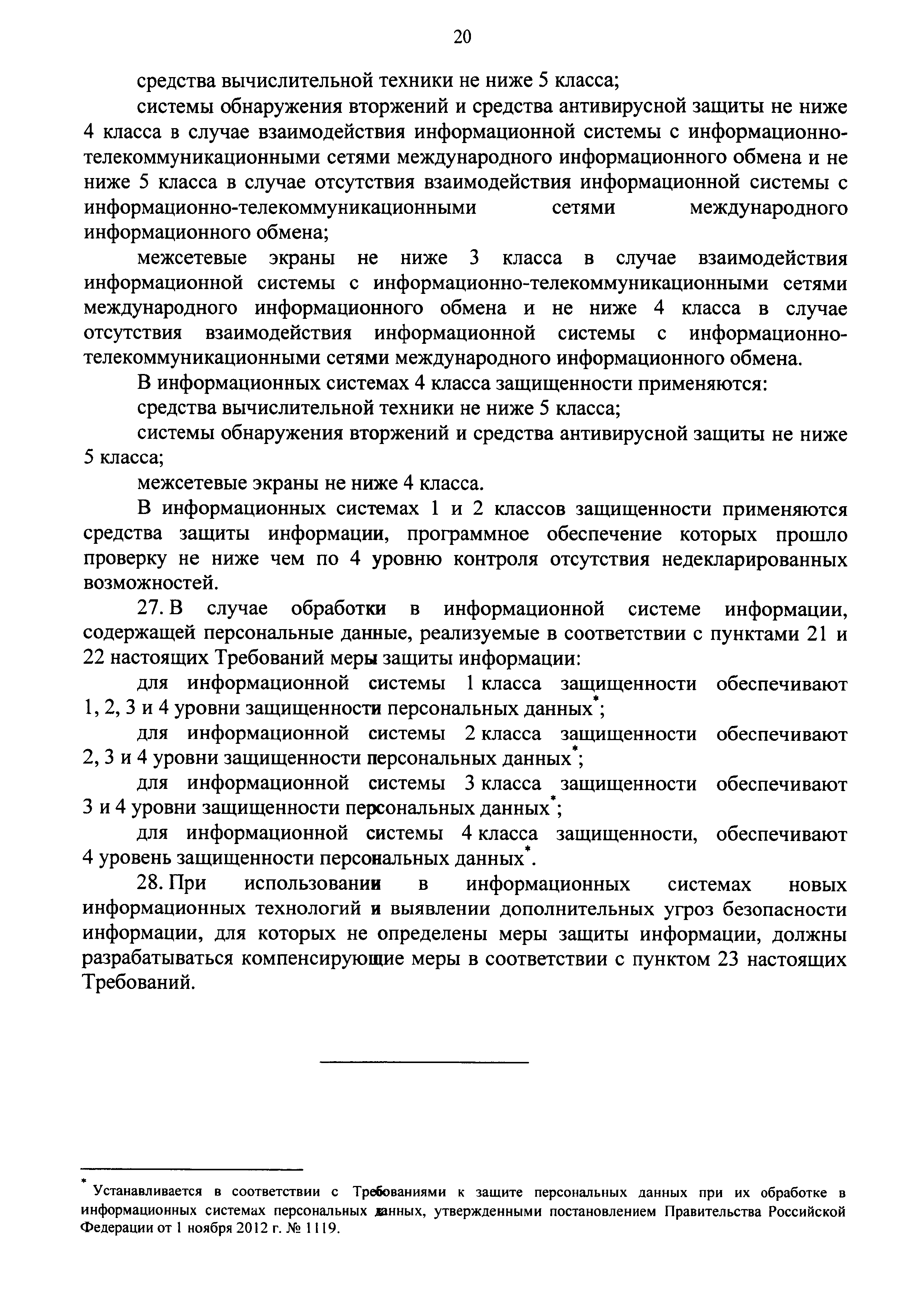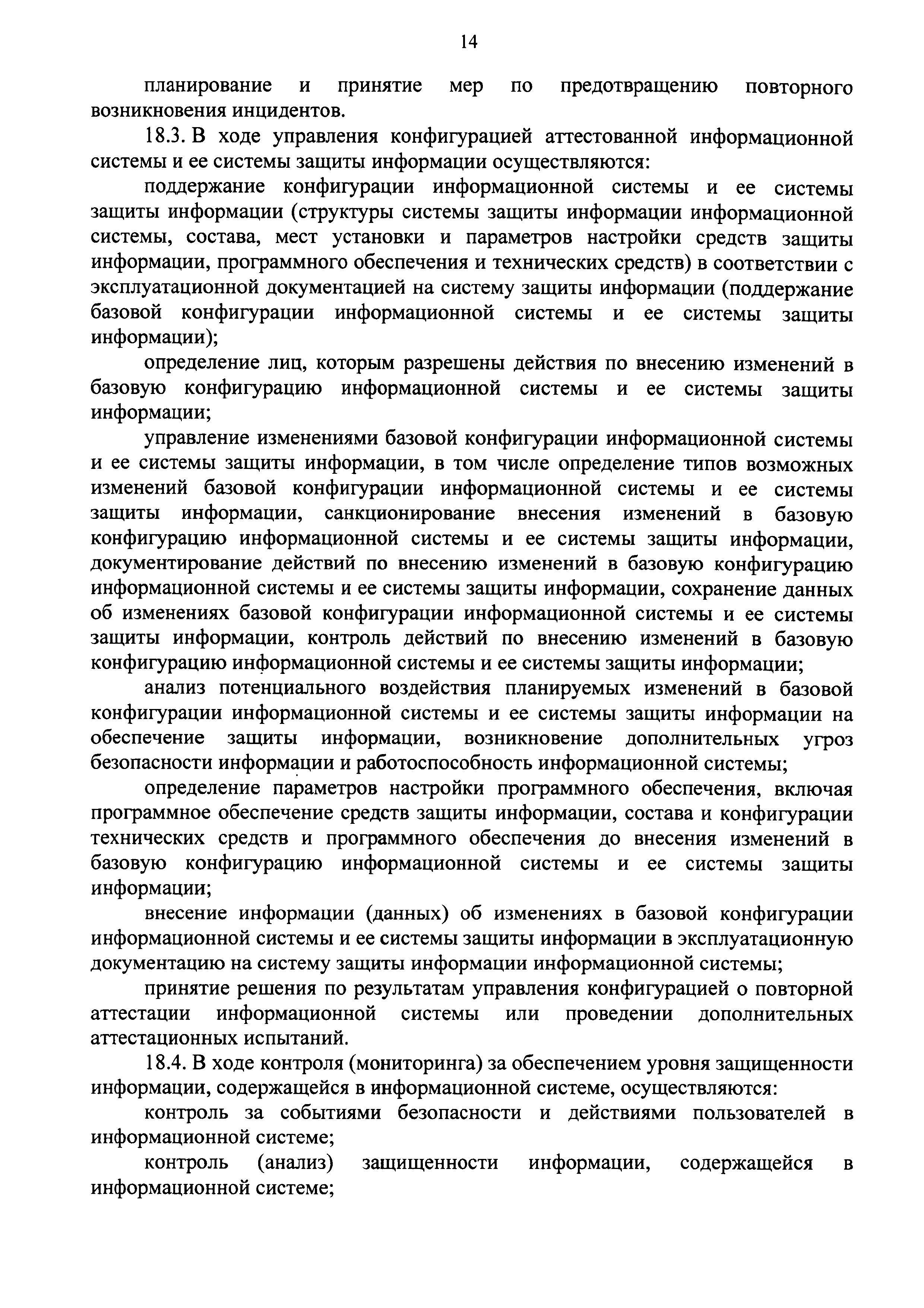 | Оглавление: | I Общие положения II Требования к организации защиты информации, содержащейся в информационной системе Формирование требований к защите информации, содержащейся в информационной системе Разработка системы защиты информации информационной системы Внедрение системы защиты информации информационной системы Аттестация информационной системы и ввод ее в действие Обеспечение защиты информации в ходе эксплуатации аттестованной информационной системы Обеспечение защиты информации при выводе из эксплуатации аттестованной информационной системы или после принятия решения об окончании обработки информации III Требования к мерам защиты информации, содержащейся в информационной системе Приложение 1. Определение класса защищенности информационной системы Приложение 2. Состав мер защиты информации и их базовые наборы для соответствующего класса защищенности информационной системы |