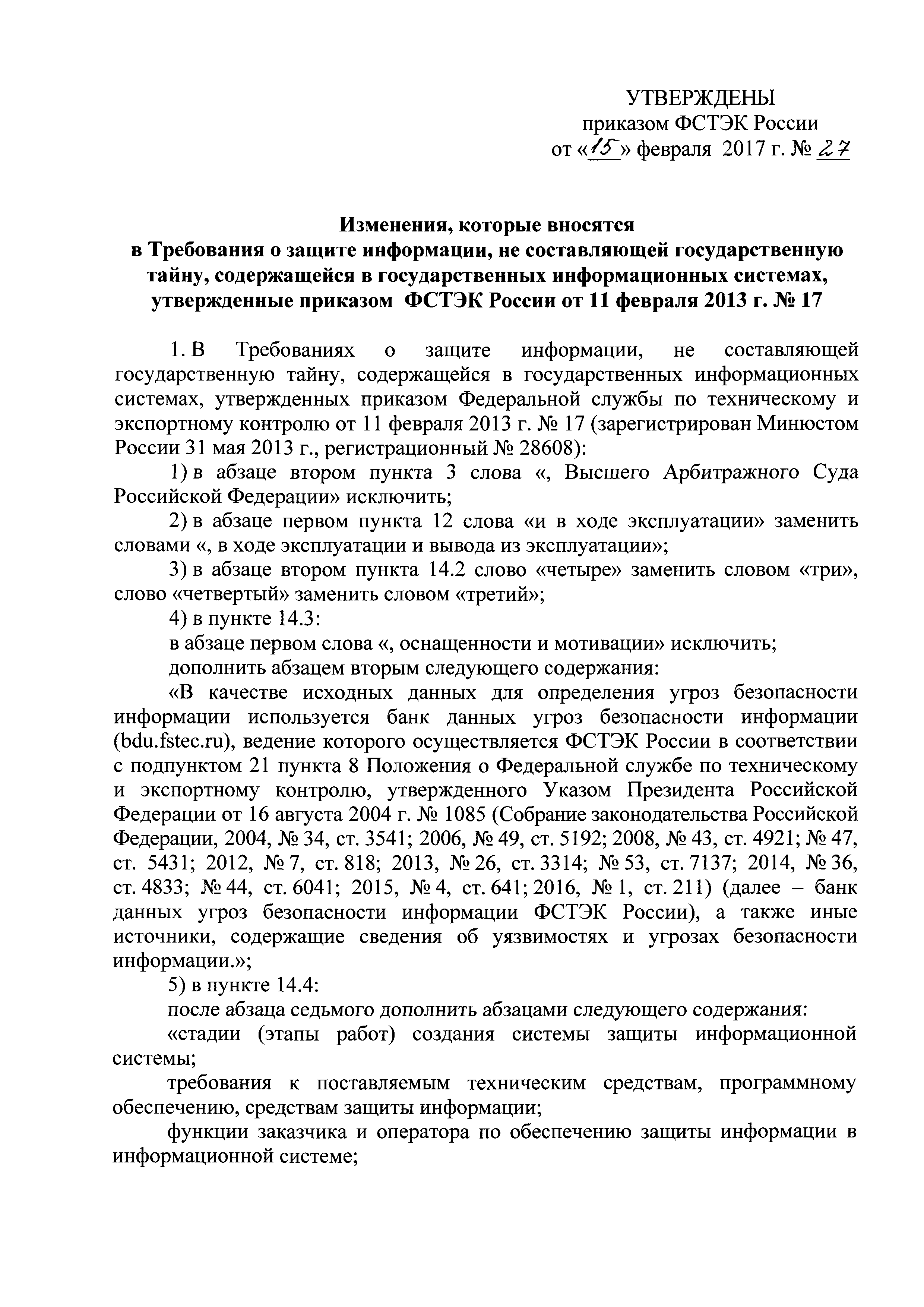 | Утверждён: | 11.02.2013 Федеральная служба по техническому и экспортному контролю (17) |