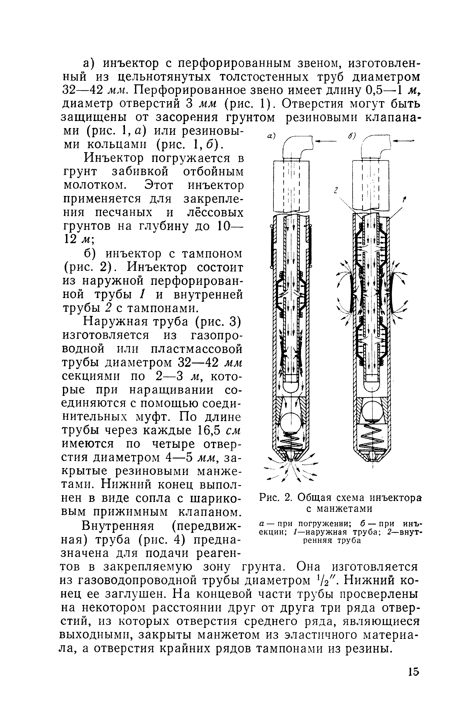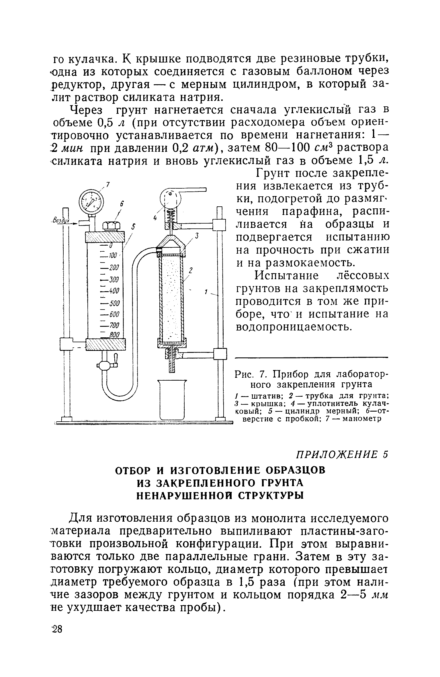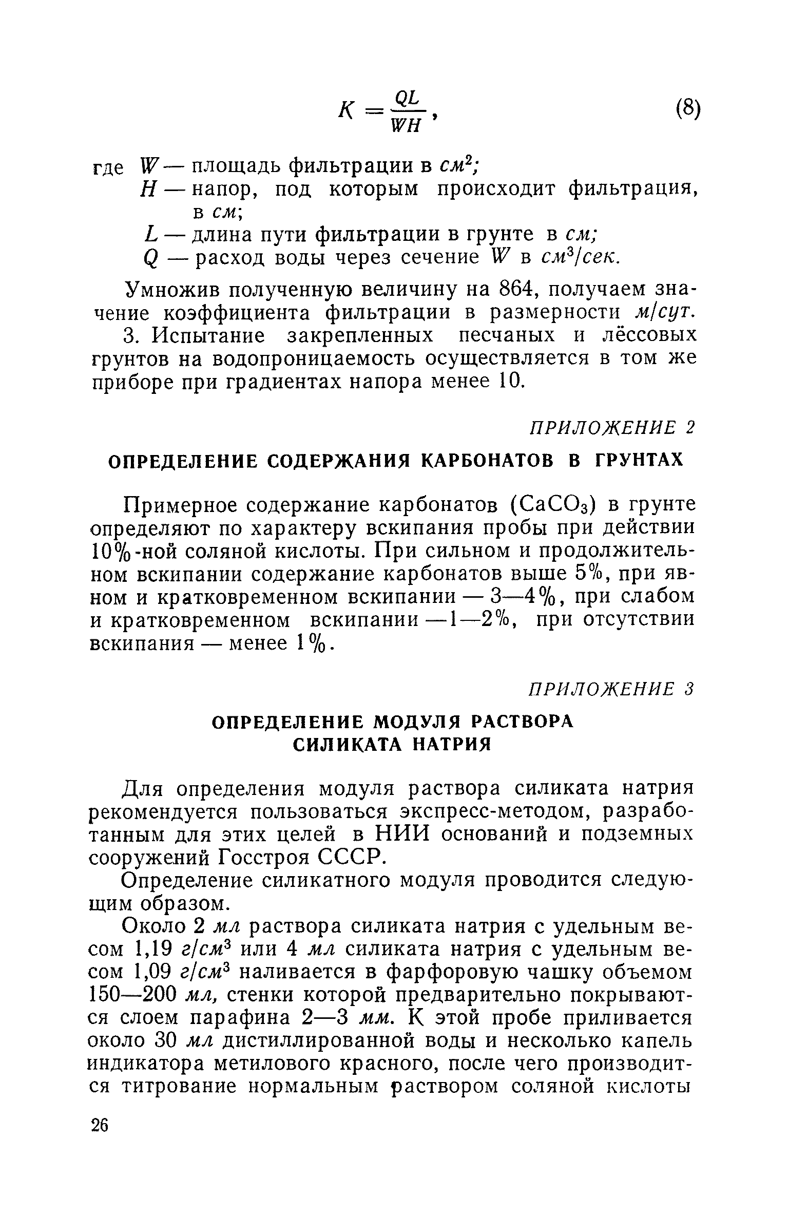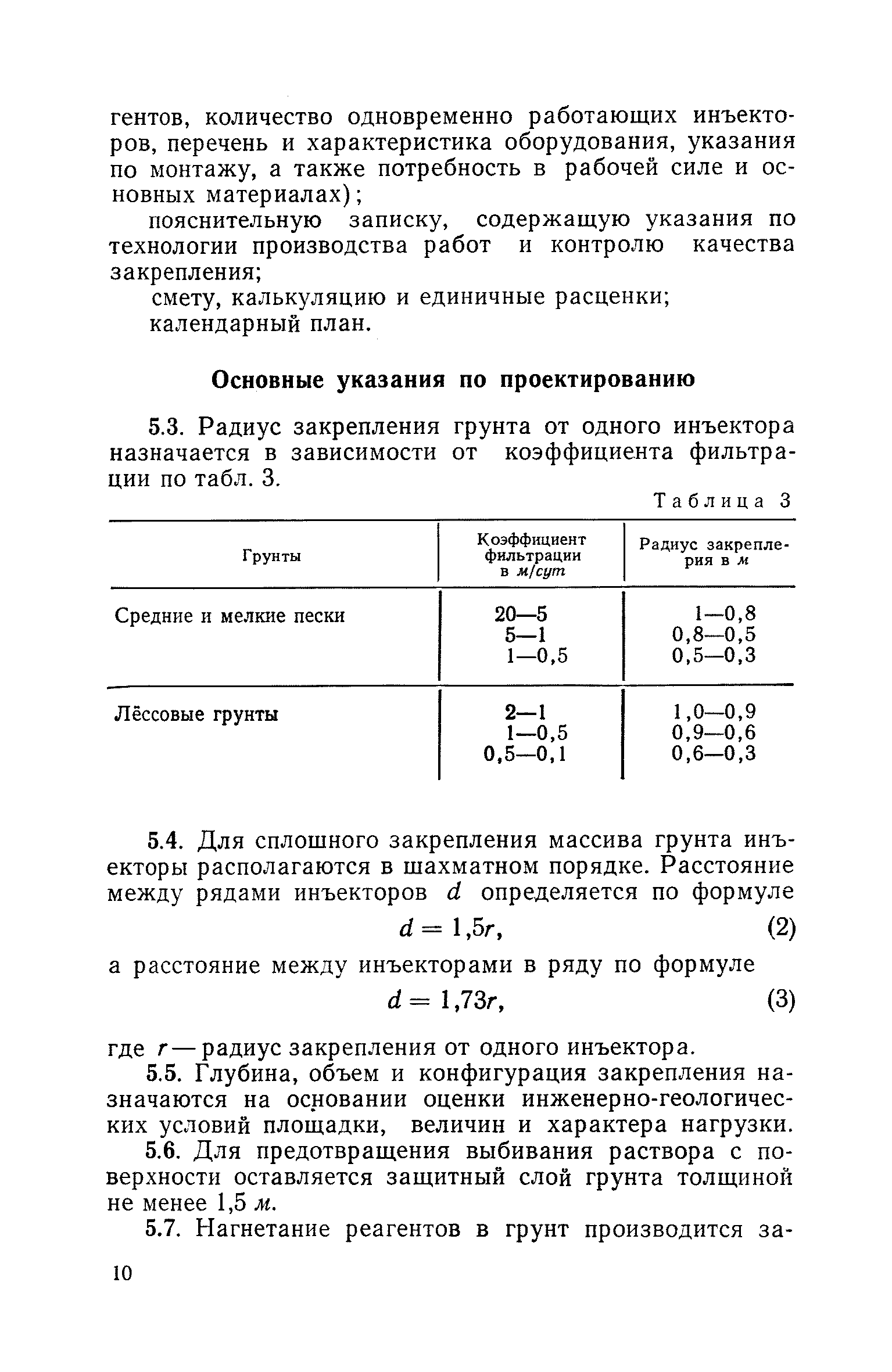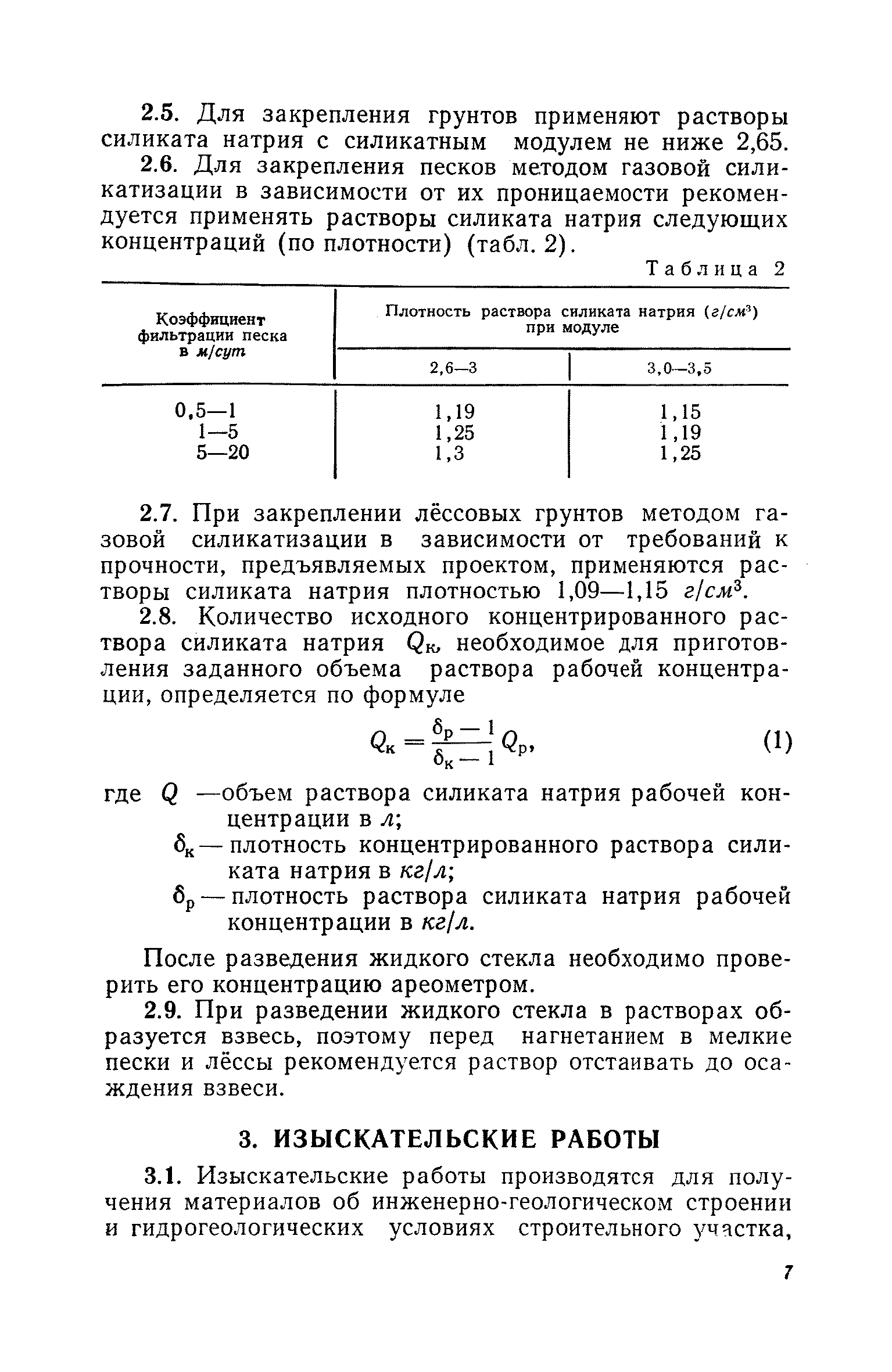| Оглавление: | Введение 1. Общие положения 2. Материалы 3. Изыскательские работы 4. Лабораторные исследования грунтов и материалов 5. Состав проекта Основные указания по проектированию 6. Оборудование 7. Производство работ Погружение и извлечение ннъекторов Нагнетание реагентов Вспомогательные работы 8. Техника безопасности 9. Контроль качества и документация Приложение 1. Определение водопроницаемости песка, лесса и закрепленного грунта Приложение 2. Определение содержания карбонатов в грунтах Приложение 3. Определение модуля раствора силиката натрия Приложение 4. Испытание грунтов на закрепляемость Приложение 5.Отбор и изготовление образцов из закрепленного грунта ненарушенной структуры Приложение 6. Журнал производства работ по газовой силикатизации (форма) Приложение 7. Норма расхода концентрированного силикатного раствора на закрепление 1 м3 грунта |