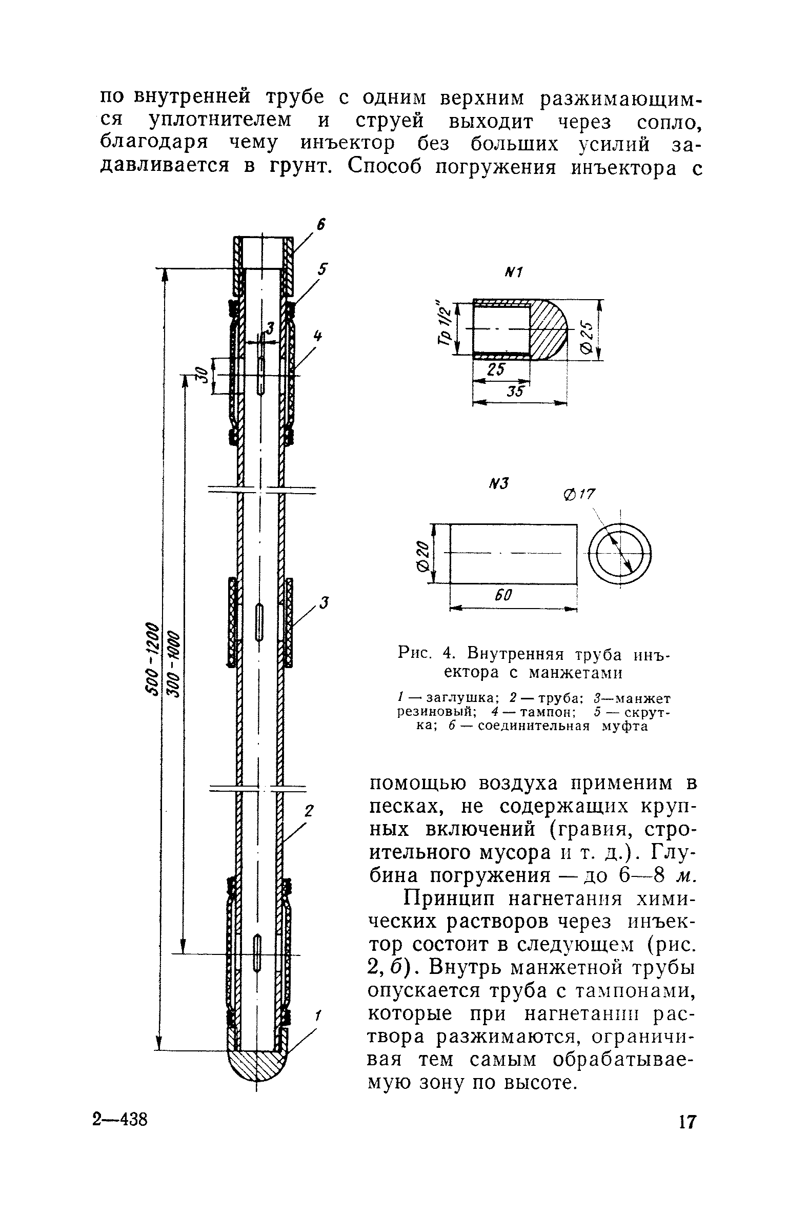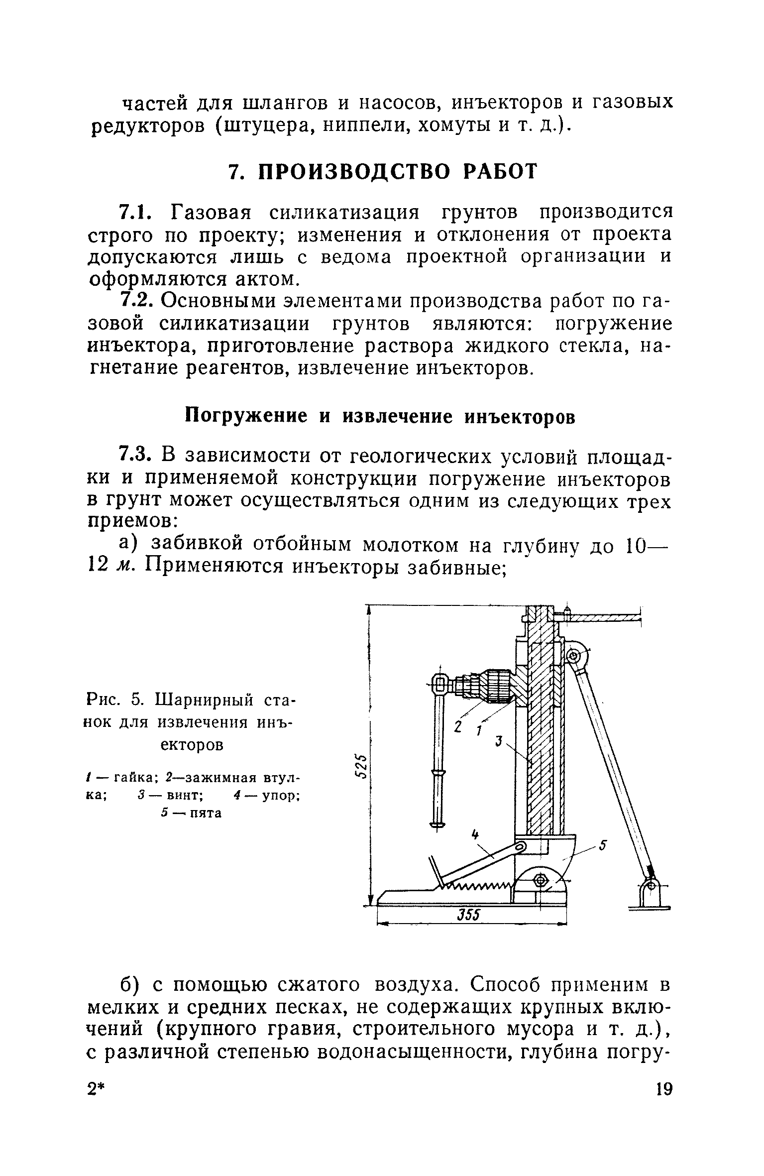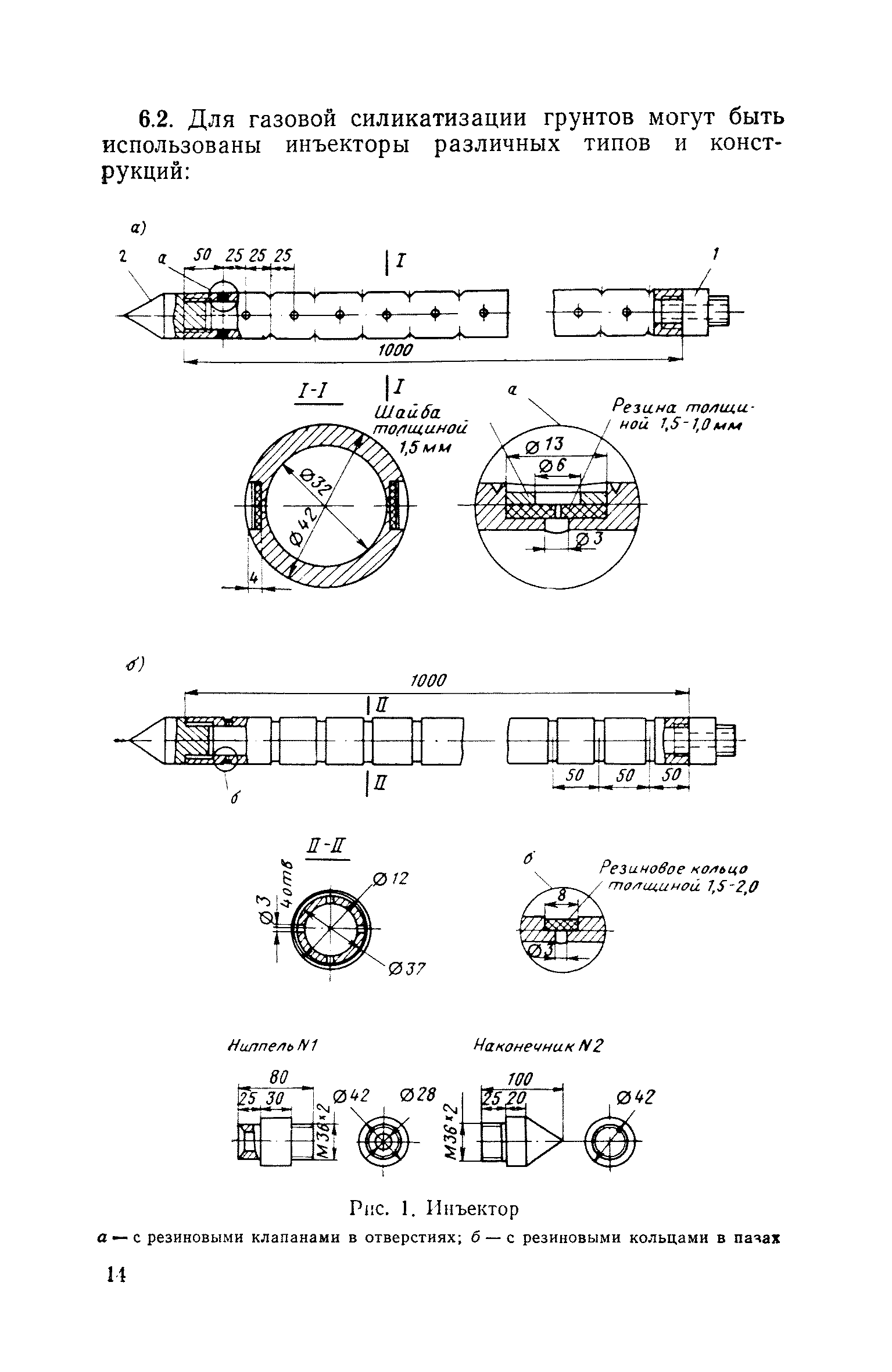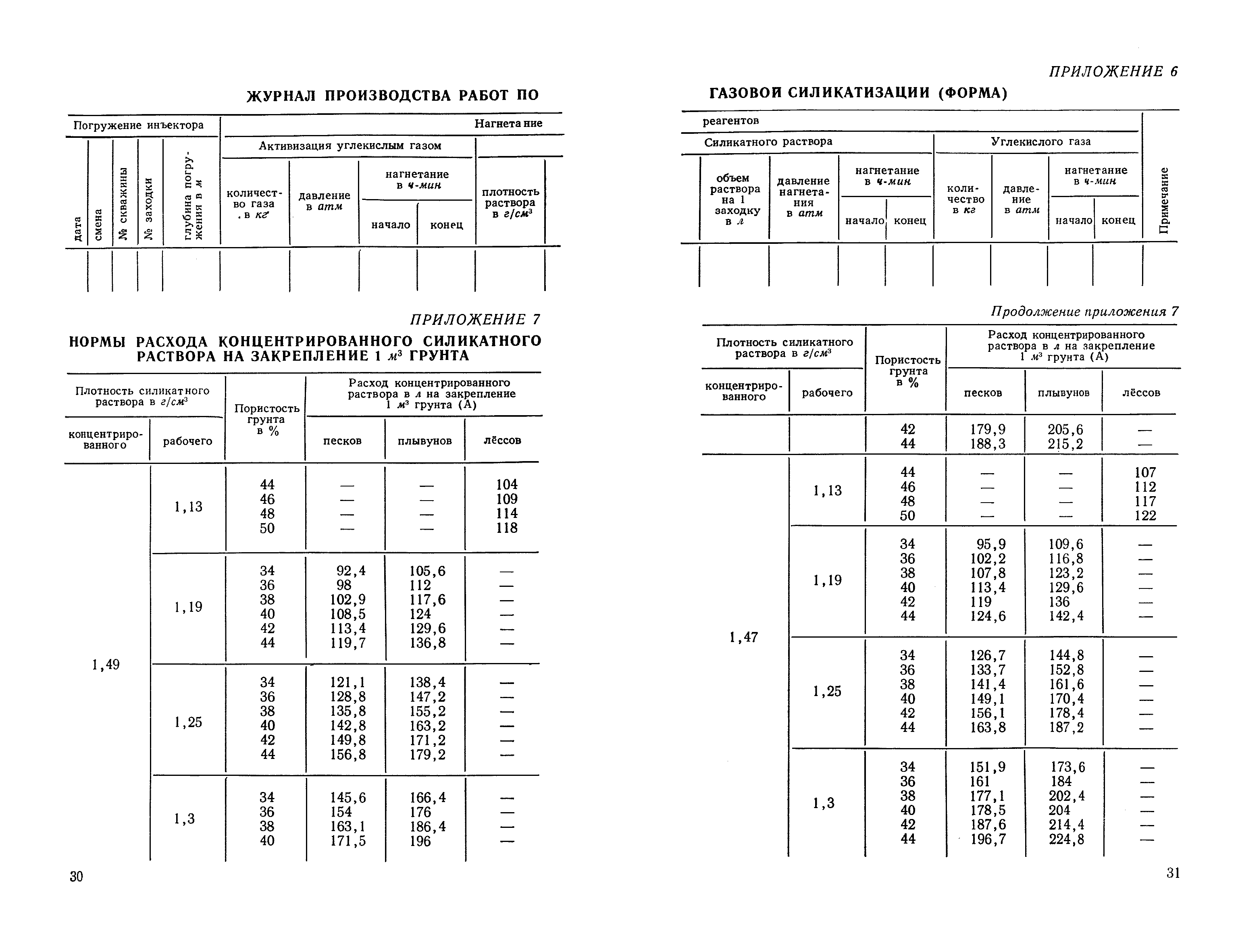 | Оглавление: | Введение 1. Общие положения 2. Материалы 3. Изыскательские работы 4. Лабораторные исследования грунтов и материалов 5. Состав проекта Основные указания по проектированию 6. Оборудование 7. Производство работ Погружение и извлечение ннъекторов Нагнетание реагентов Вспомогательные работы 8. Техника безопасности 9. Контроль качества и документация Приложение 1. Определение водопроницаемости песка, лесса и закрепленного грунта Приложение 2. Определение содержания карбонатов в грунтах Приложение 3. Определение модуля раствора силиката натрия Приложение 4. Испытание грунтов на закрепляемость Приложение 5.Отбор и изготовление образцов из закрепленного грунта ненарушенной структуры Приложение 6. Журнал производства работ по газовой силикатизации (форма) Приложение 7. Норма расхода концентрированного силикатного раствора на закрепление 1 м3 грунта |