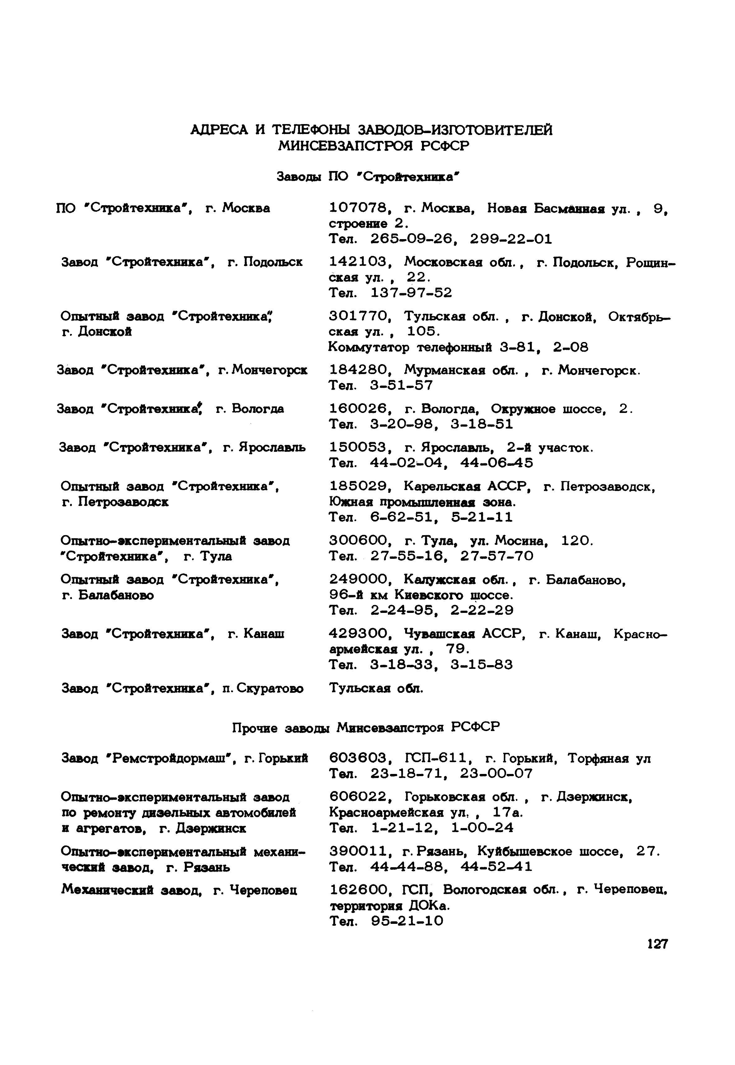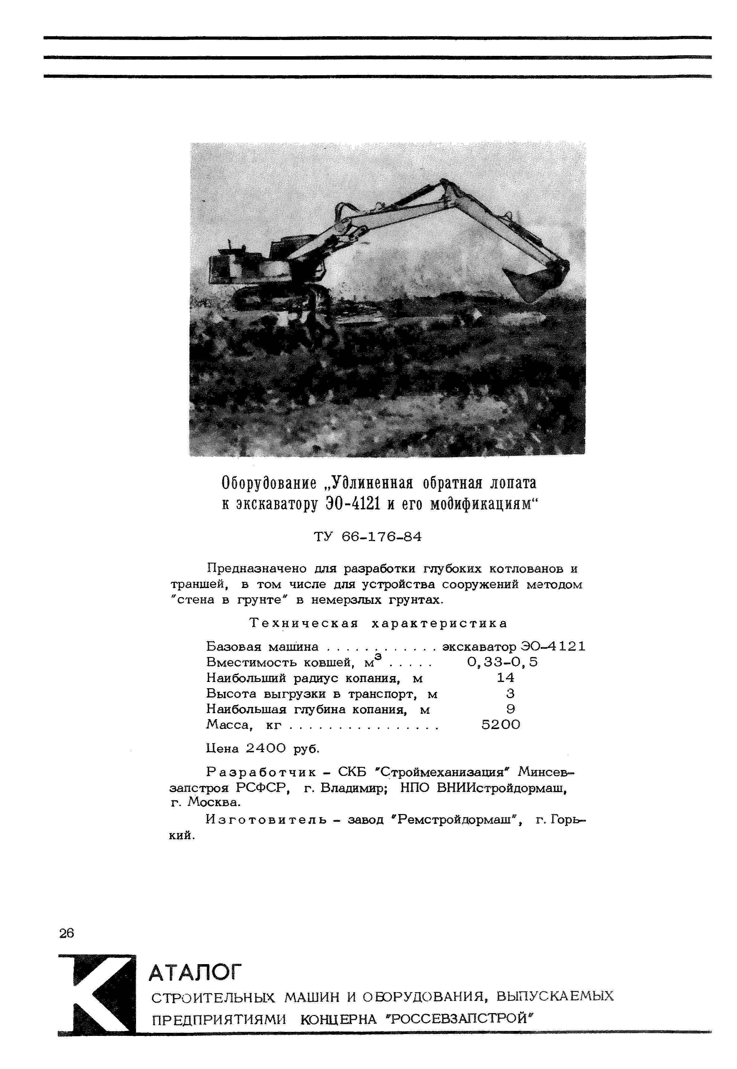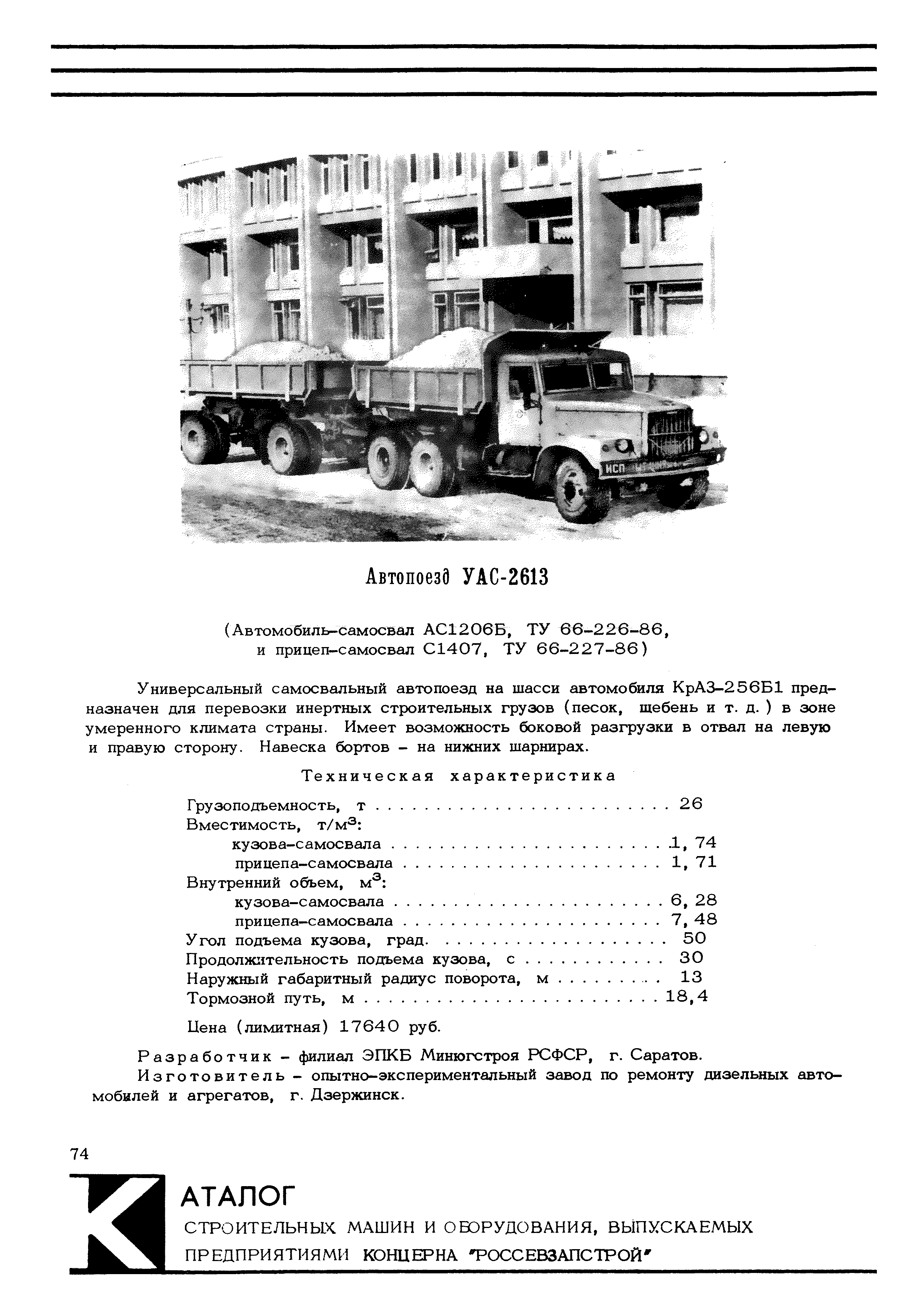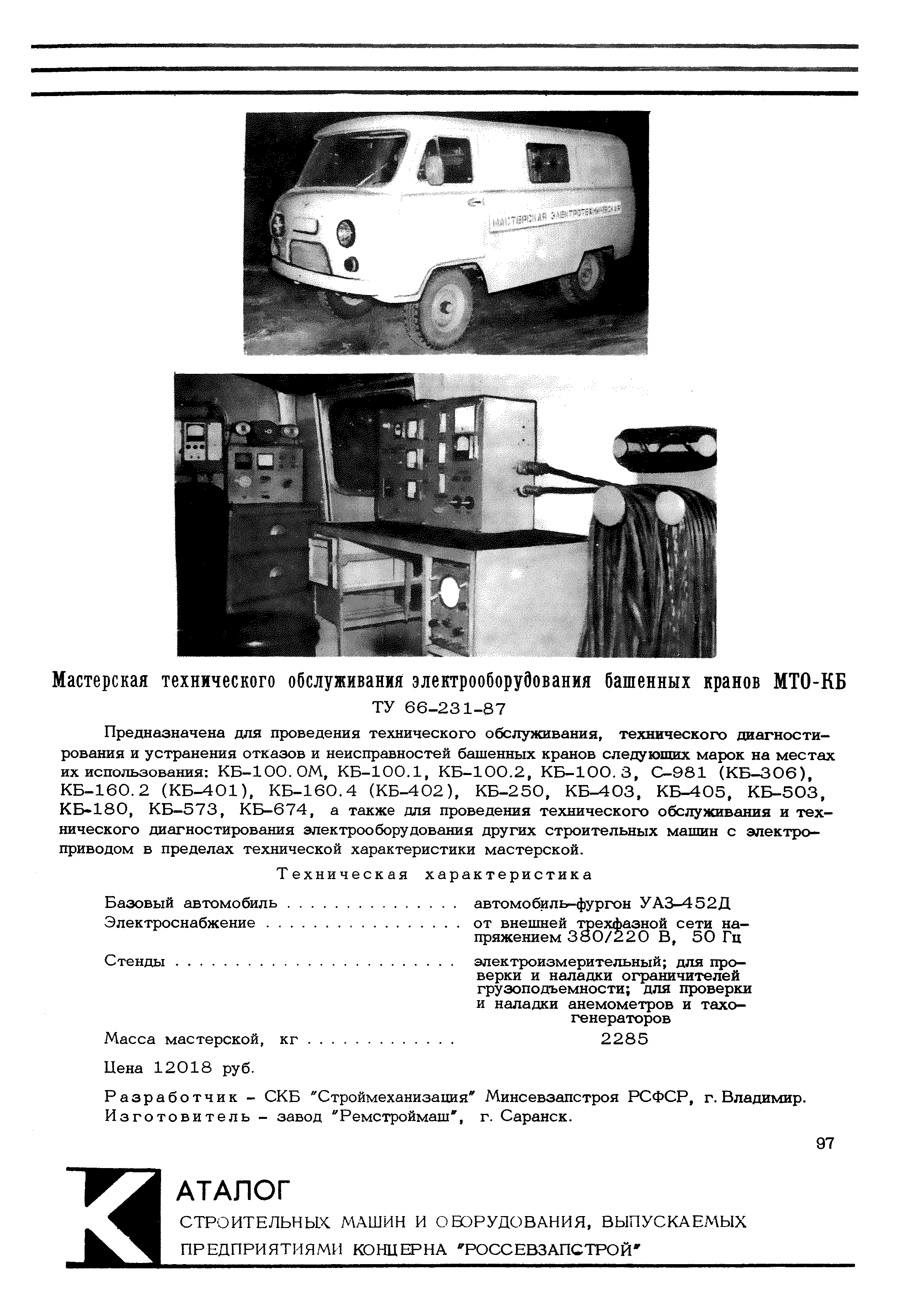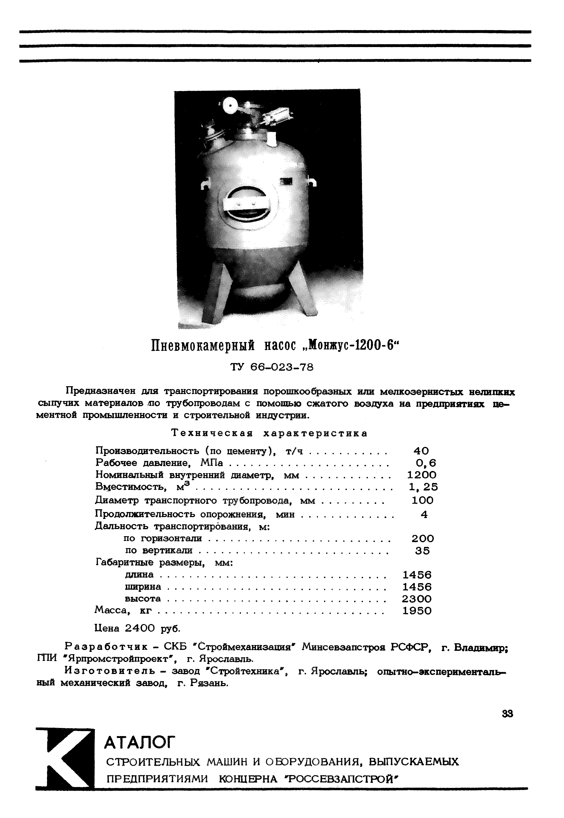 Каталог строительных машин и оборудования, выпускаемых предприятиями концерна "Россевзапстрой"| Статус: | справочные материалы, мп, тпр | | Название рус.: | Каталог строительных машин и оборудования, выпускаемых предприятиями концерна "Россевзапстрой" | | Дата добавления в базу: | 12.02.2016 | | Дата актуализации: | 01.01.2021 | | Оглавление: | 1 Подъемно-транспортные и погрузочно0разгрузочные машины и оборудование Кран башенный КБ—403А Кран башенный КБ-403Б Кран башенный КБ—406.2 Кран башенный КБ—408 Кран стреловой на рельсовом ходу грузоподъемностью 11т СК—З 861 Кран мостовой электрический общего назначения грузоподъемностью 16 т Погрузчик навесной 96,014—00 Подъёмник автомобильный гидравлический АГП—36 Подъемник автомобильный гидравлический ВС—18,01—МС Грейфер одноканатный двухчелюстной вместимостью 0,71 м3 Подъемник мачтовый ТП—17А Установка УРВСМ-90 Установка УРВСМ-200 2. Машины и оборудование для земляных и свайных работ Бульдозер СД 11ОМ Вибротрамбовка навесная ВТН—80 Навесное оборудование для бурения шнуров на экскаваторе ЭО—262 1В Машина землеройная цепная МЗЦ—75 Гидропневматическое навесное оборудование на экскаватор ЭО—4121 (гидропневмомолот) ГПМ—2000 Бульдозерное оборудование СД 112 к трактору Т—150К Оборудование "Удлиненная обратная лопата к экскаватору ЭО—4121 и его модификациями" Устройство для срезки свай УСС—ЗА Цепь режущая ГМ—17 Отвал Д-686-01.000 3. Машины и оборудование для бетонных работ Автобетоносмеситель АБС—5 Пневмокамерный насос "Монжус—1200—6" Установка бетонорастворосмесительная цикличная инвентарная Склад цемента инвентарный ИСП—266 Агрегат мелкого дробления и сортировки стационарный СМД—27БМ 4. Машины и оборудование для отделочных и кровельных работ Установка для транспортирования и подачи битумно—кукерсольных мастик УПМ-3,2-01 Установка битумоварочная УБ-З01А Станция штукатурная СО-114 Агрегат окрасочных с применением бессальникового центробежного насоса Шепеленко Н0—42—00—001 Установка для приемки и выдачи раствора УВР—3,5—01 Установка для перемешивания и выдачи раствора УБ—342 Растворонасос поршневой РНП—4 Установка типа "Пена—12" для напыления пенополиуретана Станция малярная 42192—01А 5. Ручной строительный инструмент Ножницы обойные Н0-01 Нож раскройный НР—01 Ковш КШ—1 для штукатурных работ Кельмы КК—01, КШ—01 для каменных и штукатурных работ Штукатурный инструмент Сокол С—01, терка Шпатели малярные ШП-01, ШП-02, ШП-04, ШС-01 Расшивки Р—01, Р—02. Рустовка РУ—01 Скоба причальная СП—01. Шнур в корпусе Ш—01 Скарпели СК-01, СК-02, СК-03 Скребок СР—01. Гребок Г—01 Ножницы арматурные НА—01. Станок ножовочный СН—01 Валики малярные ВМ-01, ВМ-02, ВМ-0З. Валик сдвоенный ВС-01. Приспособление окрасочное П0—01 Молотки стальные строительные М—01, М—02, М—0З, М—04 6. Специализированный транспорт Прицеп—тяжеловоз автомобильный низкорамный АНПТ—60 Прицеп—тяжеловоз грузоподъемностью 40 т У4005 Прицеп-тяжеловоз 66: ИН6006 Полуприцеп—панелевоз ПП 1307А Полуприцеп УПП—1207 Полуприцеп УПП (Ш) 1207 Полуприцеп УПР 1212 М Полуприцеп УПЛ 1412 Полуприцеп—площадка 66: ПЛ 1212Д1 Полуприцеп—площадка ПЛ 2212 Полуприцеп—плитовоз УПЛ 1824 Полуприцеп—керамзитовоз 66: ПШ 1321 Автопоезд УАС—2613 Полуприцеп—сантехкабиновоз ПЭ 1209 ЦЭКБ Склад взрывчатых материалов передвижной Автомобиль-самопогрузчик КС-3000 (КС-3000А) Самосвал малогабаритный СМ—1500 Самосвал малогабаритный СМ—1100 ПГ Автошпаклевоз 66: ЦЯ 0