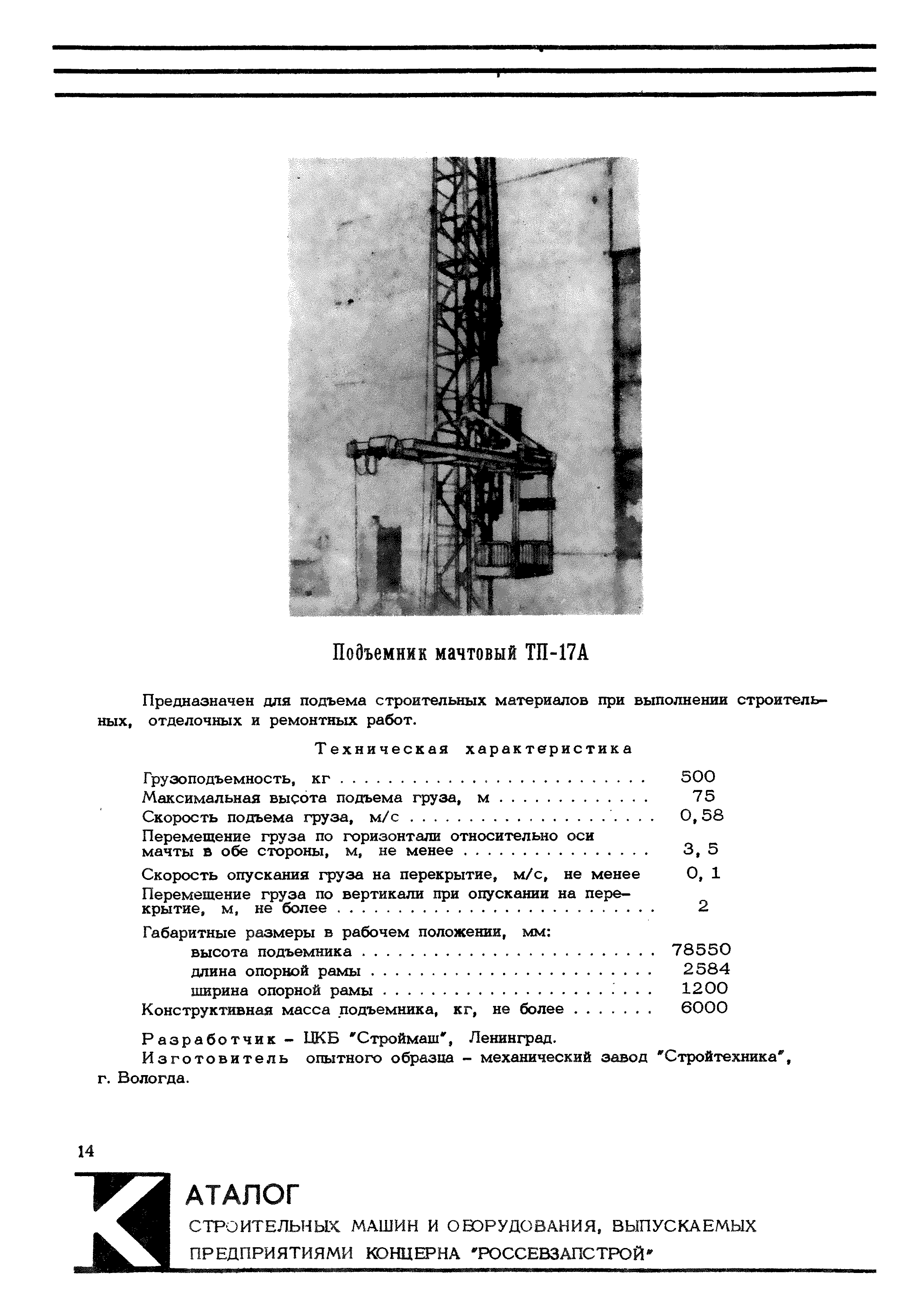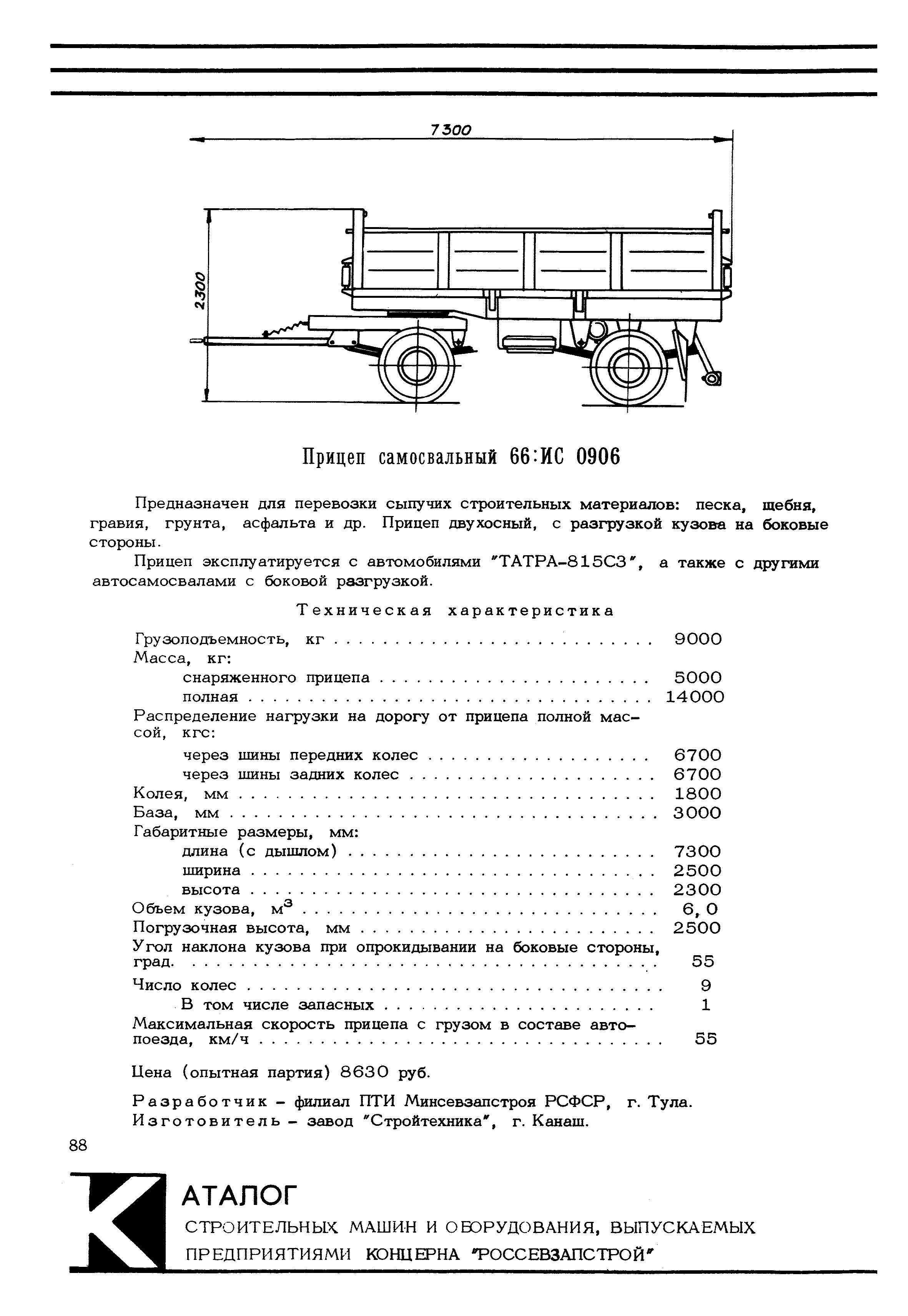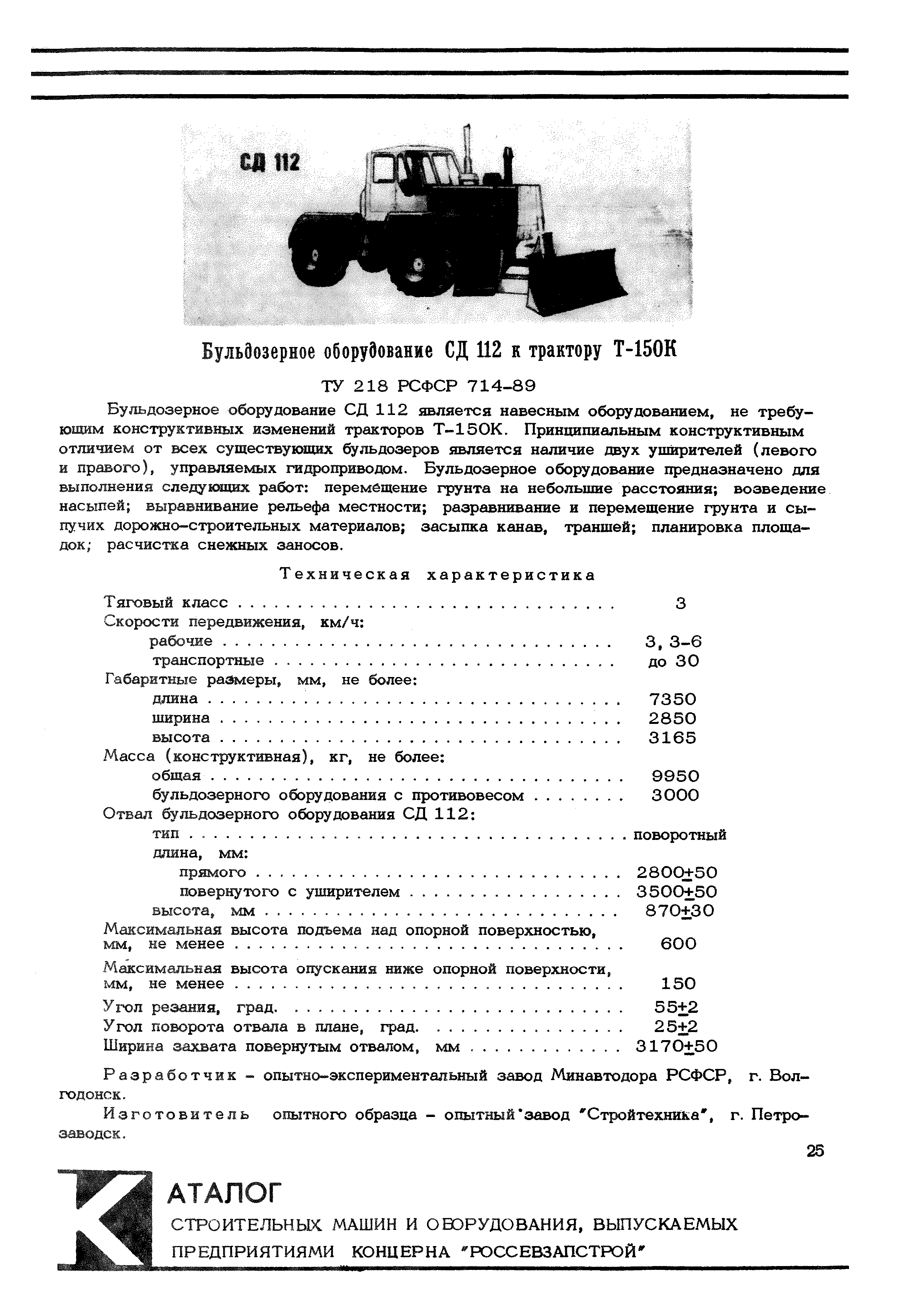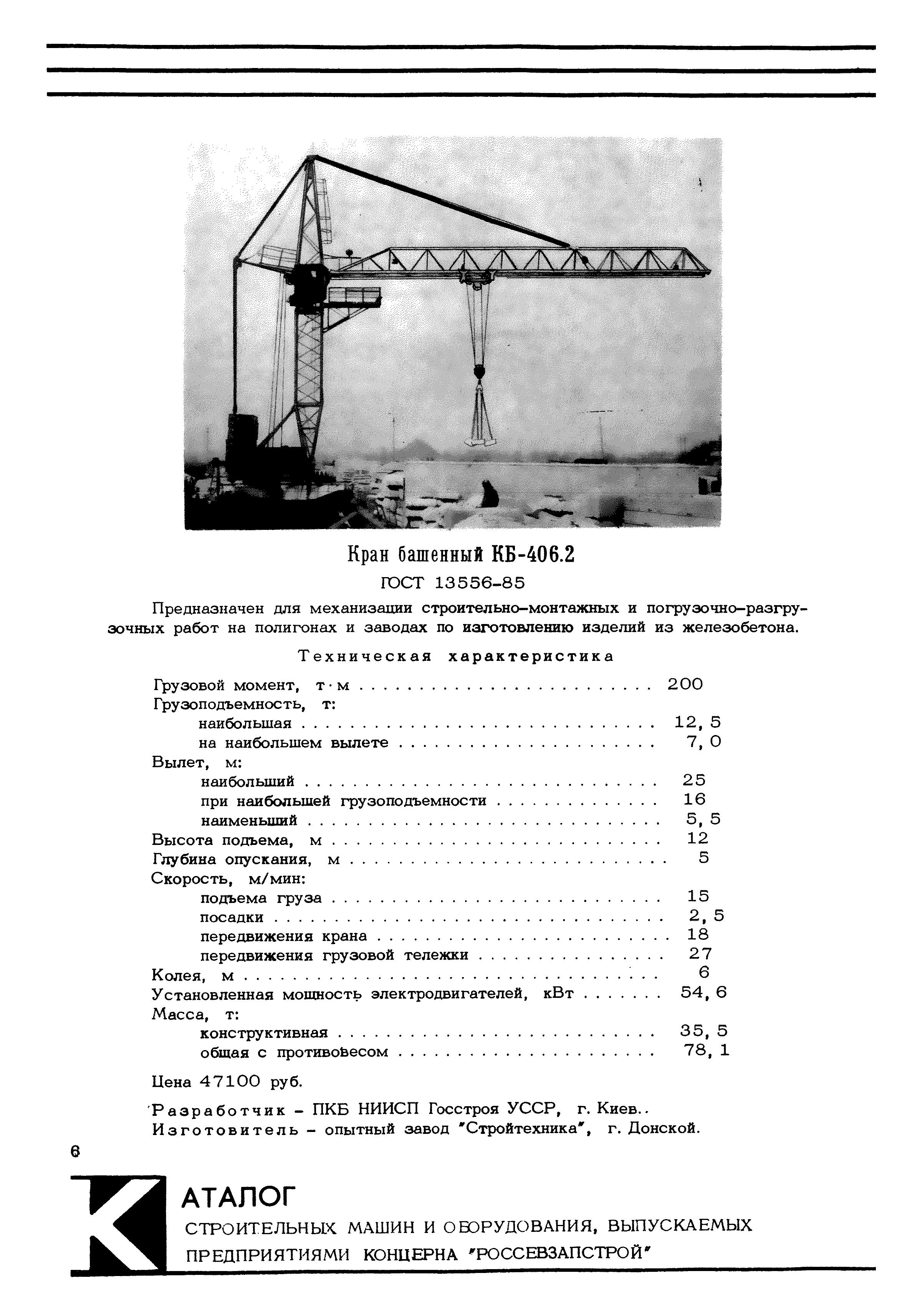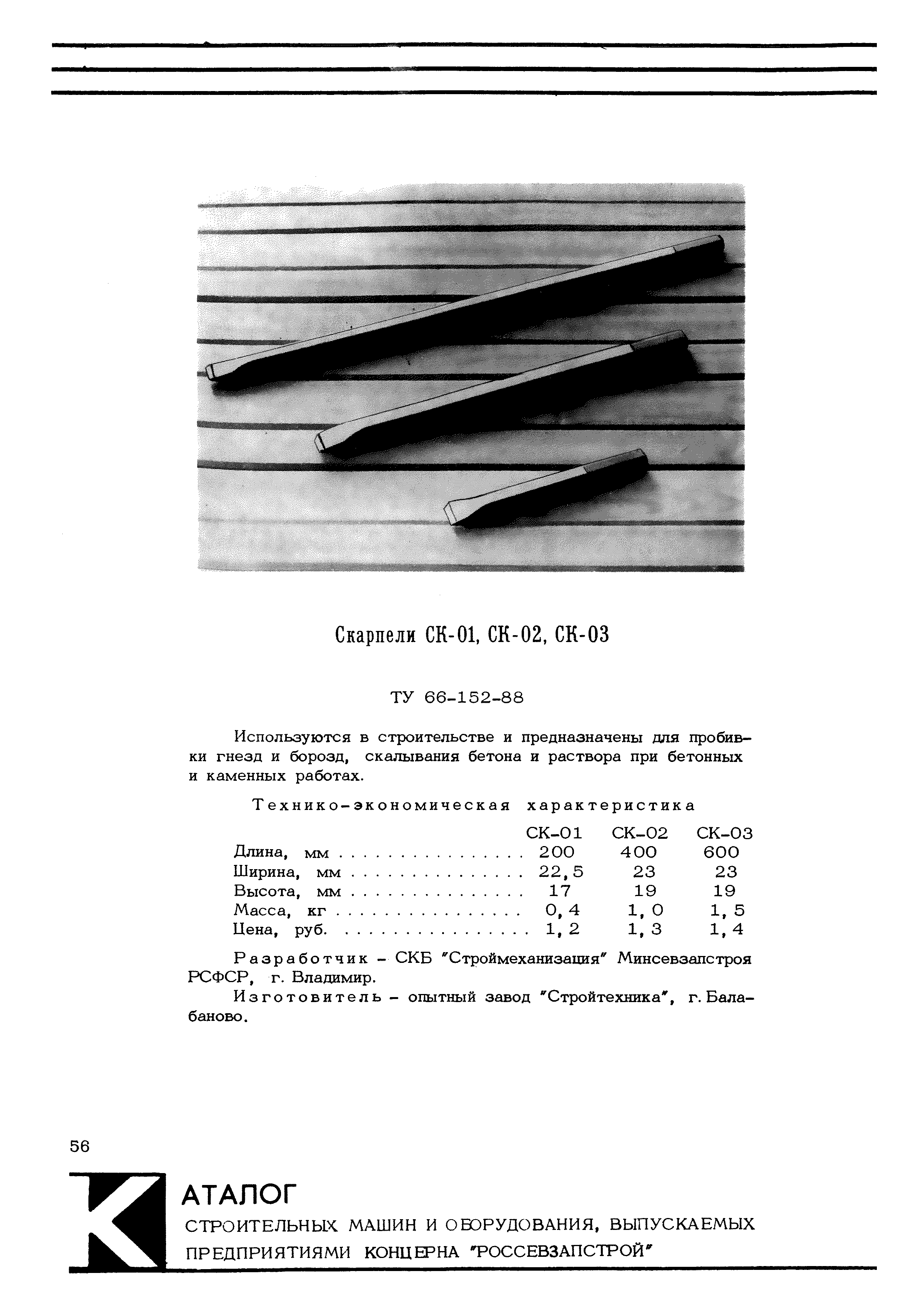 Каталог строительных машин и оборудования, выпускаемых предприятиями концерна "Россевзапстрой"| Статус: | справочные материалы, мп, тпр | | Название рус.: | Каталог строительных машин и оборудования, выпускаемых предприятиями концерна "Россевзапстрой" | | Дата добавления в базу: | 12.02.2016 | | Дата актуализации: | 01.01.2021 | | Оглавление: | 1 Подъемно-транспортные и погрузочно0разгрузочные машины и оборудование Кран башенный КБ—403А Кран башенный КБ-403Б Кран башенный КБ—406.2 Кран башенный КБ—408 Кран стреловой на рельсовом ходу грузоподъемностью 11т СК—З 861 Кран мостовой электрический общего назначения грузоподъемностью 16 т Погрузчик навесной 96,014—00 Подъёмник автомобильный гидравлический АГП—36 Подъемник автомобильный гидравлический ВС—18,01—МС Грейфер одноканатный двухчелюстной вместимостью 0,71 м3 Подъемник мачтовый ТП—17А Установка УРВСМ-90 Установка УРВСМ-200 2. Машины и оборудование для земляных и свайных работ Бульдозер СД 11ОМ Вибротрамбовка навесная ВТН—80 Навесное оборудование для бурения шнуров на экскаваторе ЭО—262 1В Машина землеройная цепная МЗЦ—75 Гидропневматическое навесное оборудование на экскаватор ЭО—4121 (гидропневмомолот) ГПМ—2000 Бульдозерное оборудование СД 112 к трактору Т—150К Оборудование "Удлиненная обратная лопата к экскаватору ЭО—4121 и его модификациями" Устройство для срезки свай УСС—ЗА Цепь режущая ГМ—17 Отвал Д-686-01.000 3. Машины и оборудование для бетонных работ Автобетоносмеситель АБС—5 Пневмокамерный насос "Монжус—1200—6" Установка бетонорастворосмесительная цикличная инвентарная Склад цемента инвентарный ИСП—266 Агрегат мелкого дробления и сортировки стационарный СМД—27БМ 4. Машины и оборудование для отделочных и кровельных работ Установка для транспортирования и подачи битумно—кукерсольных мастик УПМ-3,2-01 Установка битумоварочная УБ-З01А Станция штукатурная СО-114 Агрегат окрасочных с применением бессальникового центробежного насоса Шепеленко Н0—42—00—001 Установка для приемки и выдачи раствора УВР—3,5—01 Установка для перемешивания и выдачи раствора УБ—342 Растворонасос поршневой РНП—4 Установка типа "Пена—12" для напыления пенополиуретана Станция малярная 42192—01А 5. Ручной строительный инструмент Ножницы обойные Н0-01 Нож раскройный НР—01 Ковш КШ—1 для штукатурных работ Кельмы КК—01, КШ—01 для каменных и штукатурных работ Штукатурный инструмент Сокол С—01, терка Шпатели малярные ШП-01, ШП-02, ШП-04, ШС-01 Расшивки Р—01, Р—02. Рустовка РУ—01 Скоба причальная СП—01. Шнур в корпусе Ш—01 Скарпели СК-01, СК-02, СК-03 Скребок СР—01. Гребок Г—01 Ножницы арматурные НА—01. Станок ножовочный СН—01 Валики малярные ВМ-01, ВМ-02, ВМ-0З. Валик сдвоенный ВС-01. Приспособление окрасочное П0—01 Молотки стальные строительные М—01, М—02, М—0З, М—04 6. Специализированный транспорт Прицеп—тяжеловоз автомобильный низкорамный АНПТ—60 Прицеп—тяжеловоз грузоподъемностью 40 т У4005 Прицеп-тяжеловоз 66: ИН6006 Полуприцеп—панелевоз ПП 1307А Полуприцеп УПП—1207 Полуприцеп УПП (Ш) 1207 Полуприцеп УПР 1212 М Полуприцеп УПЛ 1412 Полуприцеп—площадка 66: ПЛ 1212Д1 Полуприцеп—площадка ПЛ 2212 Полуприцеп—плитовоз УПЛ 1824 Полуприцеп—керамзитовоз 66: ПШ 1321 Автопоезд УАС—2613 Полуприцеп—сантехкабиновоз ПЭ 1209 ЦЭКБ Склад взрывчатых материалов передвижной Автомобиль-самопогрузчик КС-3000 (КС-3000А) Самосвал малогабаритный СМ—1500 Самосвал малогабаритный СМ—1100 ПГ Автошпаклевоз 66: ЦЯ 0