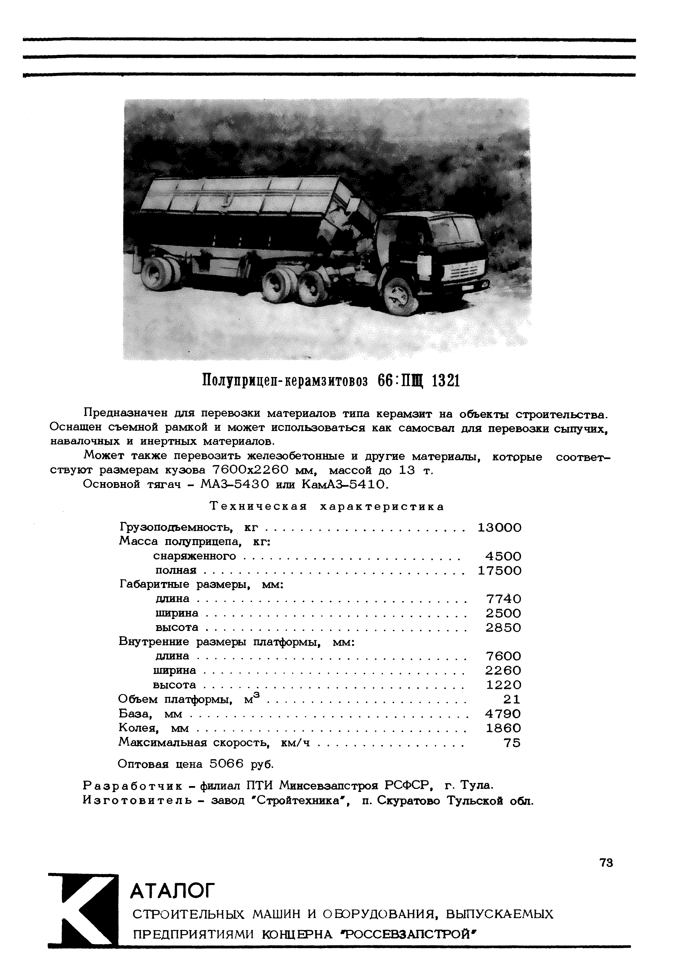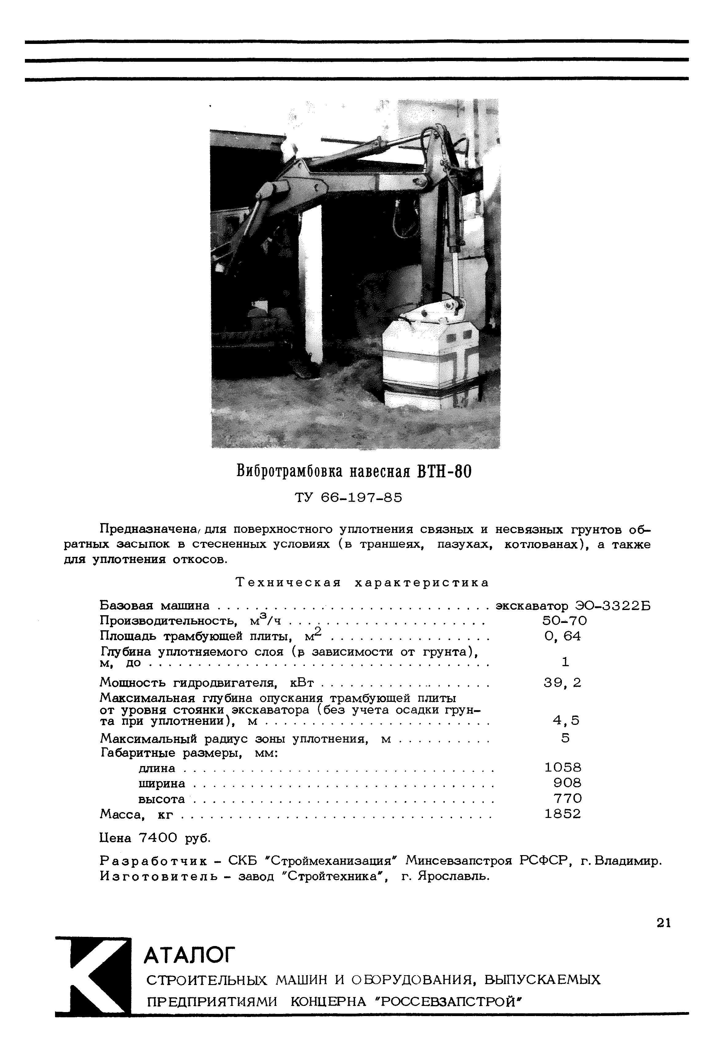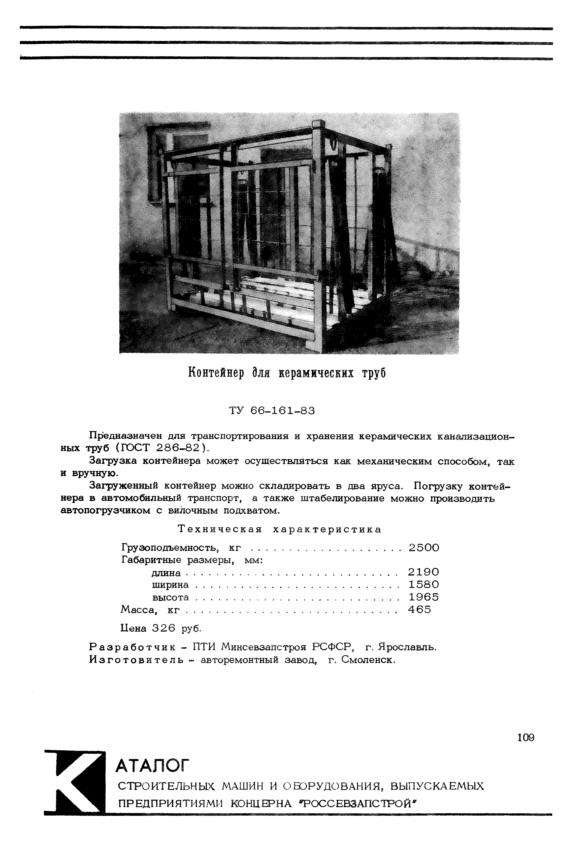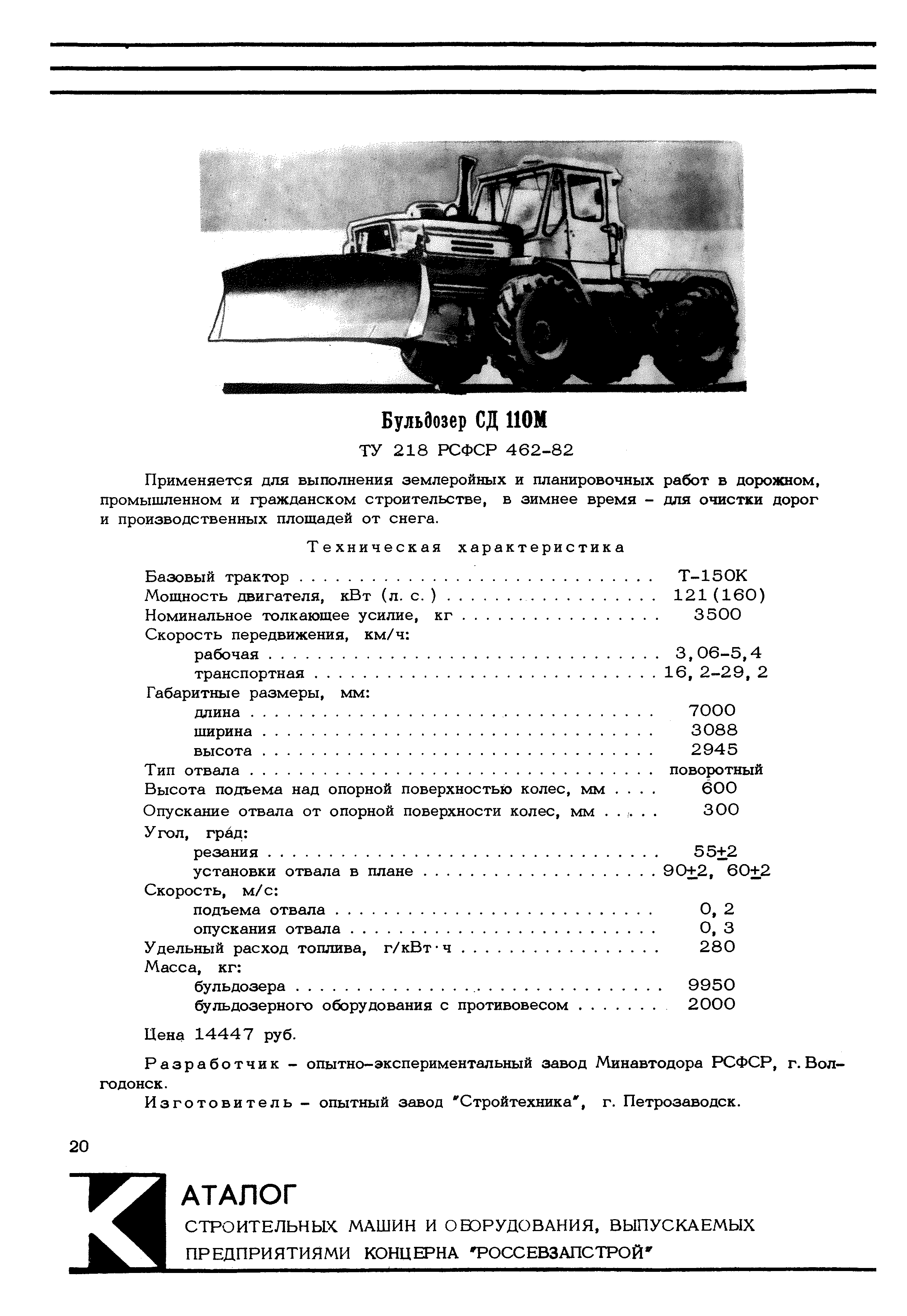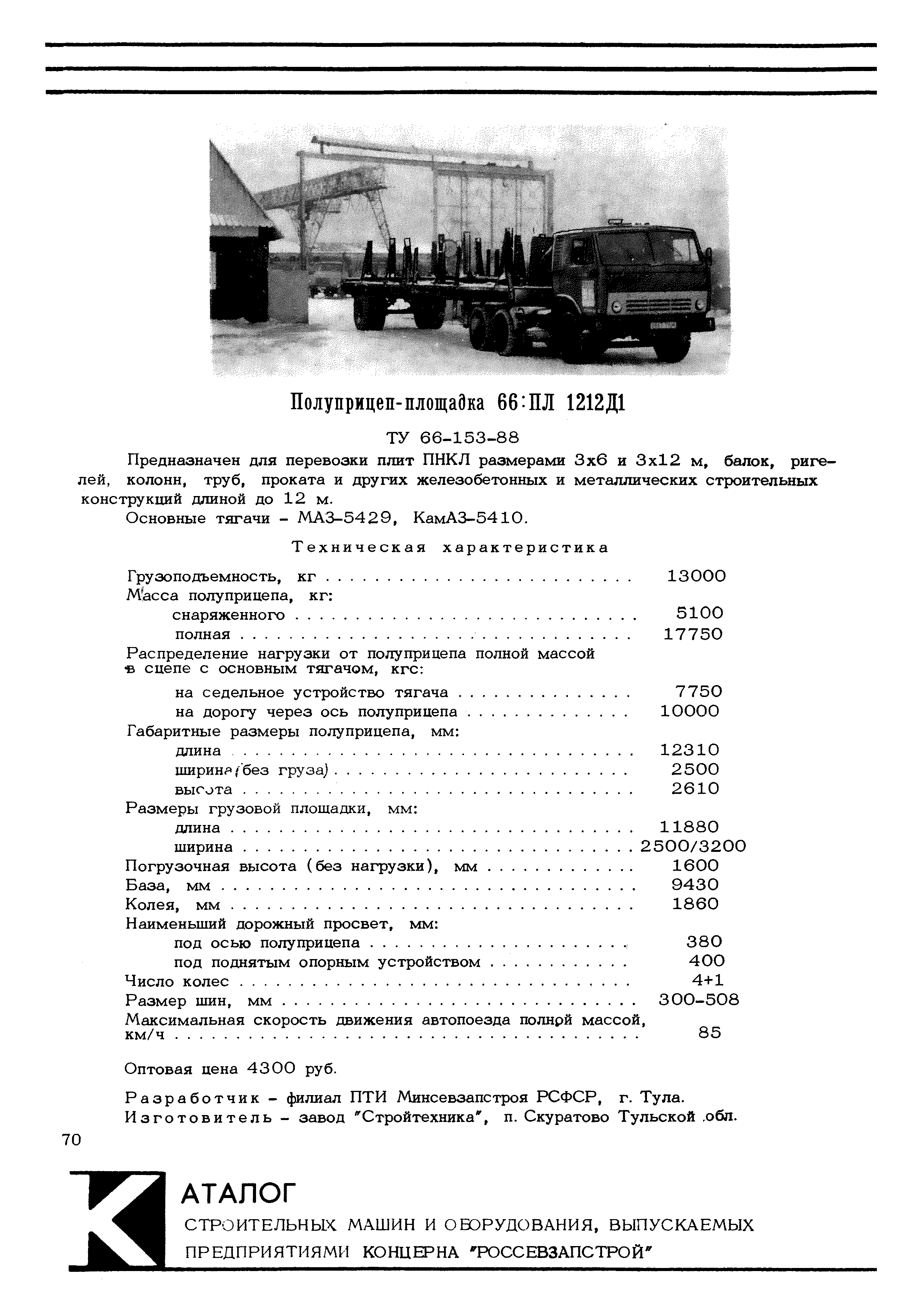 Каталог строительных машин и оборудования, выпускаемых предприятиями концерна "Россевзапстрой"| Статус: | справочные материалы, мп, тпр | | Название рус.: | Каталог строительных машин и оборудования, выпускаемых предприятиями концерна "Россевзапстрой" | | Дата добавления в базу: | 12.02.2016 | | Дата актуализации: | 01.01.2021 | | Оглавление: | 1 Подъемно-транспортные и погрузочно0разгрузочные машины и оборудование Кран башенный КБ—403А Кран башенный КБ-403Б Кран башенный КБ—406.2 Кран башенный КБ—408 Кран стреловой на рельсовом ходу грузоподъемностью 11т СК—З 861 Кран мостовой электрический общего назначения грузоподъемностью 16 т Погрузчик навесной 96,014—00 Подъёмник автомобильный гидравлический АГП—36 Подъемник автомобильный гидравлический ВС—18,01—МС Грейфер одноканатный двухчелюстной вместимостью 0,71 м3 Подъемник мачтовый ТП—17А Установка УРВСМ-90 Установка УРВСМ-200 2. Машины и оборудование для земляных и свайных работ Бульдозер СД 11ОМ Вибротрамбовка навесная ВТН—80 Навесное оборудование для бурения шнуров на экскаваторе ЭО—262 1В Машина землеройная цепная МЗЦ—75 Гидропневматическое навесное оборудование на экскаватор ЭО—4121 (гидропневмомолот) ГПМ—2000 Бульдозерное оборудование СД 112 к трактору Т—150К Оборудование "Удлиненная обратная лопата к экскаватору ЭО—4121 и его модификациями" Устройство для срезки свай УСС—ЗА Цепь режущая ГМ—17 Отвал Д-686-01.000 3. Машины и оборудование для бетонных работ Автобетоносмеситель АБС—5 Пневмокамерный насос "Монжус—1200—6" Установка бетонорастворосмесительная цикличная инвентарная Склад цемента инвентарный ИСП—266 Агрегат мелкого дробления и сортировки стационарный СМД—27БМ 4. Машины и оборудование для отделочных и кровельных работ Установка для транспортирования и подачи битумно—кукерсольных мастик УПМ-3,2-01 Установка битумоварочная УБ-З01А Станция штукатурная СО-114 Агрегат окрасочных с применением бессальникового центробежного насоса Шепеленко Н0—42—00—001 Установка для приемки и выдачи раствора УВР—3,5—01 Установка для перемешивания и выдачи раствора УБ—342 Растворонасос поршневой РНП—4 Установка типа "Пена—12" для напыления пенополиуретана Станция малярная 42192—01А 5. Ручной строительный инструмент Ножницы обойные Н0-01 Нож раскройный НР—01 Ковш КШ—1 для штукатурных работ Кельмы КК—01, КШ—01 для каменных и штукатурных работ Штукатурный инструмент Сокол С—01, терка Шпатели малярные ШП-01, ШП-02, ШП-04, ШС-01 Расшивки Р—01, Р—02. Рустовка РУ—01 Скоба причальная СП—01. Шнур в корпусе Ш—01 Скарпели СК-01, СК-02, СК-03 Скребок СР—01. Гребок Г—01 Ножницы арматурные НА—01. Станок ножовочный СН—01 Валики малярные ВМ-01, ВМ-02, ВМ-0З. Валик сдвоенный ВС-01. Приспособление окрасочное П0—01 Молотки стальные строительные М—01, М—02, М—0З, М—04 6. Специализированный транспорт Прицеп—тяжеловоз автомобильный низкорамный АНПТ—60 Прицеп—тяжеловоз грузоподъемностью 40 т У4005 Прицеп-тяжеловоз 66: ИН6006 Полуприцеп—панелевоз ПП 1307А Полуприцеп УПП—1207 Полуприцеп УПП (Ш) 1207 Полуприцеп УПР 1212 М Полуприцеп УПЛ 1412 Полуприцеп—площадка 66: ПЛ 1212Д1 Полуприцеп—площадка ПЛ 2212 Полуприцеп—плитовоз УПЛ 1824 Полуприцеп—керамзитовоз 66: ПШ 1321 Автопоезд УАС—2613 Полуприцеп—сантехкабиновоз ПЭ 1209 ЦЭКБ Склад взрывчатых материалов передвижной Автомобиль-самопогрузчик КС-3000 (КС-3000А) Самосвал малогабаритный СМ—1500 Самосвал малогабаритный СМ—1100 ПГ Автошпаклевоз 66: ЦЯ 0