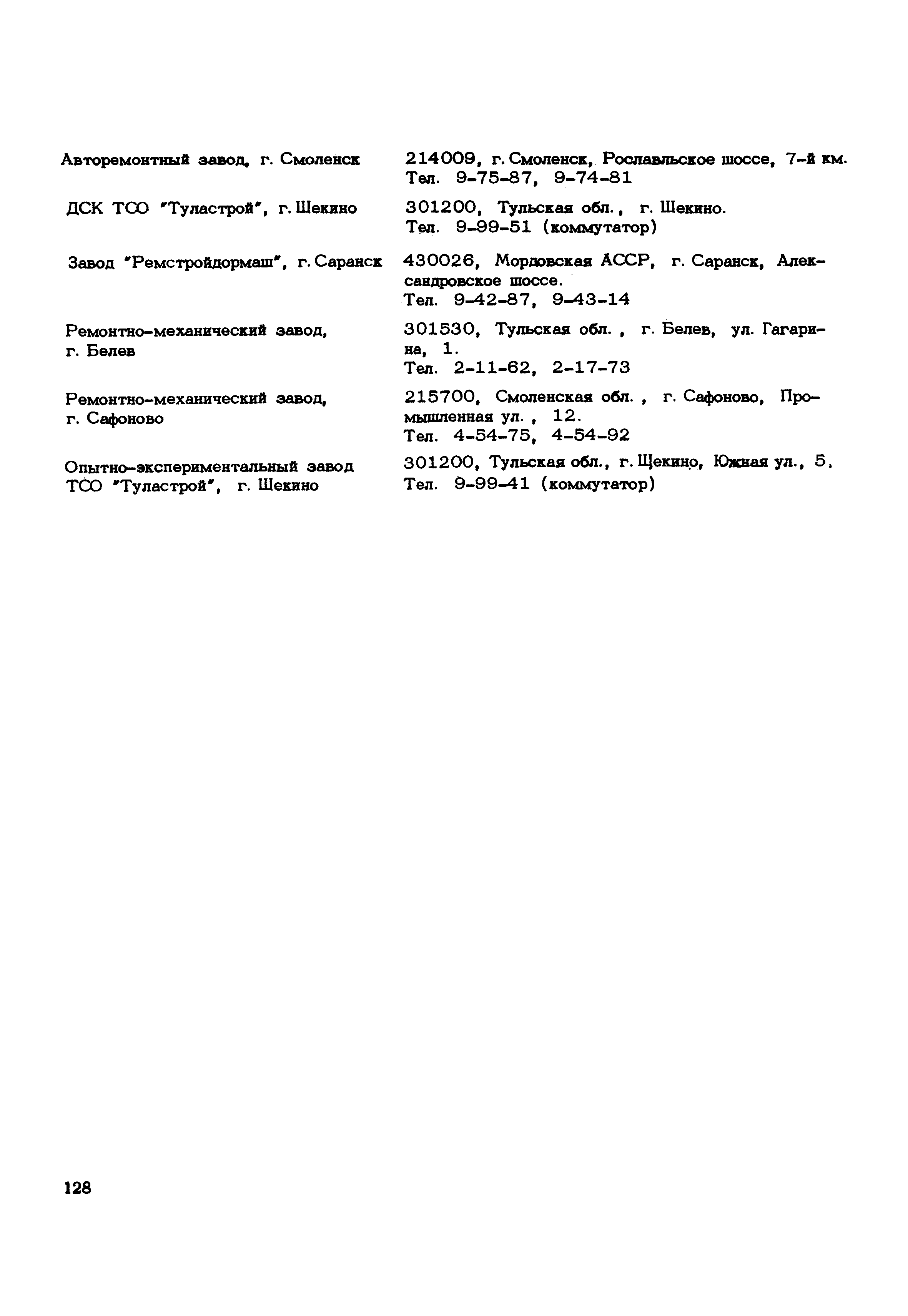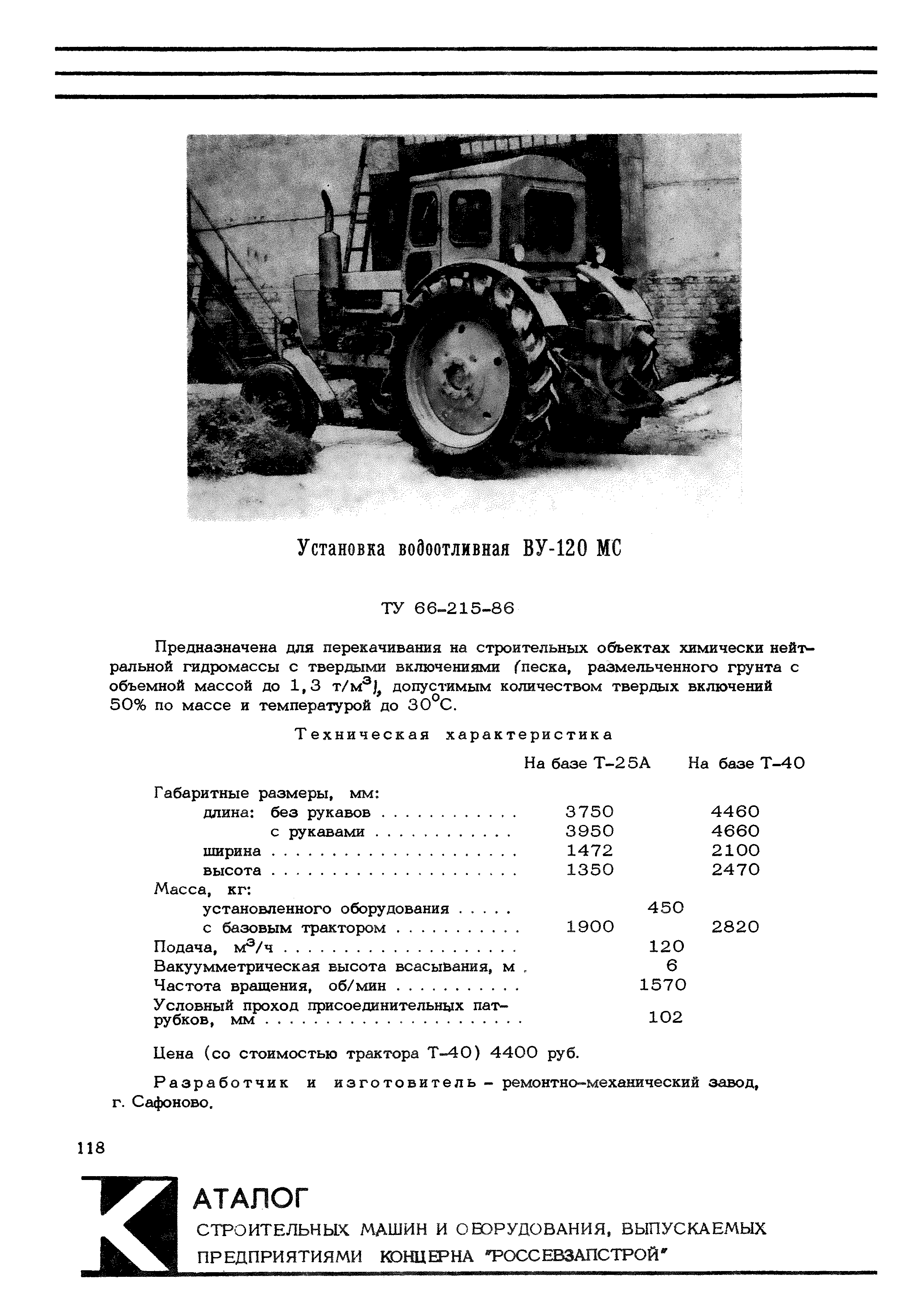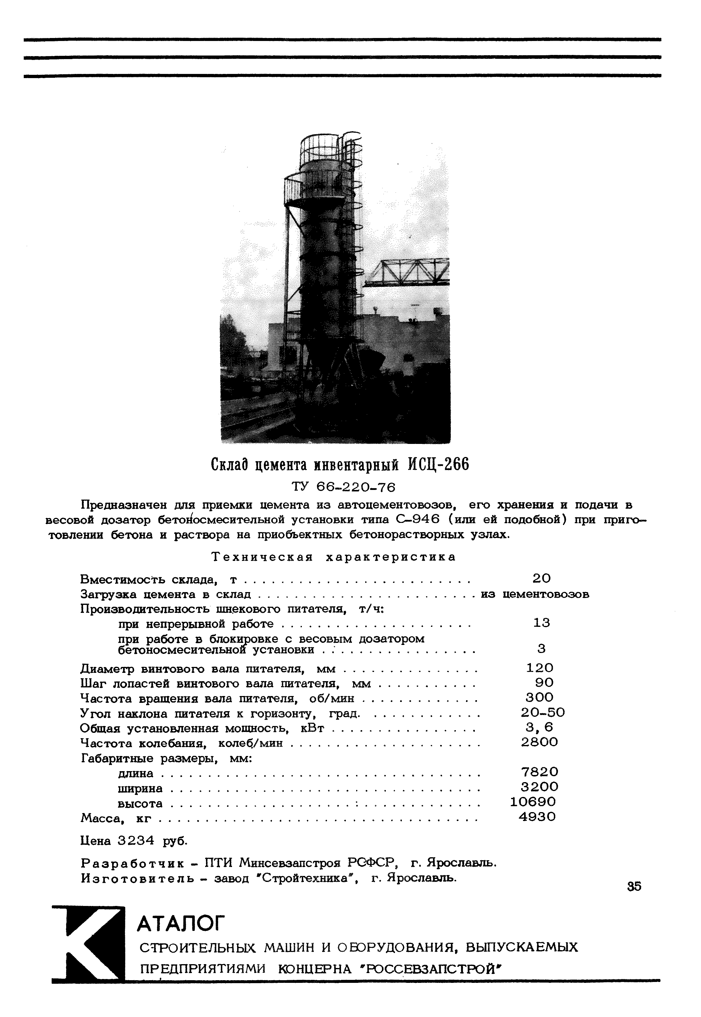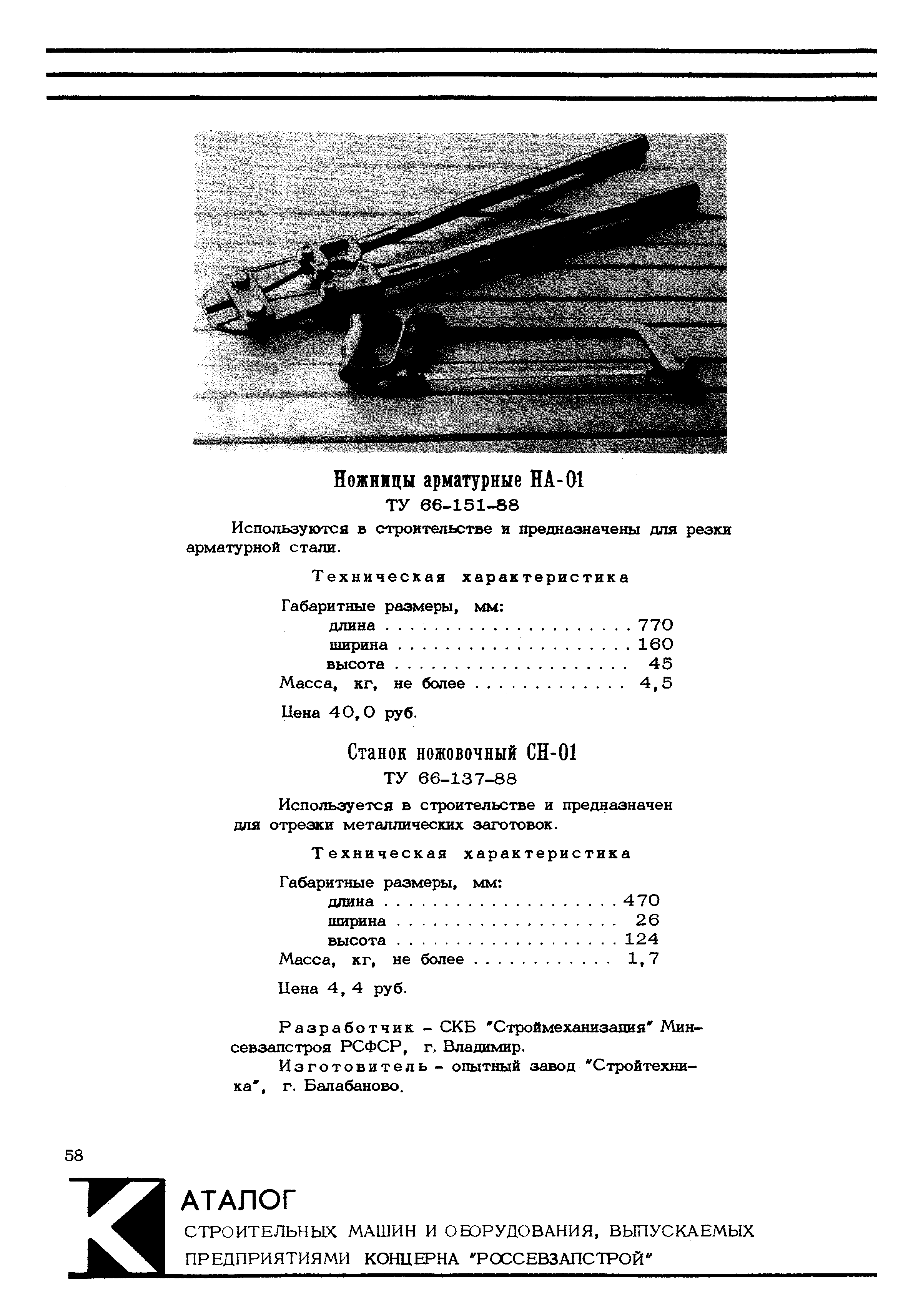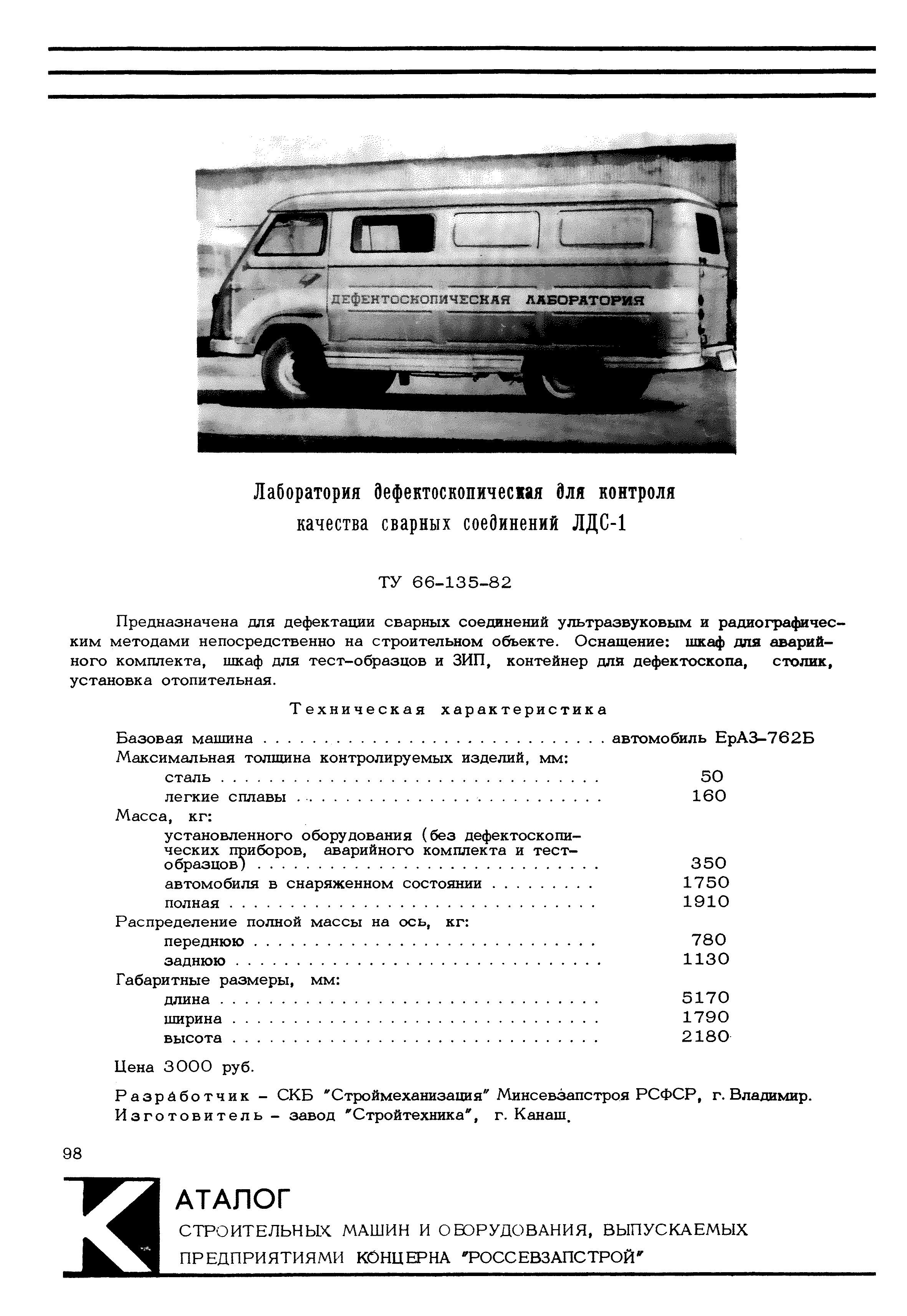Каталог строительных машин и оборудования, выпускаемых предприятиями концерна "Россевзапстрой"| Статус: | справочные материалы, мп, тпр | | Название рус.: | Каталог строительных машин и оборудования, выпускаемых предприятиями концерна "Россевзапстрой" | | Дата добавления в базу: | 12.02.2016 | | Дата актуализации: | 01.01.2021 | | Оглавление: | 1 Подъемно-транспортные и погрузочно0разгрузочные машины и оборудование Кран башенный КБ—403А Кран башенный КБ-403Б Кран башенный КБ—406.2 Кран башенный КБ—408 Кран стреловой на рельсовом ходу грузоподъемностью 11т СК—З 861 Кран мостовой электрический общего назначения грузоподъемностью 16 т Погрузчик навесной 96,014—00 Подъёмник автомобильный гидравлический АГП—36 Подъемник автомобильный гидравлический ВС—18,01—МС Грейфер одноканатный двухчелюстной вместимостью 0,71 м3 Подъемник мачтовый ТП—17А Установка УРВСМ-90 Установка УРВСМ-200 2. Машины и оборудование для земляных и свайных работ Бульдозер СД 11ОМ Вибротрамбовка навесная ВТН—80 Навесное оборудование для бурения шнуров на экскаваторе ЭО—262 1В Машина землеройная цепная МЗЦ—75 Гидропневматическое навесное оборудование на экскаватор ЭО—4121 (гидропневмомолот) ГПМ—2000 Бульдозерное оборудование СД 112 к трактору Т—150К Оборудование "Удлиненная обратная лопата к экскаватору ЭО—4121 и его модификациями" Устройство для срезки свай УСС—ЗА Цепь режущая ГМ—17 Отвал Д-686-01.000 3. Машины и оборудование для бетонных работ Автобетоносмеситель АБС—5 Пневмокамерный насос "Монжус—1200—6" Установка бетонорастворосмесительная цикличная инвентарная Склад цемента инвентарный ИСП—266 Агрегат мелкого дробления и сортировки стационарный СМД—27БМ 4. Машины и оборудование для отделочных и кровельных работ Установка для транспортирования и подачи битумно—кукерсольных мастик УПМ-3,2-01 Установка битумоварочная УБ-З01А Станция штукатурная СО-114 Агрегат окрасочных с применением бессальникового центробежного насоса Шепеленко Н0—42—00—001 Установка для приемки и выдачи раствора УВР—3,5—01 Установка для перемешивания и выдачи раствора УБ—342 Растворонасос поршневой РНП—4 Установка типа "Пена—12" для напыления пенополиуретана Станция малярная 42192—01А 5. Ручной строительный инструмент Ножницы обойные Н0-01 Нож раскройный НР—01 Ковш КШ—1 для штукатурных работ Кельмы КК—01, КШ—01 для каменных и штукатурных работ Штукатурный инструмент Сокол С—01, терка Шпатели малярные ШП-01, ШП-02, ШП-04, ШС-01 Расшивки Р—01, Р—02. Рустовка РУ—01 Скоба причальная СП—01. Шнур в корпусе Ш—01 Скарпели СК-01, СК-02, СК-03 Скребок СР—01. Гребок Г—01 Ножницы арматурные НА—01. Станок ножовочный СН—01 Валики малярные ВМ-01, ВМ-02, ВМ-0З. Валик сдвоенный ВС-01. Приспособление окрасочное П0—01 Молотки стальные строительные М—01, М—02, М—0З, М—04 6. Специализированный транспорт Прицеп—тяжеловоз автомобильный низкорамный АНПТ—60 Прицеп—тяжеловоз грузоподъемностью 40 т У4005 Прицеп-тяжеловоз 66: ИН6006 Полуприцеп—панелевоз ПП 1307А Полуприцеп УПП—1207 Полуприцеп УПП (Ш) 1207 Полуприцеп УПР 1212 М Полуприцеп УПЛ 1412 Полуприцеп—площадка 66: ПЛ 1212Д1 Полуприцеп—площадка ПЛ 2212 Полуприцеп—плитовоз УПЛ 1824 Полуприцеп—керамзитовоз 66: ПШ 1321 Автопоезд УАС—2613 Полуприцеп—сантехкабиновоз ПЭ 1209 ЦЭКБ Склад взрывчатых материалов передвижной Автомобиль-самопогрузчик КС-3000 (КС-3000А) Самосвал малогабаритный СМ—1500 Самосвал малогабаритный СМ—1100 ПГ Автошпаклевоз 66: ЦЯ 0