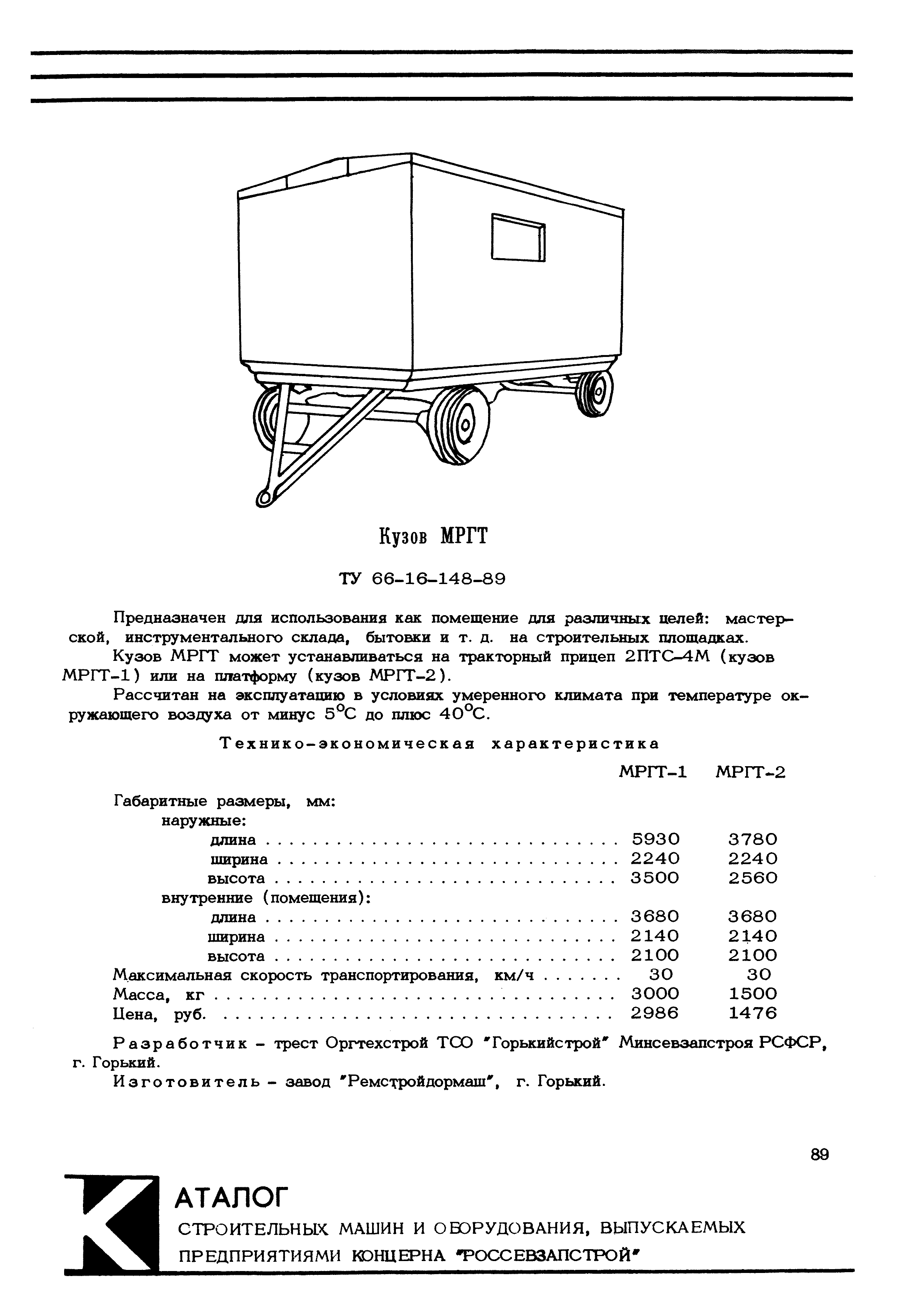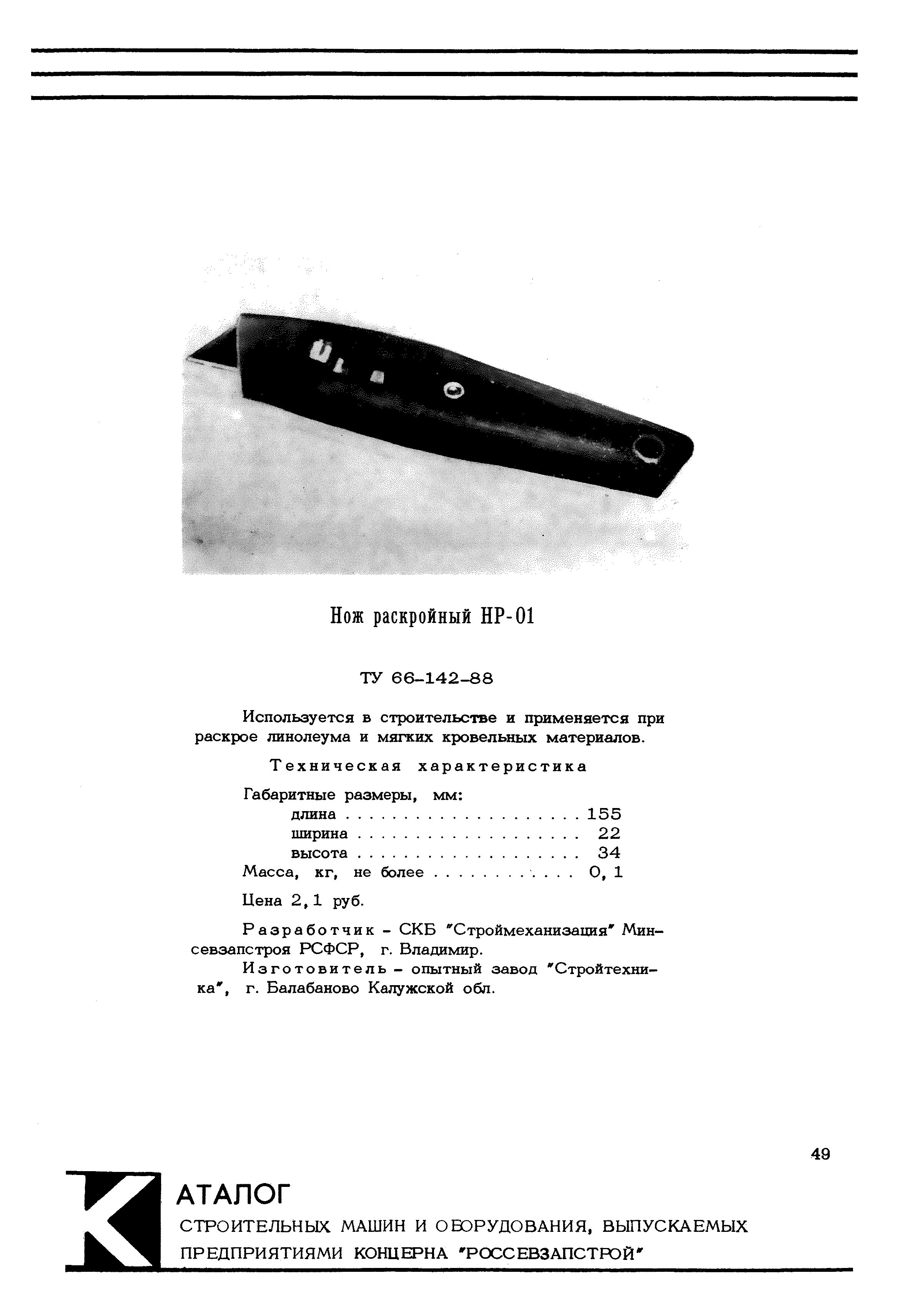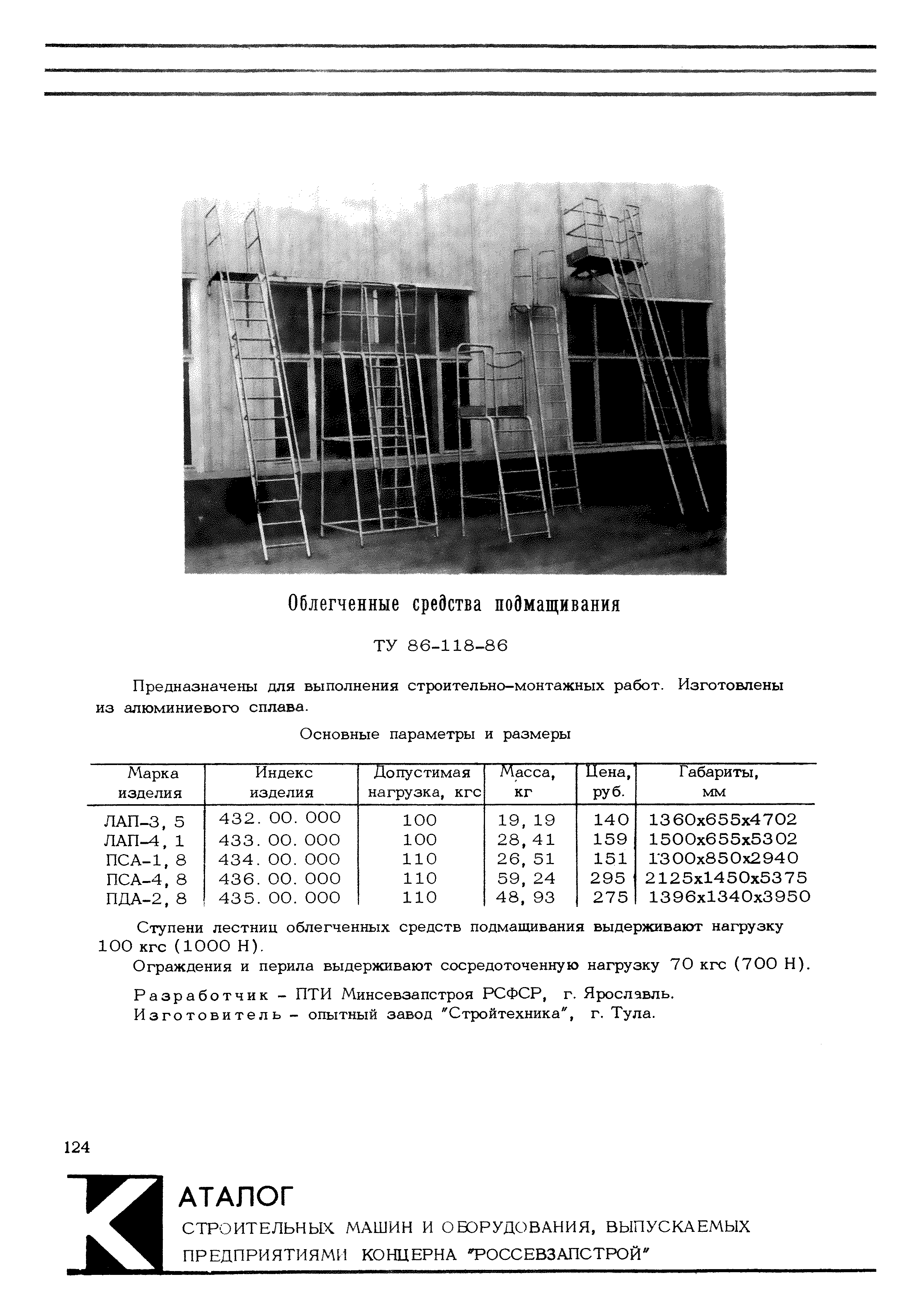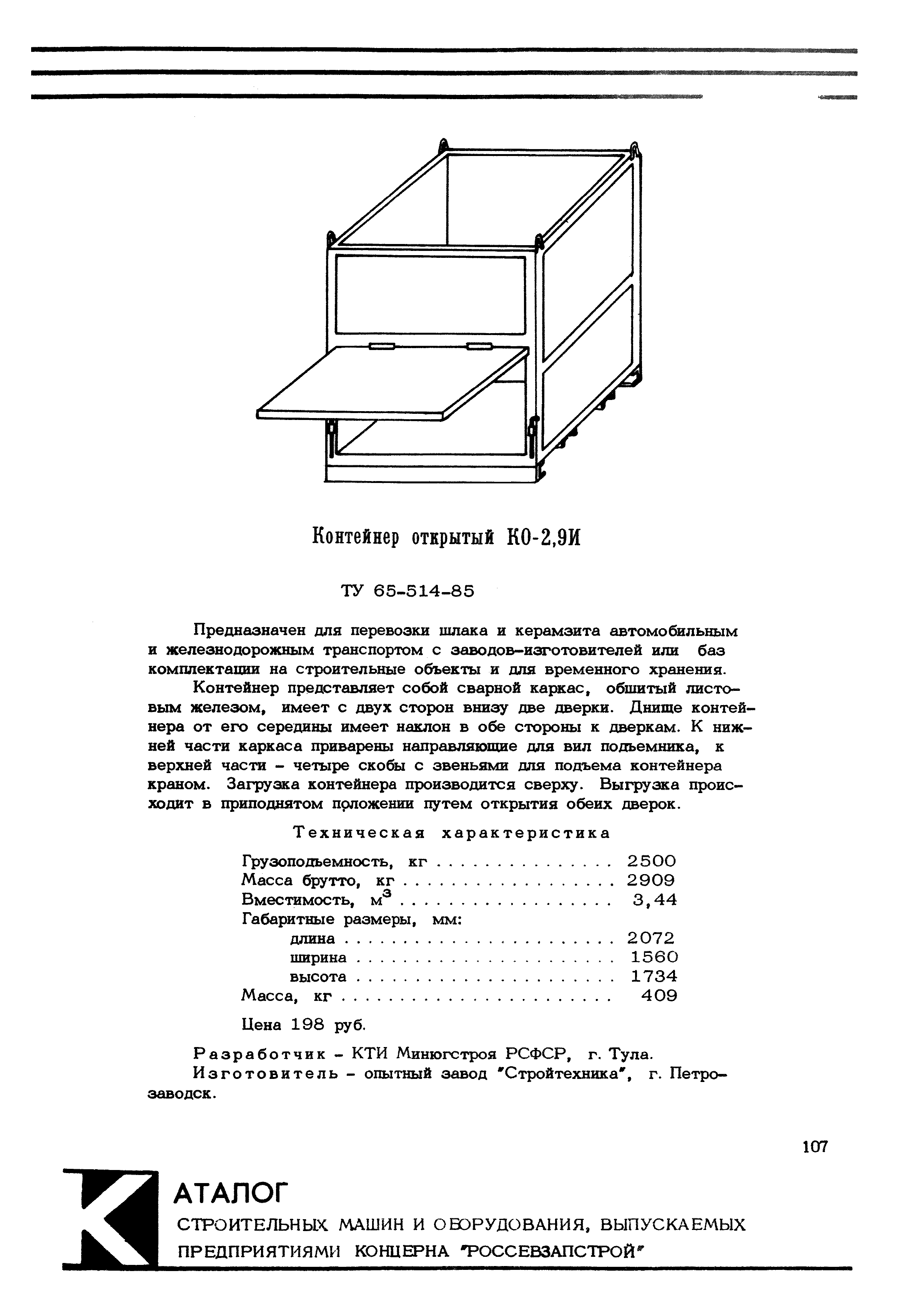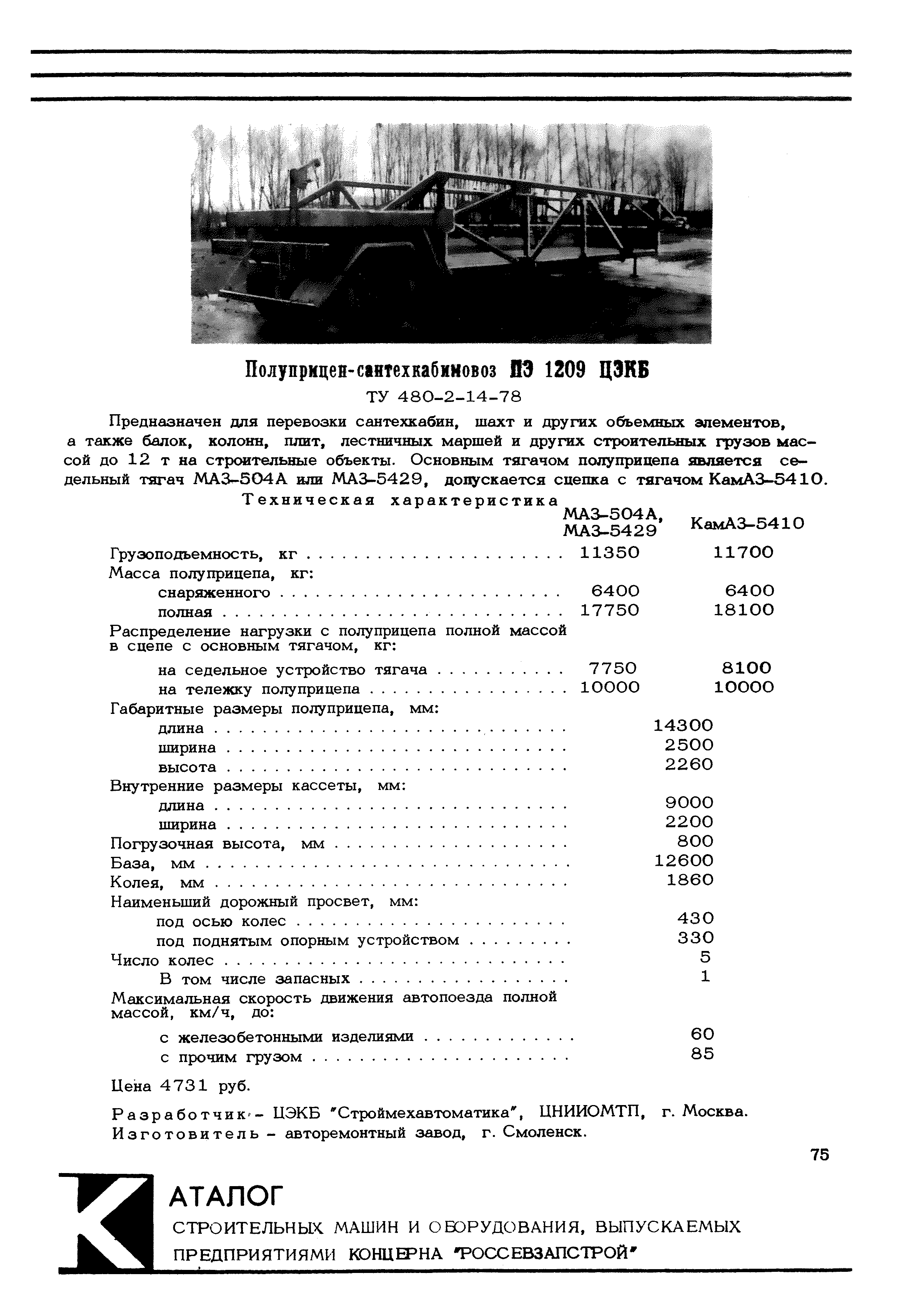 Каталог строительных машин и оборудования, выпускаемых предприятиями концерна "Россевзапстрой"| Статус: | справочные материалы, мп, тпр | | Название рус.: | Каталог строительных машин и оборудования, выпускаемых предприятиями концерна "Россевзапстрой" | | Дата добавления в базу: | 12.02.2016 | | Дата актуализации: | 01.01.2021 | | Оглавление: | 1 Подъемно-транспортные и погрузочно0разгрузочные машины и оборудование Кран башенный КБ—403А Кран башенный КБ-403Б Кран башенный КБ—406.2 Кран башенный КБ—408 Кран стреловой на рельсовом ходу грузоподъемностью 11т СК—З 861 Кран мостовой электрический общего назначения грузоподъемностью 16 т Погрузчик навесной 96,014—00 Подъёмник автомобильный гидравлический АГП—36 Подъемник автомобильный гидравлический ВС—18,01—МС Грейфер одноканатный двухчелюстной вместимостью 0,71 м3 Подъемник мачтовый ТП—17А Установка УРВСМ-90 Установка УРВСМ-200 2. Машины и оборудование для земляных и свайных работ Бульдозер СД 11ОМ Вибротрамбовка навесная ВТН—80 Навесное оборудование для бурения шнуров на экскаваторе ЭО—262 1В Машина землеройная цепная МЗЦ—75 Гидропневматическое навесное оборудование на экскаватор ЭО—4121 (гидропневмомолот) ГПМ—2000 Бульдозерное оборудование СД 112 к трактору Т—150К Оборудование "Удлиненная обратная лопата к экскаватору ЭО—4121 и его модификациями" Устройство для срезки свай УСС—ЗА Цепь режущая ГМ—17 Отвал Д-686-01.000 3. Машины и оборудование для бетонных работ Автобетоносмеситель АБС—5 Пневмокамерный насос "Монжус—1200—6" Установка бетонорастворосмесительная цикличная инвентарная Склад цемента инвентарный ИСП—266 Агрегат мелкого дробления и сортировки стационарный СМД—27БМ 4. Машины и оборудование для отделочных и кровельных работ Установка для транспортирования и подачи битумно—кукерсольных мастик УПМ-3,2-01 Установка битумоварочная УБ-З01А Станция штукатурная СО-114 Агрегат окрасочных с применением бессальникового центробежного насоса Шепеленко Н0—42—00—001 Установка для приемки и выдачи раствора УВР—3,5—01 Установка для перемешивания и выдачи раствора УБ—342 Растворонасос поршневой РНП—4 Установка типа "Пена—12" для напыления пенополиуретана Станция малярная 42192—01А 5. Ручной строительный инструмент Ножницы обойные Н0-01 Нож раскройный НР—01 Ковш КШ—1 для штукатурных работ Кельмы КК—01, КШ—01 для каменных и штукатурных работ Штукатурный инструмент Сокол С—01, терка Шпатели малярные ШП-01, ШП-02, ШП-04, ШС-01 Расшивки Р—01, Р—02. Рустовка РУ—01 Скоба причальная СП—01. Шнур в корпусе Ш—01 Скарпели СК-01, СК-02, СК-03 Скребок СР—01. Гребок Г—01 Ножницы арматурные НА—01. Станок ножовочный СН—01 Валики малярные ВМ-01, ВМ-02, ВМ-0З. Валик сдвоенный ВС-01. Приспособление окрасочное П0—01 Молотки стальные строительные М—01, М—02, М—0З, М—04 6. Специализированный транспорт Прицеп—тяжеловоз автомобильный низкорамный АНПТ—60 Прицеп—тяжеловоз грузоподъемностью 40 т У4005 Прицеп-тяжеловоз 66: ИН6006 Полуприцеп—панелевоз ПП 1307А Полуприцеп УПП—1207 Полуприцеп УПП (Ш) 1207 Полуприцеп УПР 1212 М Полуприцеп УПЛ 1412 Полуприцеп—площадка 66: ПЛ 1212Д1 Полуприцеп—площадка ПЛ 2212 Полуприцеп—плитовоз УПЛ 1824 Полуприцеп—керамзитовоз 66: ПШ 1321 Автопоезд УАС—2613 Полуприцеп—сантехкабиновоз ПЭ 1209 ЦЭКБ Склад взрывчатых материалов передвижной Автомобиль-самопогрузчик КС-3000 (КС-3000А) Самосвал малогабаритный СМ—1500 Самосвал малогабаритный СМ—1100 ПГ Автошпаклевоз 66: ЦЯ 0