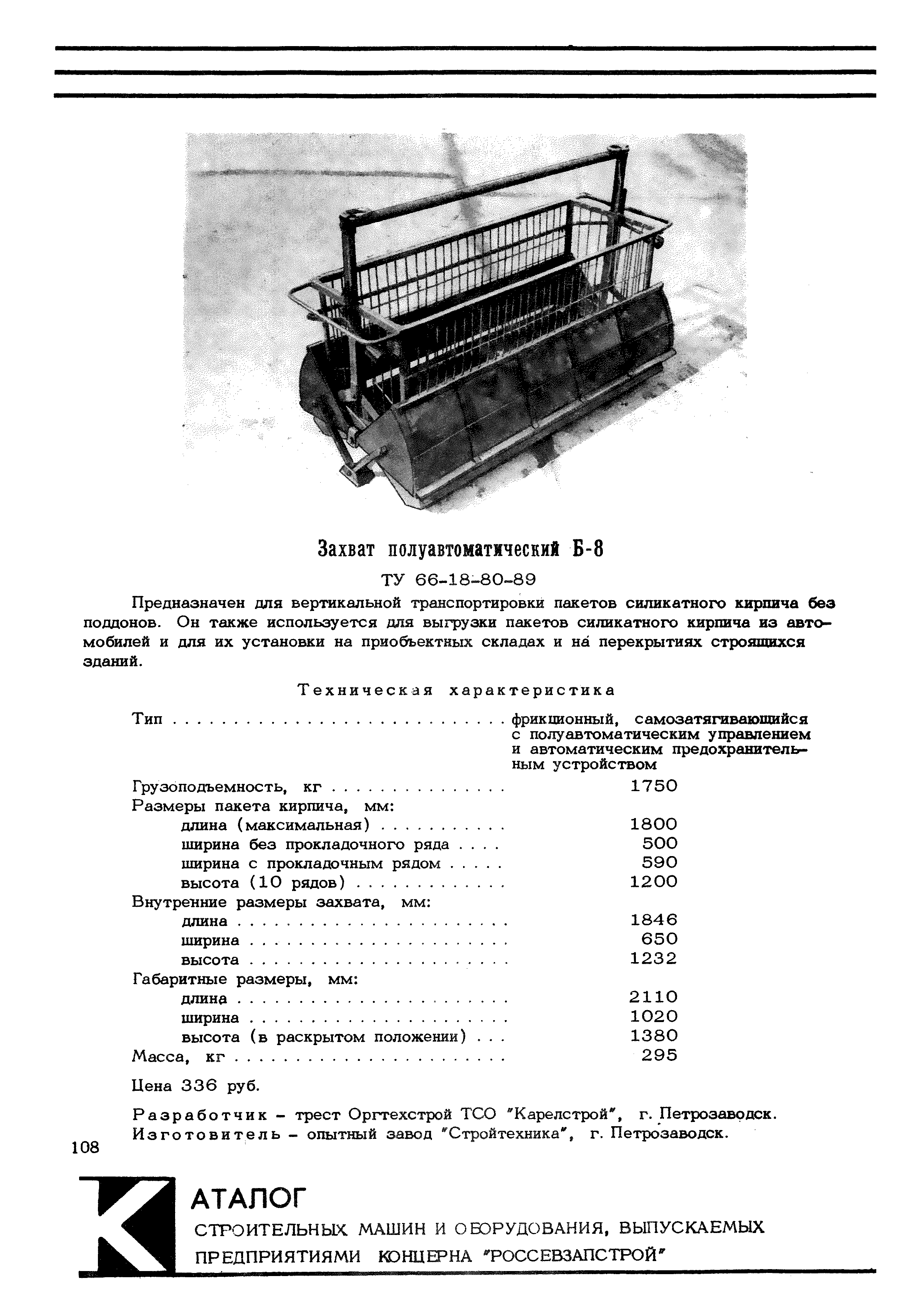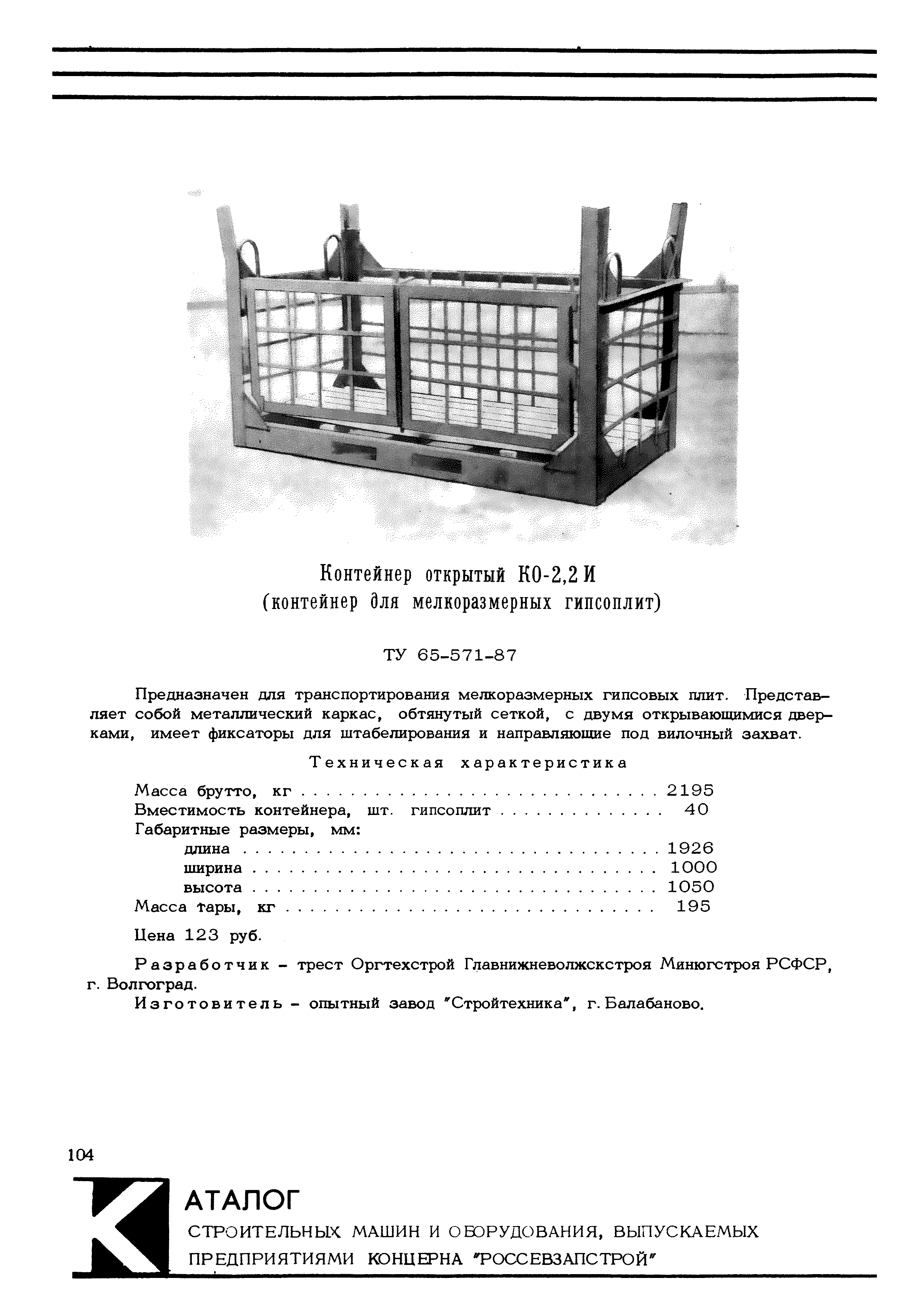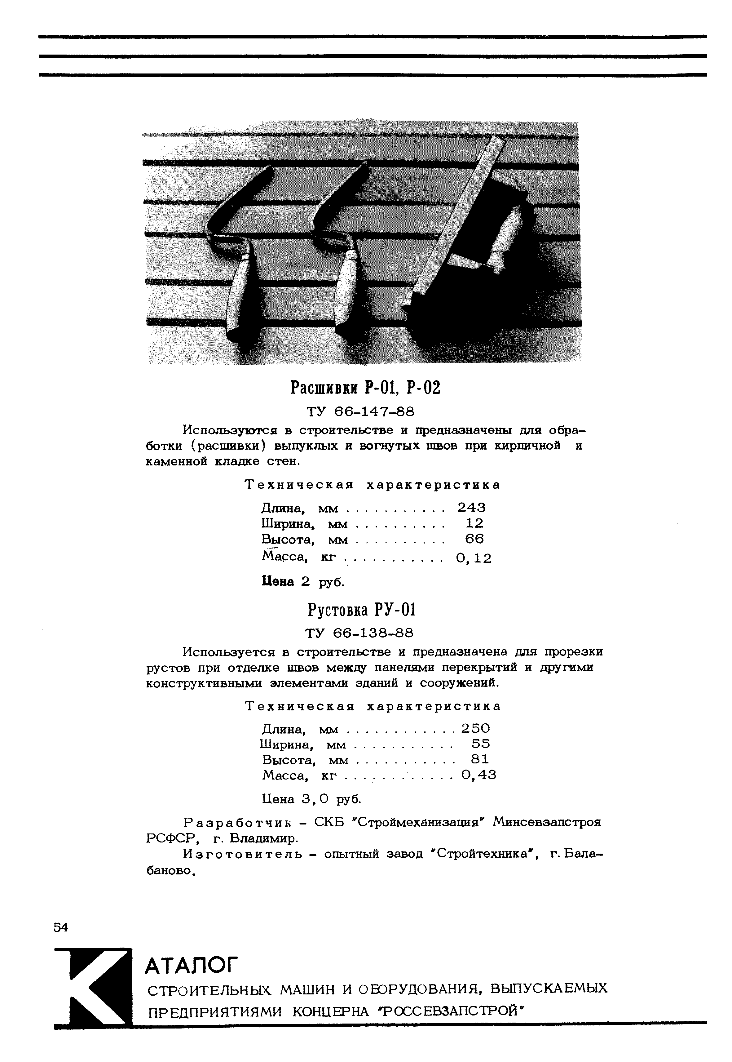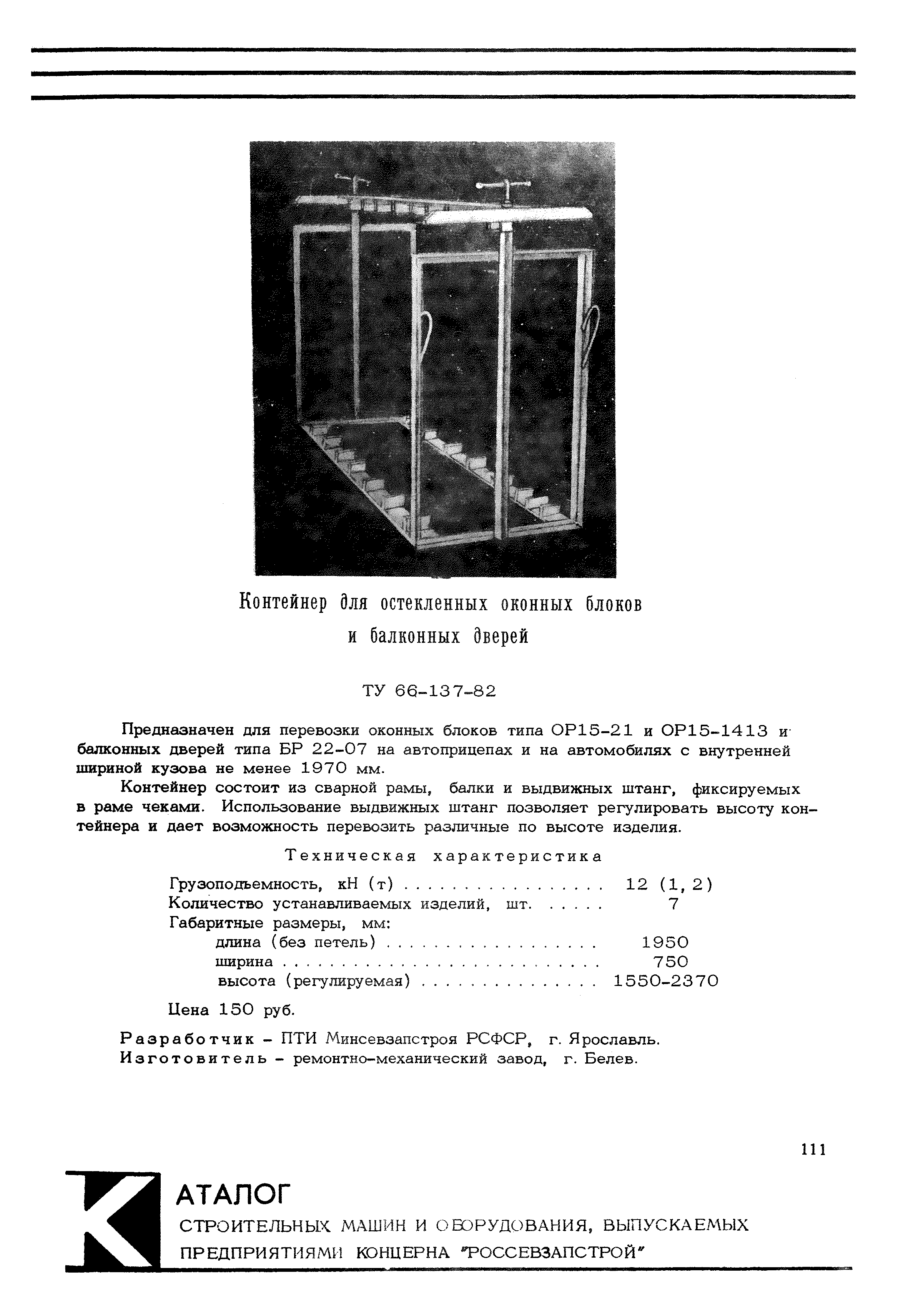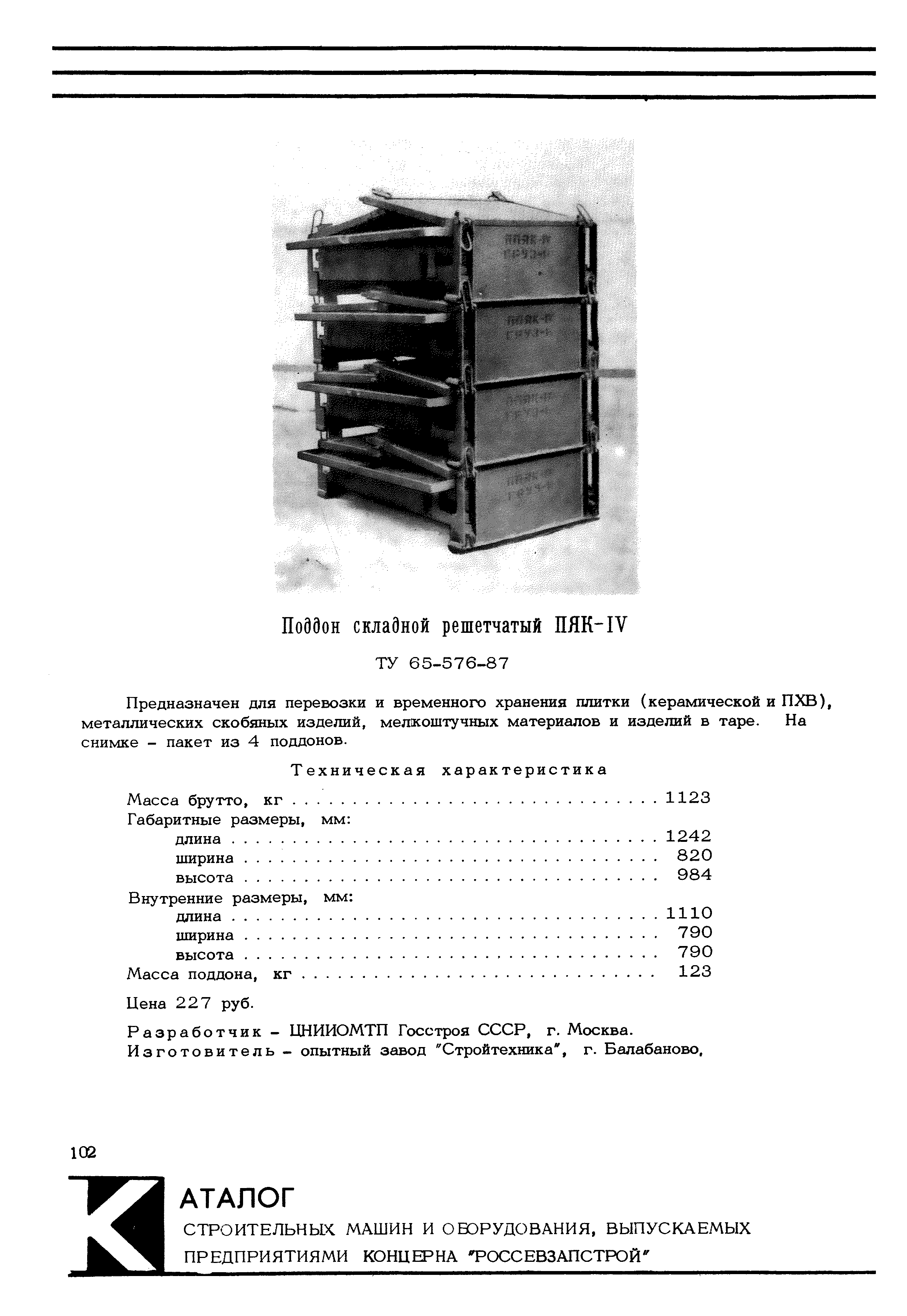 Каталог строительных машин и оборудования, выпускаемых предприятиями концерна "Россевзапстрой"| Статус: | справочные материалы, мп, тпр | | Название рус.: | Каталог строительных машин и оборудования, выпускаемых предприятиями концерна "Россевзапстрой" | | Дата добавления в базу: | 12.02.2016 | | Дата актуализации: | 01.01.2021 | | Оглавление: | 1 Подъемно-транспортные и погрузочно0разгрузочные машины и оборудование Кран башенный КБ—403А Кран башенный КБ-403Б Кран башенный КБ—406.2 Кран башенный КБ—408 Кран стреловой на рельсовом ходу грузоподъемностью 11т СК—З 861 Кран мостовой электрический общего назначения грузоподъемностью 16 т Погрузчик навесной 96,014—00 Подъёмник автомобильный гидравлический АГП—36 Подъемник автомобильный гидравлический ВС—18,01—МС Грейфер одноканатный двухчелюстной вместимостью 0,71 м3 Подъемник мачтовый ТП—17А Установка УРВСМ-90 Установка УРВСМ-200 2. Машины и оборудование для земляных и свайных работ Бульдозер СД 11ОМ Вибротрамбовка навесная ВТН—80 Навесное оборудование для бурения шнуров на экскаваторе ЭО—262 1В Машина землеройная цепная МЗЦ—75 Гидропневматическое навесное оборудование на экскаватор ЭО—4121 (гидропневмомолот) ГПМ—2000 Бульдозерное оборудование СД 112 к трактору Т—150К Оборудование "Удлиненная обратная лопата к экскаватору ЭО—4121 и его модификациями" Устройство для срезки свай УСС—ЗА Цепь режущая ГМ—17 Отвал Д-686-01.000 3. Машины и оборудование для бетонных работ Автобетоносмеситель АБС—5 Пневмокамерный насос "Монжус—1200—6" Установка бетонорастворосмесительная цикличная инвентарная Склад цемента инвентарный ИСП—266 Агрегат мелкого дробления и сортировки стационарный СМД—27БМ 4. Машины и оборудование для отделочных и кровельных работ Установка для транспортирования и подачи битумно—кукерсольных мастик УПМ-3,2-01 Установка битумоварочная УБ-З01А Станция штукатурная СО-114 Агрегат окрасочных с применением бессальникового центробежного насоса Шепеленко Н0—42—00—001 Установка для приемки и выдачи раствора УВР—3,5—01 Установка для перемешивания и выдачи раствора УБ—342 Растворонасос поршневой РНП—4 Установка типа "Пена—12" для напыления пенополиуретана Станция малярная 42192—01А 5. Ручной строительный инструмент Ножницы обойные Н0-01 Нож раскройный НР—01 Ковш КШ—1 для штукатурных работ Кельмы КК—01, КШ—01 для каменных и штукатурных работ Штукатурный инструмент Сокол С—01, терка Шпатели малярные ШП-01, ШП-02, ШП-04, ШС-01 Расшивки Р—01, Р—02. Рустовка РУ—01 Скоба причальная СП—01. Шнур в корпусе Ш—01 Скарпели СК-01, СК-02, СК-03 Скребок СР—01. Гребок Г—01 Ножницы арматурные НА—01. Станок ножовочный СН—01 Валики малярные ВМ-01, ВМ-02, ВМ-0З. Валик сдвоенный ВС-01. Приспособление окрасочное П0—01 Молотки стальные строительные М—01, М—02, М—0З, М—04 6. Специализированный транспорт Прицеп—тяжеловоз автомобильный низкорамный АНПТ—60 Прицеп—тяжеловоз грузоподъемностью 40 т У4005 Прицеп-тяжеловоз 66: ИН6006 Полуприцеп—панелевоз ПП 1307А Полуприцеп УПП—1207 Полуприцеп УПП (Ш) 1207 Полуприцеп УПР 1212 М Полуприцеп УПЛ 1412 Полуприцеп—площадка 66: ПЛ 1212Д1 Полуприцеп—площадка ПЛ 2212 Полуприцеп—плитовоз УПЛ 1824 Полуприцеп—керамзитовоз 66: ПШ 1321 Автопоезд УАС—2613 Полуприцеп—сантехкабиновоз ПЭ 1209 ЦЭКБ Склад взрывчатых материалов передвижной Автомобиль-самопогрузчик КС-3000 (КС-3000А) Самосвал малогабаритный СМ—1500 Самосвал малогабаритный СМ—1100 ПГ Автошпаклевоз 66: ЦЯ 0