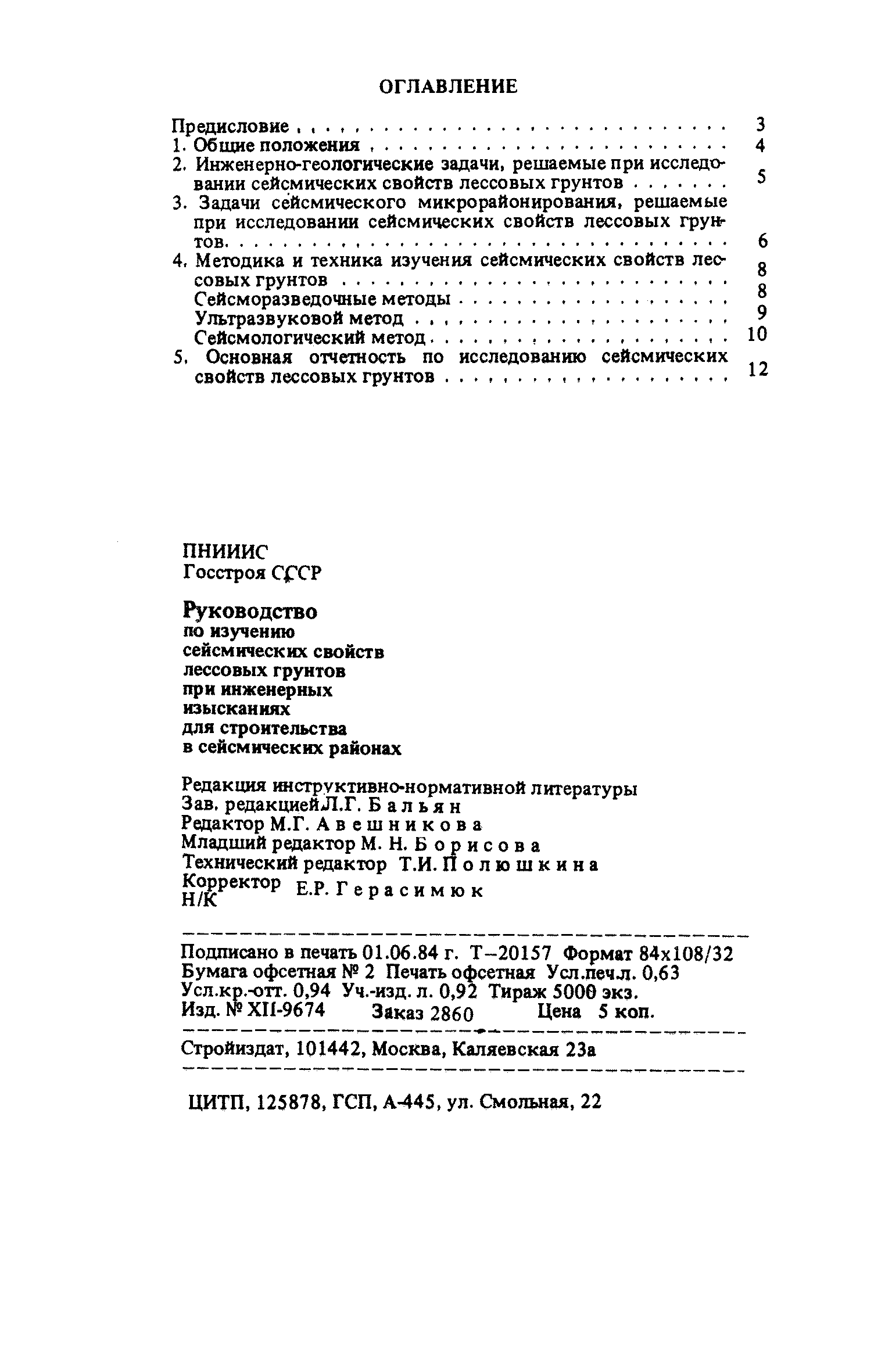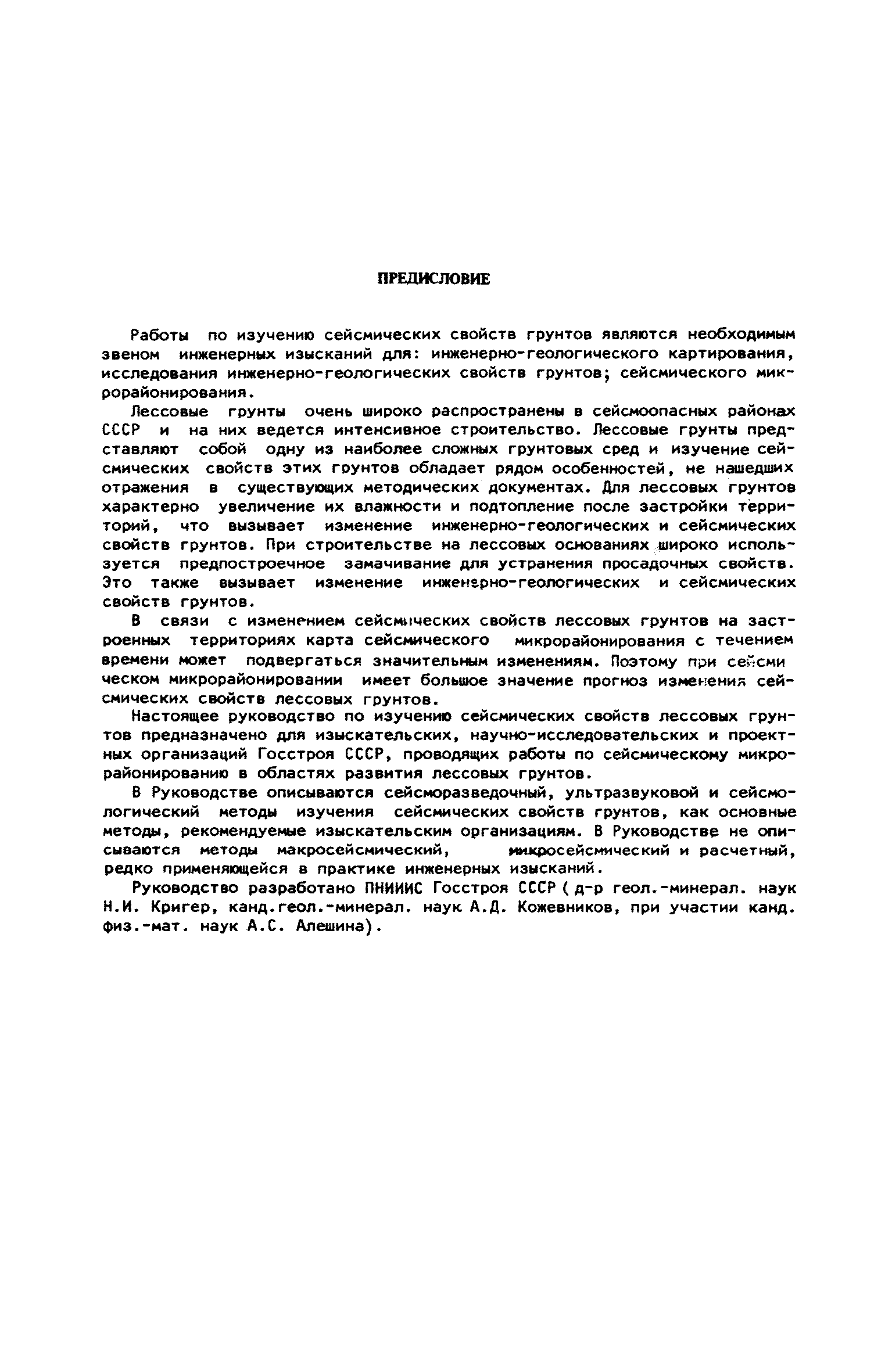 | Оглавление: | Предисловие 1. Общие положения 2. Инженерно-геологические задачи, решаемые при исследовании сейсмических свойств лессовых грунтов 3. Задачи сейсмического микрорайонирования, решаемые при исследовании сейсмических свойств лессовых грунтов 4. Методика и техника изучения сейсмических свойств лессовых грунтов Сейсморазведочные методы Ультразвуковой метод Сейсмологический метод 5. Основная отчетность по исследованию сейсмических свойств лессовых грунтов |