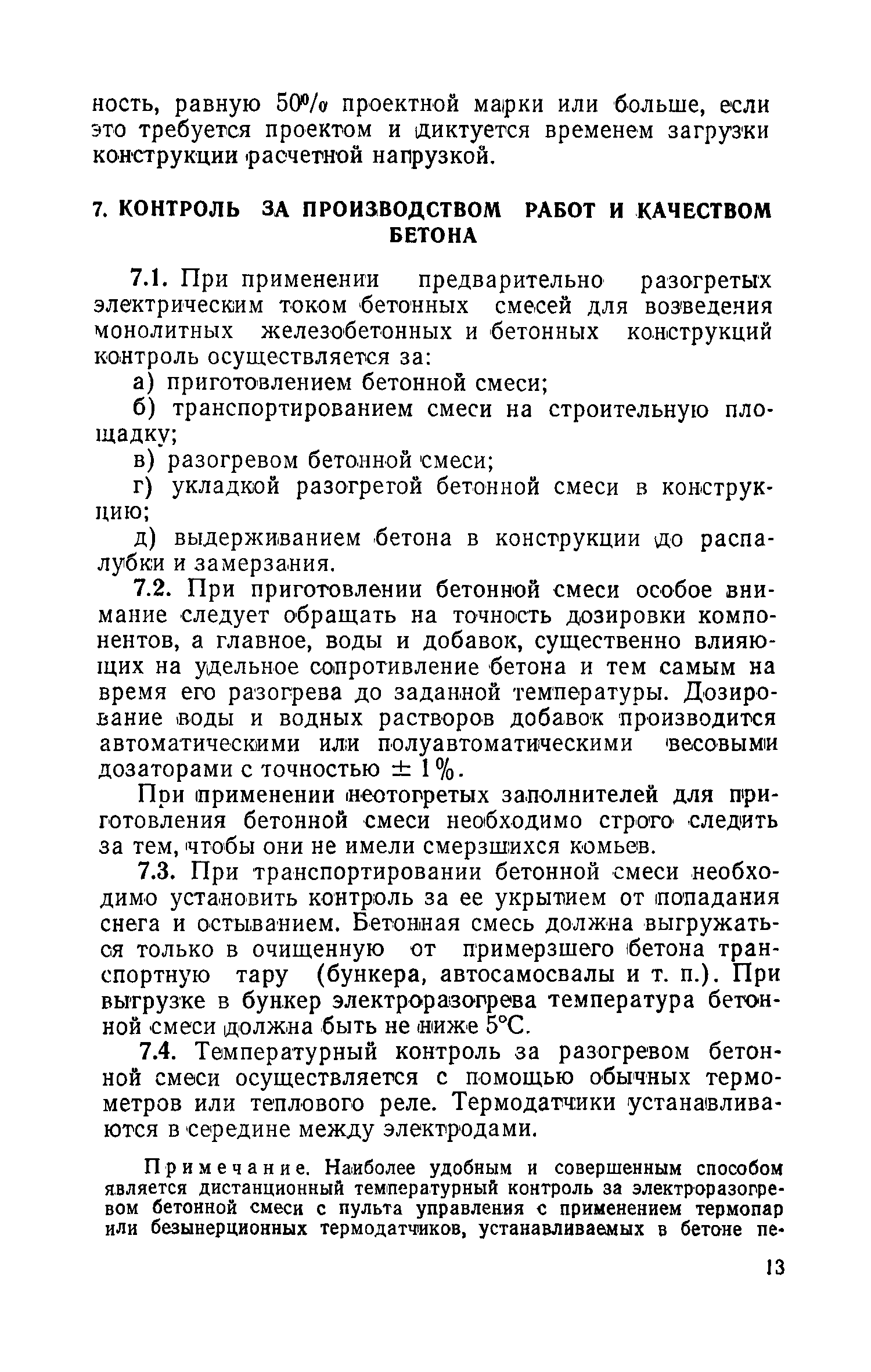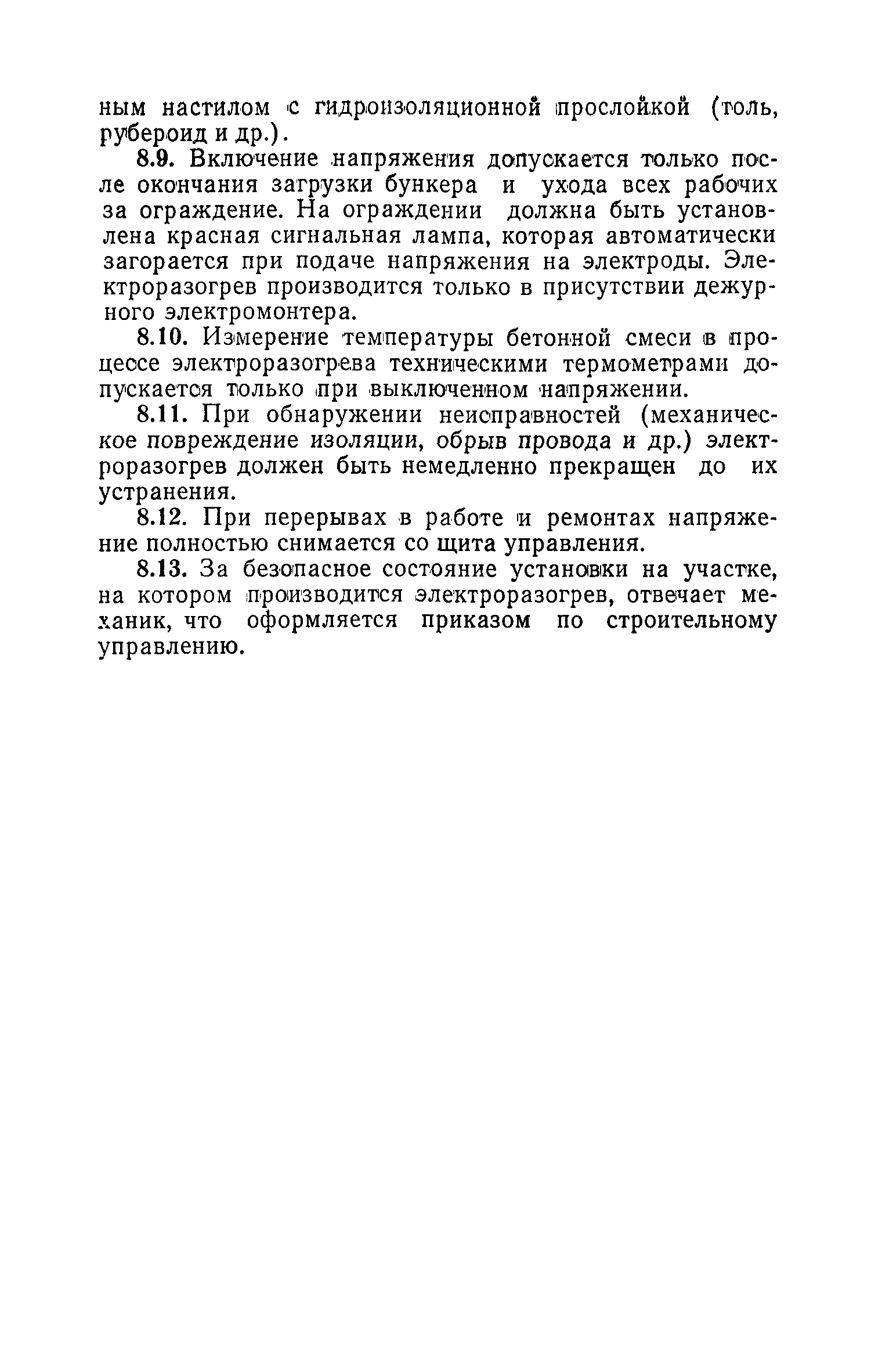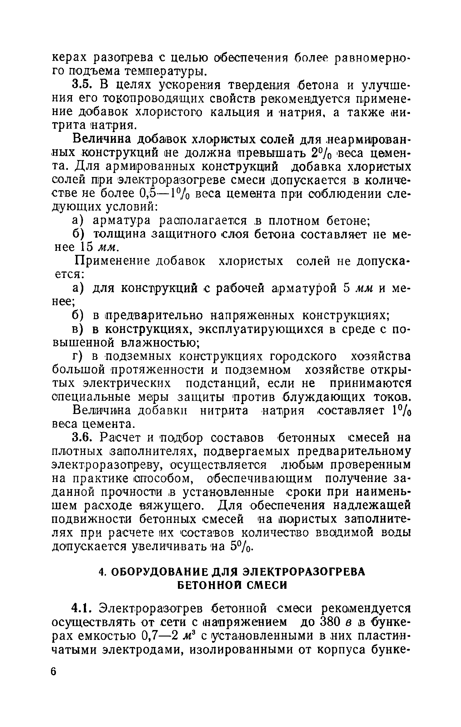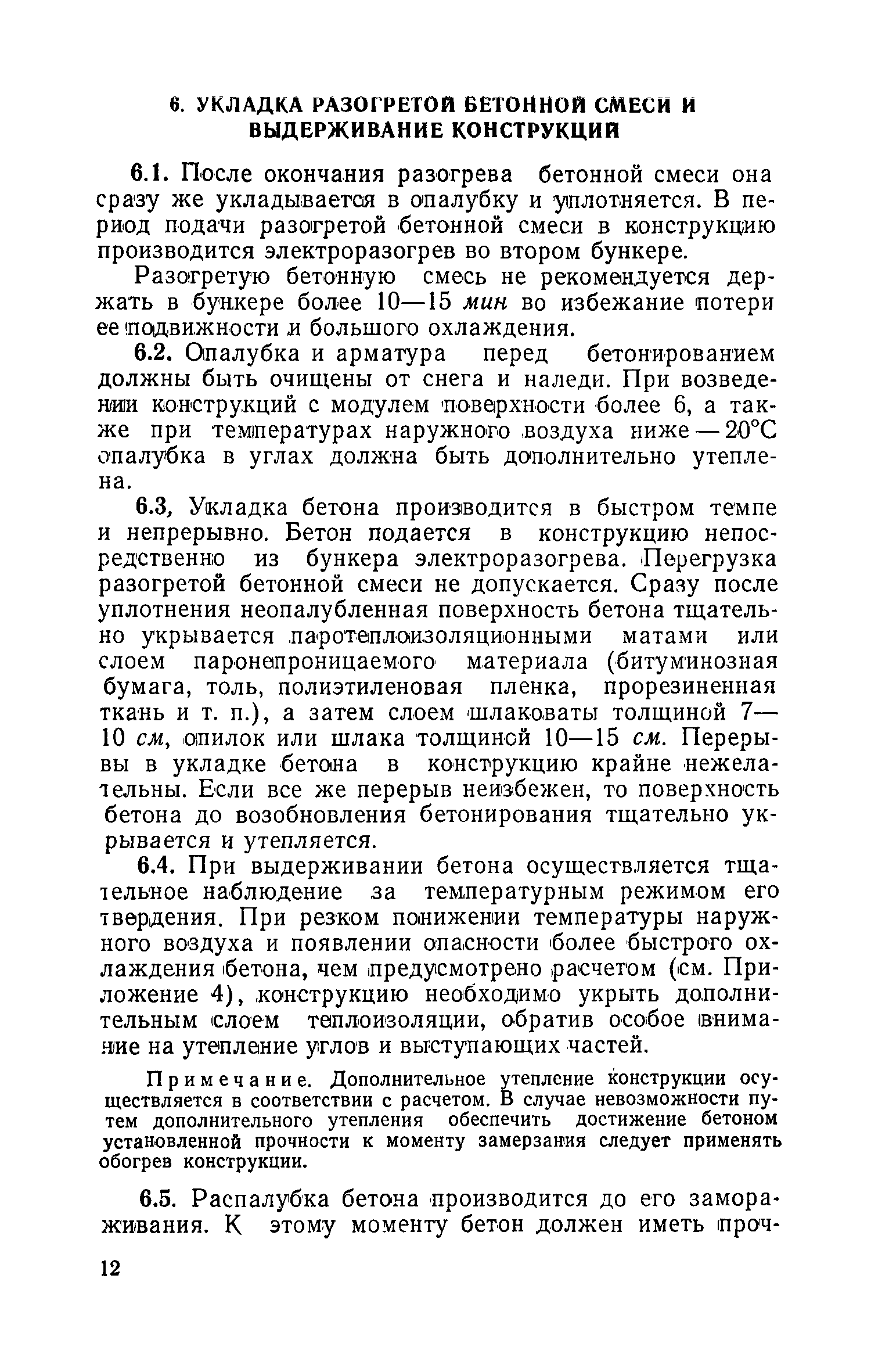 Рекомендации по применению в зимних условиях бетонных смесей, предварительно разогретых электрическим током| Статус: | справочные материалы, мп, тпр | | Название рус.: | Рекомендации по применению в зимних условиях бетонных смесей, предварительно разогретых электрическим током | | Дата добавления в базу: | 12.02.2016 | | Дата актуализации: | 01.01.2021 | | Область применения: | В Рекомендациях приведены данные по области применения предварительно разогретых смесей, требования к материалам, оборудованию для электроразогрева, приготовлению, транспорту, режимам электроразогрева и укладке бетонной смеси, а также по контролю качества и технике безопасности. | | Оглавление: | 1. Общие положения и сущность способа 2. Область применения 3. Требования к материалам 4. Оборудование для электроразогрева бетонной смеси 5. Приготовление, транспорт и разогрев бетонной смеси 6. Укладка разогретой бетонной смеси и выдерживание конструкций 7. Контроль за производством работ и качеством бетона . 8. Техника безопасности Приложение 1. Расчет оборудования Приложение 2. Основные технические данные трехфазных двухобмоточных силовых трансформаторов типа ТМ или ТС* Приложение 3. Методика определения удельного сопротивления бетона в строительной лаборатории Приложение 4. Расчет продолжительности остывания бетона в конструкции до 0 градусов Цельсия Приложение 6. Журнал контроля прочности бетона, укладываемого в разогретом состоянии Приложение 5. Журнал контроля температур бетона, укладываемого в разогретом состоянии Приложение 7. Расчет защитного заземления | | Разработан: | НИИЖБ Госстроя СССР