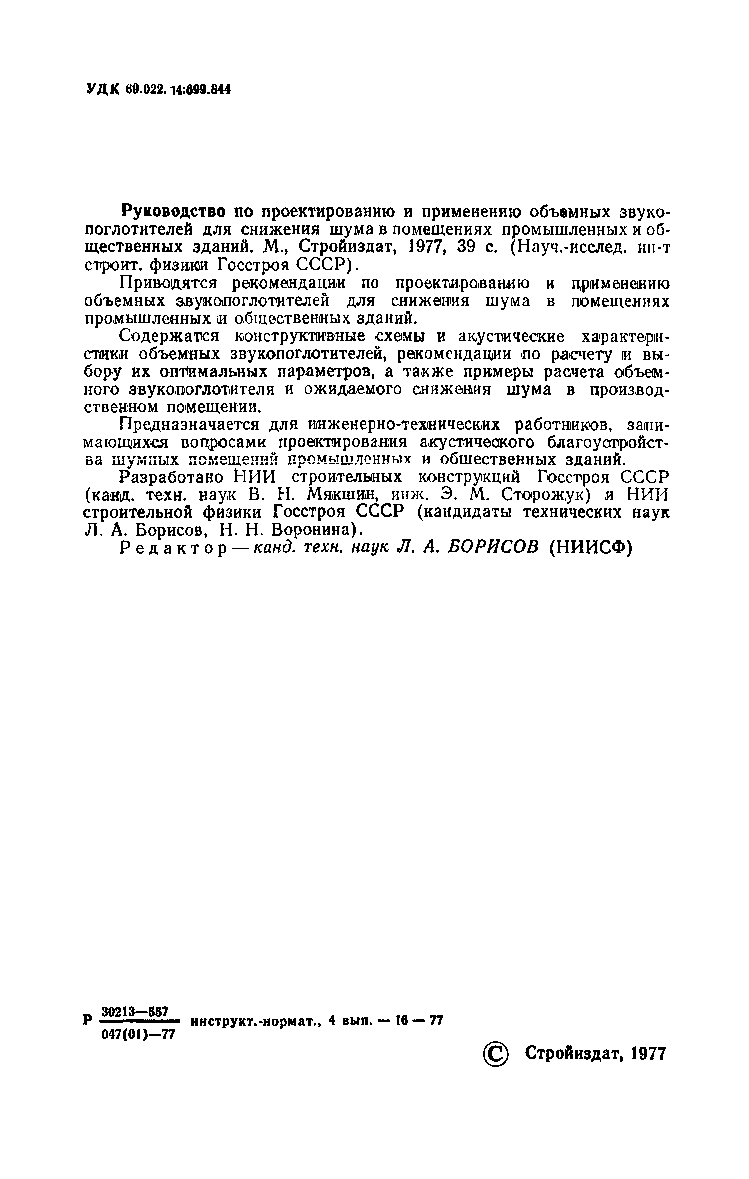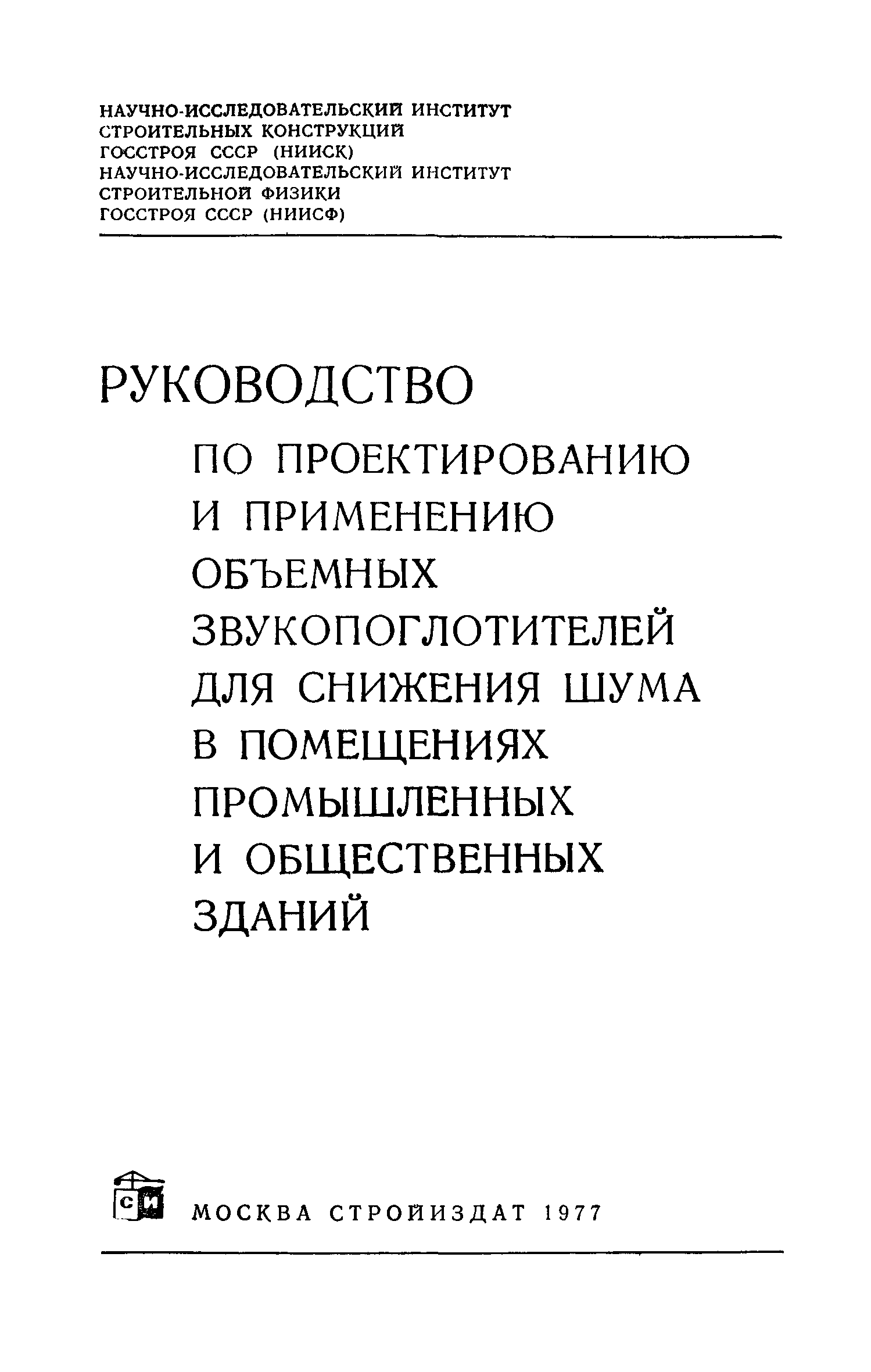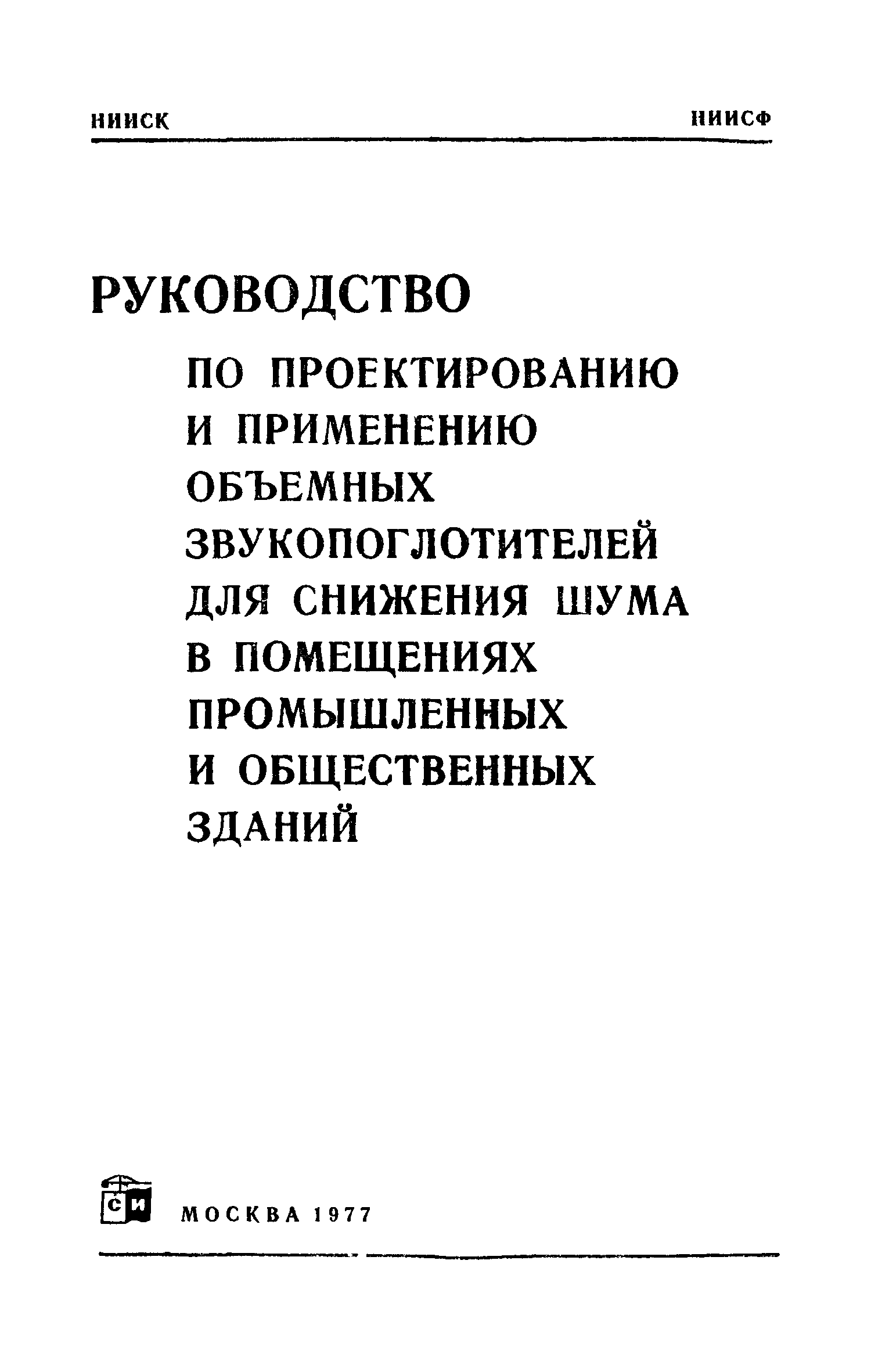 | Название рус.: | Руководство по проектированию и применению объемных звукопоглотителей для снижения шума в помещениях промышленных и общественных зданий |