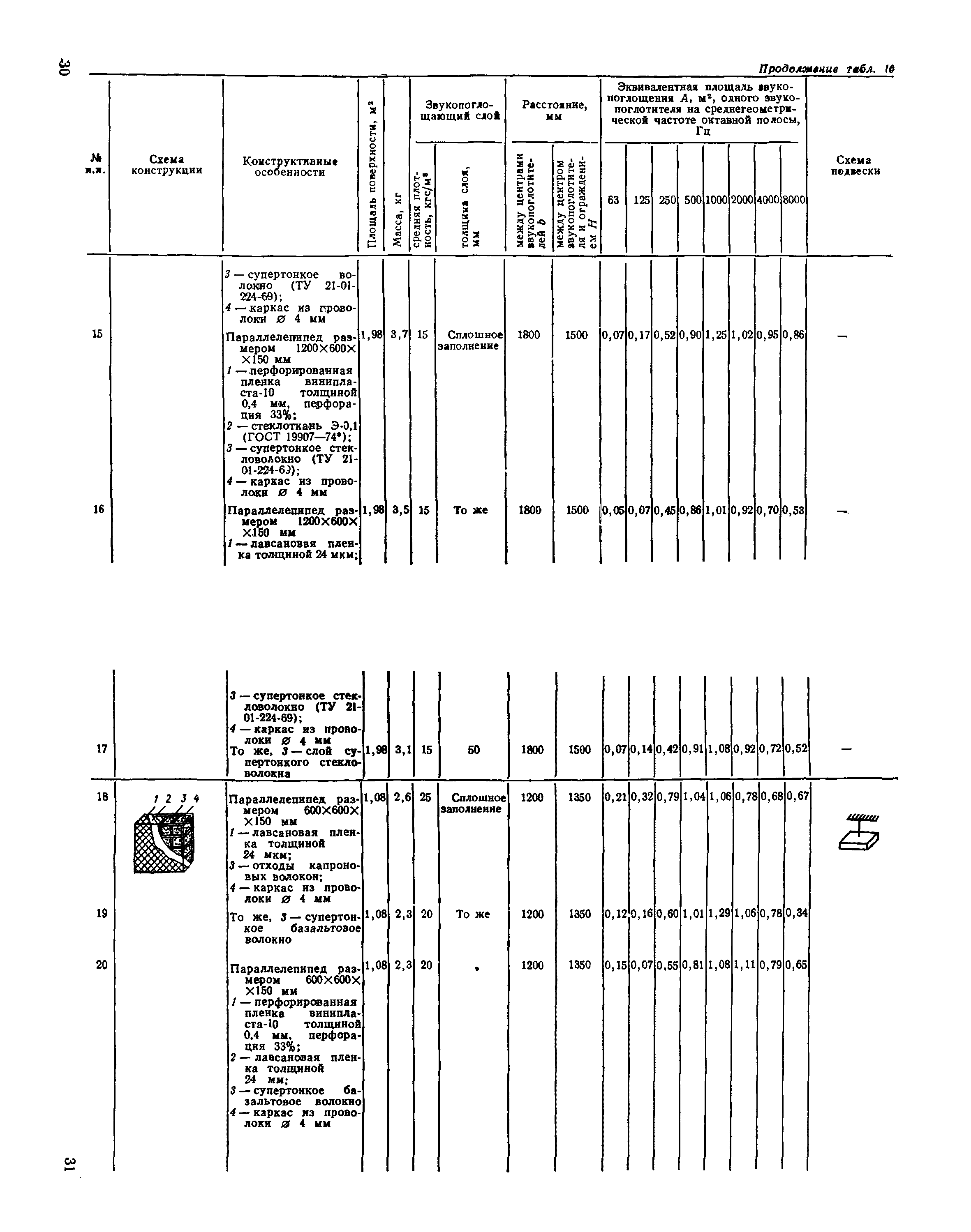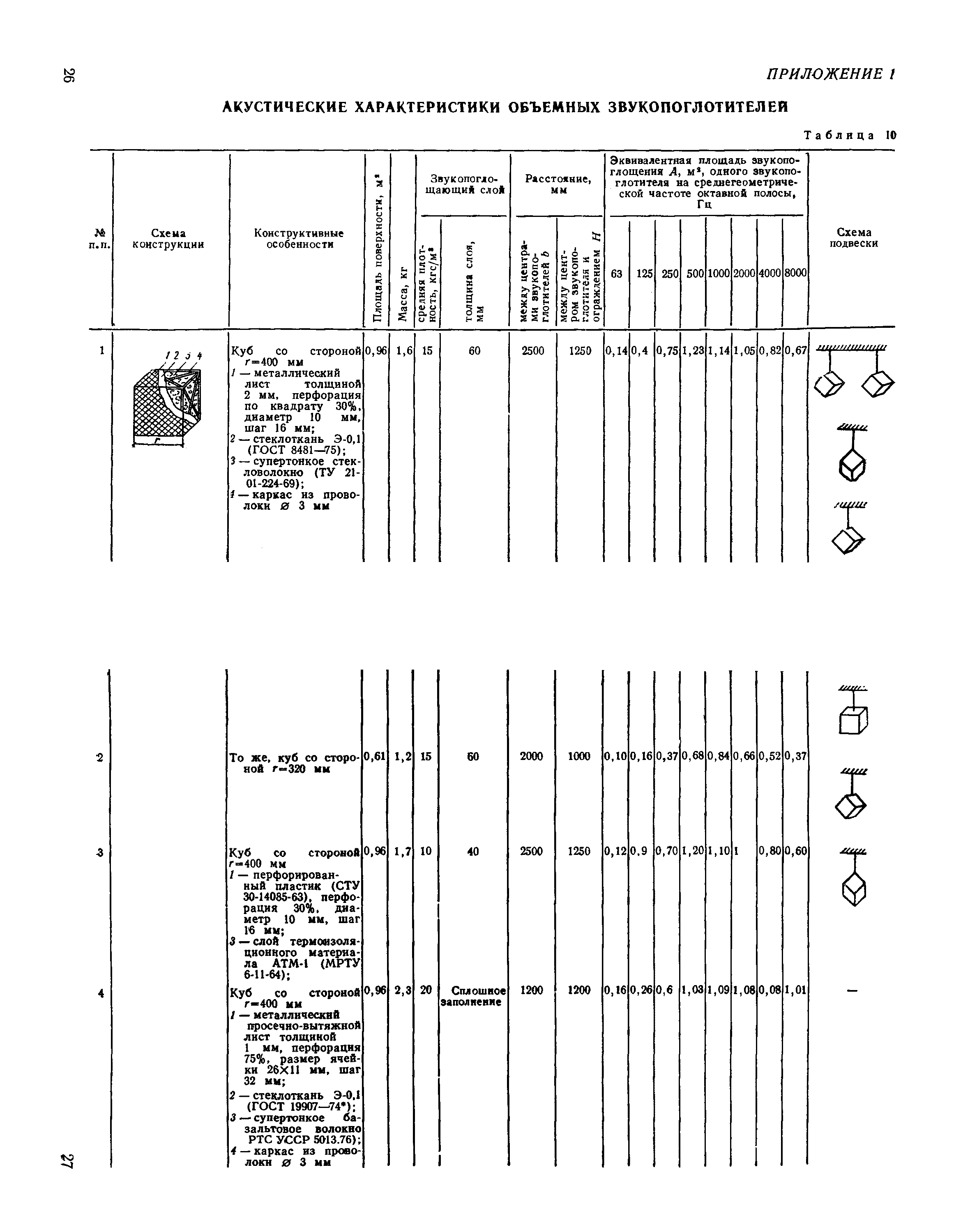 | Оглавление: | Введение 1. Назначение и область применения 2. Конструктивные решения объемных звукопоглотителей 3. Акустические параметры объемных звукопоглотителей 4. Требования к акустическим материалам Звукопоглощающие пористо-волокнистые материалы . Защитные ткани и пленки Перфорированные экраны Звукопоглощающие материалы с офактуренной поверхностью 5. Проектирование объемных звукопоглотителей Выбор параметров конструкции объемного звукопоглотителя Размещение звукопоглотителей в объеме помещения Расчет ожидаемого снижения шума 6. Примеры расчета Приложение 1. Акустические характеристики объемных звукопоглотителей Приложение 2. Физико-технические характеристики акустических материалов |