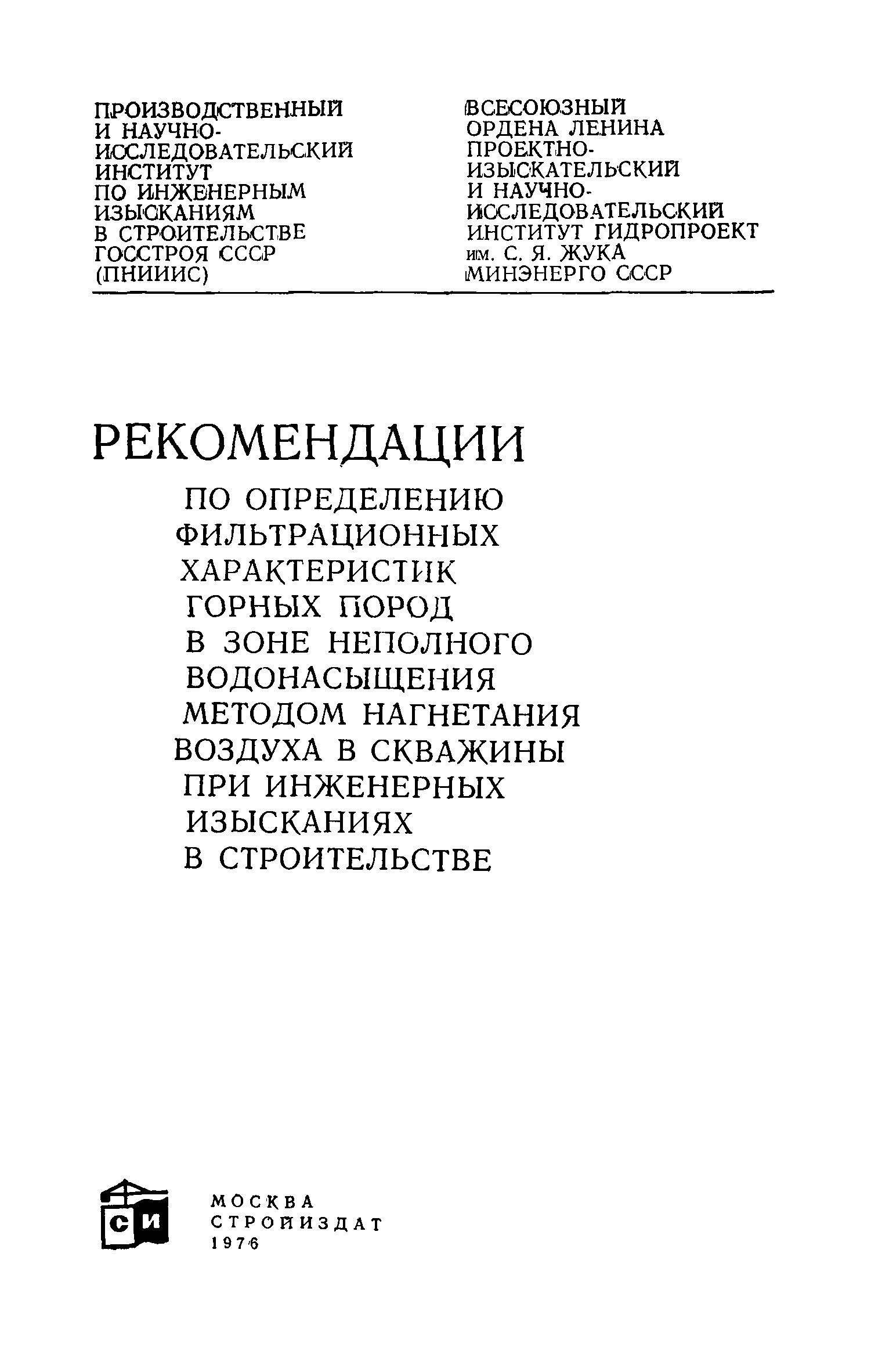 | Название рус.: | Рекомендации по определению фильтрационных характеристик горных пород в зоне неполного водонасыщения методом нагнетания воздуха в скважины при инженерных изысканиях в строительстве |
