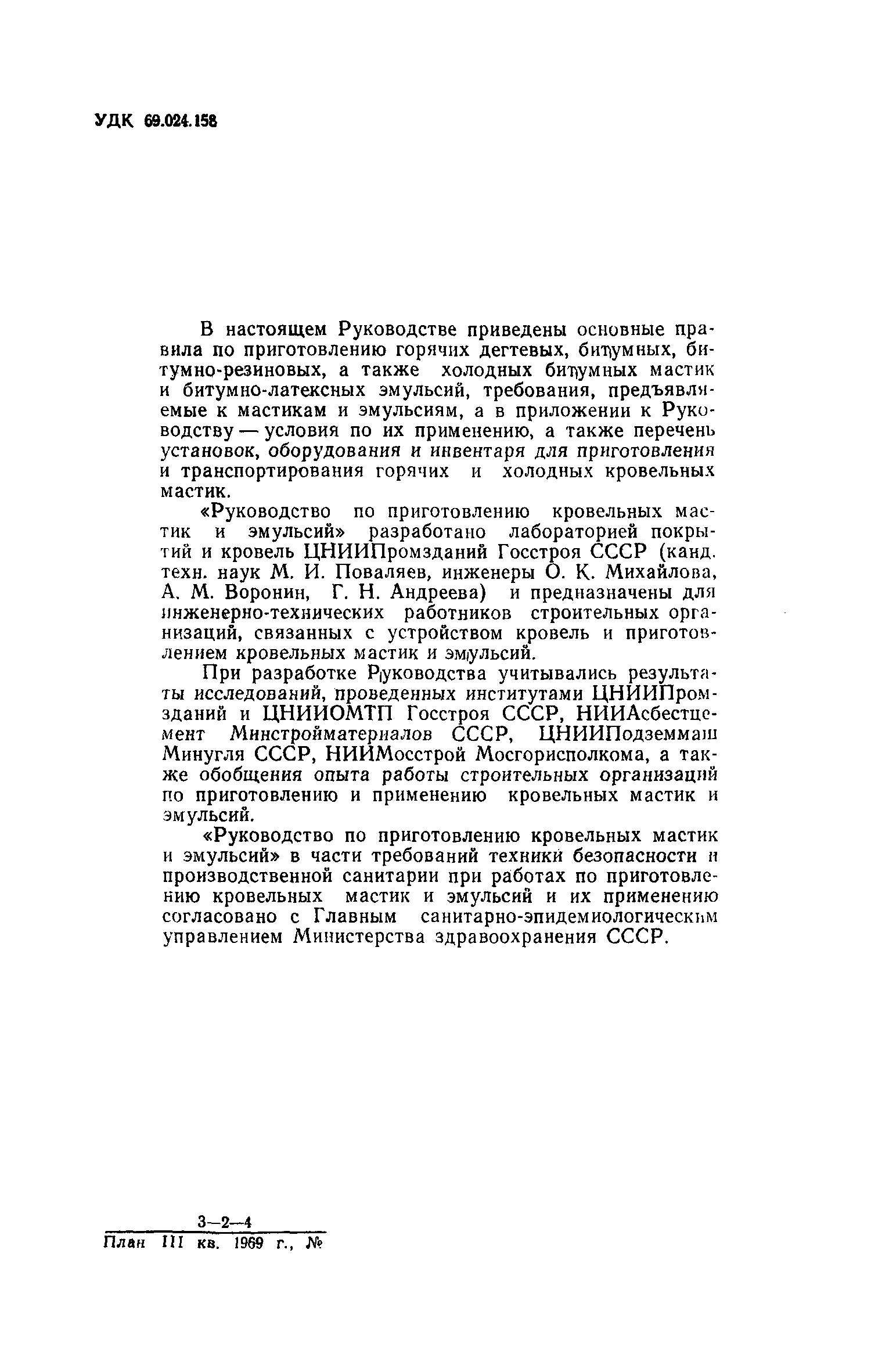 | Область применения: | В Руководстве приведены основные правила по приготовлению горячих дегтевых, битумных, битумно-резиновых, а также холодных битумных мастик и битумно-латексных эмульсий, требования, предъявляемые к мастикам и эмульсиям, а в приложении к Руководству - условия по их применению, а также перечень установок, оборудования и инвентаря для приготовления и транспортирования горячих и холодных кровельных мастик. Руководством рекомендуется пользоваться при приготовлении мастик и эмульсий, предназначенных для устройства и ремонта рулонных и мастичных кровель зданий различного назначения. |