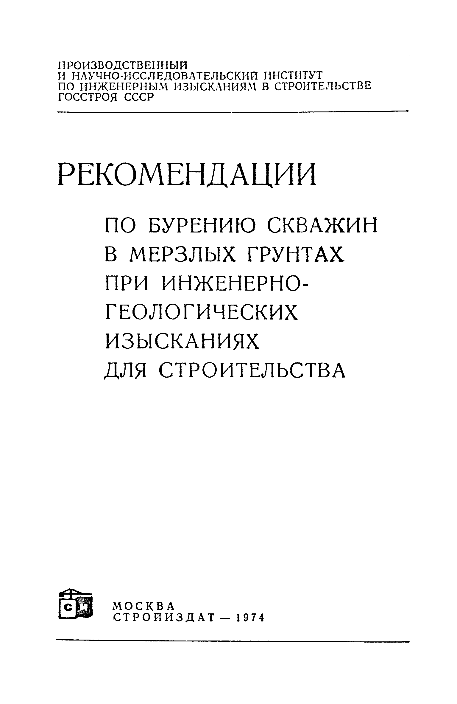 | Название рус.: | Рекомендации по бурению скважин в мерзлых грунтах при инженерно-геологических изысканиях для строительства |