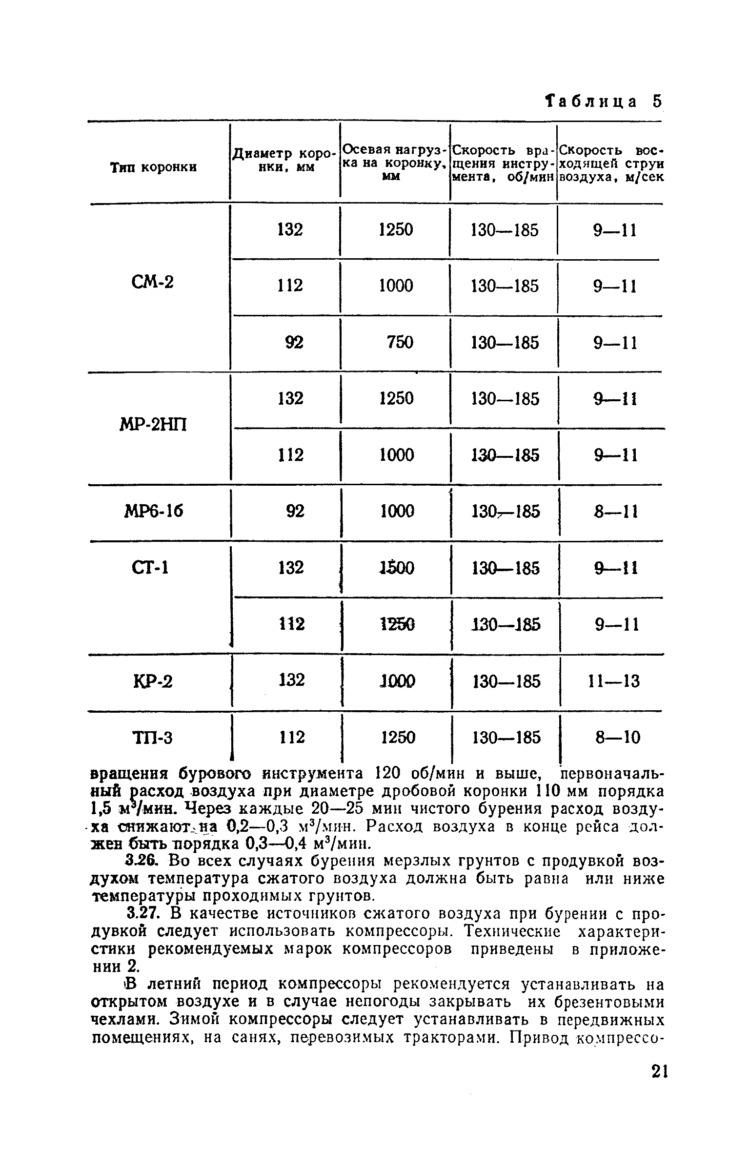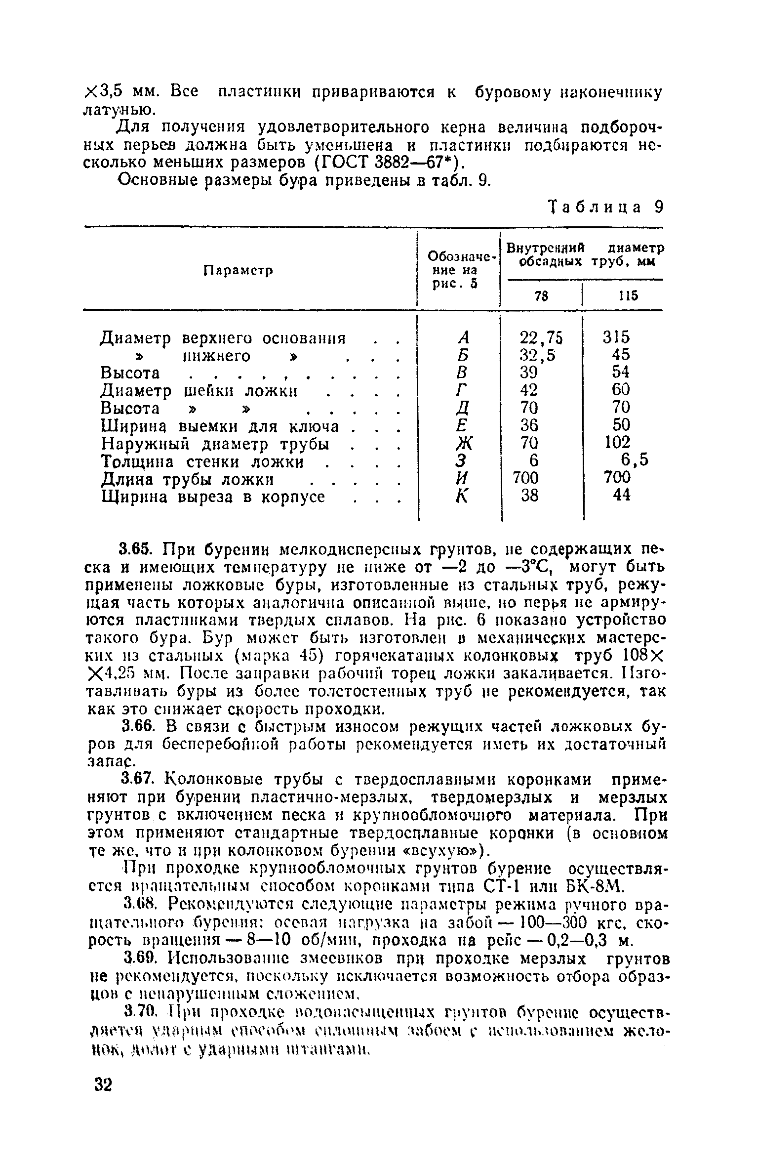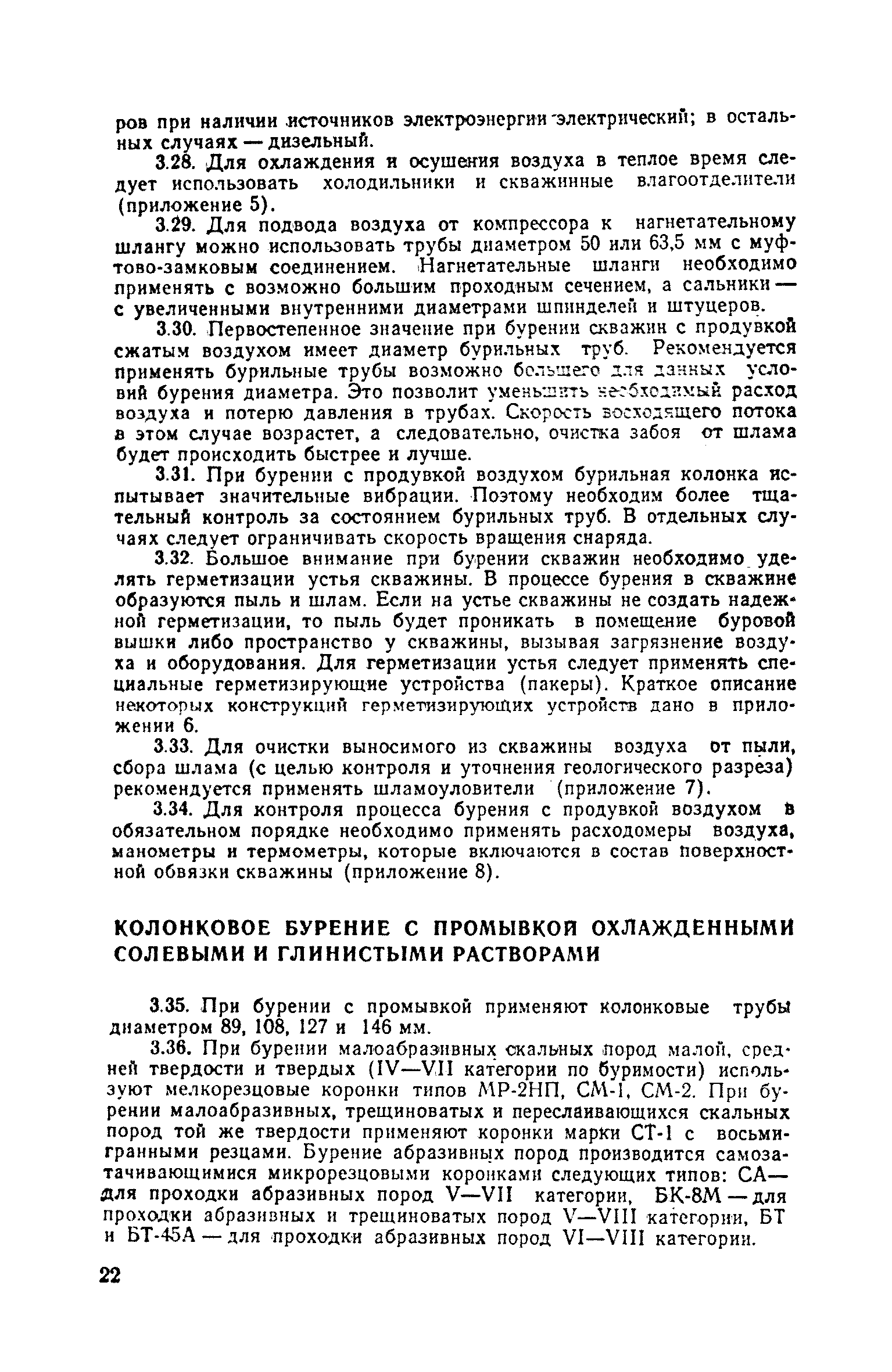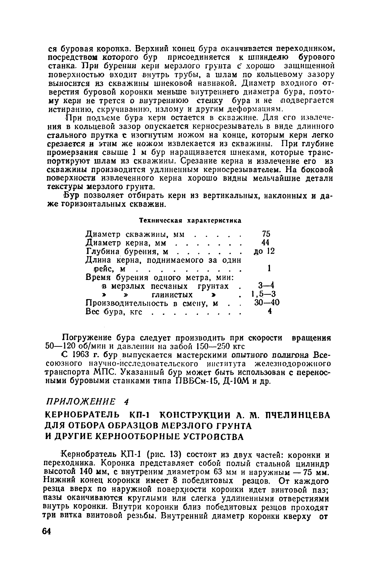 | Оглавление: | Введение 1. Назначение и особенности бурения инженерно-геологических скважин в мерзлых грунтах 2. Способы и технические средства бурения скважин Выбор способа бурения Выбор буровых установок 3. Технология бурения проходки скважин в мерзлых грунтах Колонковое бурение "всухую" Колонковое бурение с продувкой сжатым воздухом Колонковое бурение с промывкой охлажденными солевыми и глинистыми растворами Ударно-канатное бурение кольцевым забоем Вибрационное (виброударное) бурение Шнековое бурение Ручное ударно-вращательное бурение 4. Отбор и сохранение образцов мерзлого грунта 5. Обсадка трубами при бурения скважин в мерзлых грунтах 6. Организация буровых работ и оборудование рабочей площадки 7. Правила безопасного ведения буровых работ Приложение 1. Краткое описание и технические характеристики буровых станков и установок для проходки инженерно-геологических скважин в мерзлых грунтах Приложение 2. Технические характеристики передвижных компрессоров, рекомендуемых для бурения с продувкой воздухом Приложение 3. Бур для отбора керна мерзлого грунта Приложение 4. Кернобратель КП-1 конструкции А.М. Пчелинцева для отбора образцов мерзлого грунта и другие керноотборные устройства Приложение 5. Приспособления и устройства для осушения и охлаждения сжатого воздуха при бурении скважин в мерзлых грунтах Приложение 6. Герметизирующие устройства при бурении скважин с продувкой сжатым воздухом Приложение 7. Шламоуловители Приложение 8. Обвязка скважины и контрольно-измерительная аппаратура при бурении скважин с продувкой воздухом Приложение 9. Пример расчета допустимой скорости вращения бурового инструмента при отборе керна мерзлого грунта колонковым способом "всухую" |