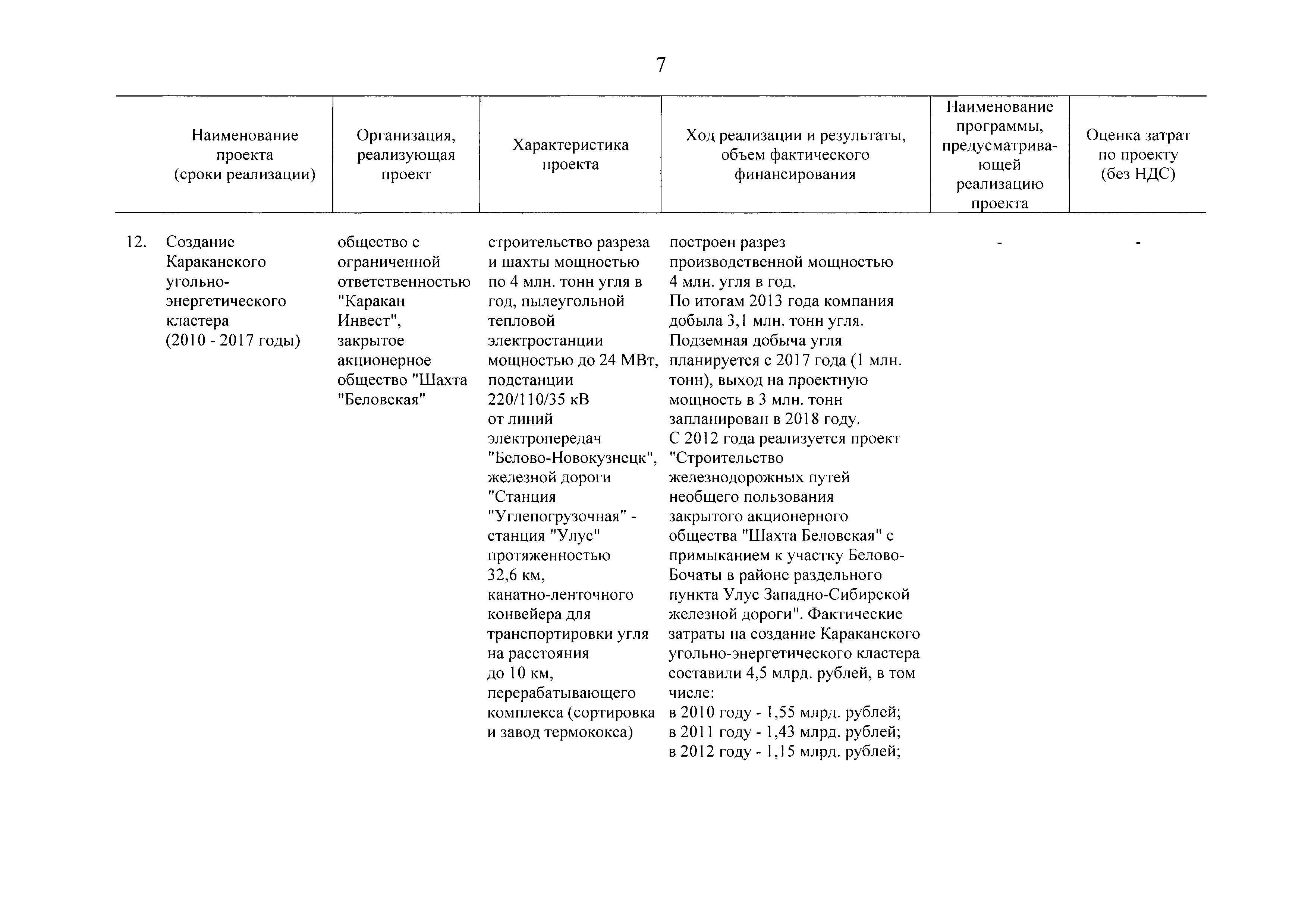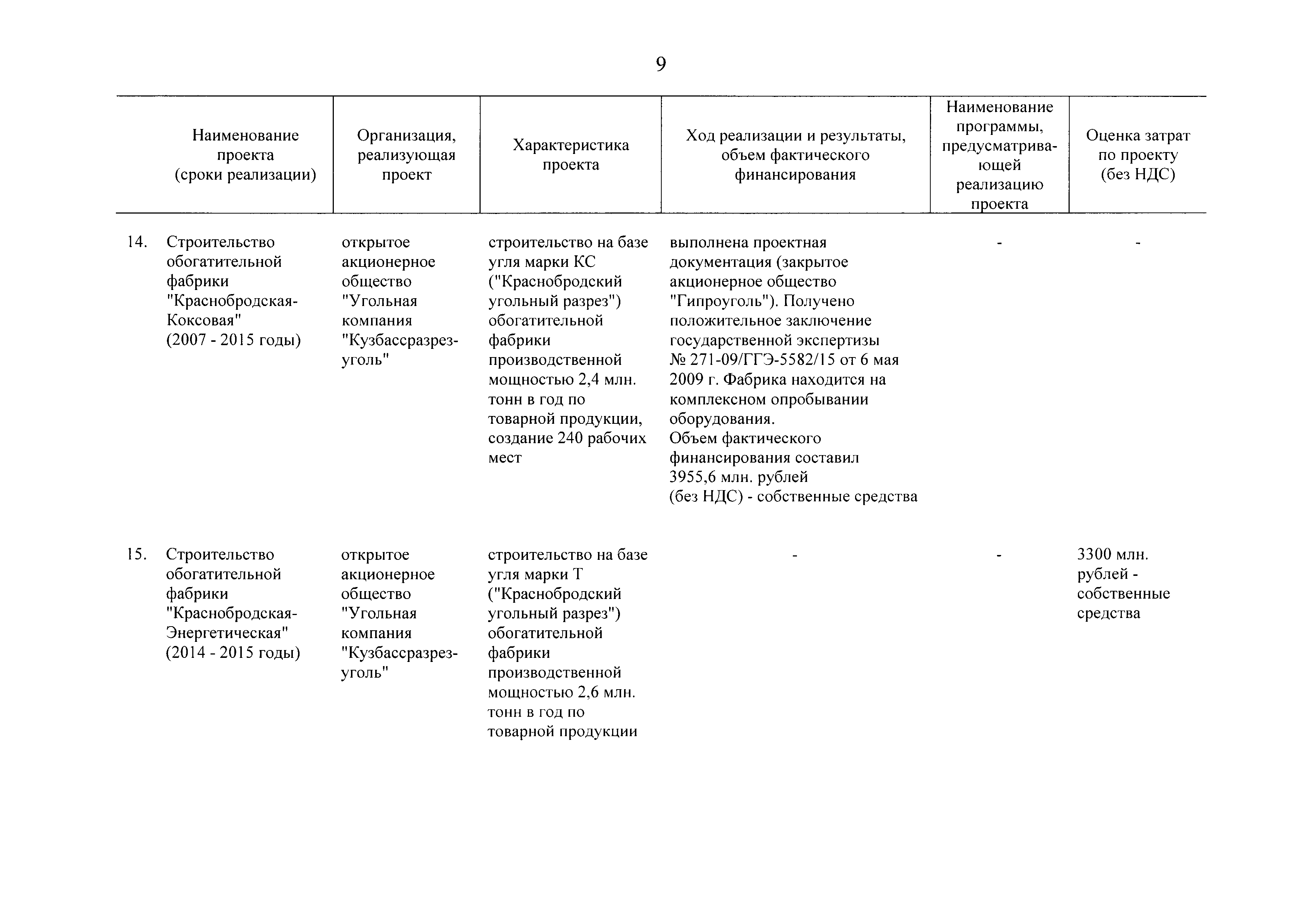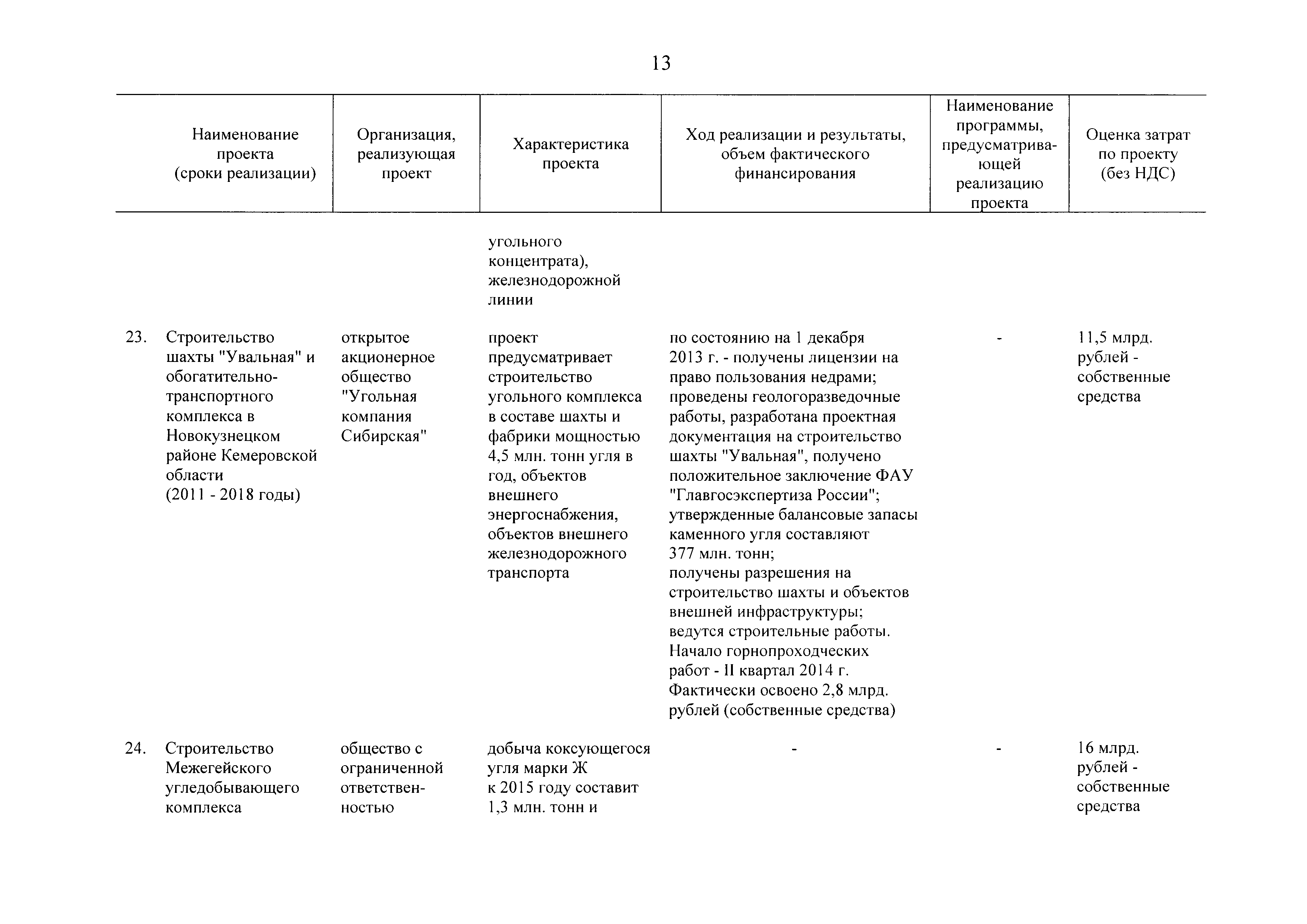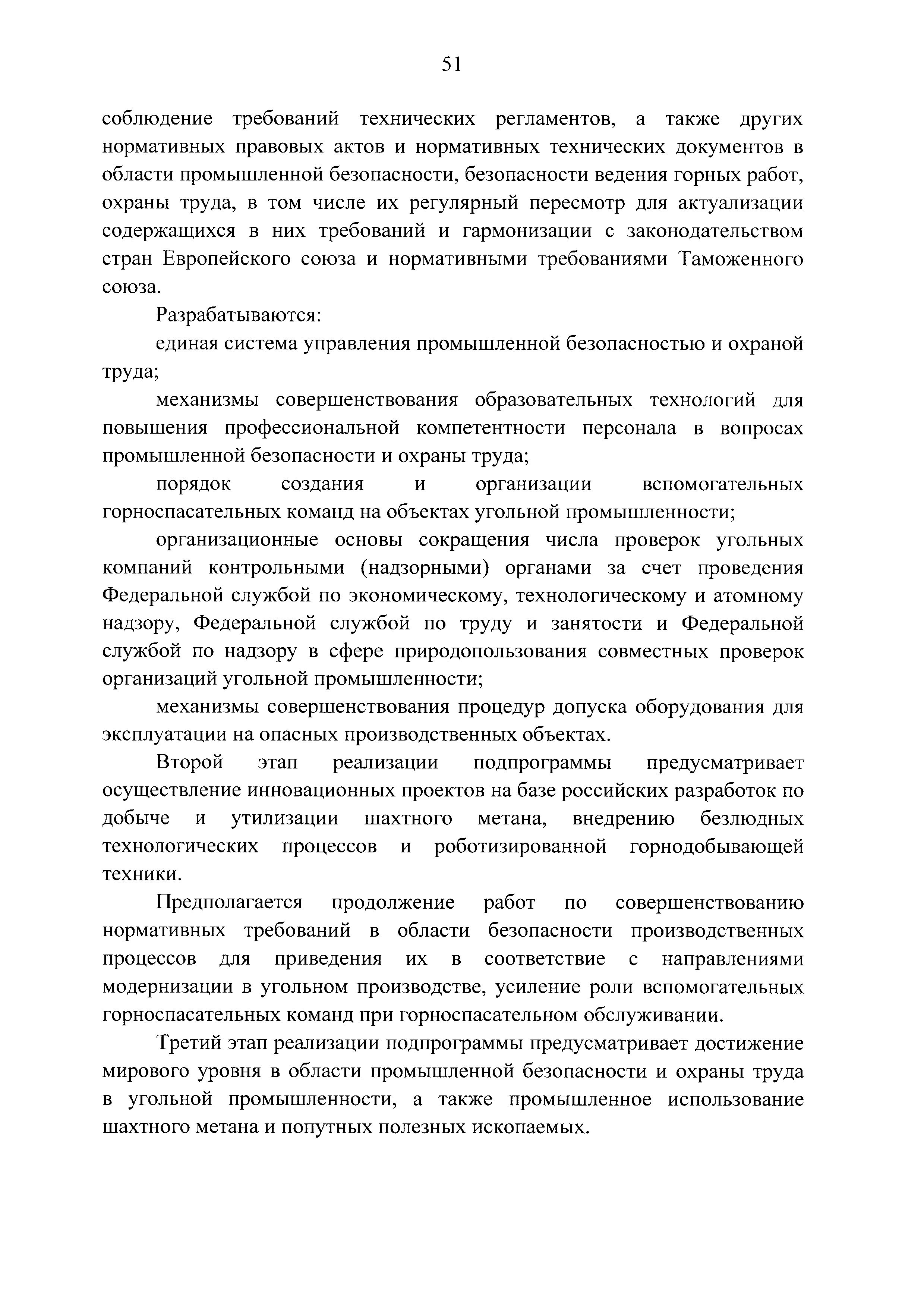 | Оглавление: | Паспорт Программы развития угольной промышленности России на период до 2030 года I. Развитие угольной промышленности России 1. Современное состояние российской угольной промышленности 2. Основные системные проблемы развития угольной промышленности России 3. Современные вызовы развитию угольной промышленности 4. Целевое видение развития угольной промышленности России II. Цель и задачи, структура и этапы реализации Программы 1. Цель и задачи Программы 2. Структура и этапы реализации Программы III. Система мероприятий Программы 1. Подпрограмма "Развитие сырьевой базы угольной промышленности и рациональное недропользование" 2. Подпрограмма "Развитие производственного потенциала угольной промышленности на основе ее модернизации, завершение реструктуризации и создание новых центров угледобычи" 3. Подпрограмма "Развитие внутреннего рынка угольной продукции и укрепление позиций России на мировом рынке угля" 4. Подпрограмма "Обеспечение технологического развития отрасли и укрепление научно-технической базы компаний и научных центров" 5. Подпрограмма "Безопасность и охрана труда в угольной промышленности" 6. Подпрограмма "Обеспечение экологической безопасности" 7. Подпрограмма "Развитие трудовых отношений, корпоративной социальной ответственности угольных компаний и совершенствование системы подготовки кадров для угольной промышленности" IV. Механизмы реализации Программы 1. Совершенствование методов государственного регулирования развития угольной промышленности и законодательной и нормативной базы, обеспечивающих достижение целей и целевых индикаторов развития угольной промышленности 2. Состав и структура государственных программ Российской Федерации, обеспечивающих реализацию мероприятий Программы V. Создание эффективной системы управления и реализации Программы VI. Возможные риски и ожидаемые результаты реализации Программы 1. Риски реализации Программы 2. Ожидаемые результаты реализации Программы Приложение № 1. Перечень мероприятий Программы развития угольной промышленности России на период до 2030 года Приложение № 2. Объем кондиционных ресурсов угля, учтенных при разработке Программы развития угольной промышленности России на период до 2030 года Приложение № 3. Оценка спроса на российский уголь Приложение № 4. Оценка баланса производства и потребления коксующихся углей Приложение № 5. Объем финансирования мероприятий Программы развития угольной промышленности России на период до 2030 года по подпрограммам Приложение № 6. Перечень показателей эффективности реализации Программы развития угольной промышленности России на период до 2030 года Приложение № 7. Показатели развития добычи угля по регионам Приложение № 8. Перечень инвестиционных проектов, направленных на реализацию Программы развития угольной промышленности России на период до 2030 года Приложение № 9. Целевые индикаторы Программы развития угольной промышленности России на период до 2030 года |