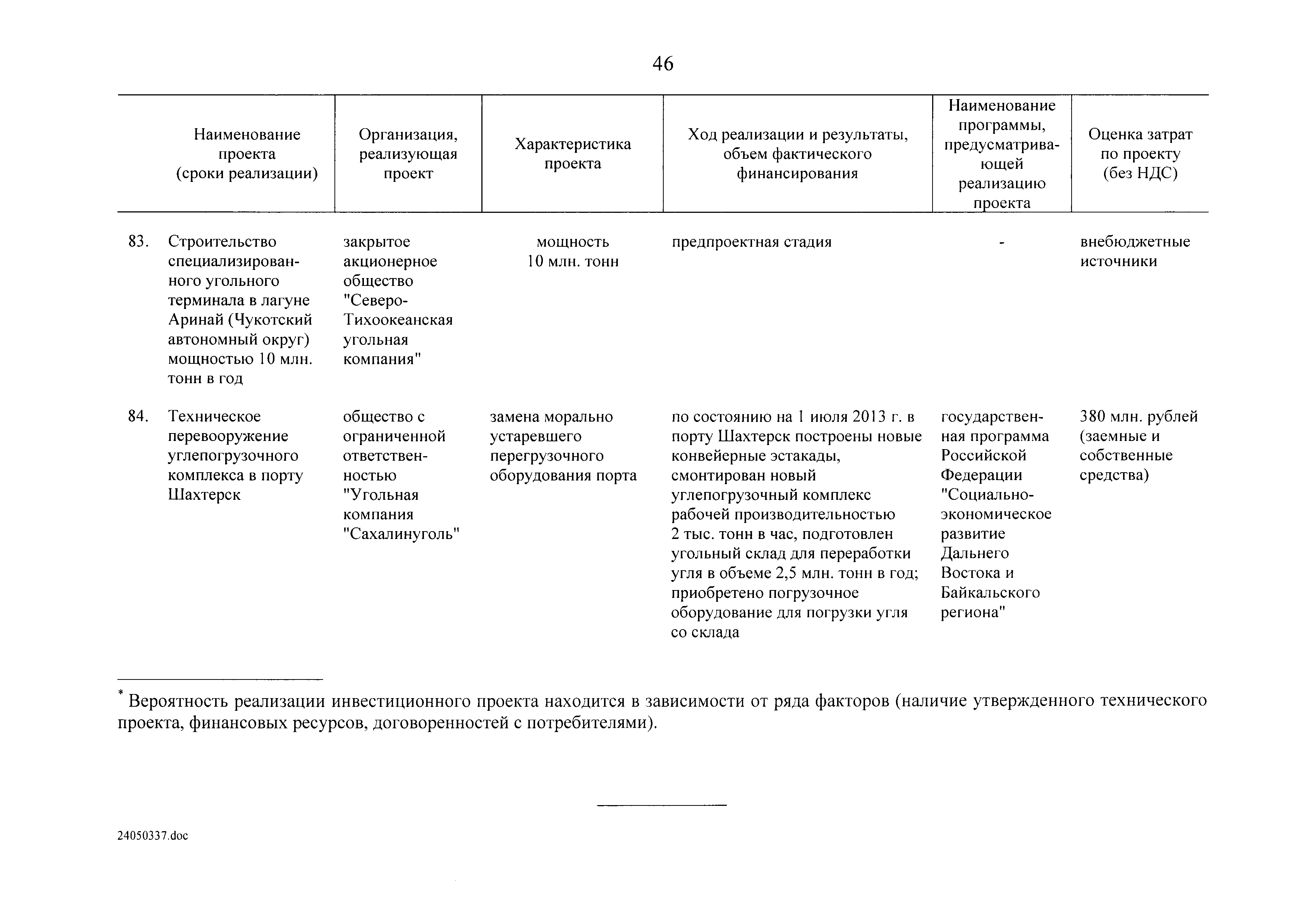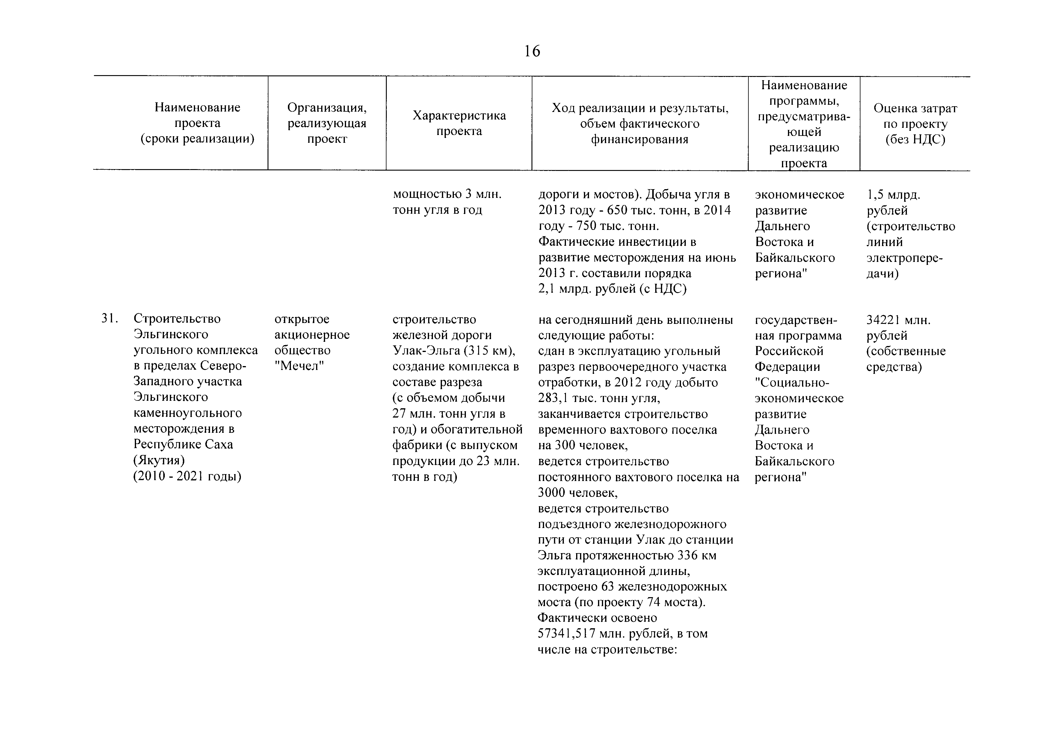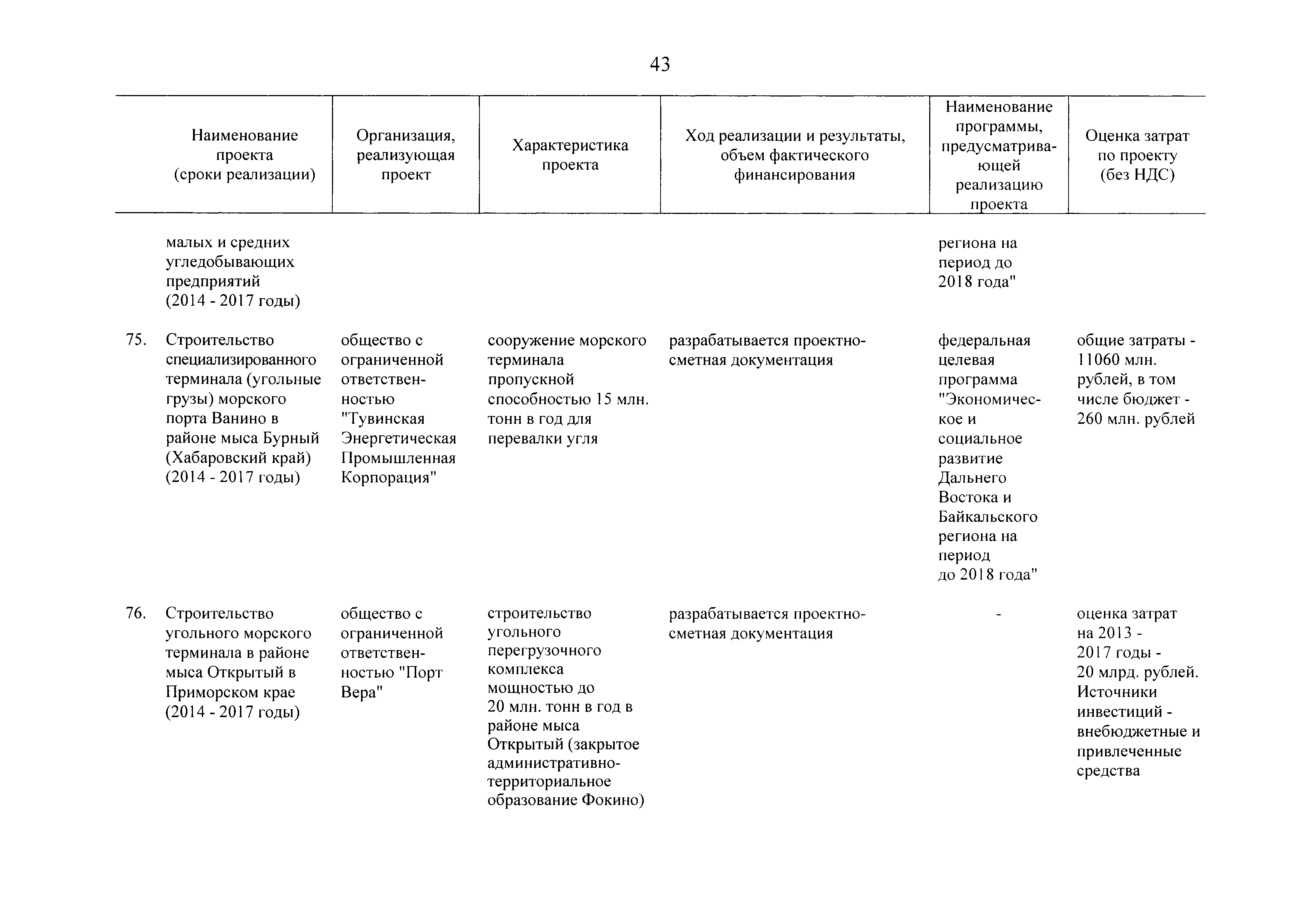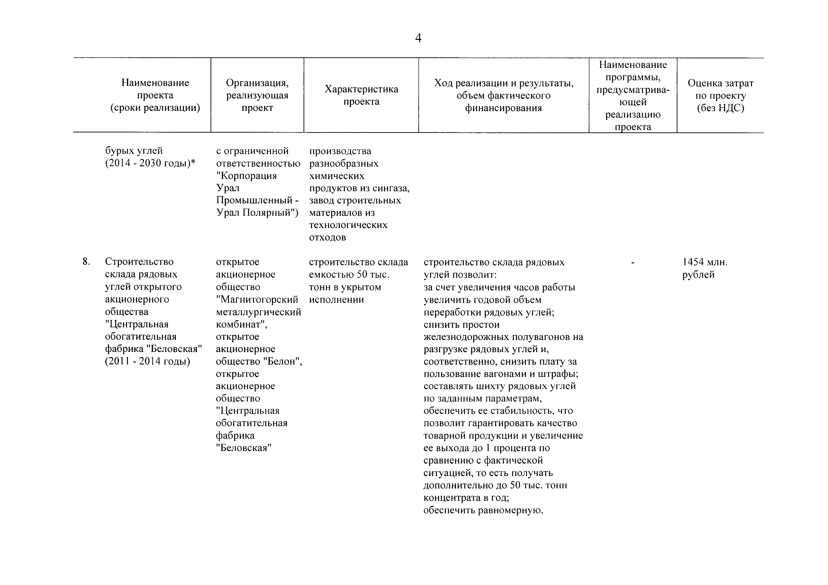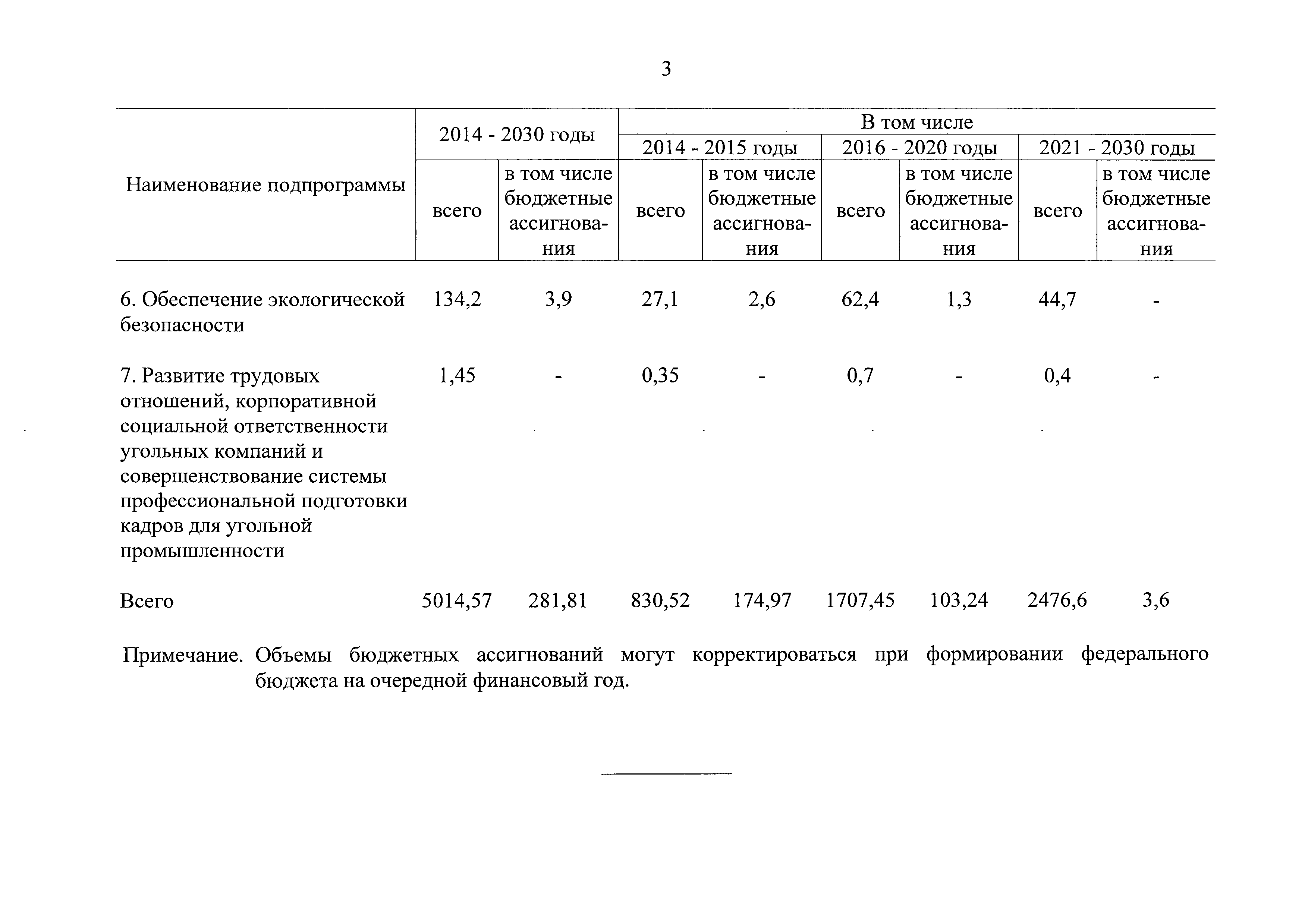 | Оглавление: | Паспорт Программы развития угольной промышленности России на период до 2030 года I. Развитие угольной промышленности России 1. Современное состояние российской угольной промышленности 2. Основные системные проблемы развития угольной промышленности России 3. Современные вызовы развитию угольной промышленности 4. Целевое видение развития угольной промышленности России II. Цель и задачи, структура и этапы реализации Программы 1. Цель и задачи Программы 2. Структура и этапы реализации Программы III. Система мероприятий Программы 1. Подпрограмма "Развитие сырьевой базы угольной промышленности и рациональное недропользование" 2. Подпрограмма "Развитие производственного потенциала угольной промышленности на основе ее модернизации, завершение реструктуризации и создание новых центров угледобычи" 3. Подпрограмма "Развитие внутреннего рынка угольной продукции и укрепление позиций России на мировом рынке угля" 4. Подпрограмма "Обеспечение технологического развития отрасли и укрепление научно-технической базы компаний и научных центров" 5. Подпрограмма "Безопасность и охрана труда в угольной промышленности" 6. Подпрограмма "Обеспечение экологической безопасности" 7. Подпрограмма "Развитие трудовых отношений, корпоративной социальной ответственности угольных компаний и совершенствование системы подготовки кадров для угольной промышленности" IV. Механизмы реализации Программы 1. Совершенствование методов государственного регулирования развития угольной промышленности и законодательной и нормативной базы, обеспечивающих достижение целей и целевых индикаторов развития угольной промышленности 2. Состав и структура государственных программ Российской Федерации, обеспечивающих реализацию мероприятий Программы V. Создание эффективной системы управления и реализации Программы VI. Возможные риски и ожидаемые результаты реализации Программы 1. Риски реализации Программы 2. Ожидаемые результаты реализации Программы Приложение № 1. Перечень мероприятий Программы развития угольной промышленности России на период до 2030 года Приложение № 2. Объем кондиционных ресурсов угля, учтенных при разработке Программы развития угольной промышленности России на период до 2030 года Приложение № 3. Оценка спроса на российский уголь Приложение № 4. Оценка баланса производства и потребления коксующихся углей Приложение № 5. Объем финансирования мероприятий Программы развития угольной промышленности России на период до 2030 года по подпрограммам Приложение № 6. Перечень показателей эффективности реализации Программы развития угольной промышленности России на период до 2030 года Приложение № 7. Показатели развития добычи угля по регионам Приложение № 8. Перечень инвестиционных проектов, направленных на реализацию Программы развития угольной промышленности России на период до 2030 года Приложение № 9. Целевые индикаторы Программы развития угольной промышленности России на период до 2030 года |
