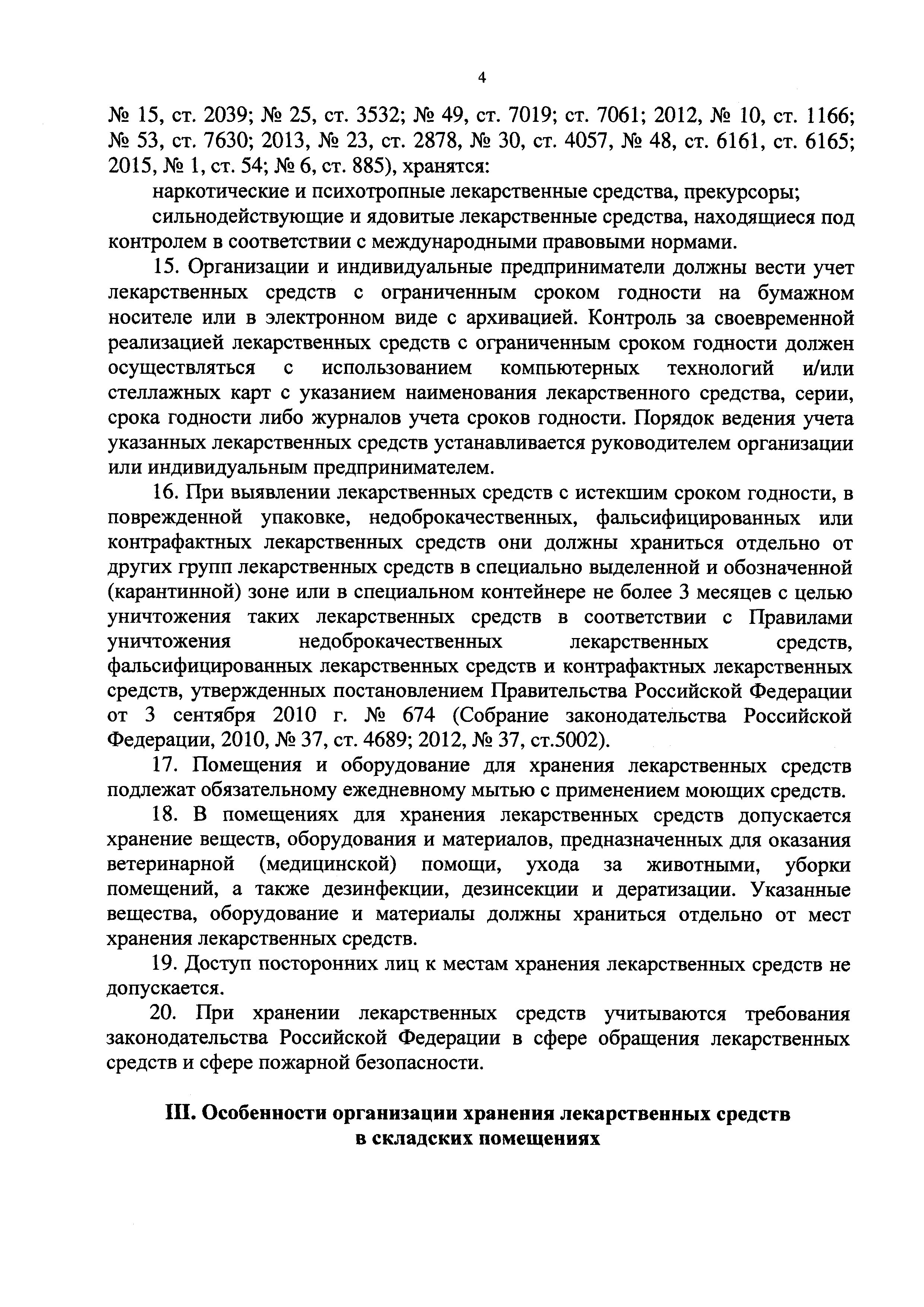 | Оглавление: | I. Общие положения II. Общие требования к помещениям для хранения лекарственных средств и организации хранения лекарственных средств III. Особенности организации хранения лекарственных средств в складских помещениях IV. Требования к помещениям для хранения пожаровзрывоопасных и пожароопасных лекарственных средств и организации их хранения V. Особенности хранения отдельных групп лекарственных средств в зависимости от физических и физико-химических свойств, воздействия на них различных факторов внешней среды |