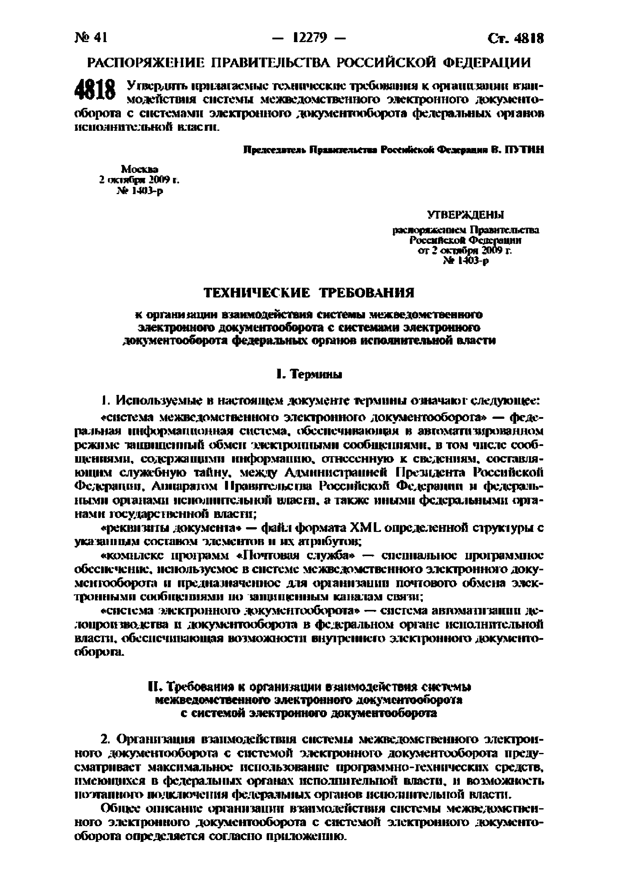 | Утверждён: | 02.10.2009 Правительство Российской Федерации (1403-р)
