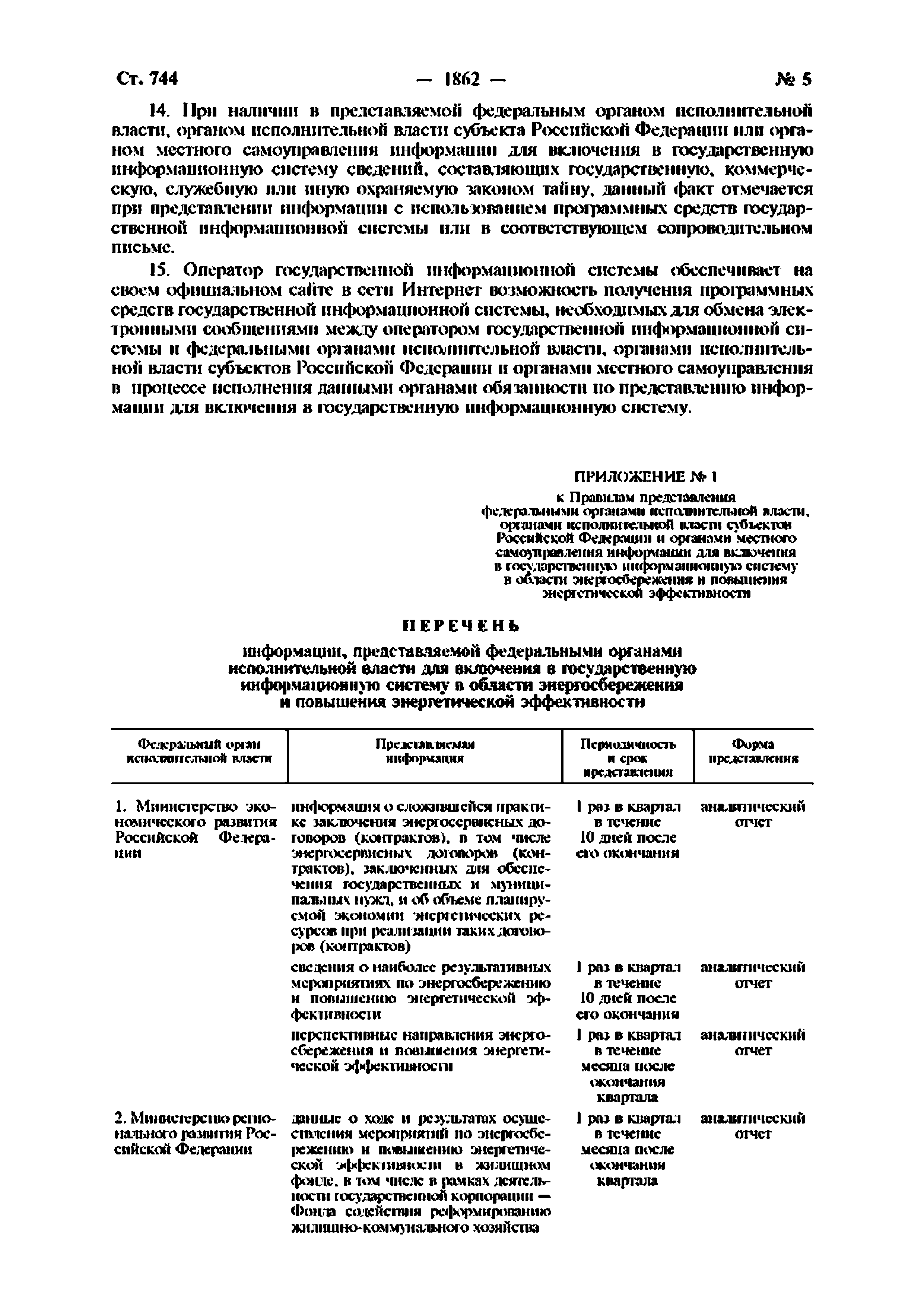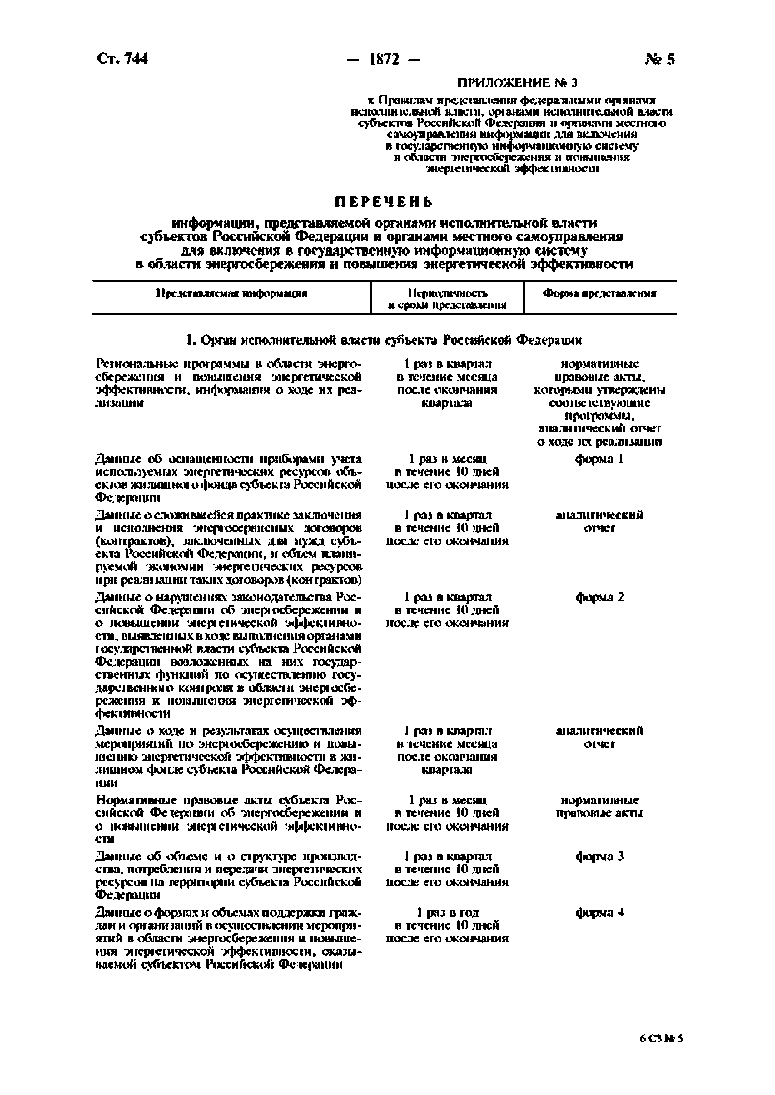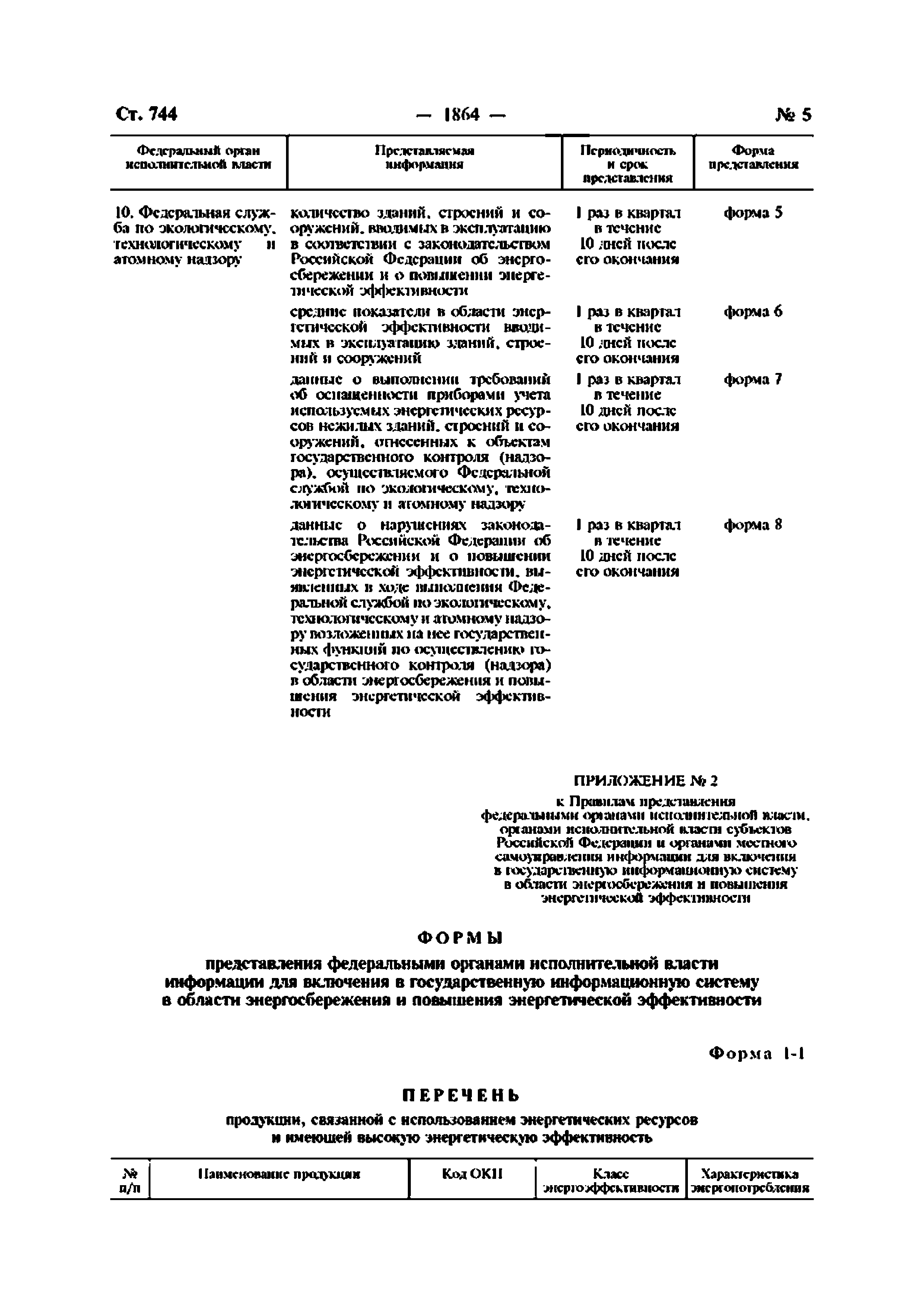 | Оглавление: | Приложение № 1. Перечень информации, представляемой федеральными органами исполнительной власти для включения в государственную информационную систему в области энергосбережения и повышения энергетической эффективности Приложение № 2. Формы представления федеральными органами исполнительной власти информации для включения в государственную информационную систему в области энергосбережения и повышения энергетической эффективности Приложение № 3. Перечень информации, представляемой органами исполнительной власти субъектов Российской Федерации и органами местного самоуправления для включения в государственную информационную систему в области энергосбережения и повышения энергетической эффективности Приложение № 4. Формы представления органами исполнительной власти субъектов Российской Федерации и органами местного самоуправления информации для включения в государственную информационную систему в области энергосбережения и повышения энергетической эффективности |