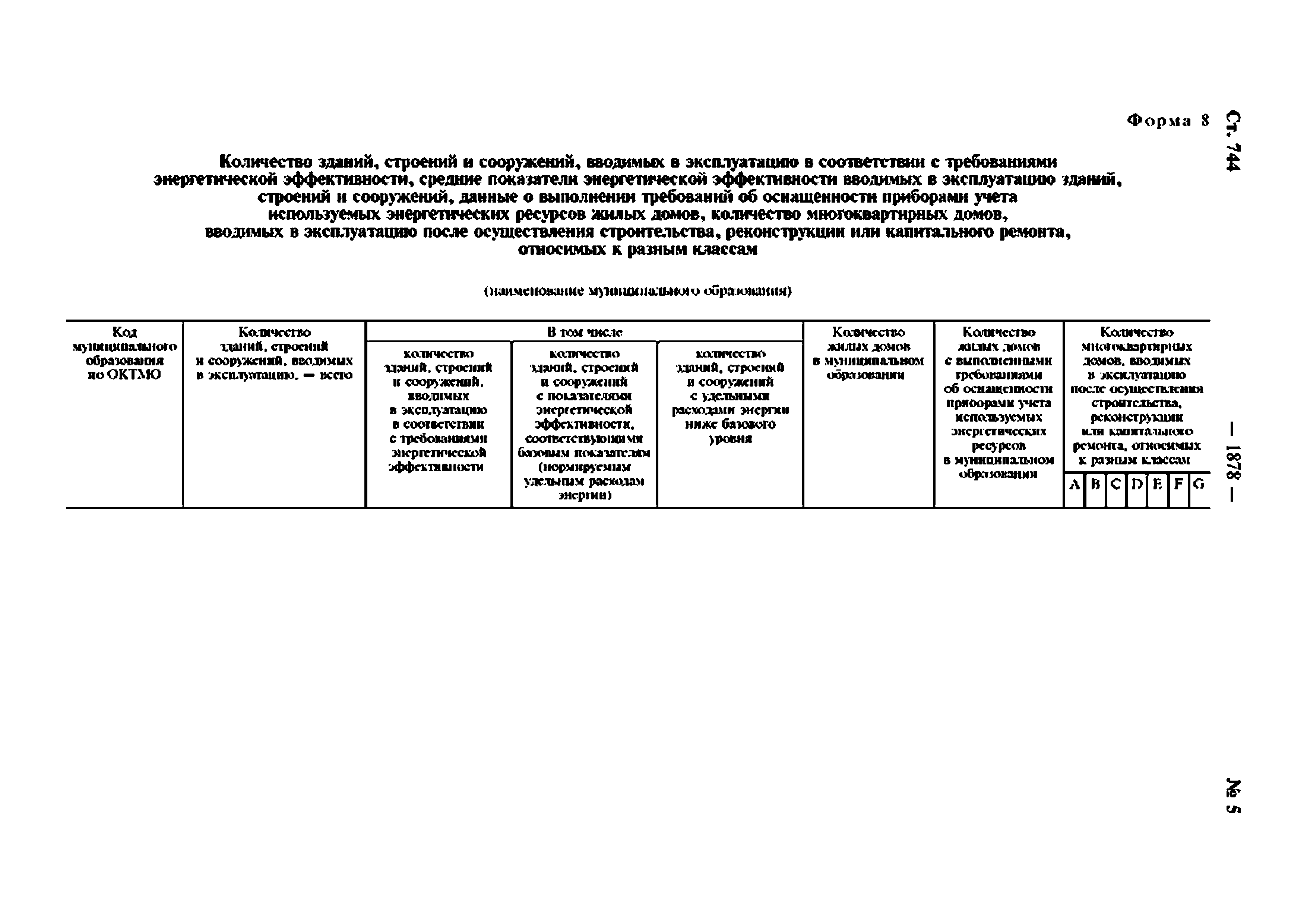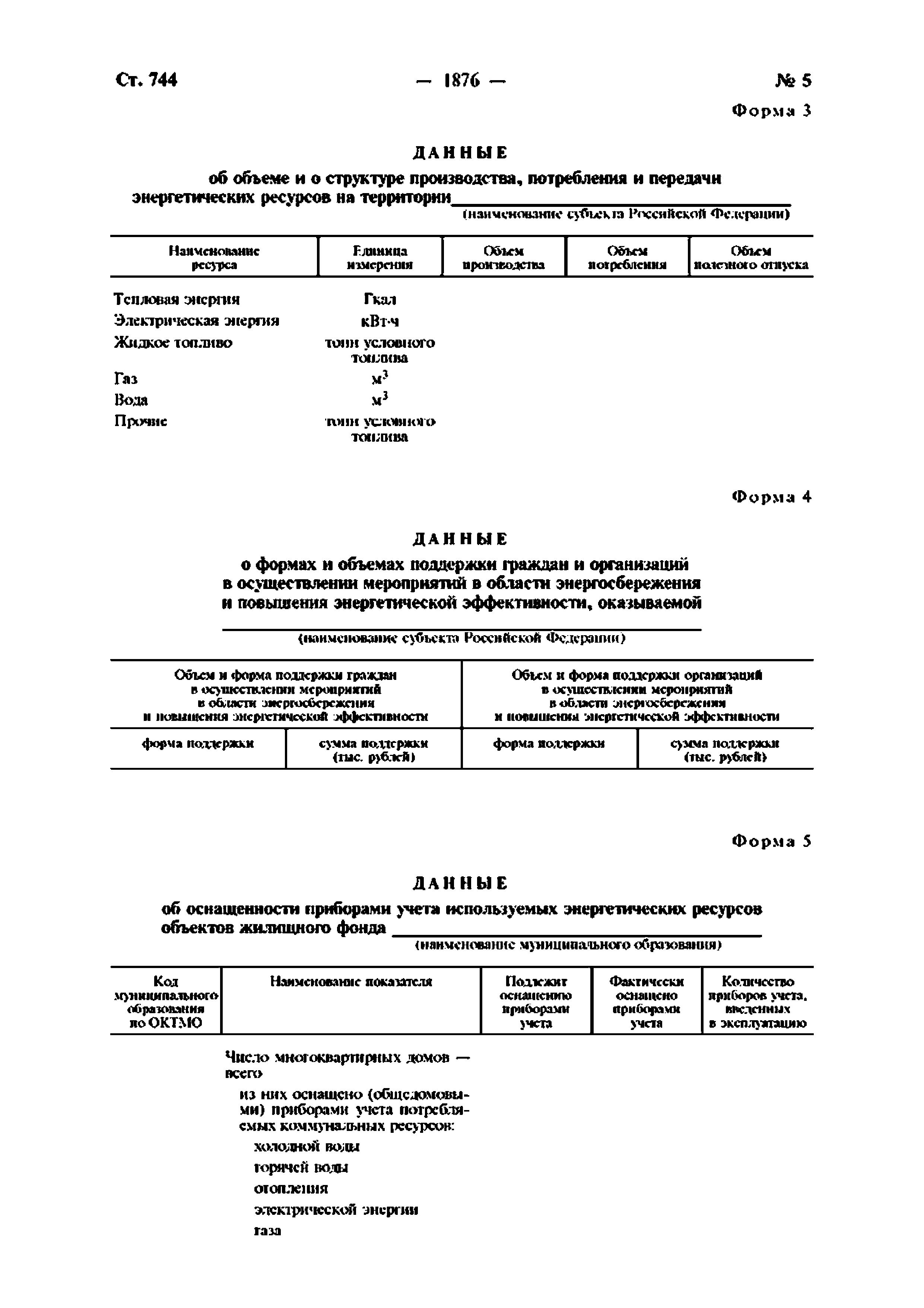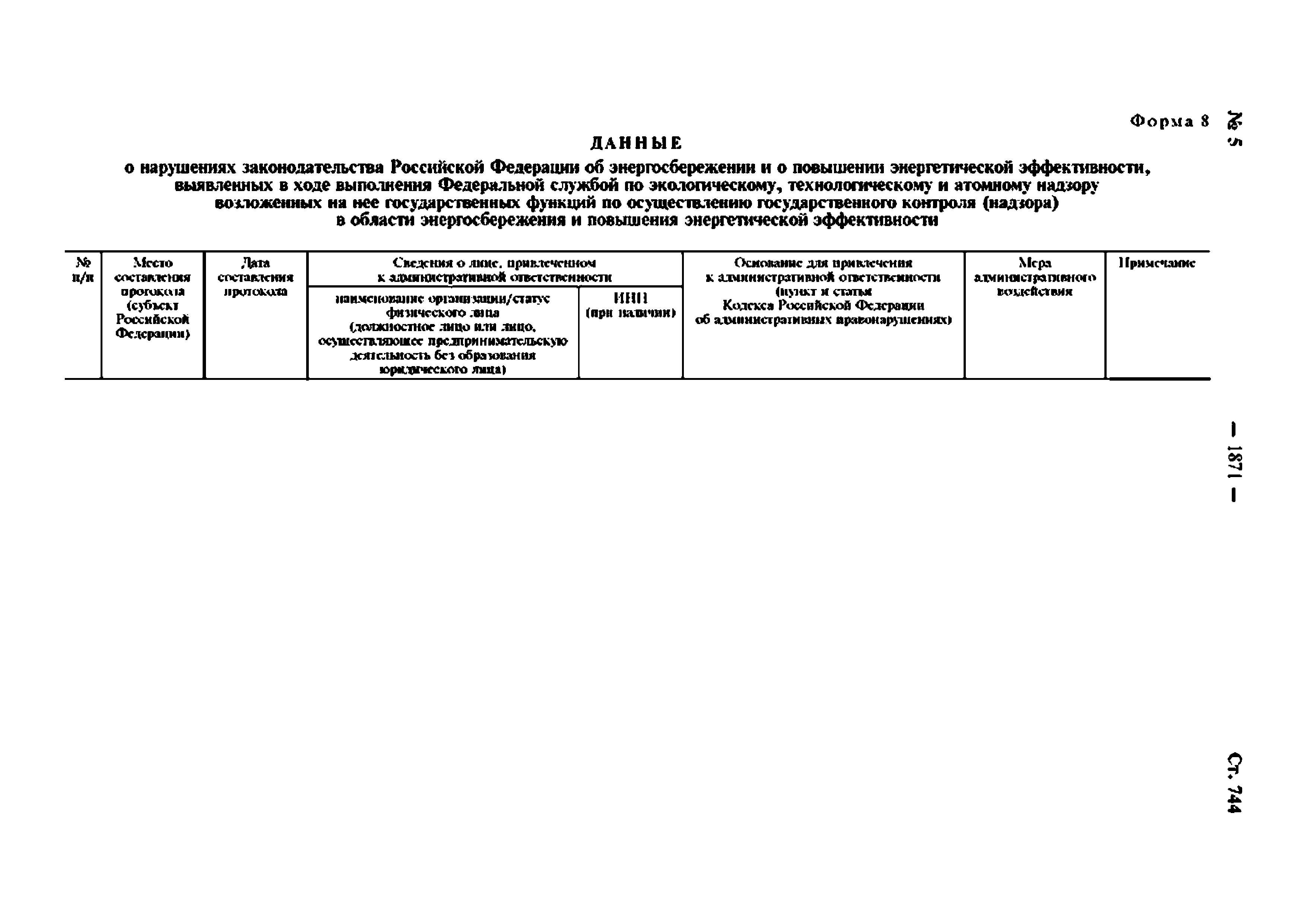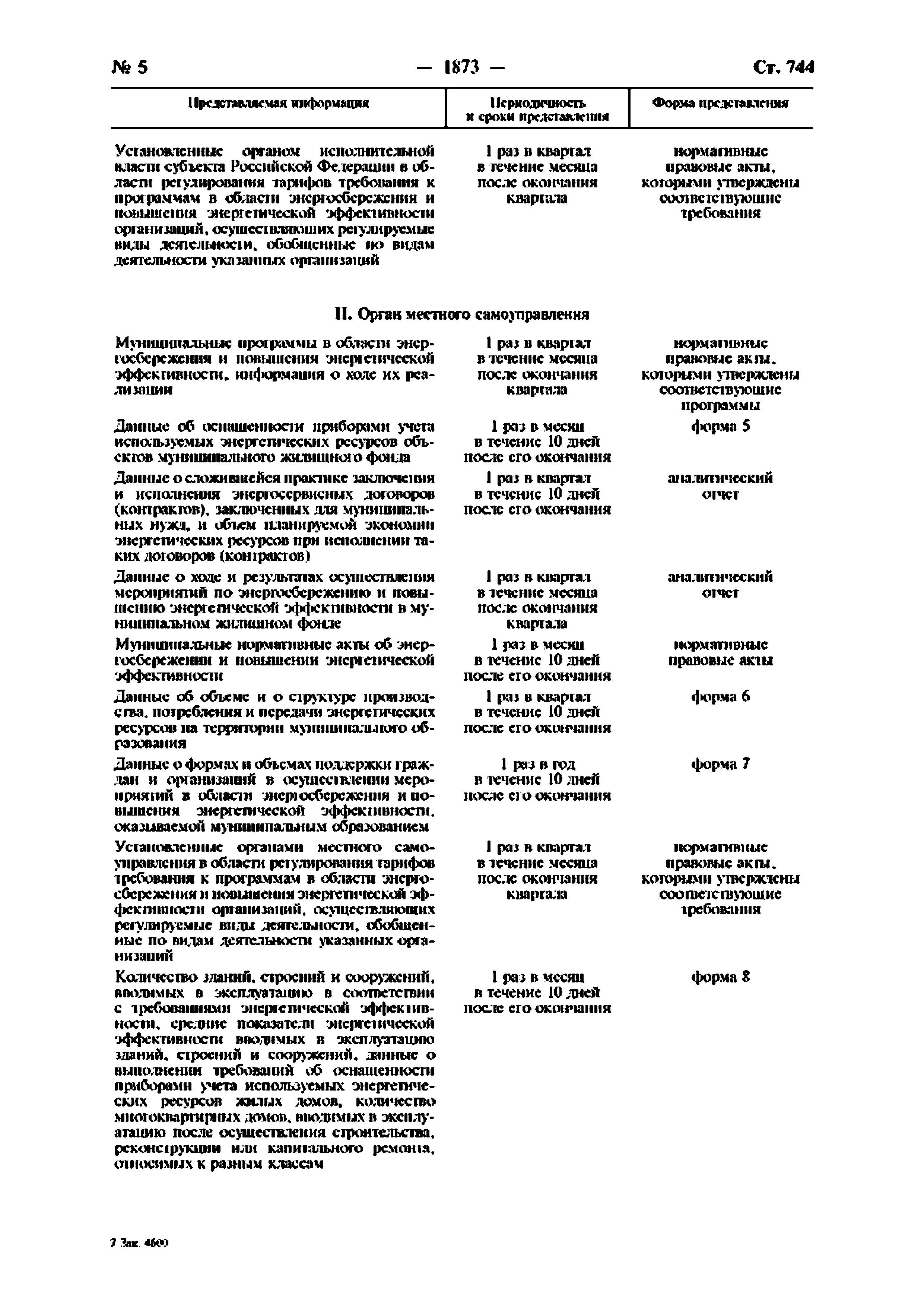 | Оглавление: | Приложение № 1. Перечень информации, представляемой федеральными органами исполнительной власти для включения в государственную информационную систему в области энергосбережения и повышения энергетической эффективности Приложение № 2. Формы представления федеральными органами исполнительной власти информации для включения в государственную информационную систему в области энергосбережения и повышения энергетической эффективности Приложение № 3. Перечень информации, представляемой органами исполнительной власти субъектов Российской Федерации и органами местного самоуправления для включения в государственную информационную систему в области энергосбережения и повышения энергетической эффективности Приложение № 4. Формы представления органами исполнительной власти субъектов Российской Федерации и органами местного самоуправления информации для включения в государственную информационную систему в области энергосбережения и повышения энергетической эффективности |